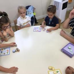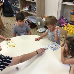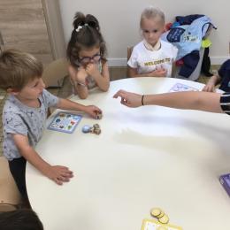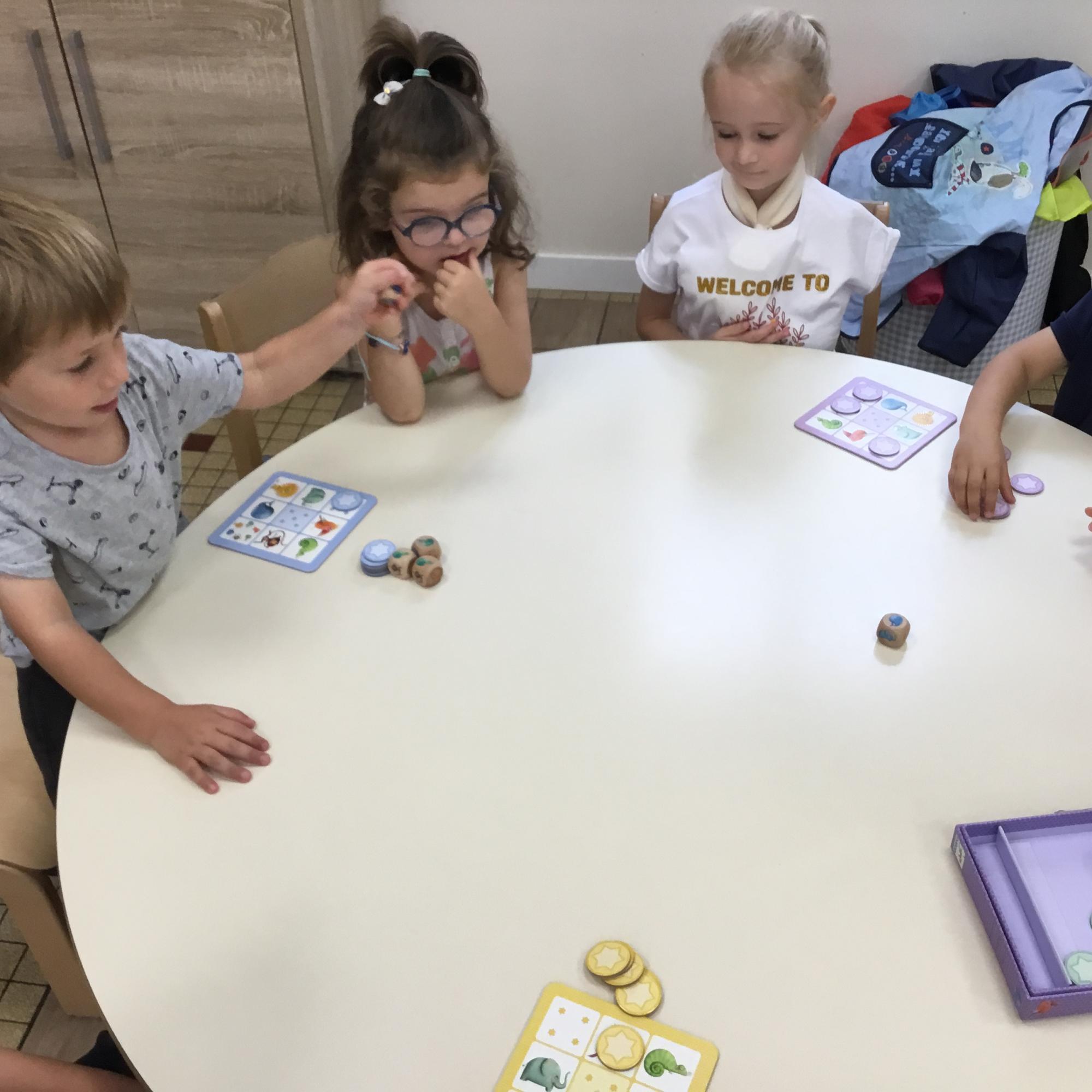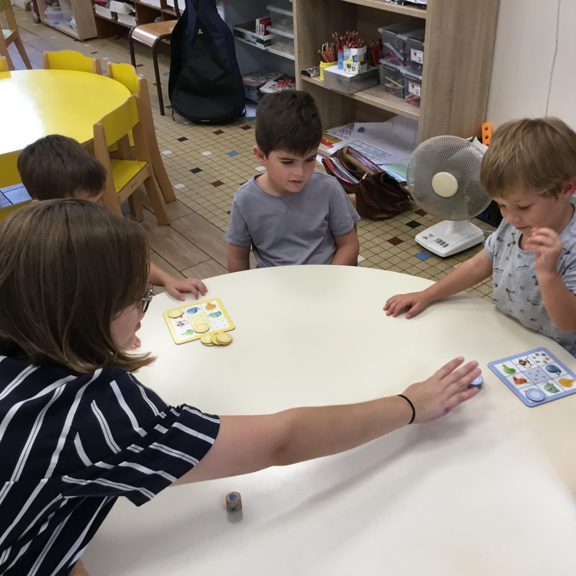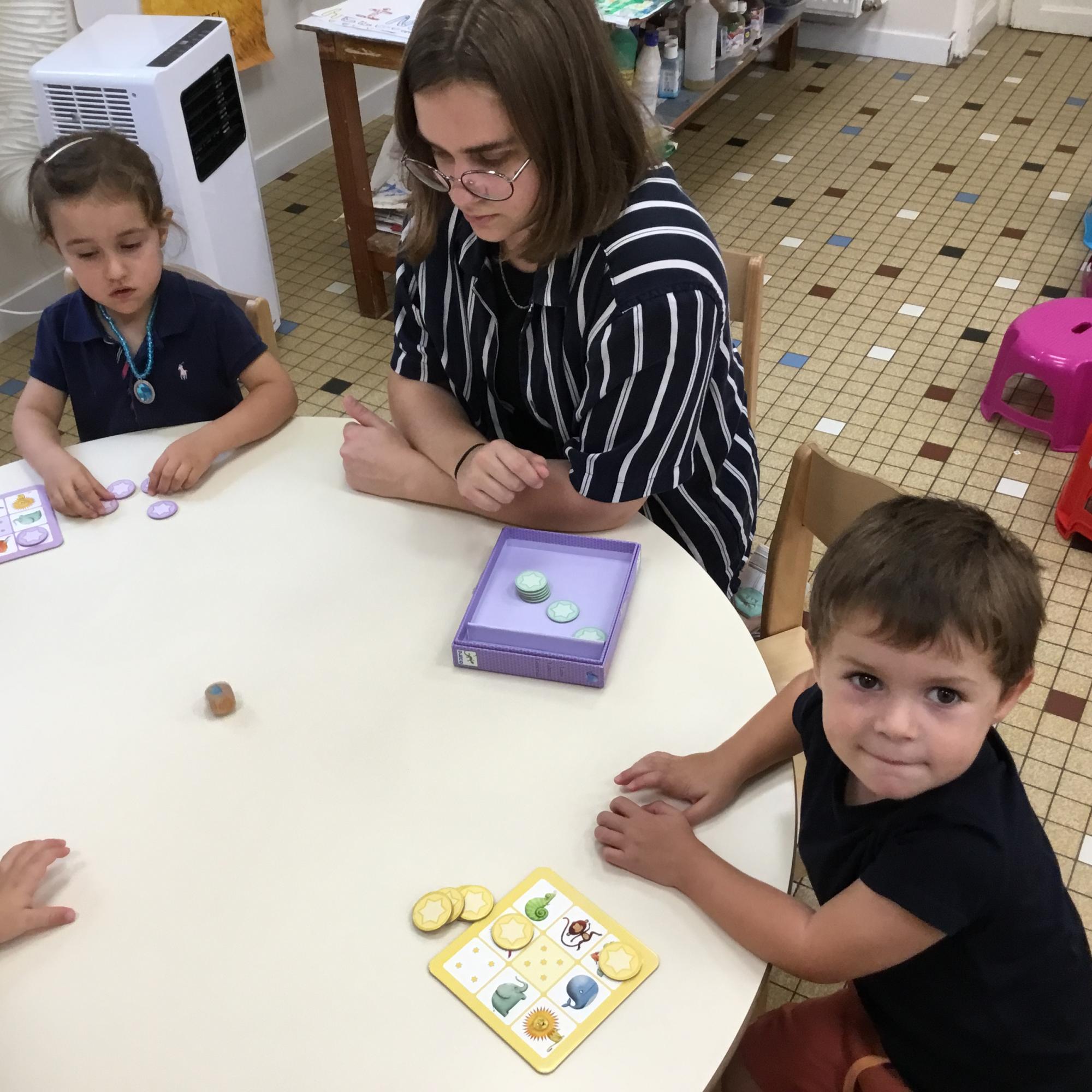 Petite et moyenne section 14/09/2022 Élin, la stagiaire Anglaise a commencé à intervenir en atelier chez les moyens. Elle joue avec eux en ne leur parlant qu’en anglais. Au préalable, les règles du jeu ont été expliquées à tous les enfants.