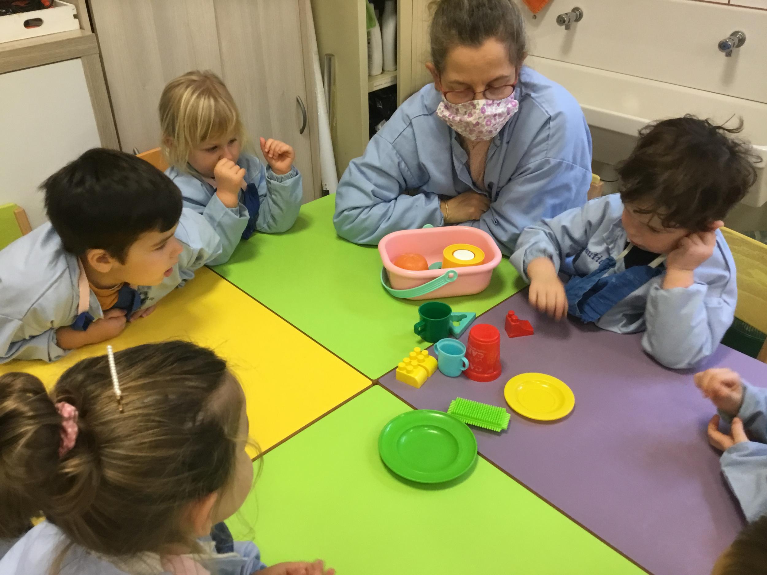 Avec Katy, les élèves ont explicité les caractéristiques des ronds et ont cherché dans la classe des objets ronds.