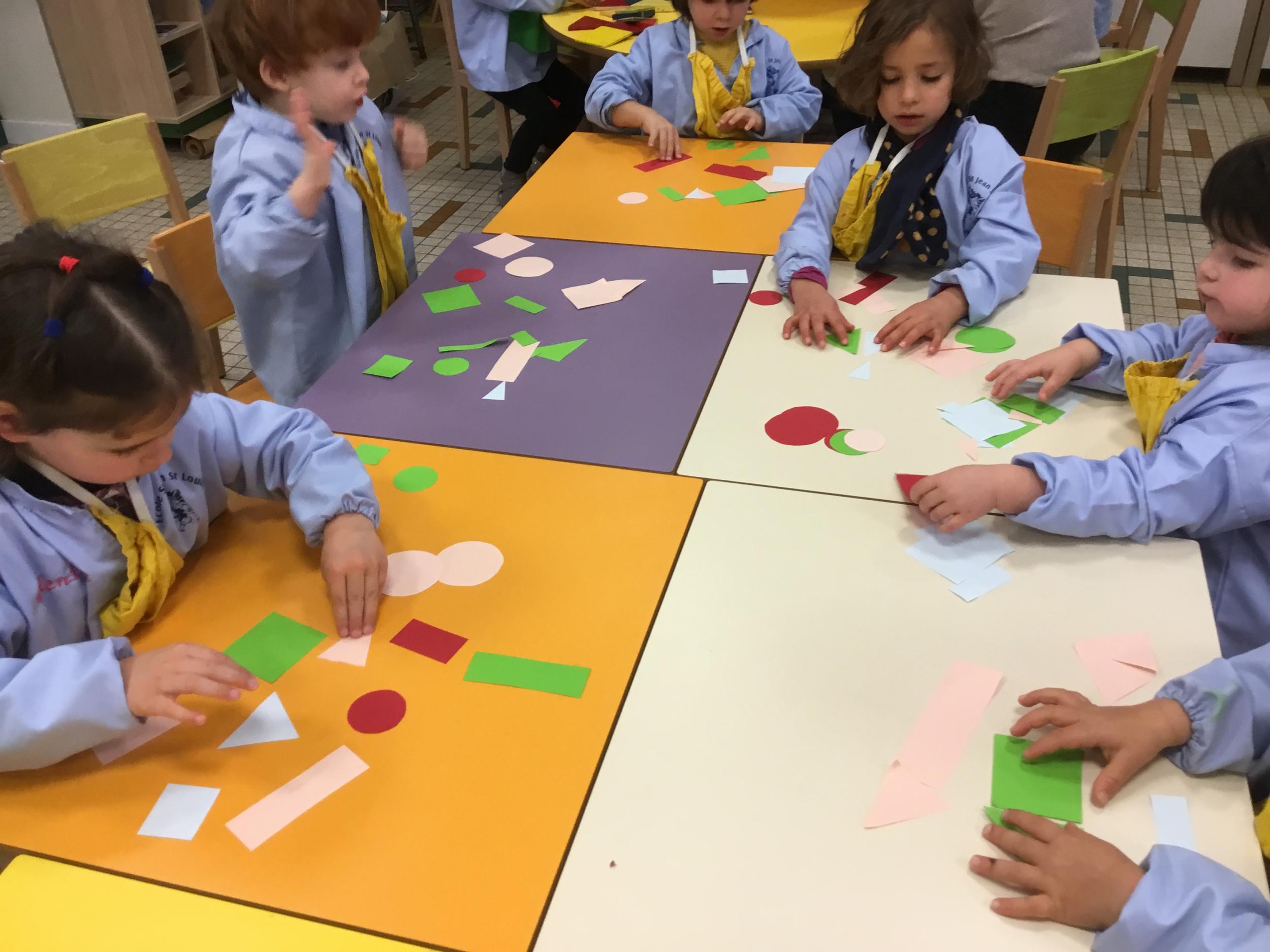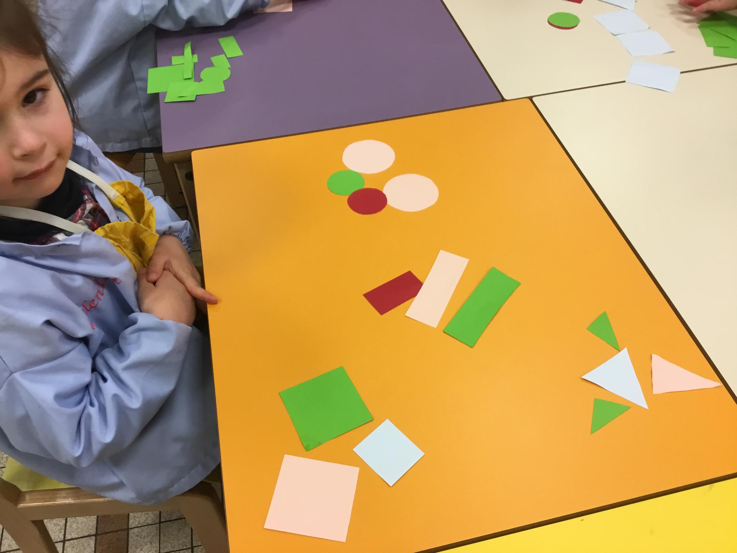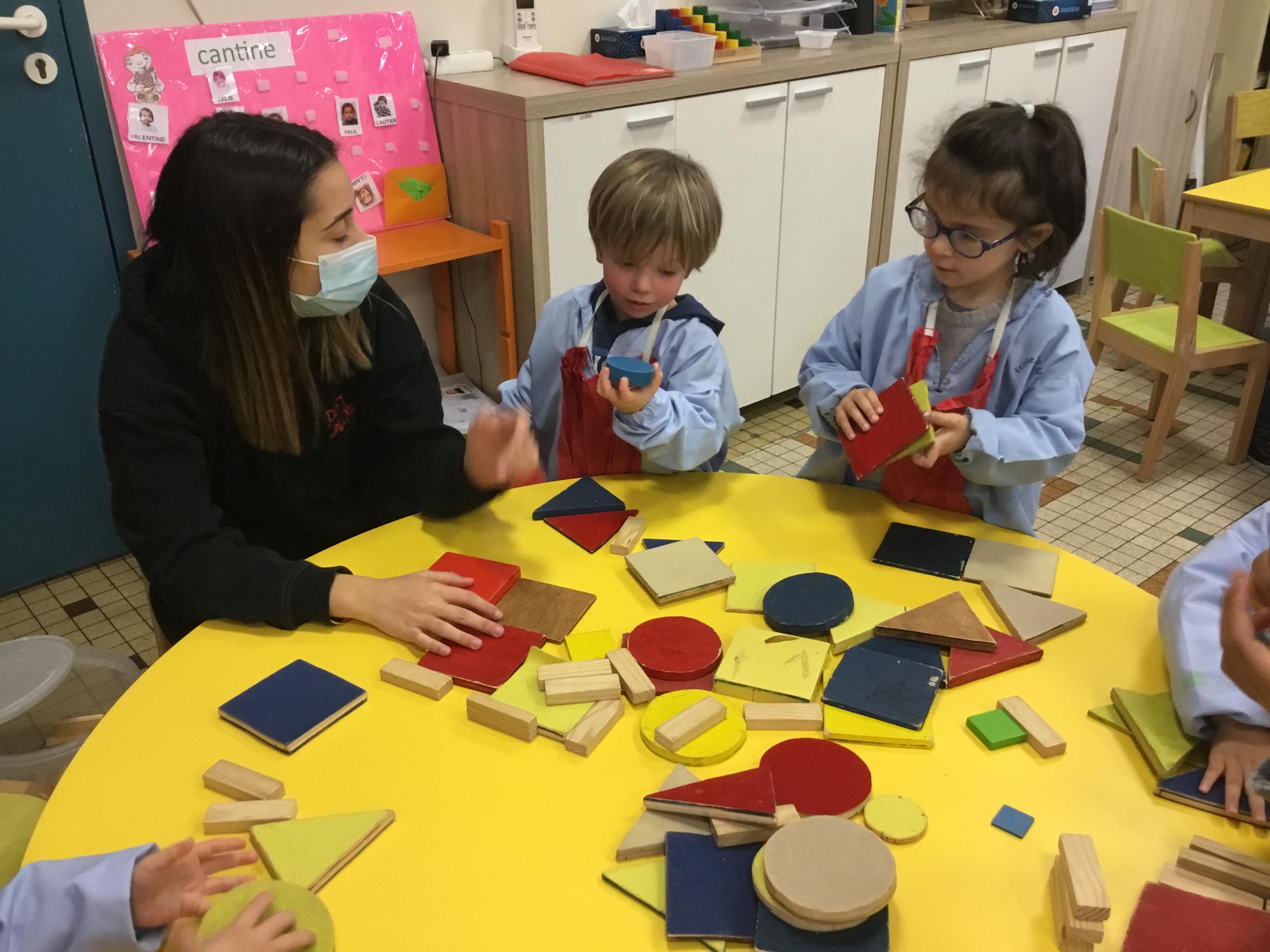 La maîtresse a proposé plusieurs ateliers pour apprendre à reconnaître, nommer, donner les caractéristiques des différentes formes.