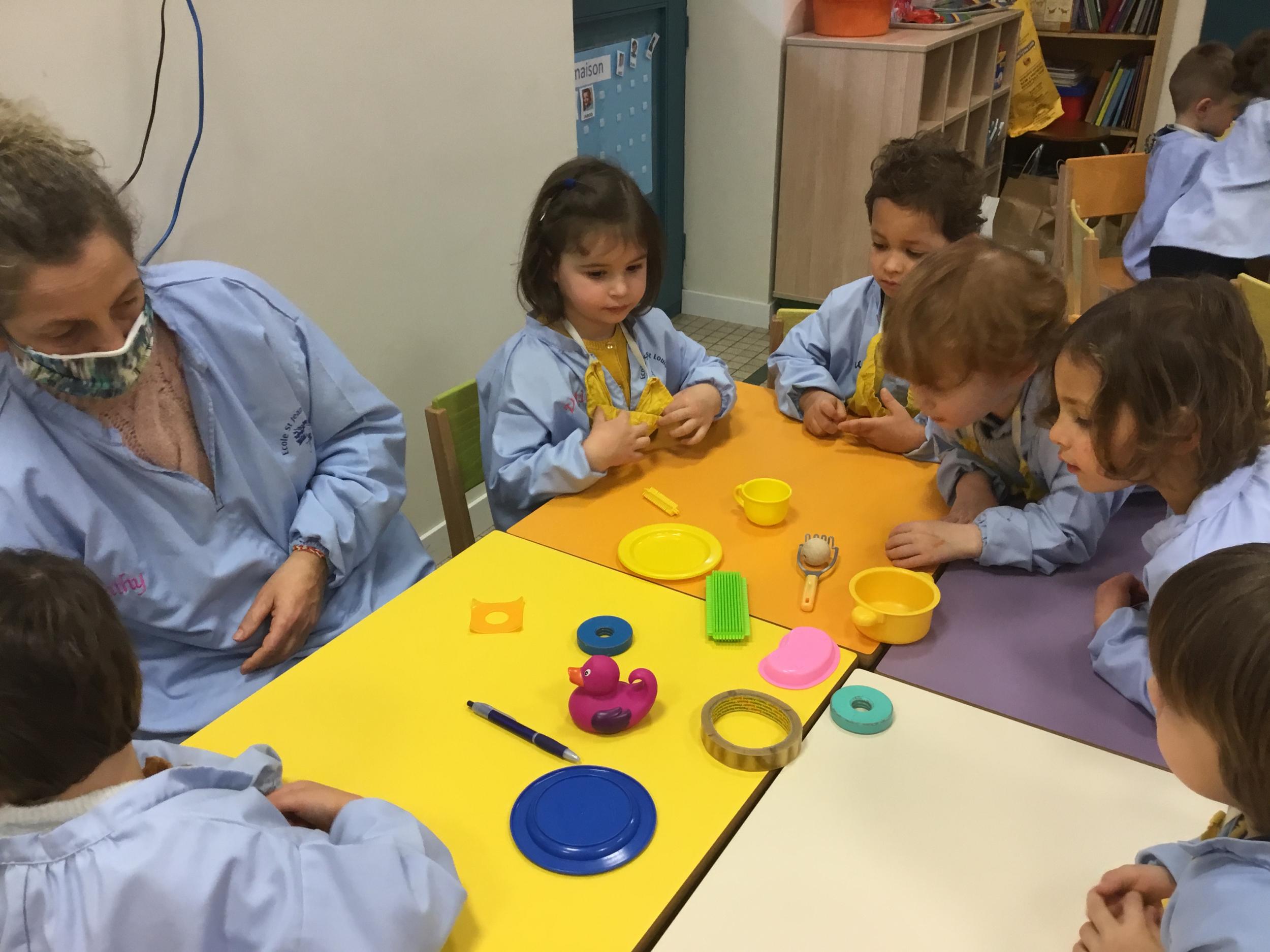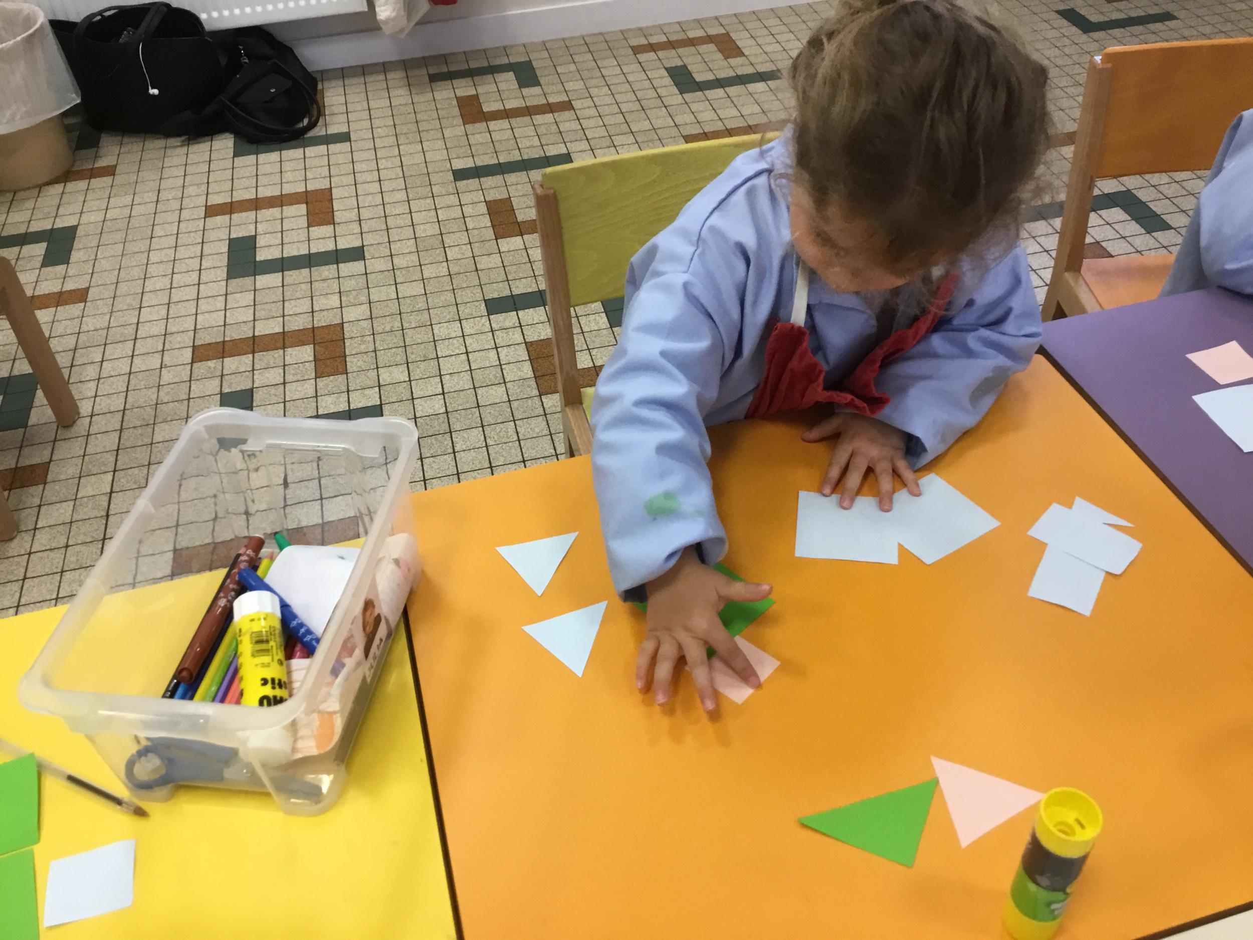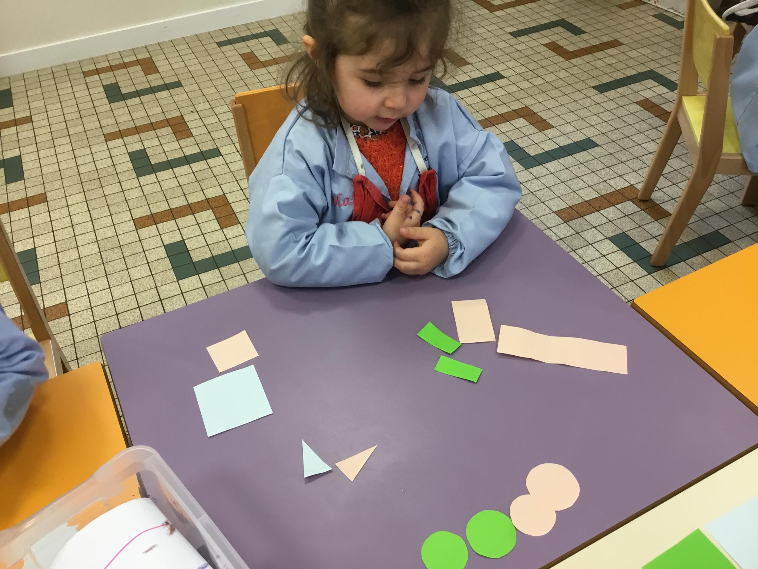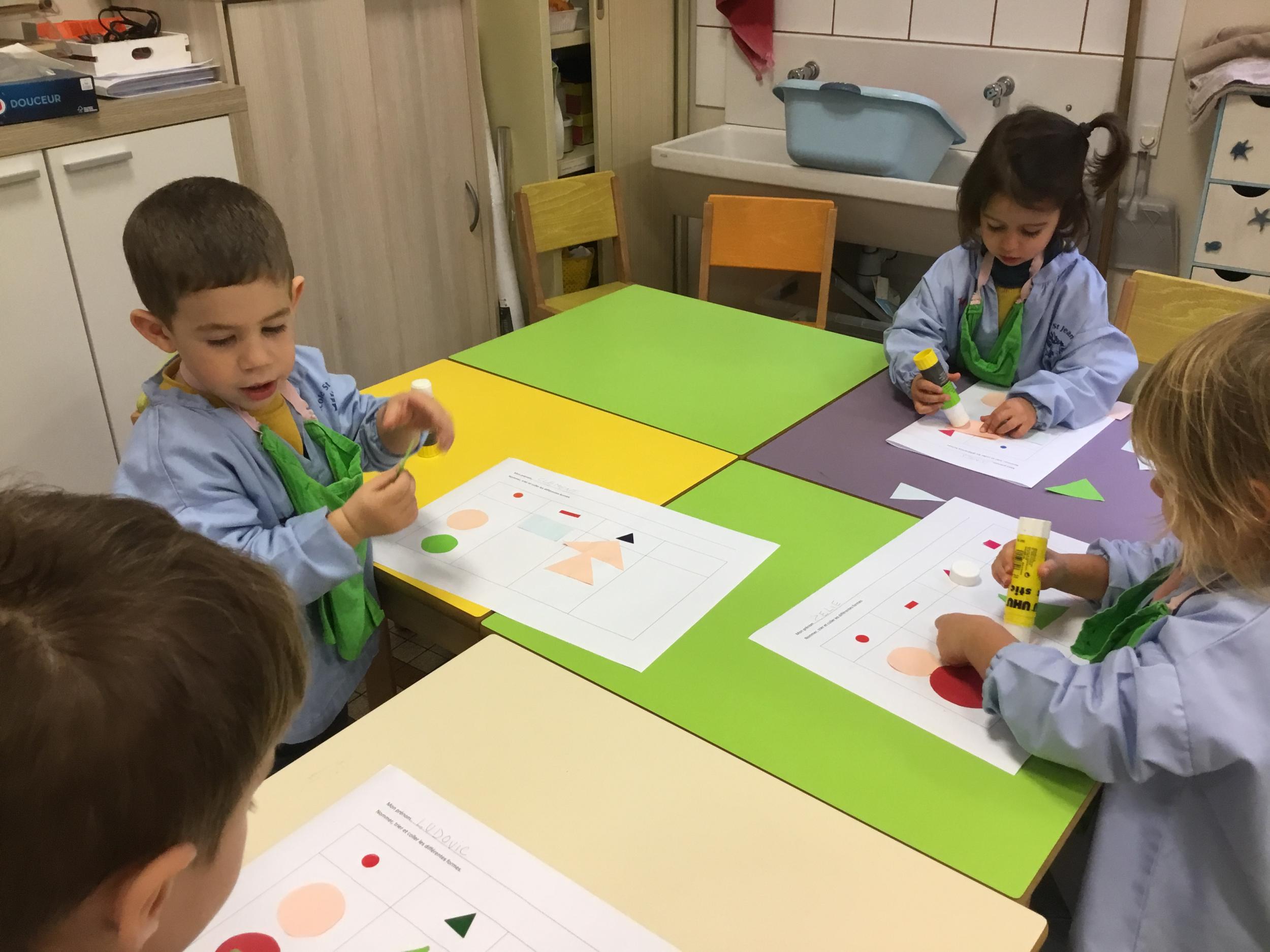 La maîtresse a proposé plusieurs ateliers pour apprendre à reconnaître, nommer, donner les caractéristiques des différentes formes.