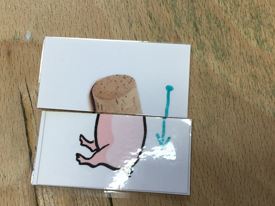 Pour cela, je découpe une étiquette en deux et à chaque partie que je montre, il faut dire la syllabe d'attaque ou d efin.