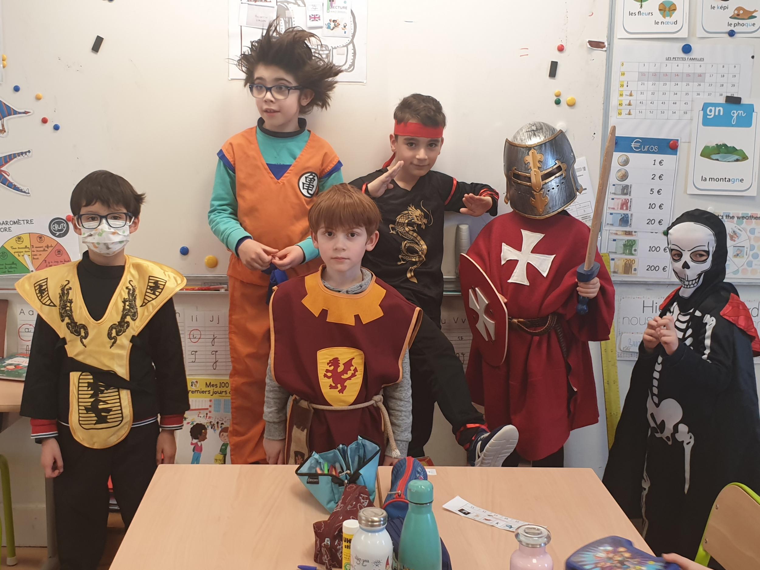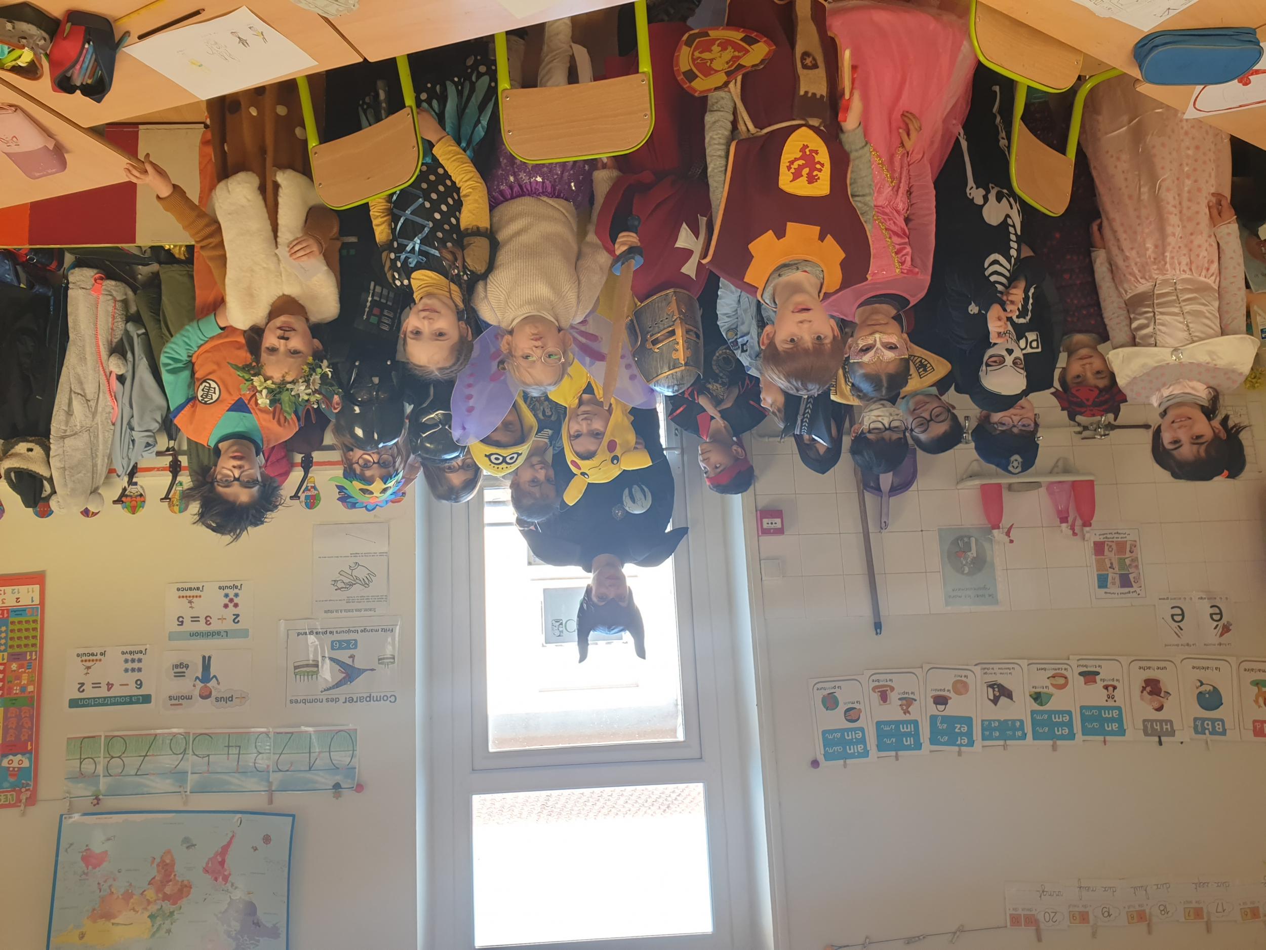 Nous avons continué cette journée par le Carnaval. Les enfants et les adultes étaient heureux de pouvoir enfin se retrouver et de partager ce moment festif. Nous avons dansé dans la cour, défilé en ville puis terminé cette journée autour d'un goûter. Les parents de l'APEL ont pris le temps de faire un grand nombre de crêpes et ont offert un verre de l'amitié aux parents. Merci à eux ainsi qu'à tous ceux qui sont venus aider à déguiser les enfants.