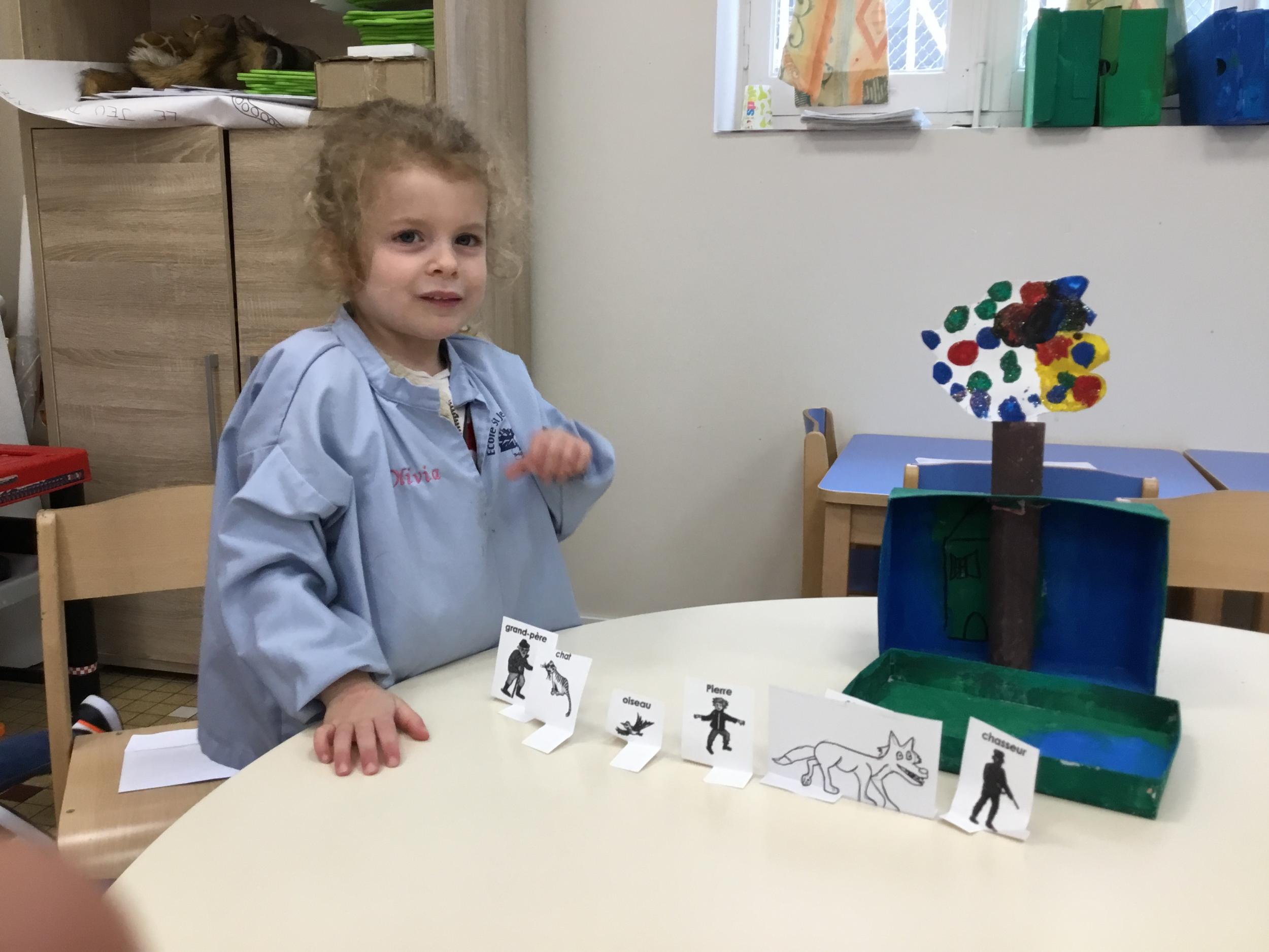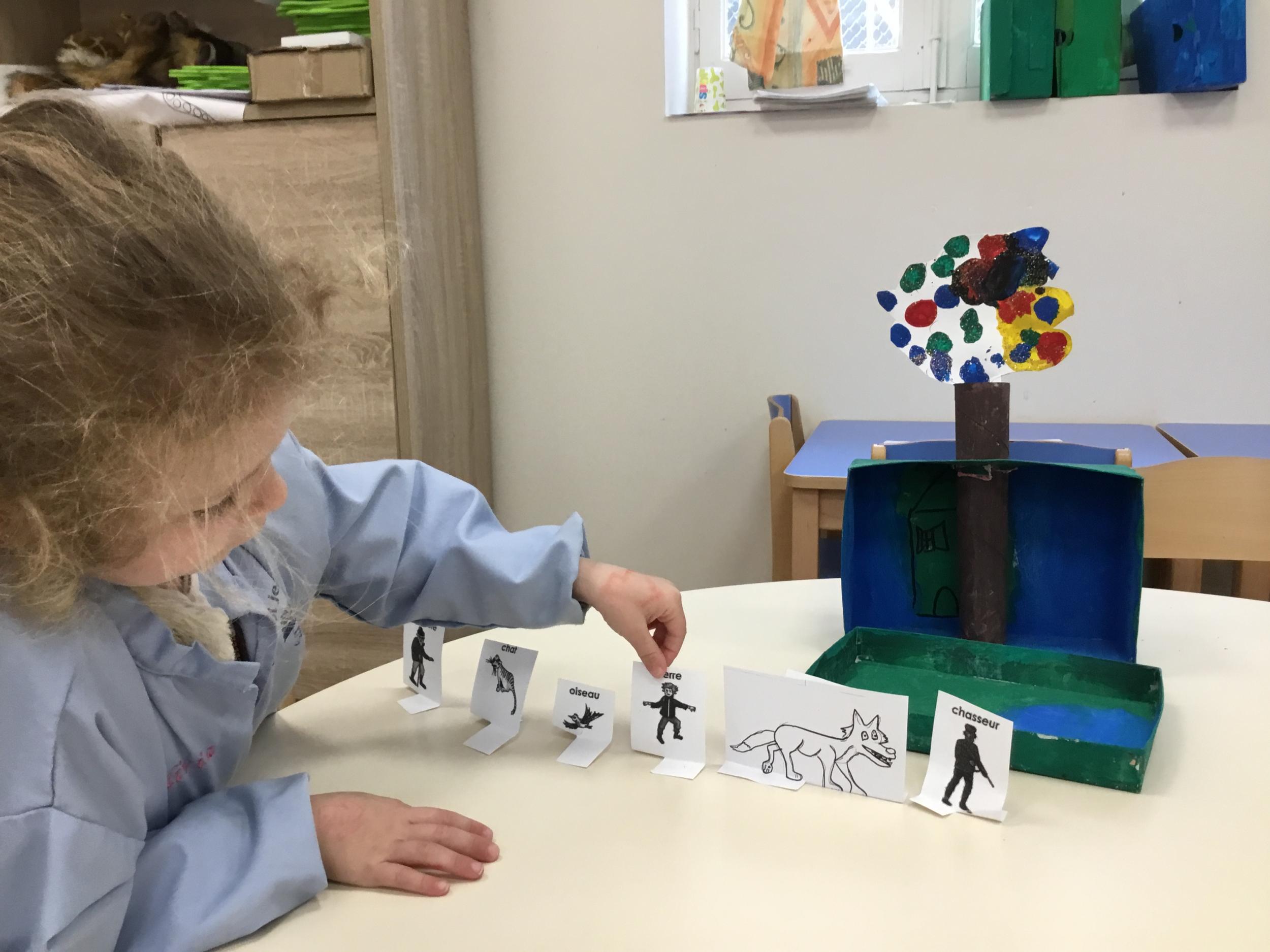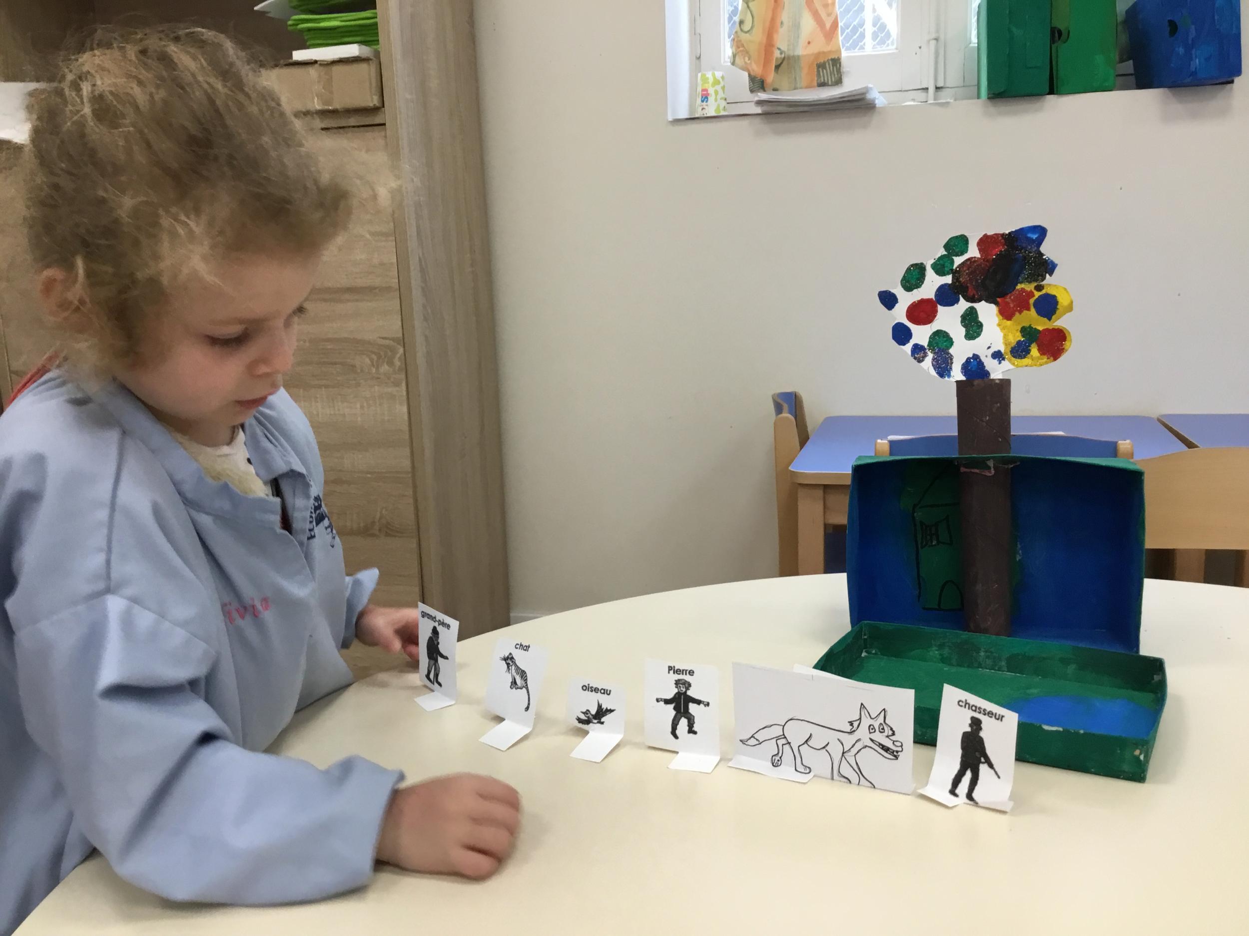 Le projet de Pierre et le loup a permis aux enfants de découvrir les instruments de l’orchestre symphonique et de les reconnaître, de structurer le récit de manière chronologique, d’apprendre à raconter un conte à l’oral en faisant parler les personnages et de fabriquer pour cela un décor dans une boîte à raconter.Ils ont aussi appris à mimer des personnages à partir d’extraits du conte musical de Prokofiev. Les élèves ramèneront cette boîte à raconter à la maison pour faire le spectacle à leurs parents.