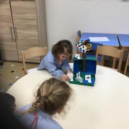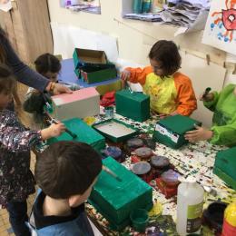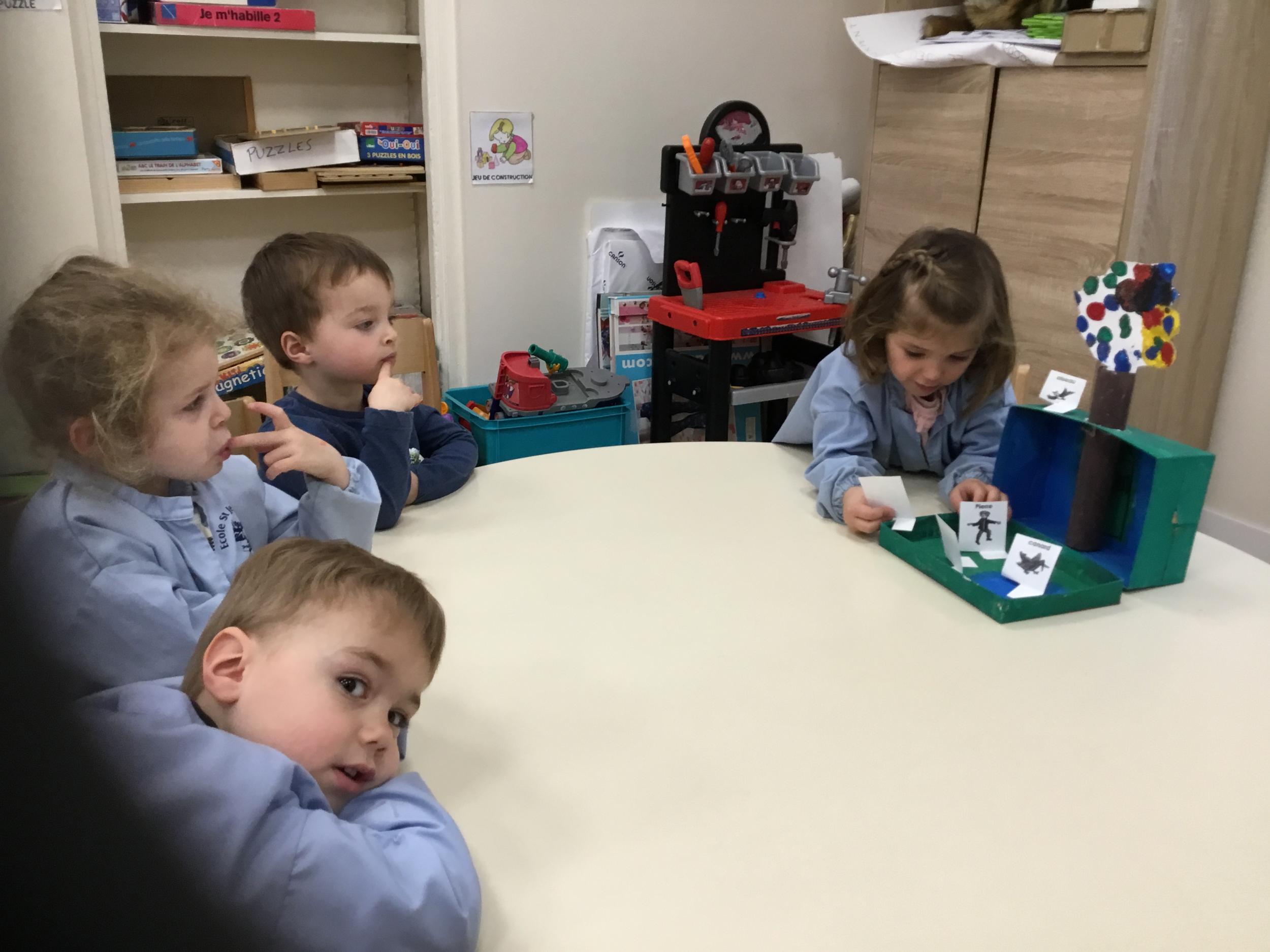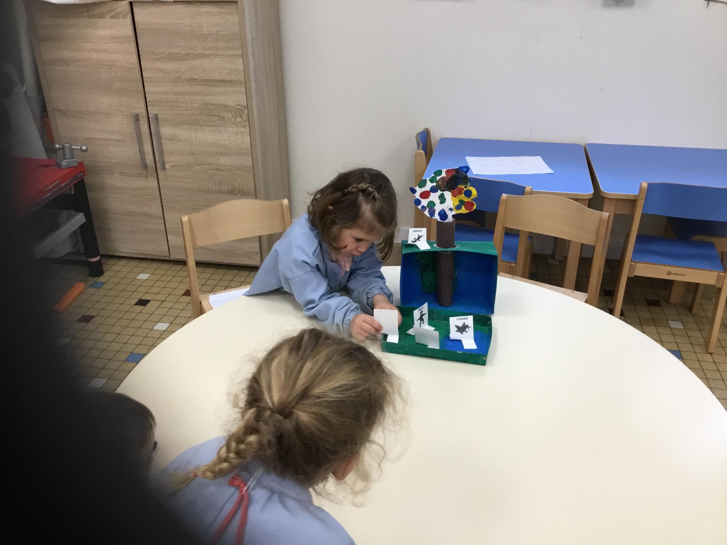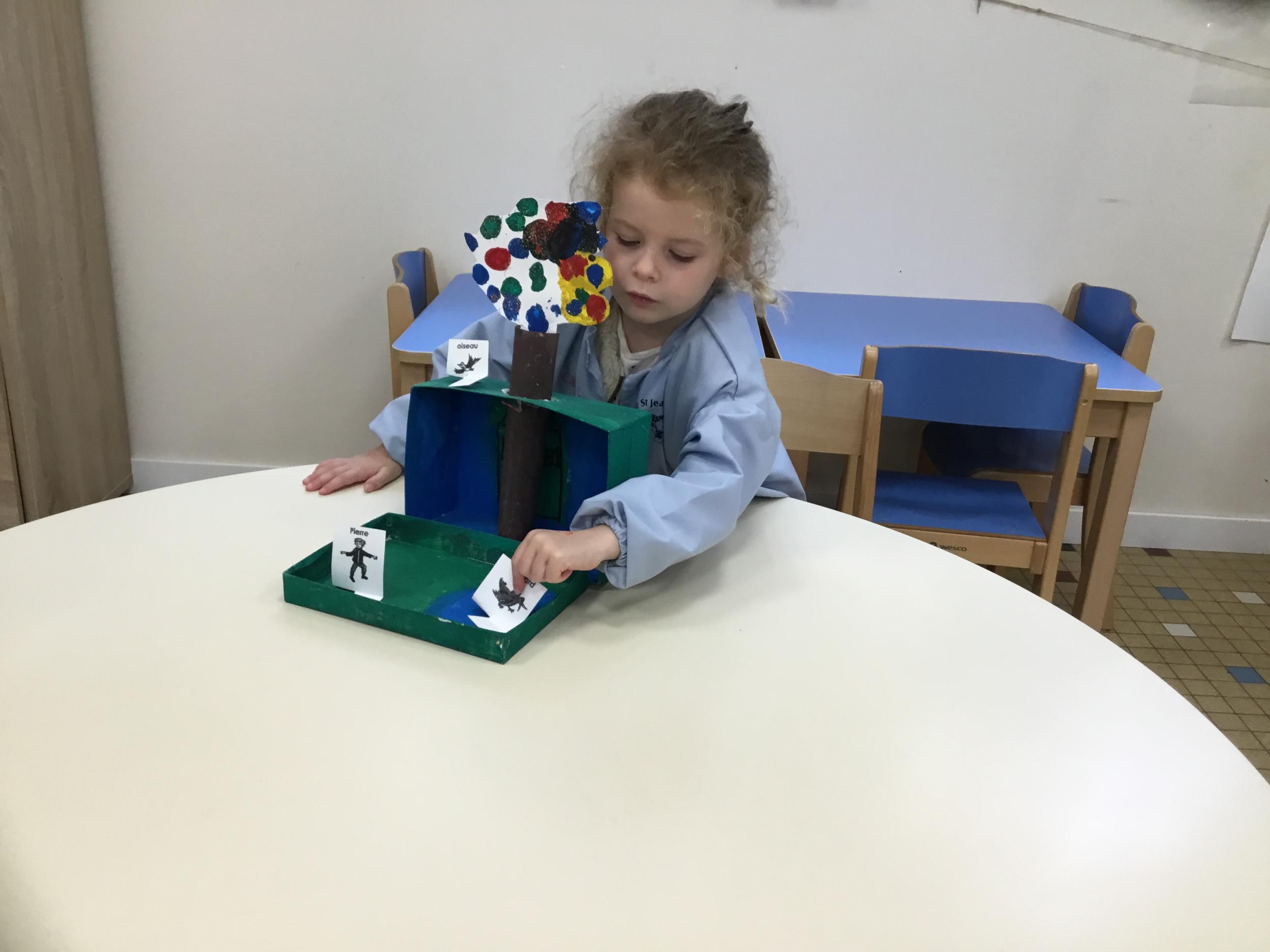Le projet de Pierre et le loup a permis aux enfants de découvrir les instruments de l’orchestre symphonique et de les reconnaître, de structurer le récit de manière chronologique, d’apprendre à raconter un conte à l’oral en faisant parler les personnages et de fabriquer pour cela un décor dans une boîte à raconter.Ils ont aussi appris à mimer des personnages à partir d’extraits du conte musical de Prokofiev. Les élèves ramèneront cette boîte à raconter à la maison pour faire le spectacle à leurs parents.