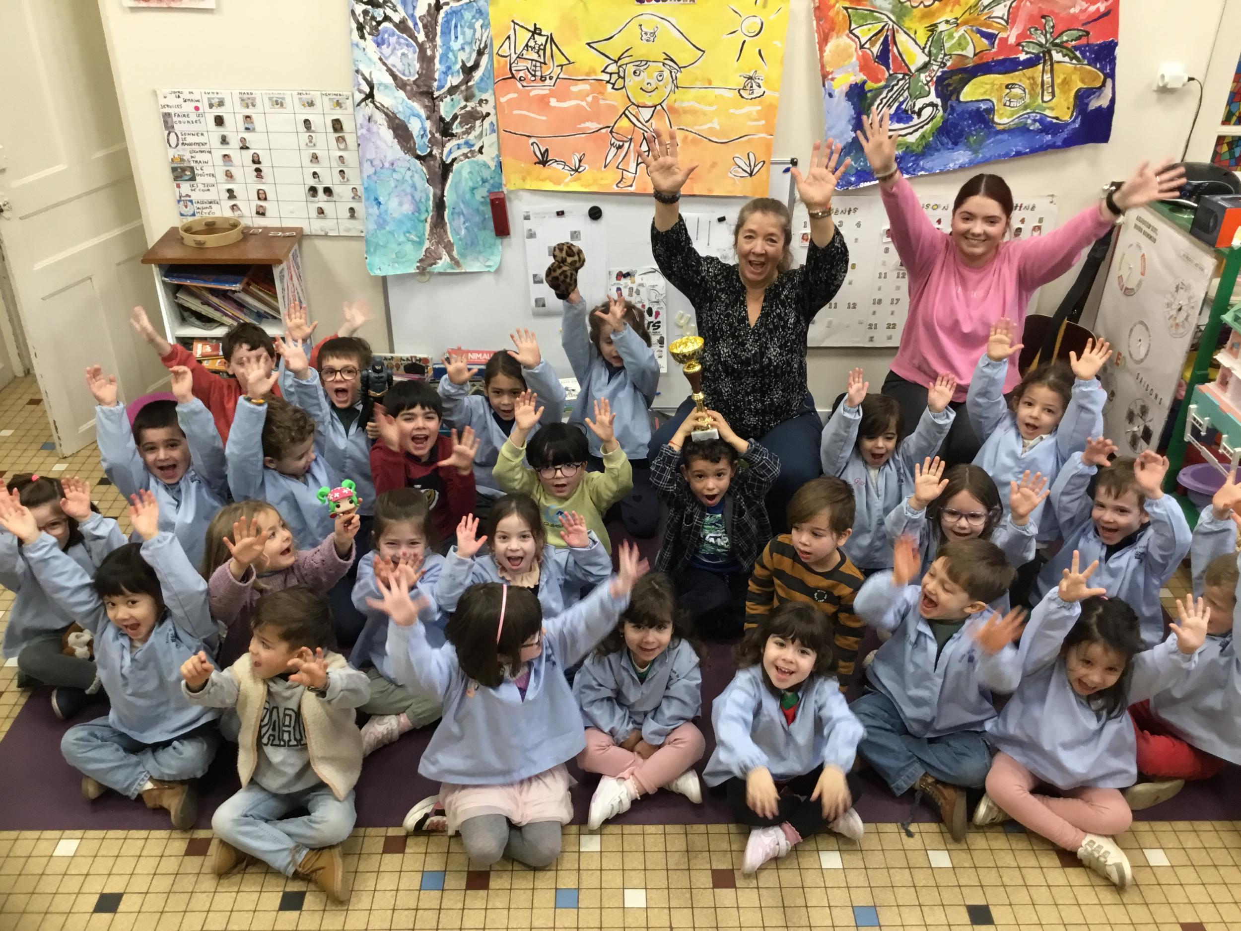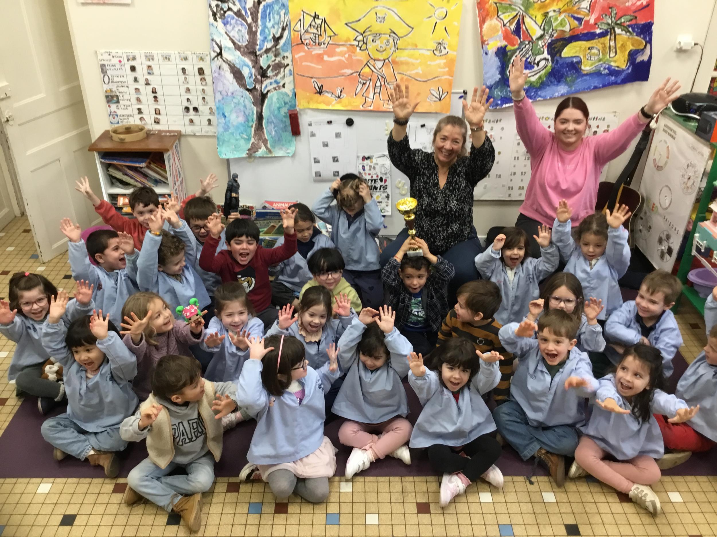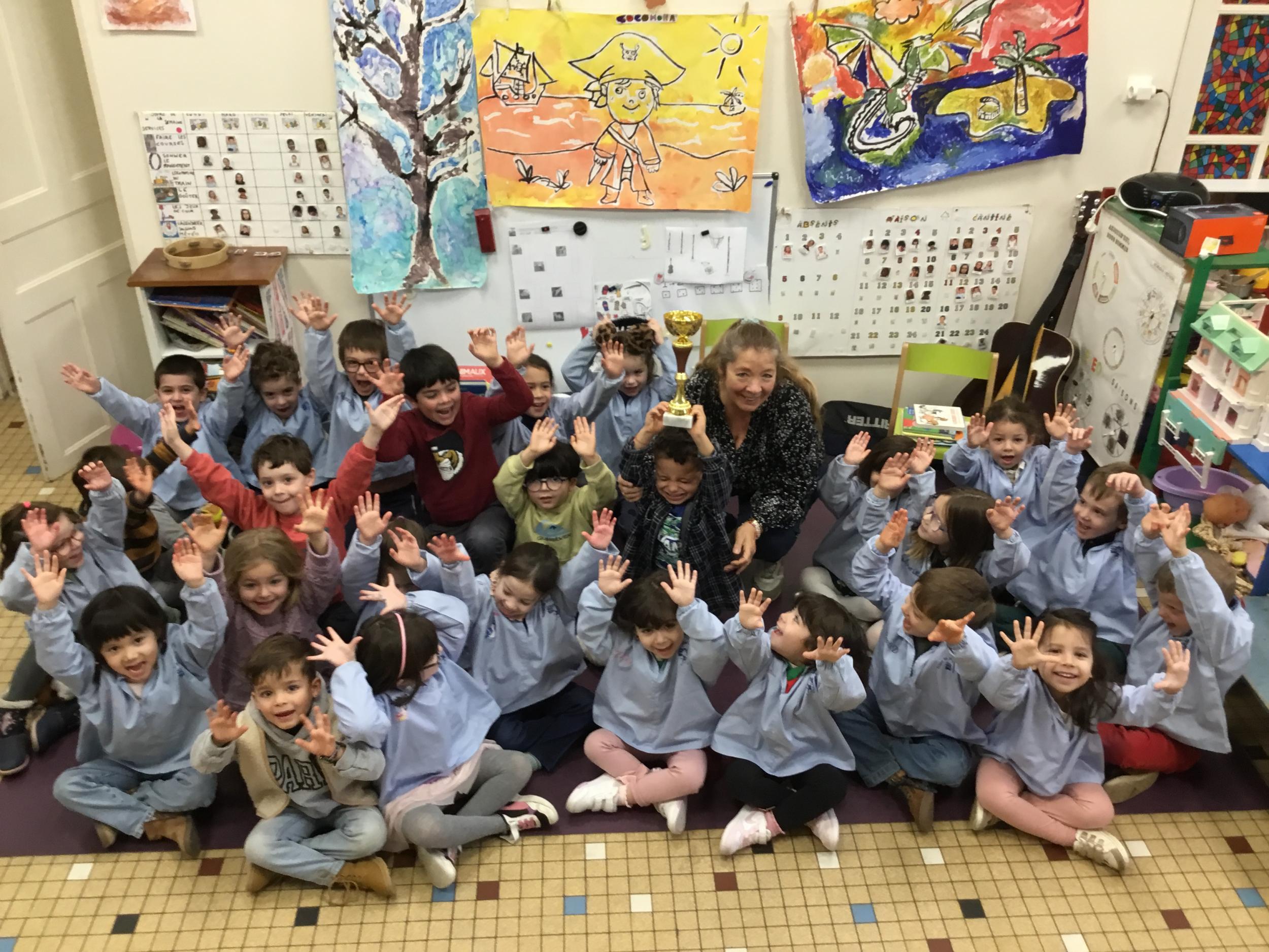 Petite et moyenne section 10/02/2025 La semaine dernière, les élèves ont tellement été sages qu’ils ont gagné la coupe de la sagesse. Tous ont eu un ticket pouce vert. Ils étaient fiers de tenir la coupe et d’être des champions ! Je les félicite, c’est très bien ! ,