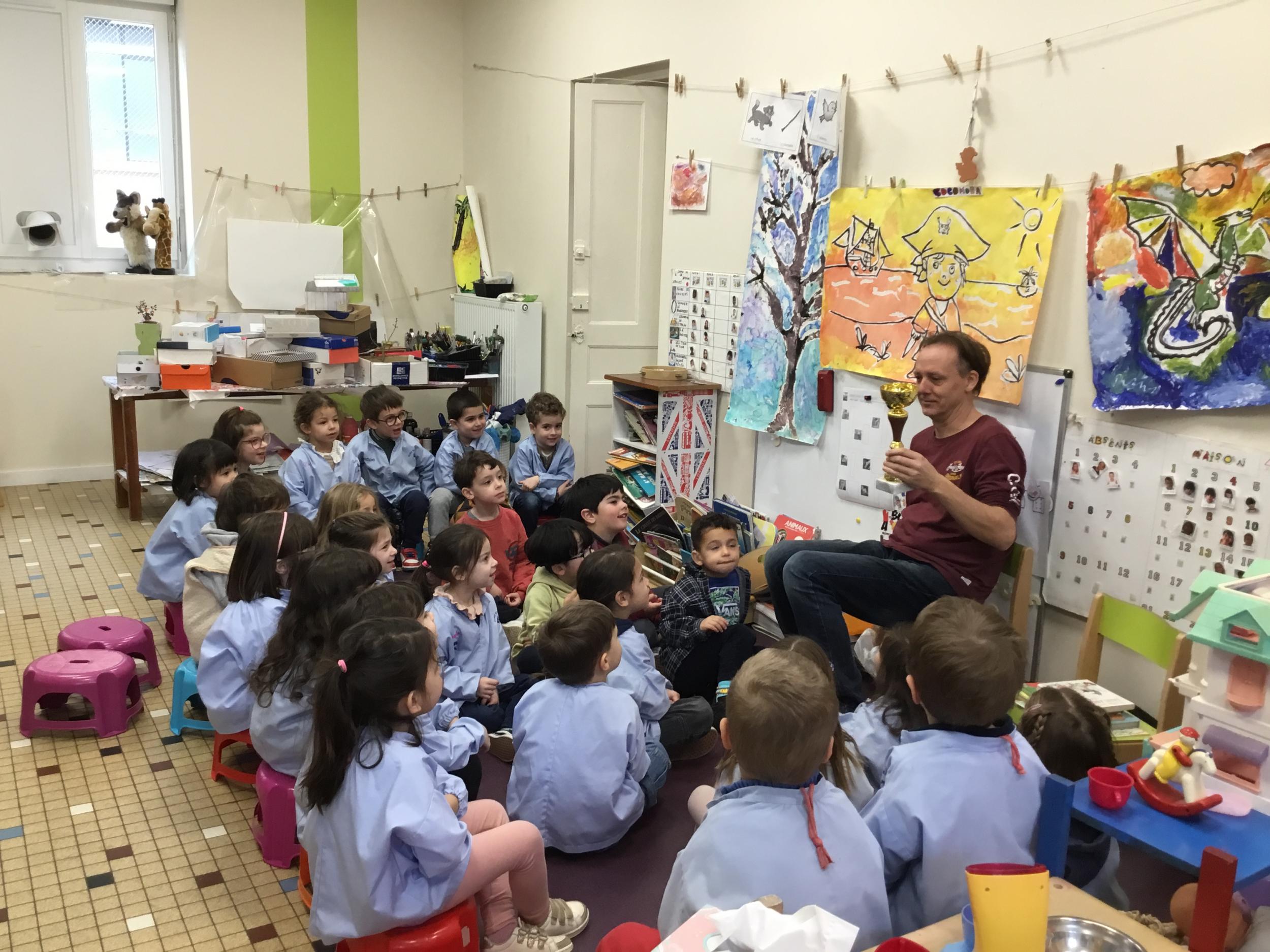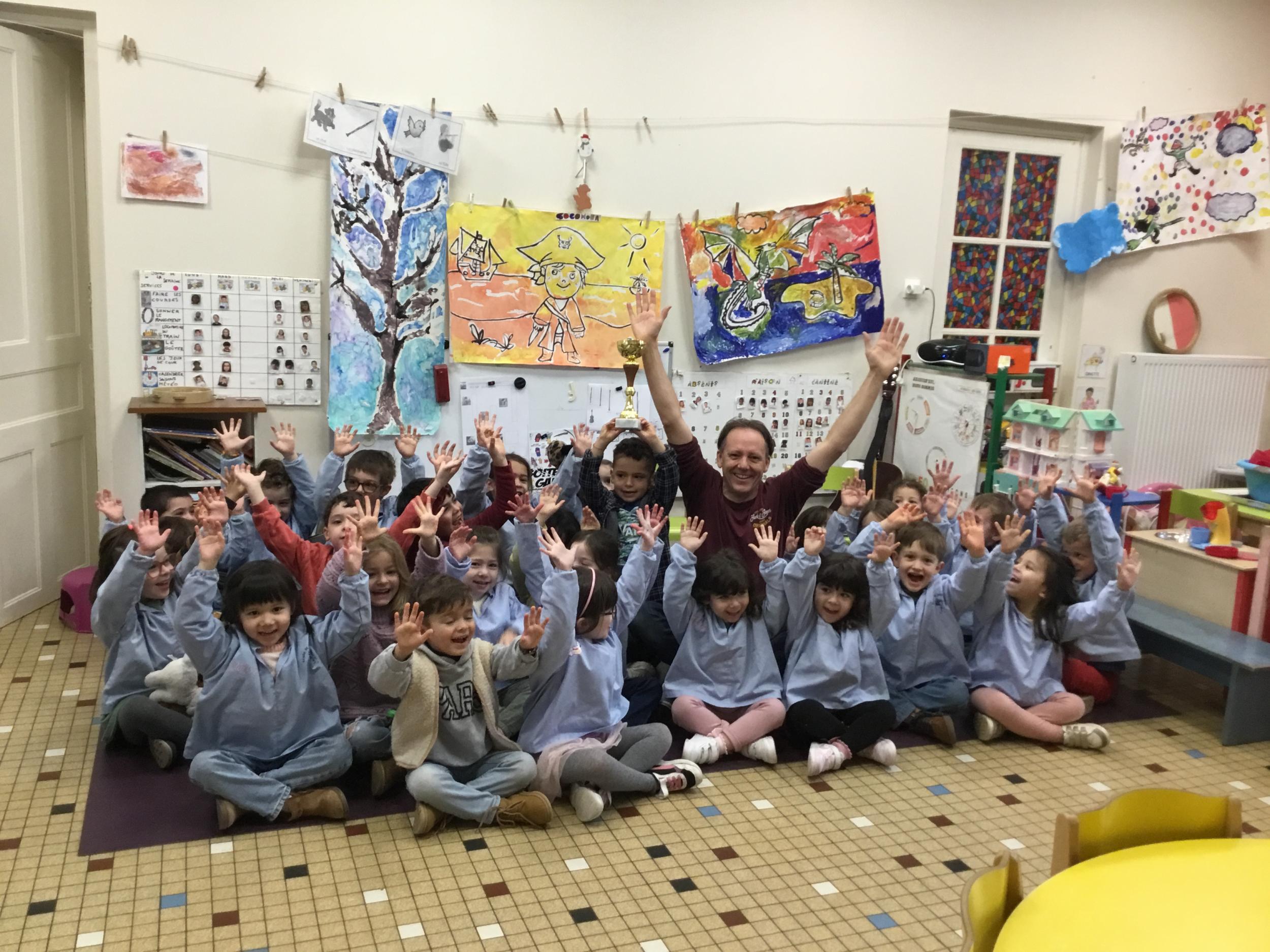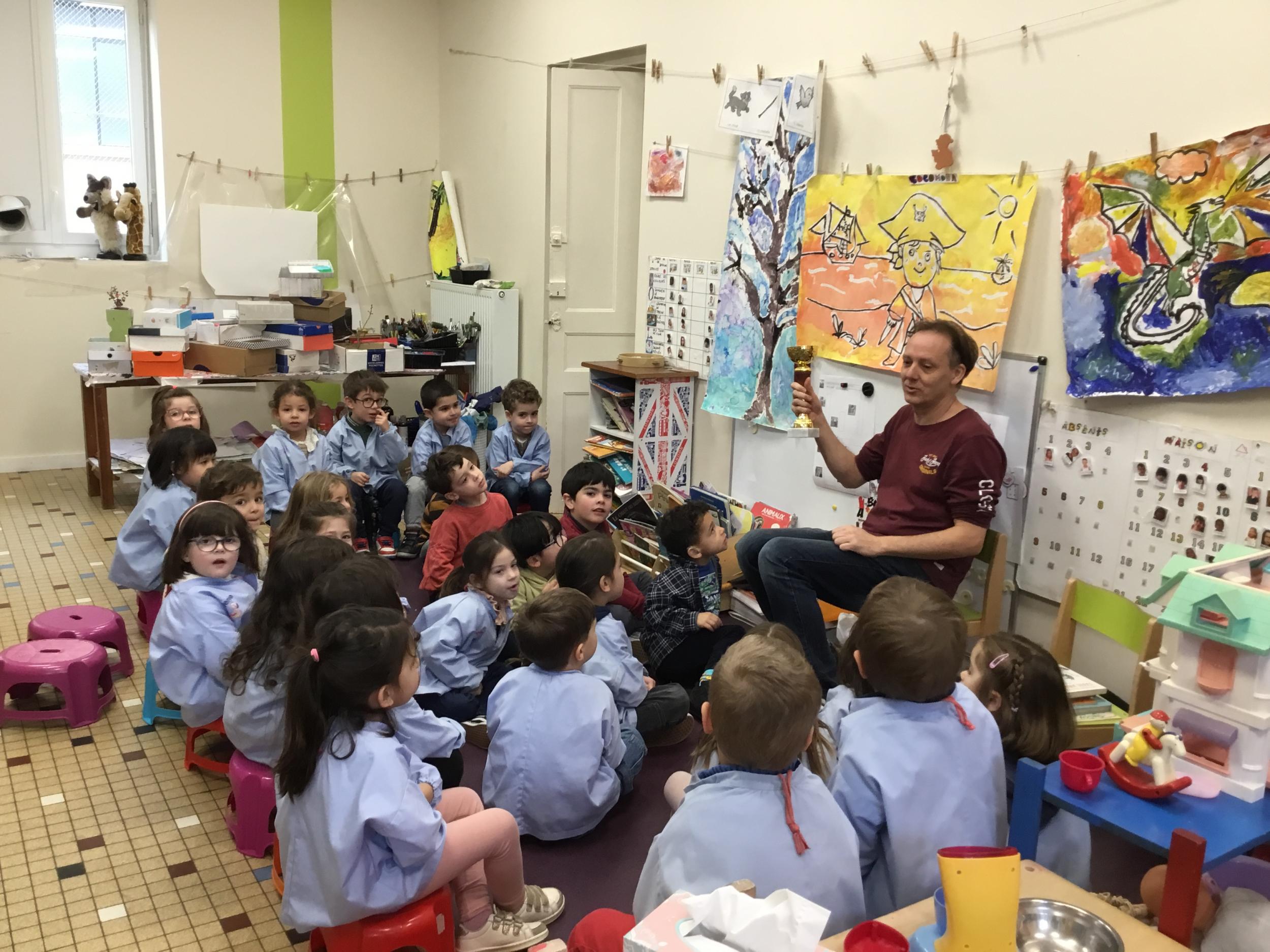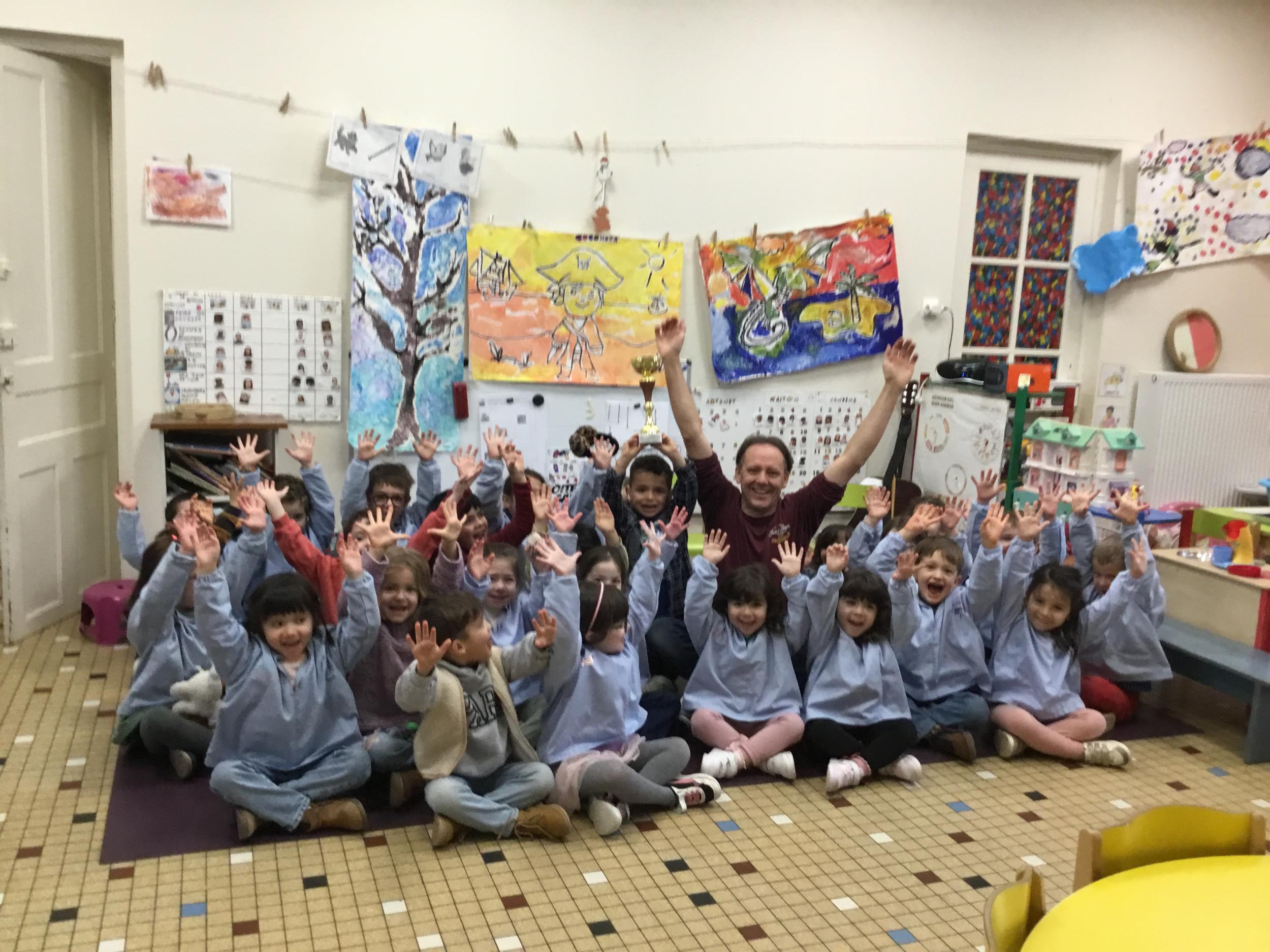 Petite et moyenne section 10/02/2025 La semaine dernière, les élèves ont tellement été sages qu’ils ont gagné la coupe de la sagesse. Tous ont eu un ticket pouce vert. Ils étaient fiers de tenir la coupe et d’être des champions ! Je les félicite, c’est très bien ! ,