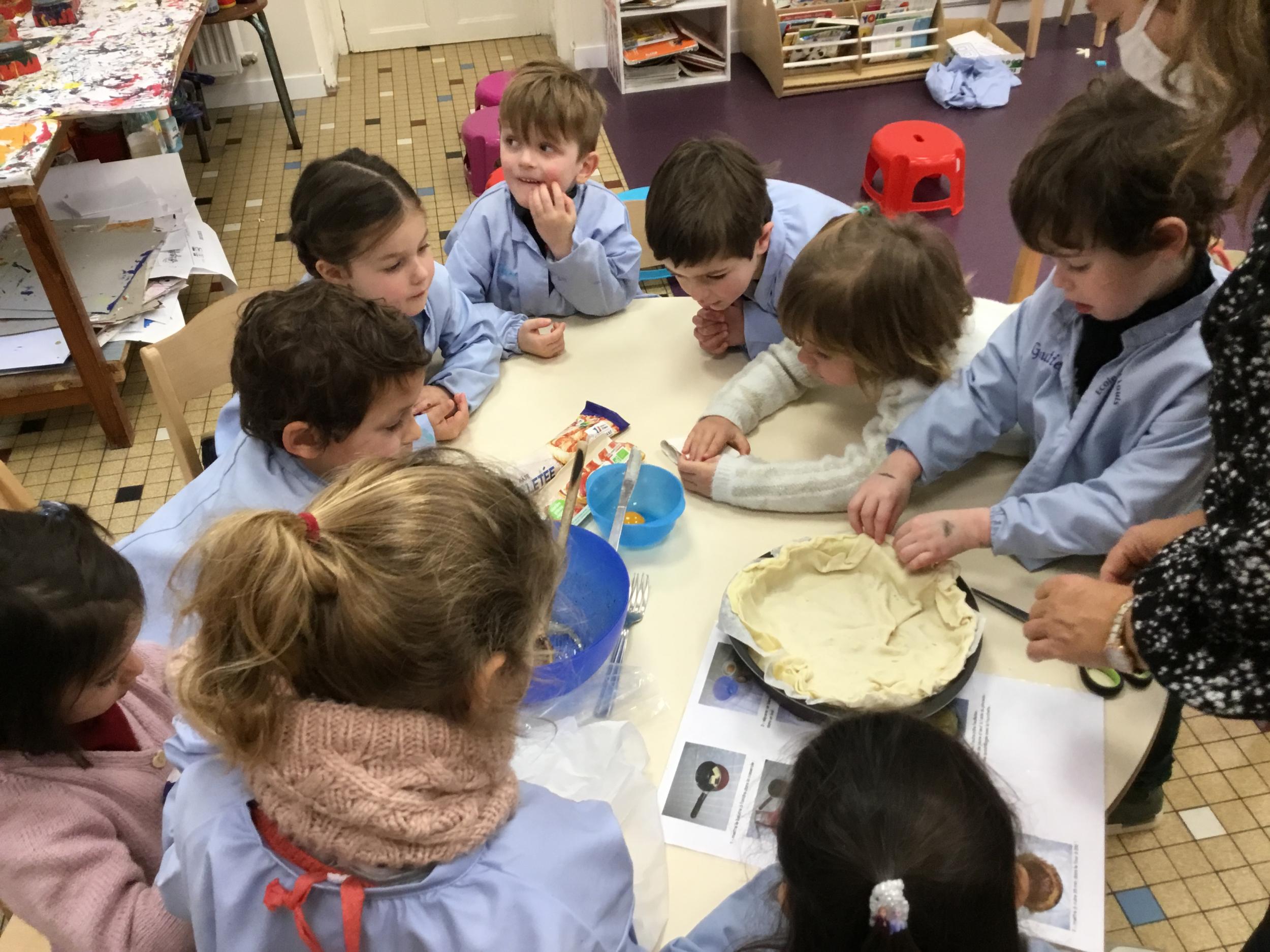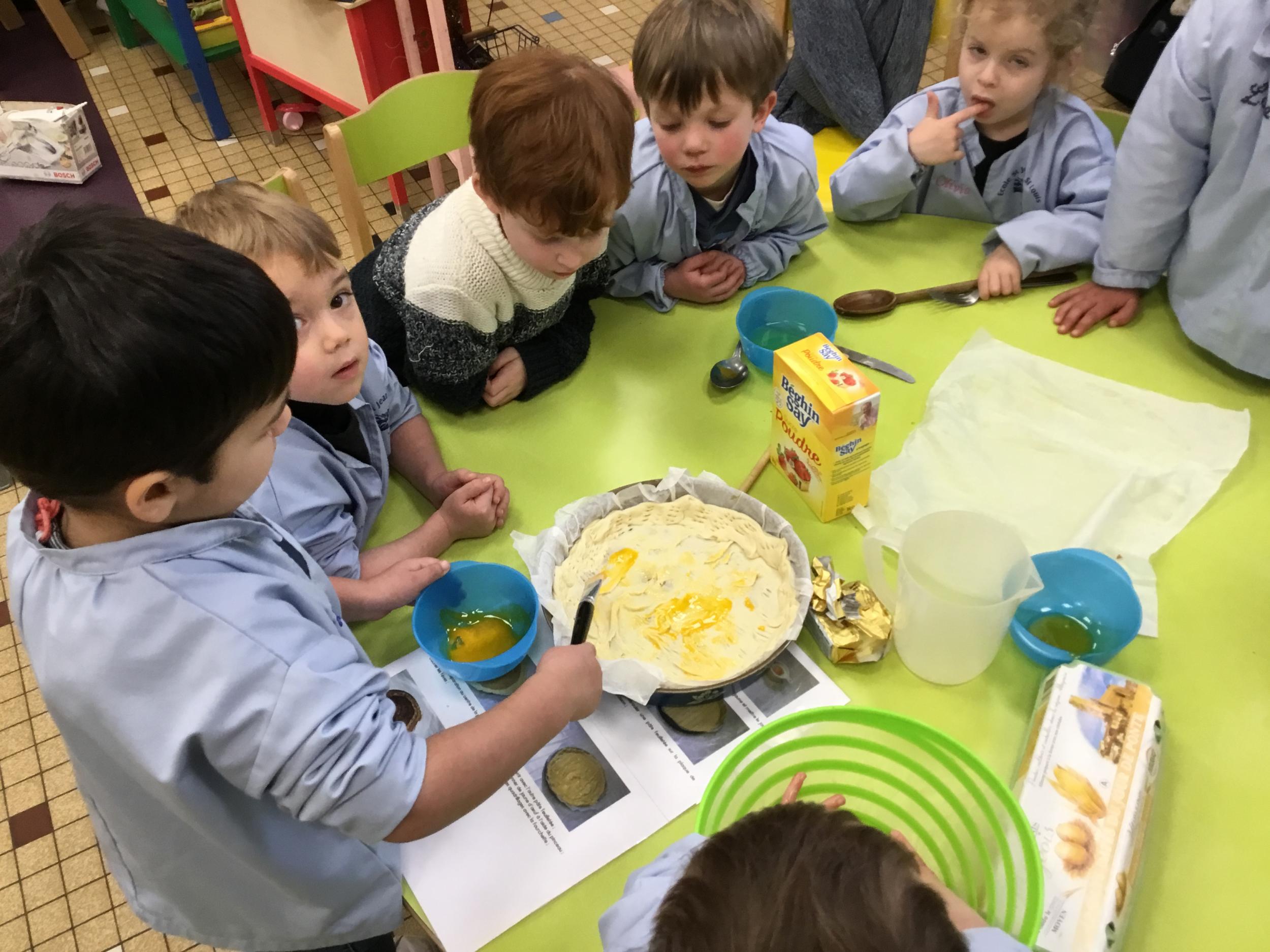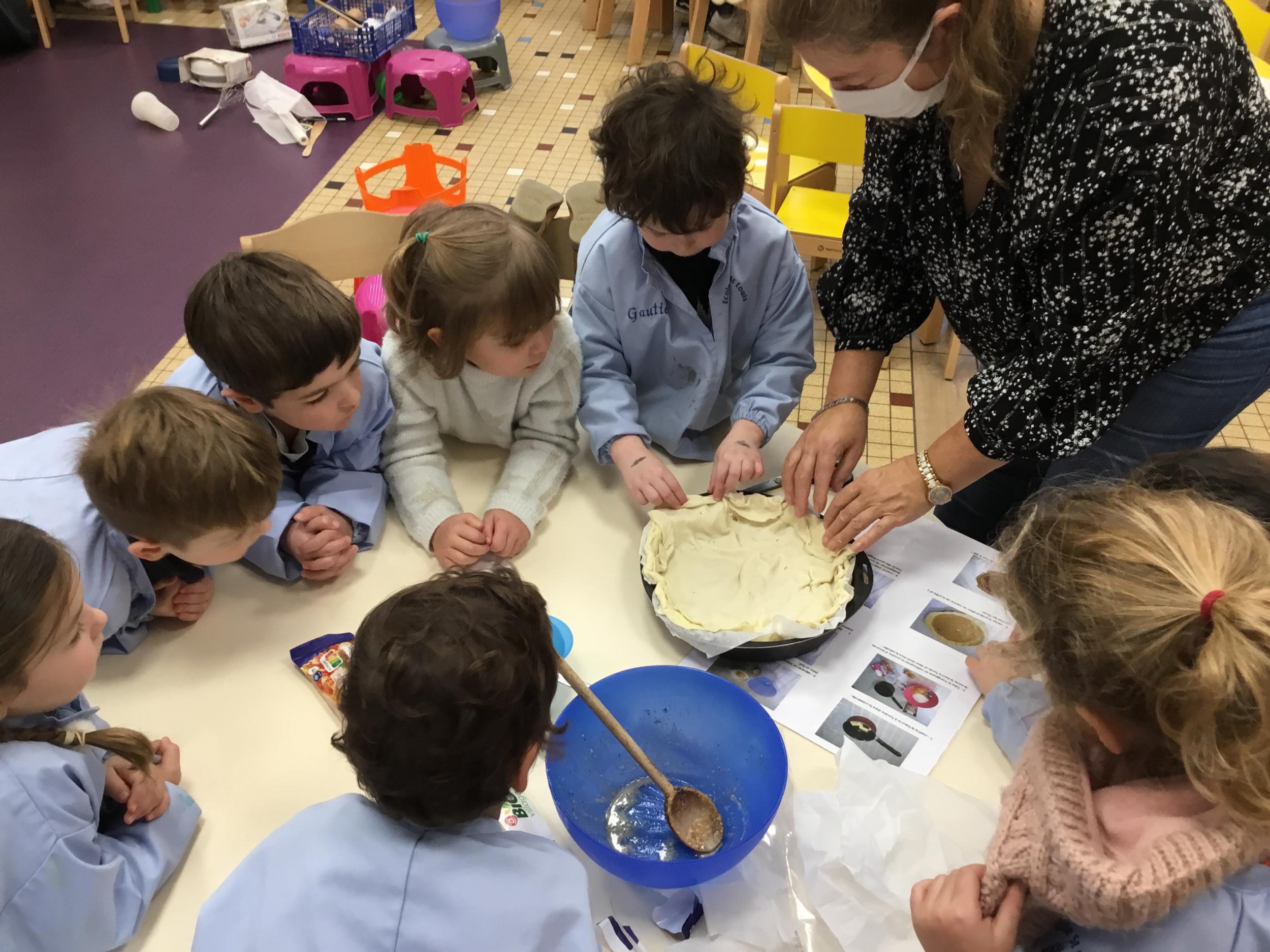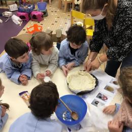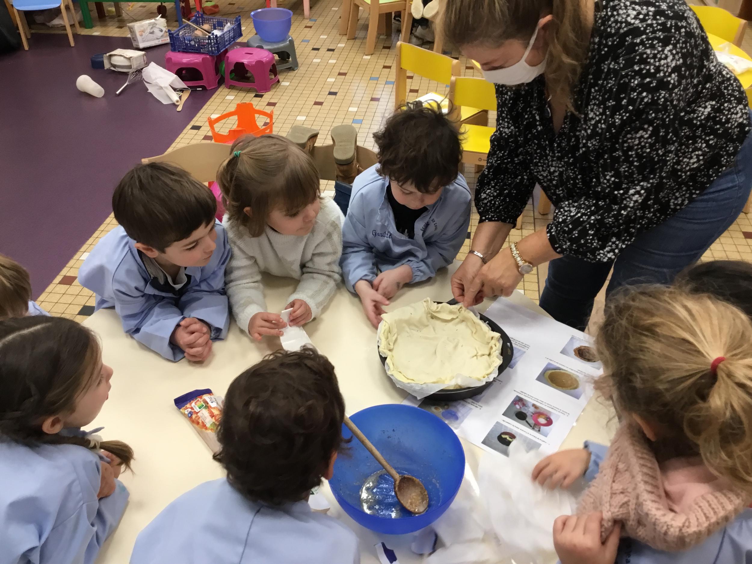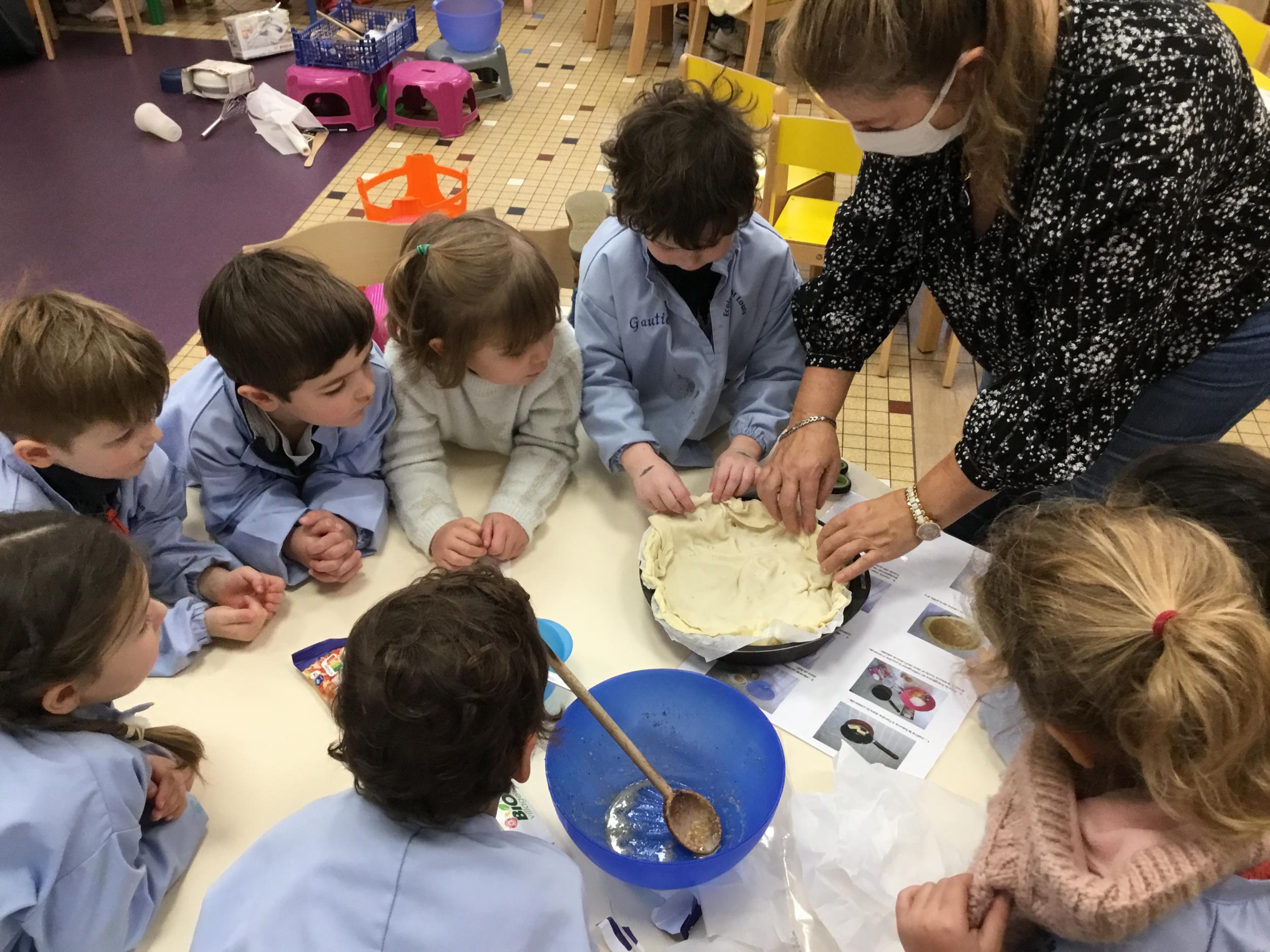 Petite et moyenne section 14/01/2022 Nous avons confectionné des galettes en vue de fêter les anniversaires de Lucie Paul et Inès Jeudi 13 Janvier. Nous nous sommes bien régalés le lendemain.