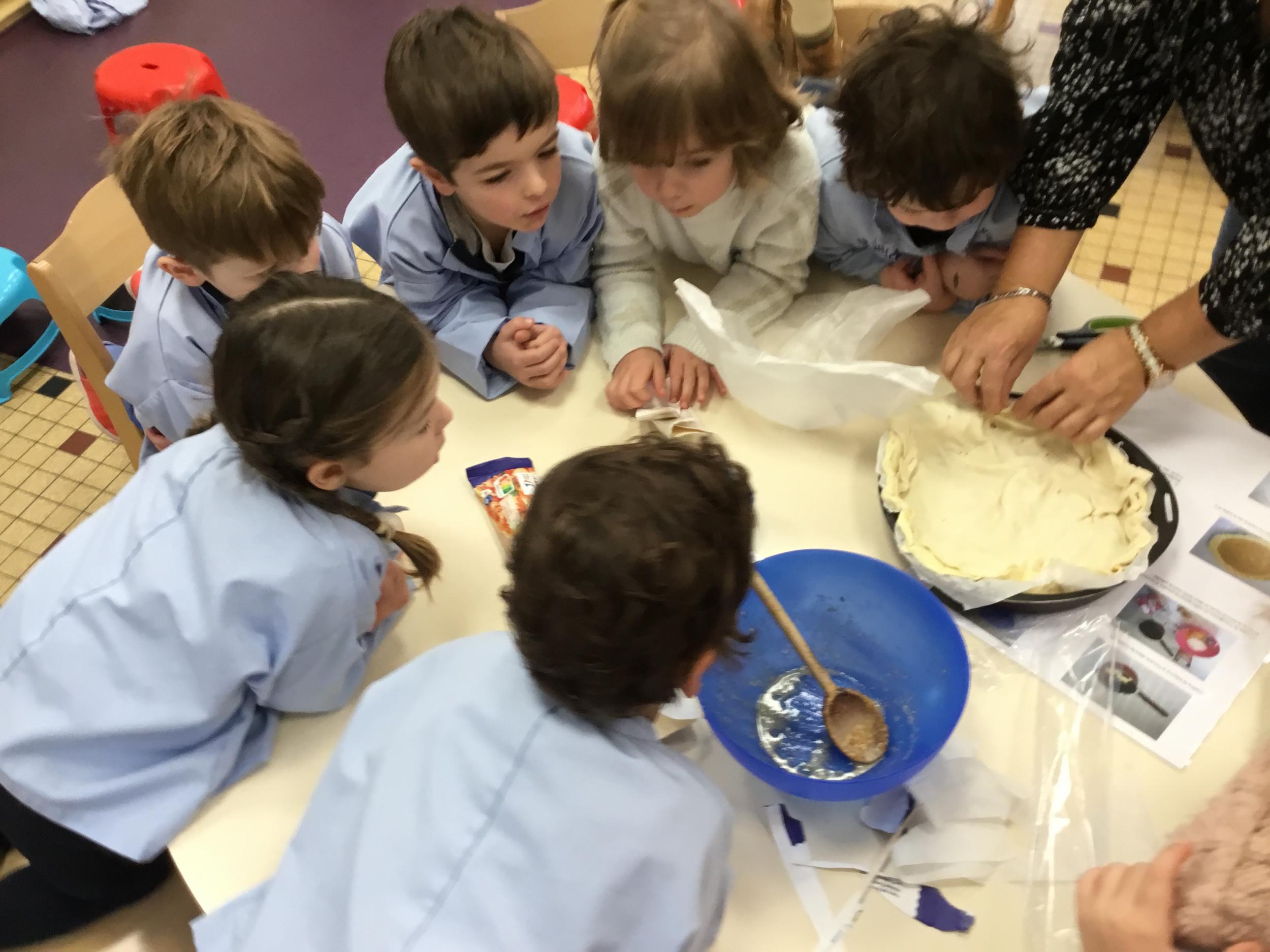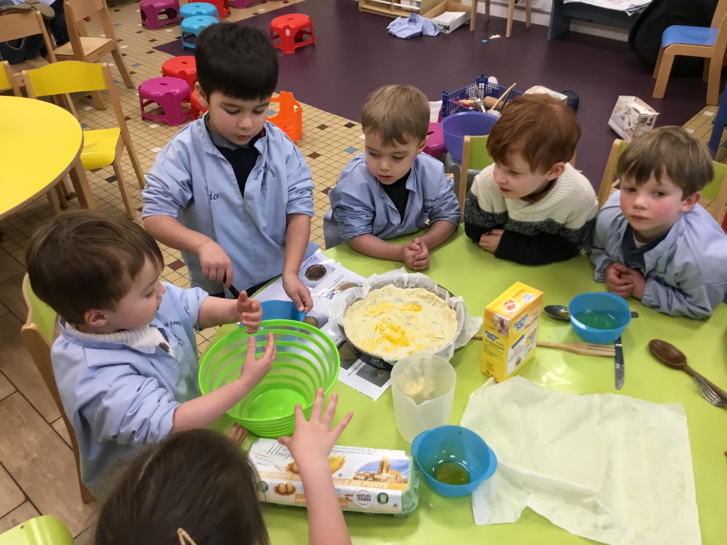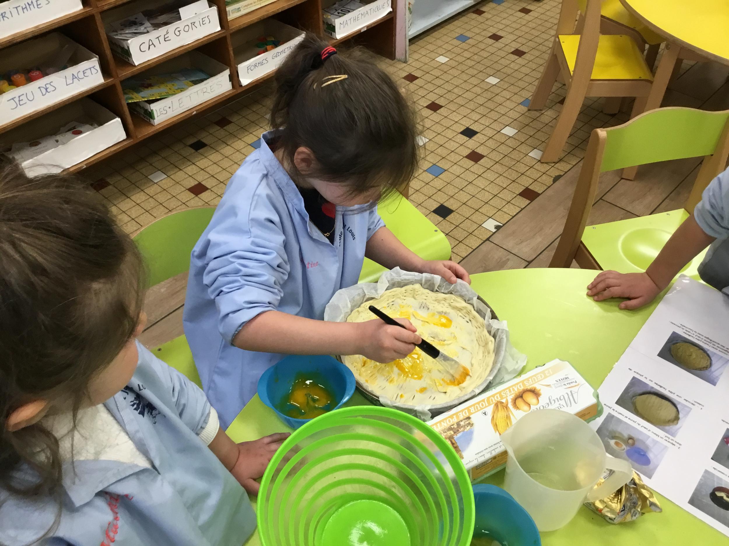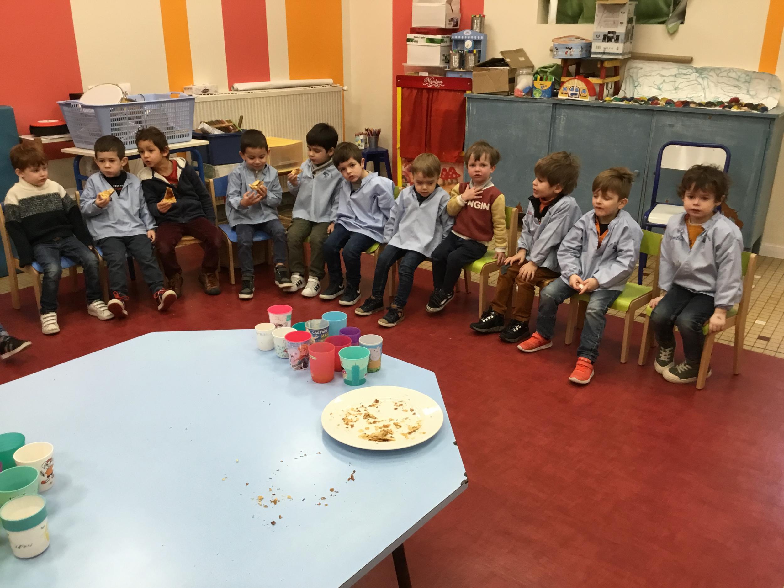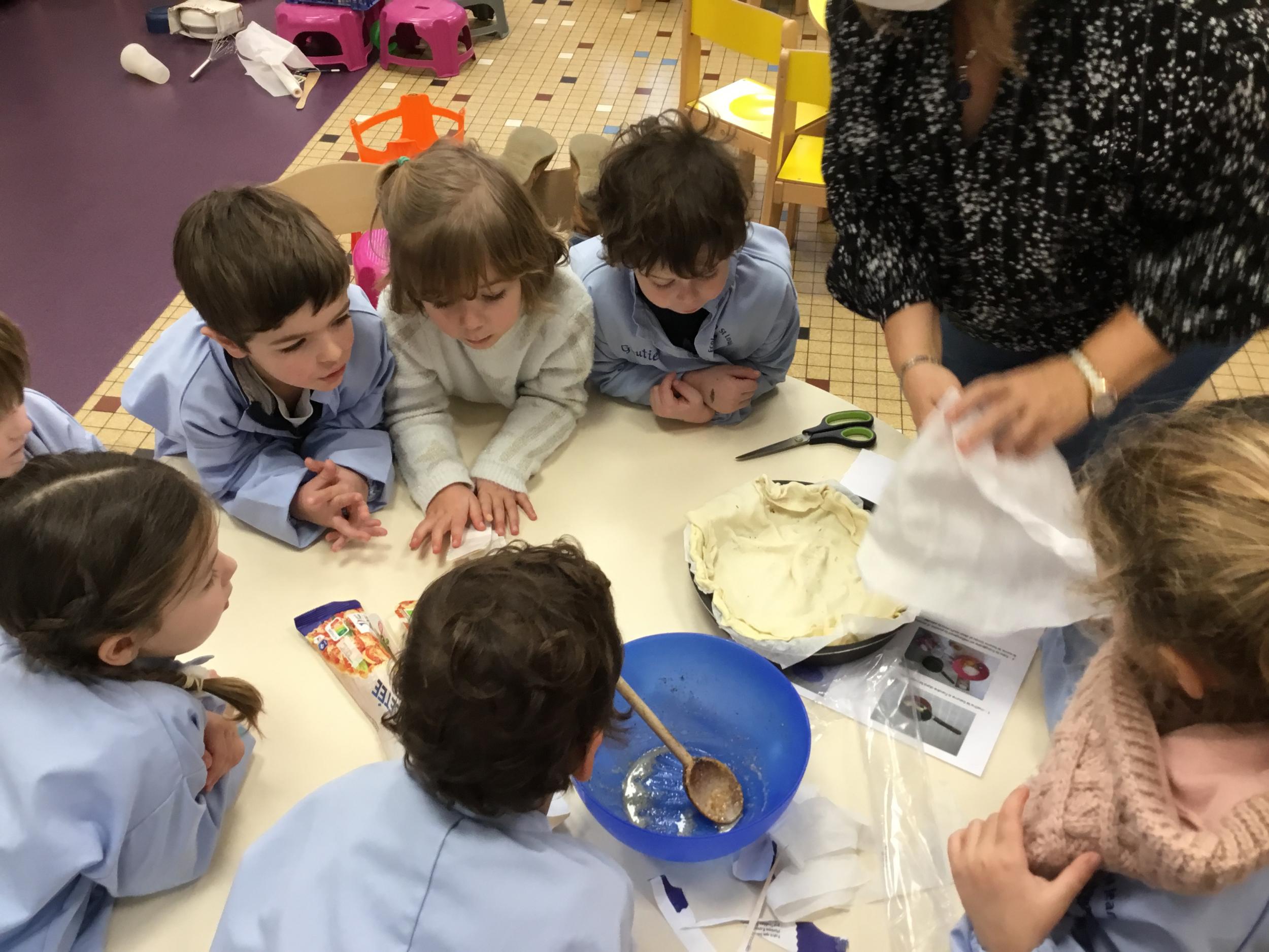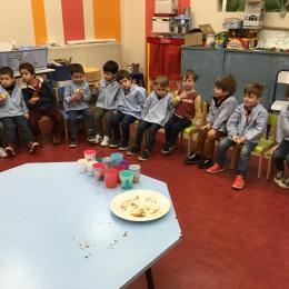 Petite et moyenne section 14/01/2022 Nous avons confectionné des galettes en vue de fêter les anniversaires de Lucie Paul et Inès Jeudi 13 Janvier. Nous nous sommes bien régalés le lendemain.