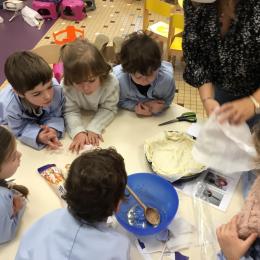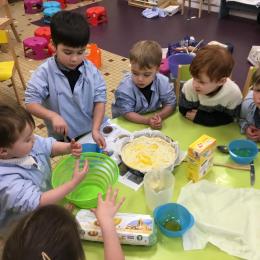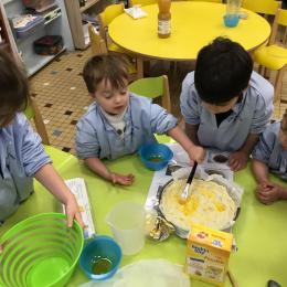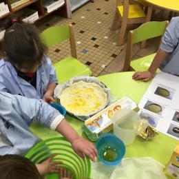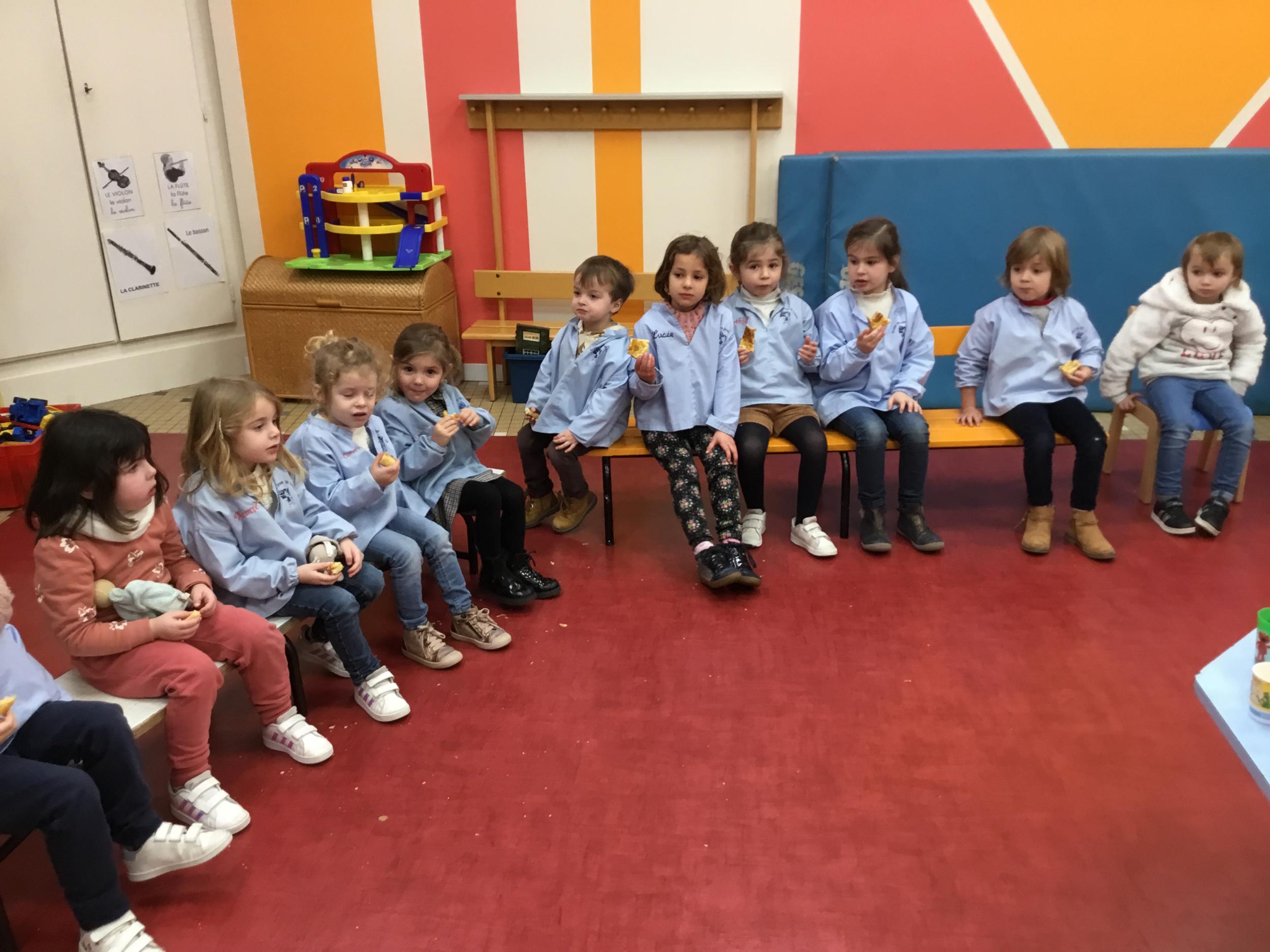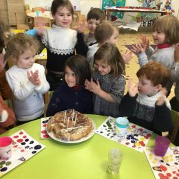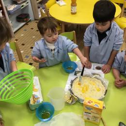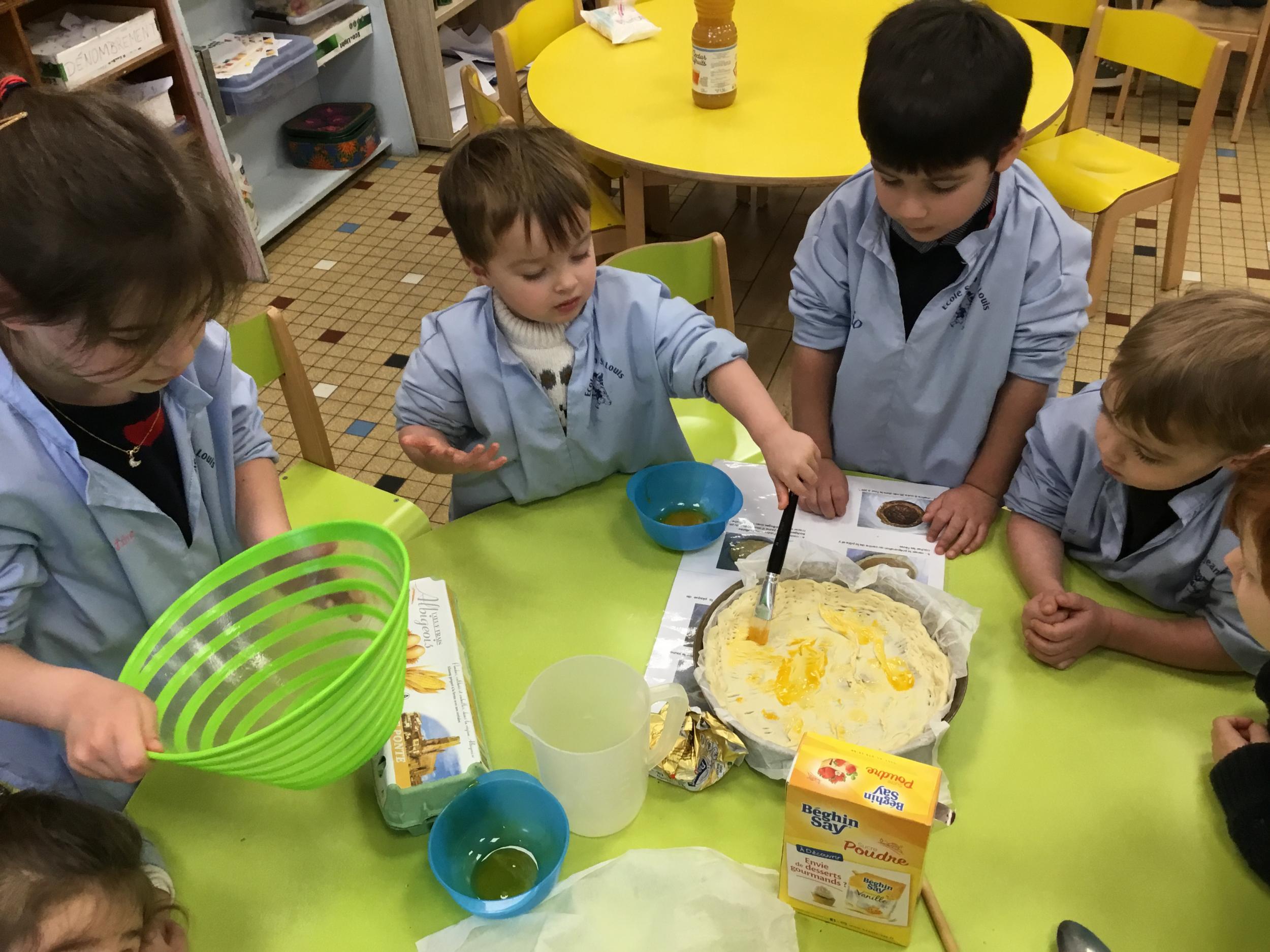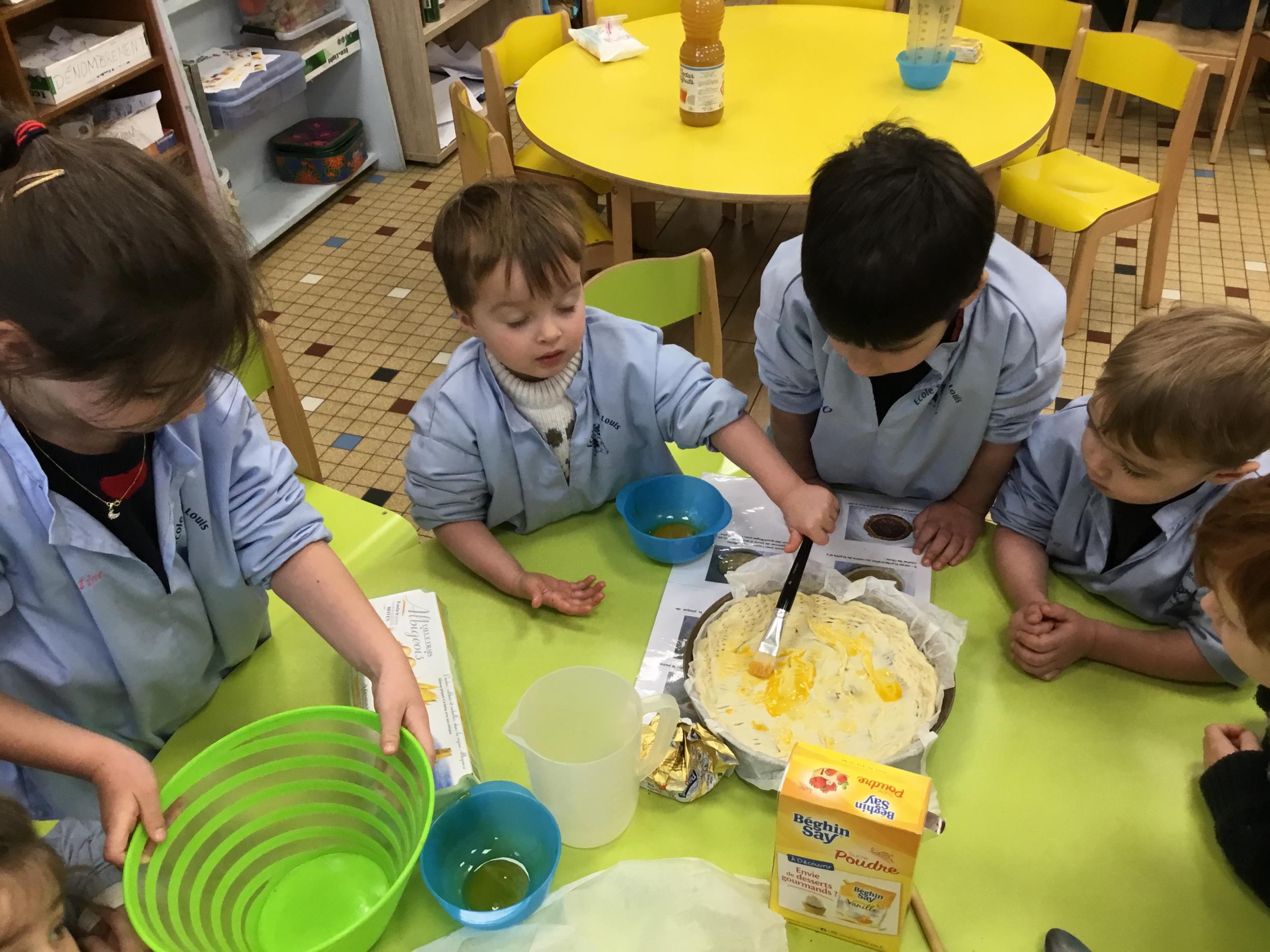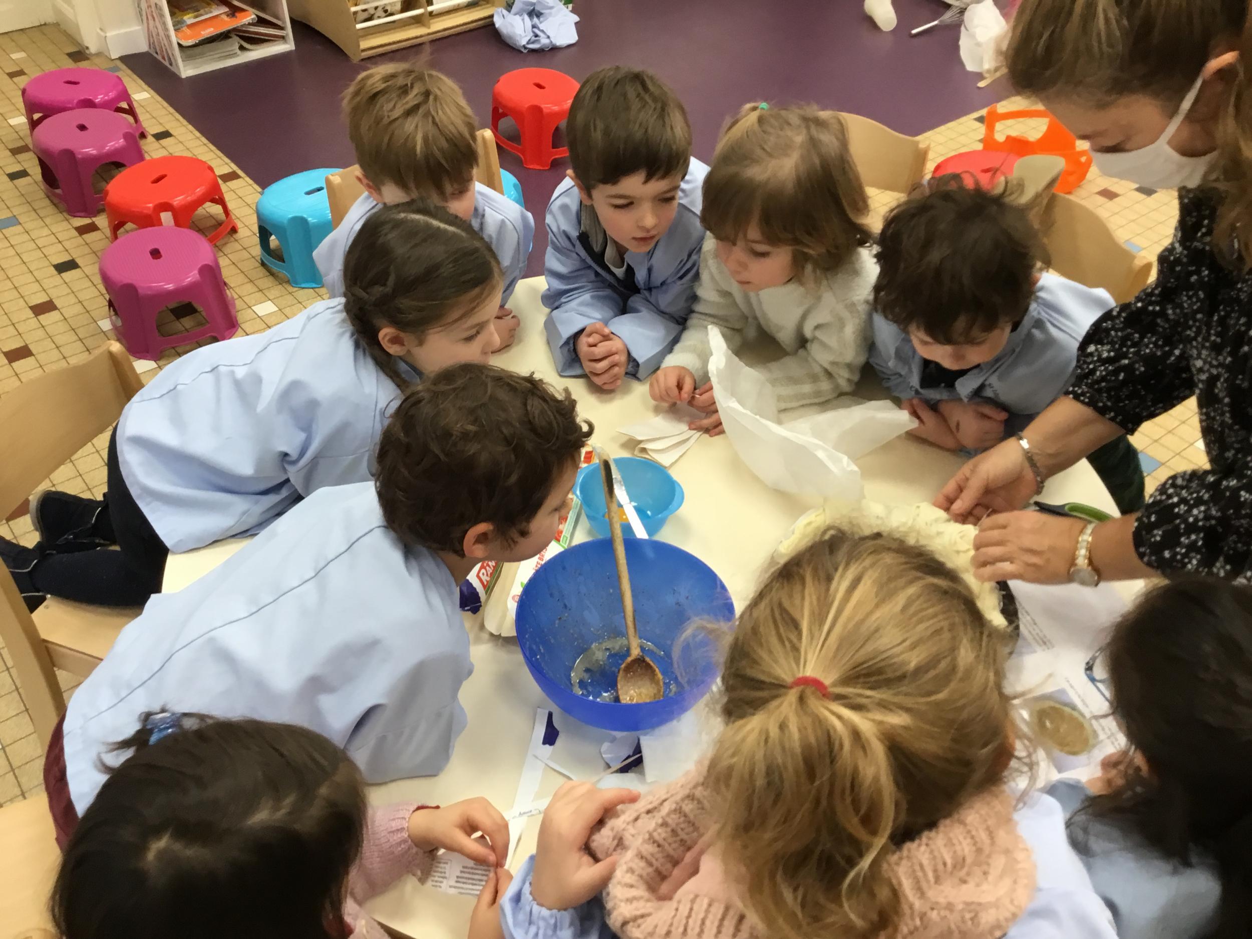 Petite et moyenne section 14/01/2022 Nous avons confectionné des galettes en vue de fêter les anniversaires de Lucie Paul et Inès Jeudi 13 Janvier. Nous nous sommes bien régalés le lendemain.