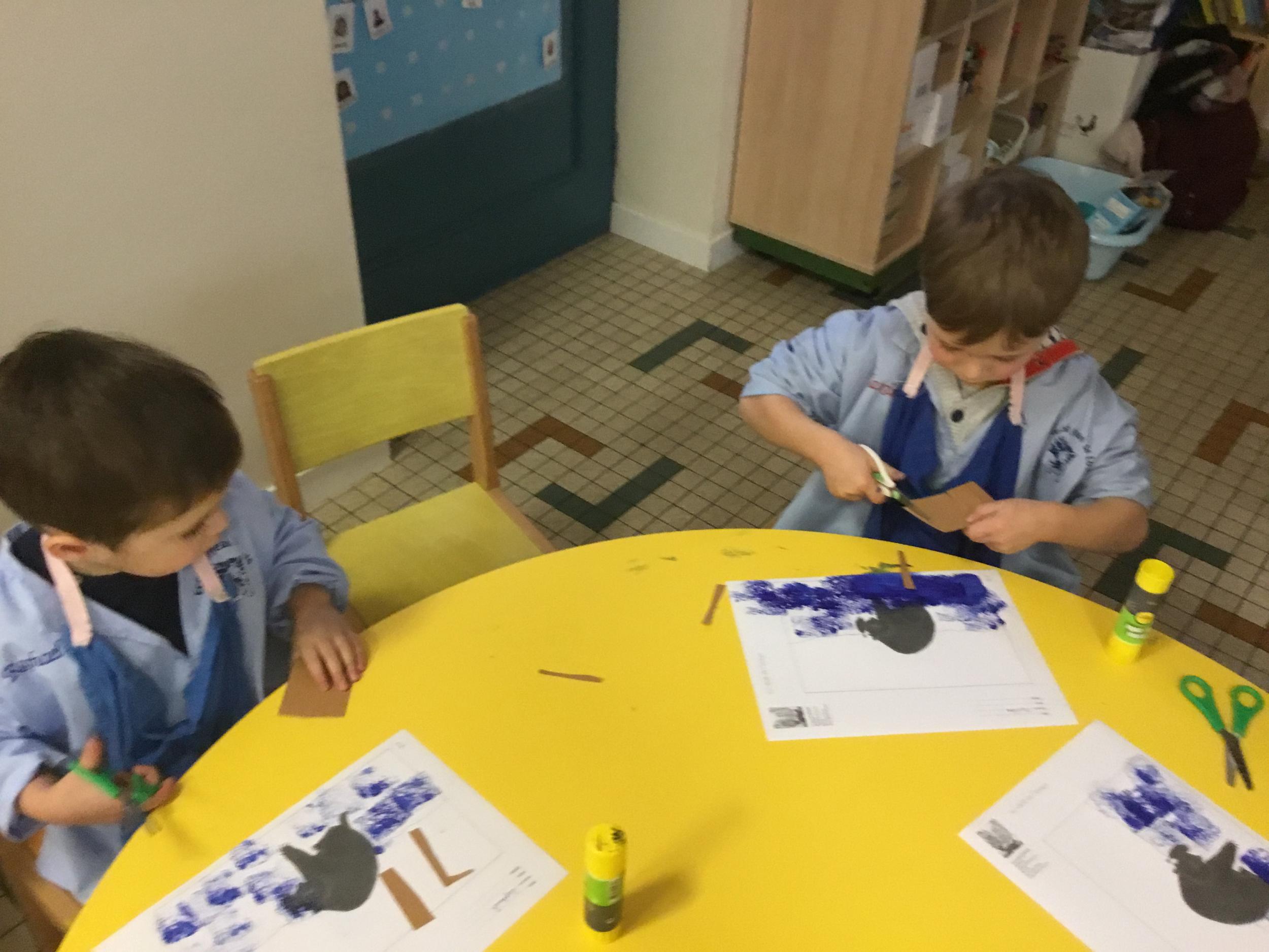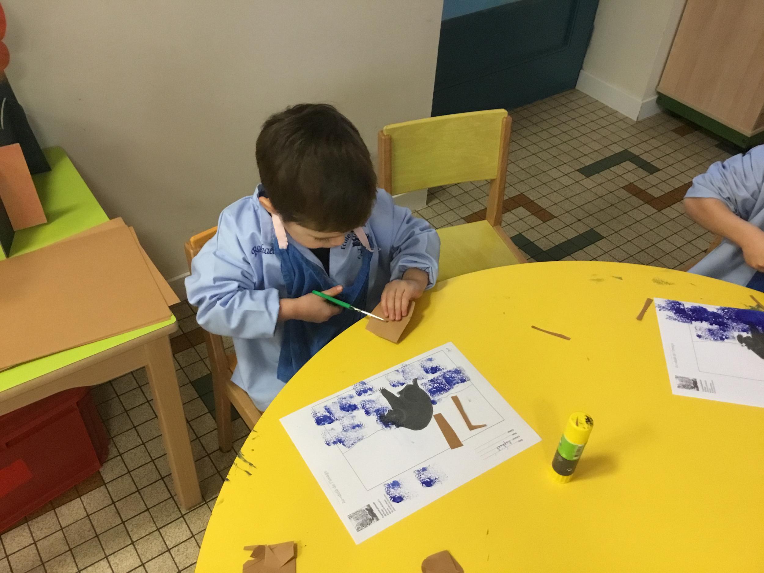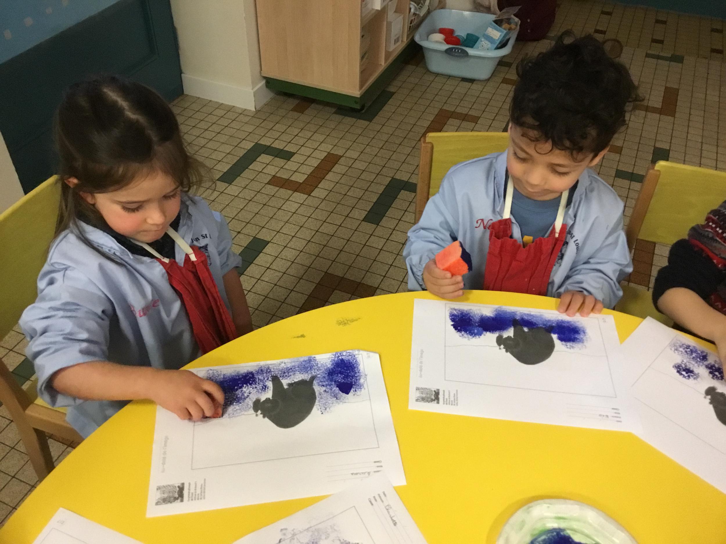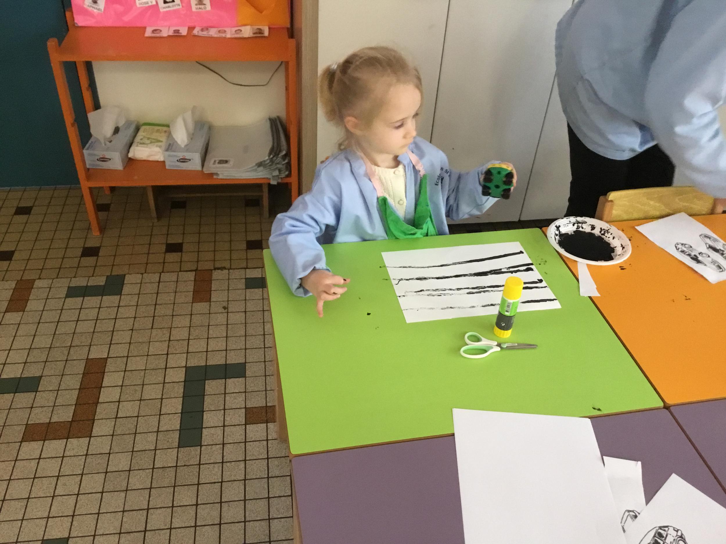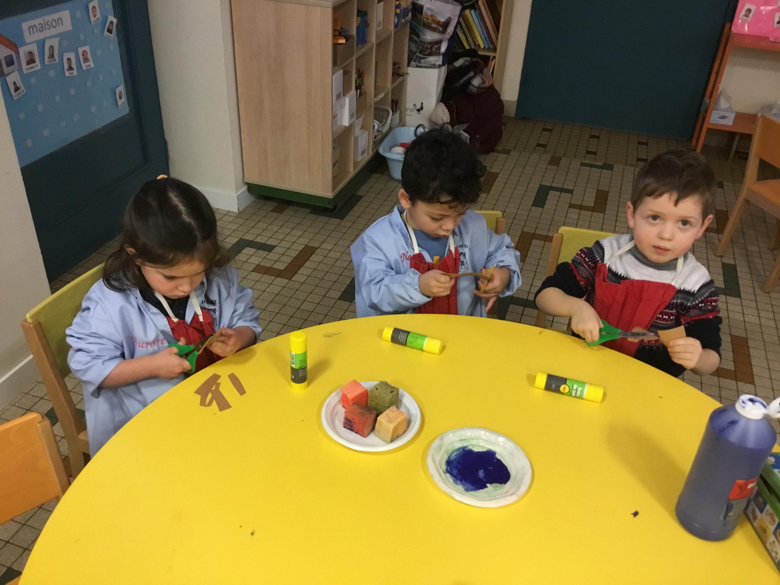 Cette semaine nous avons continué à travailler sur l’album « La grande glissade », le deuxième album du concours Les « Incos ». En groupe de langage, les élèves ont raconté ce qu’ils ont retenu de l’histoire et ont répondu à un quizz. Puis ils ont illustré un passage de l’histoire en utilisant des éponges pour représenter l’eau de la rivière et découpé des bandes de papier pour représenter les sapins au bord de la rivière. Ce travail plastique s’achèvera par un travail de graphisme pour représenter les branches des sapins.