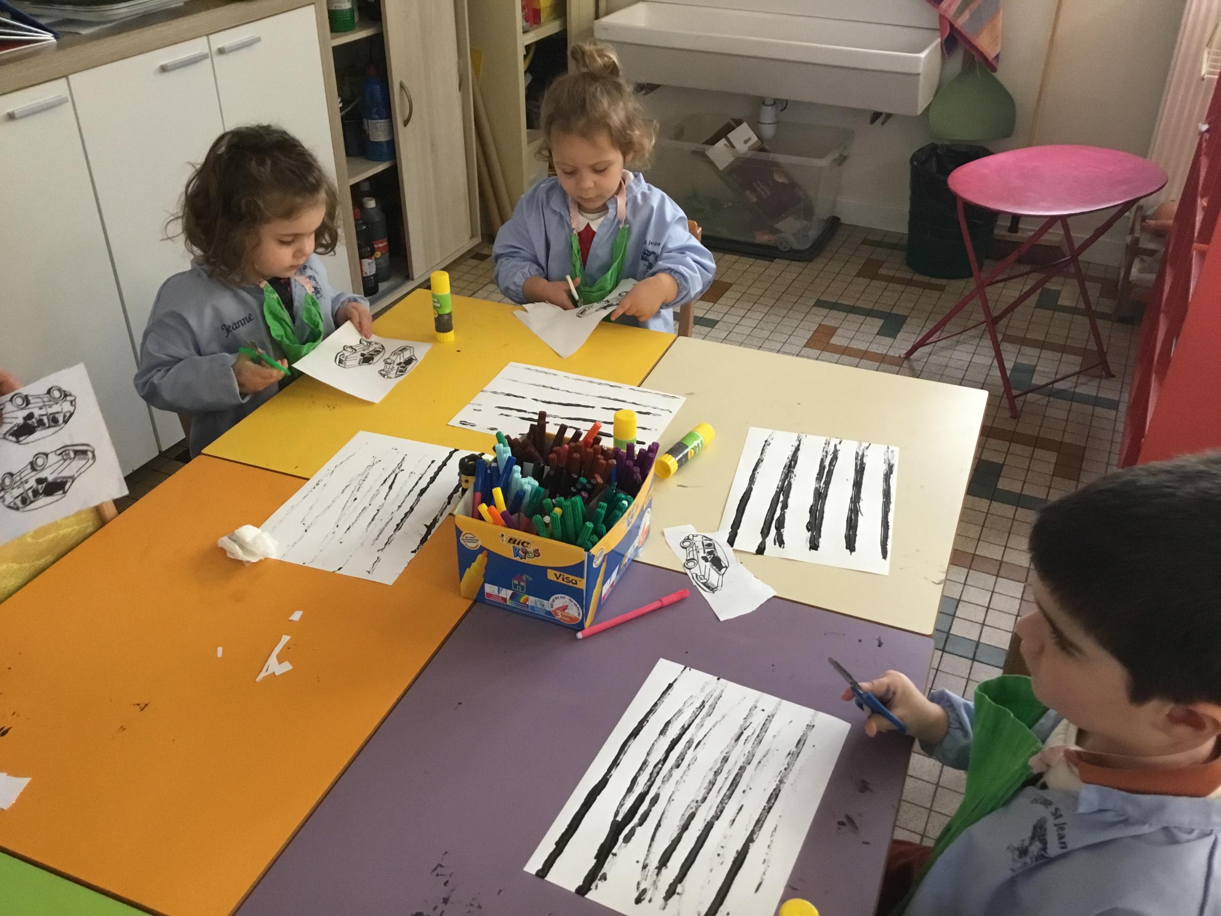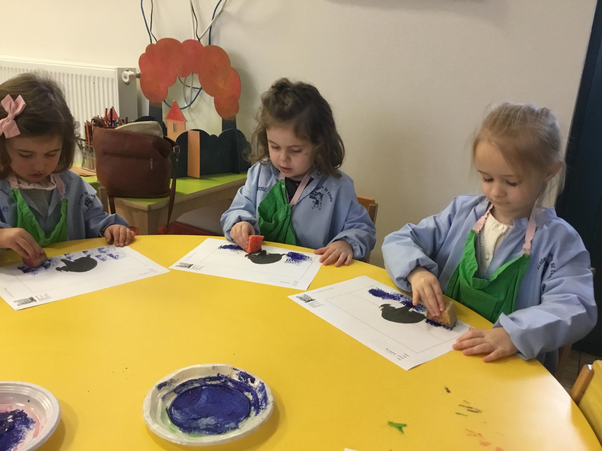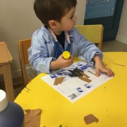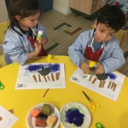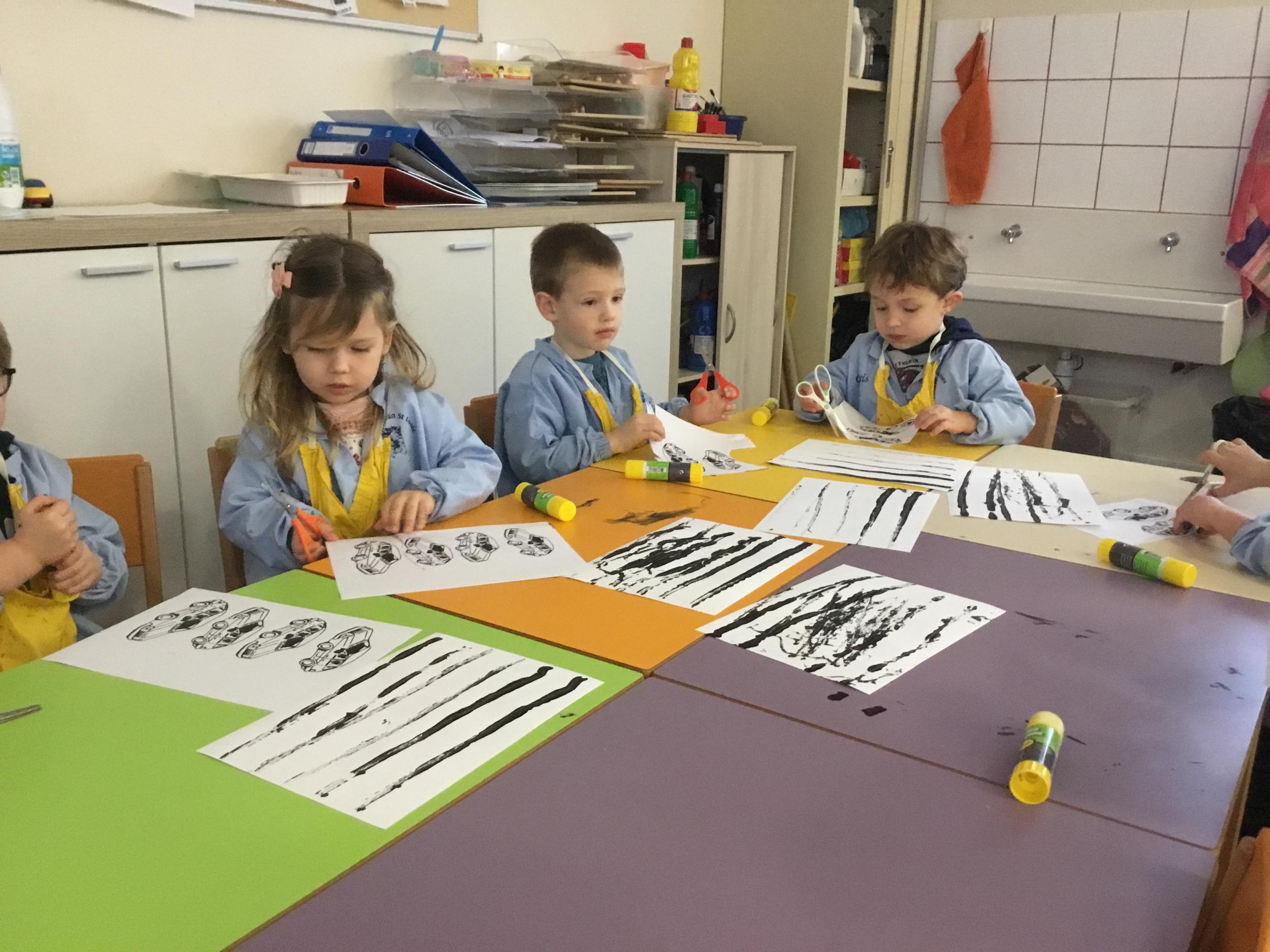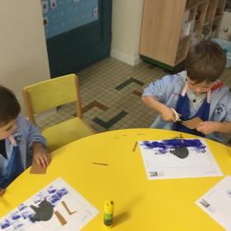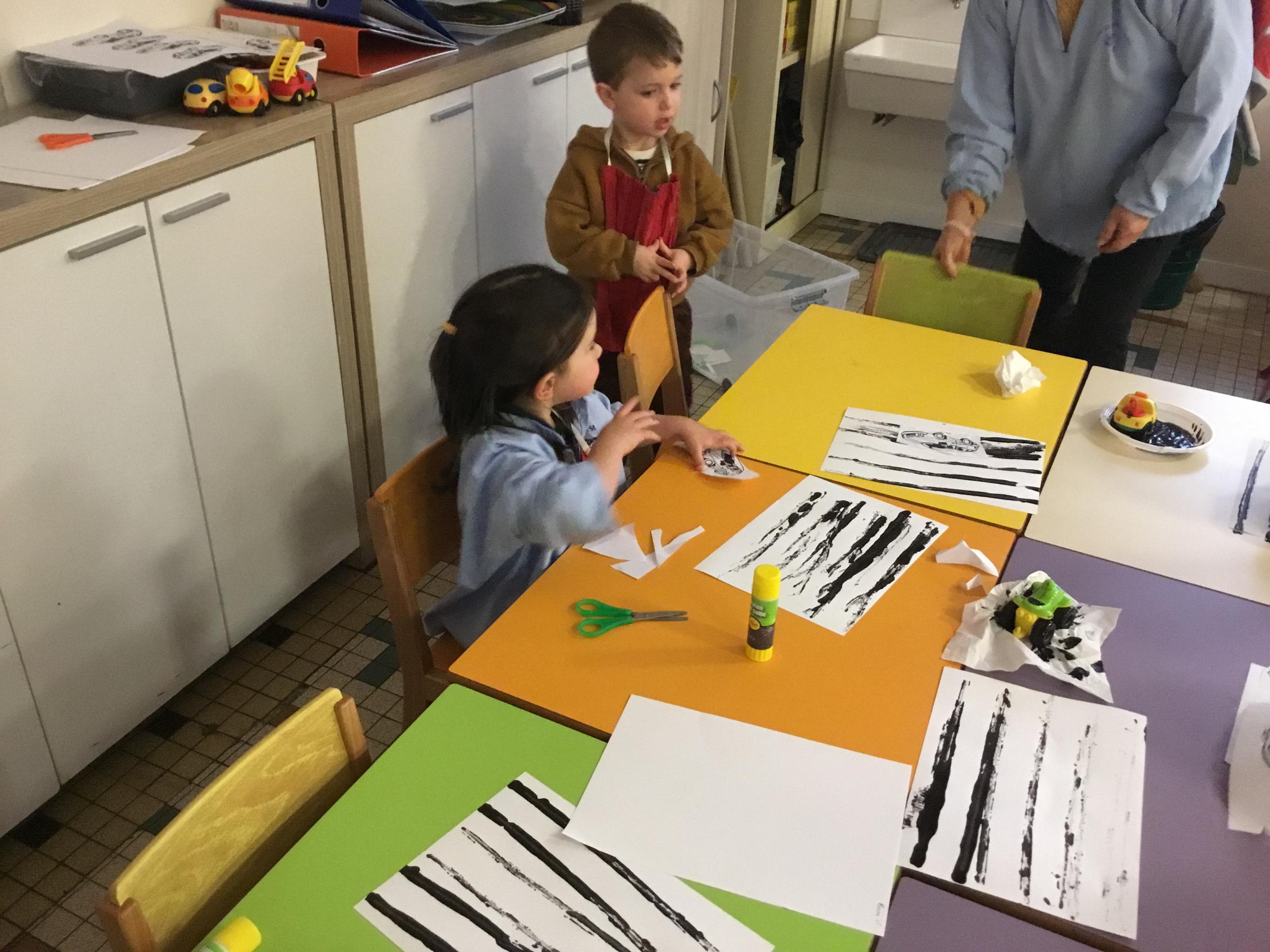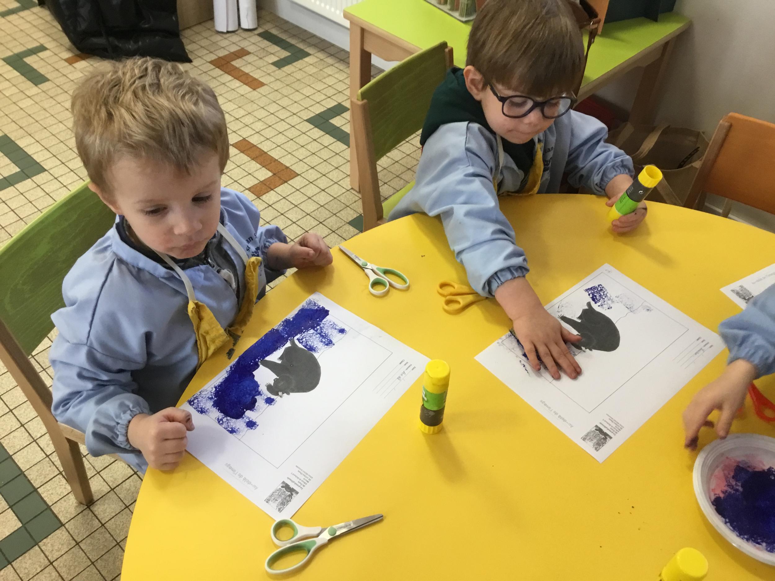 Cette semaine nous avons continué à travailler sur l’album « La grande glissade », le deuxième album du concours Les « Incos ». En groupe de langage, les élèves ont raconté ce qu’ils ont retenu de l’histoire et ont répondu à un quizz. Puis ils ont illustré un passage de l’histoire en utilisant des éponges pour représenter l’eau de la rivière et découpé des bandes de papier pour représenter les sapins au bord de la rivière. Ce travail plastique s’achèvera par un travail de graphisme pour représenter les branches des sapins.