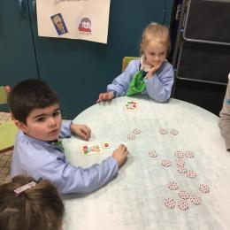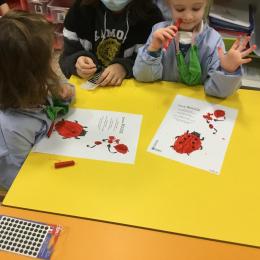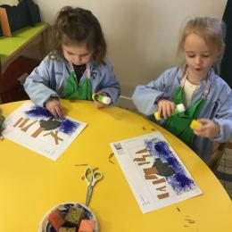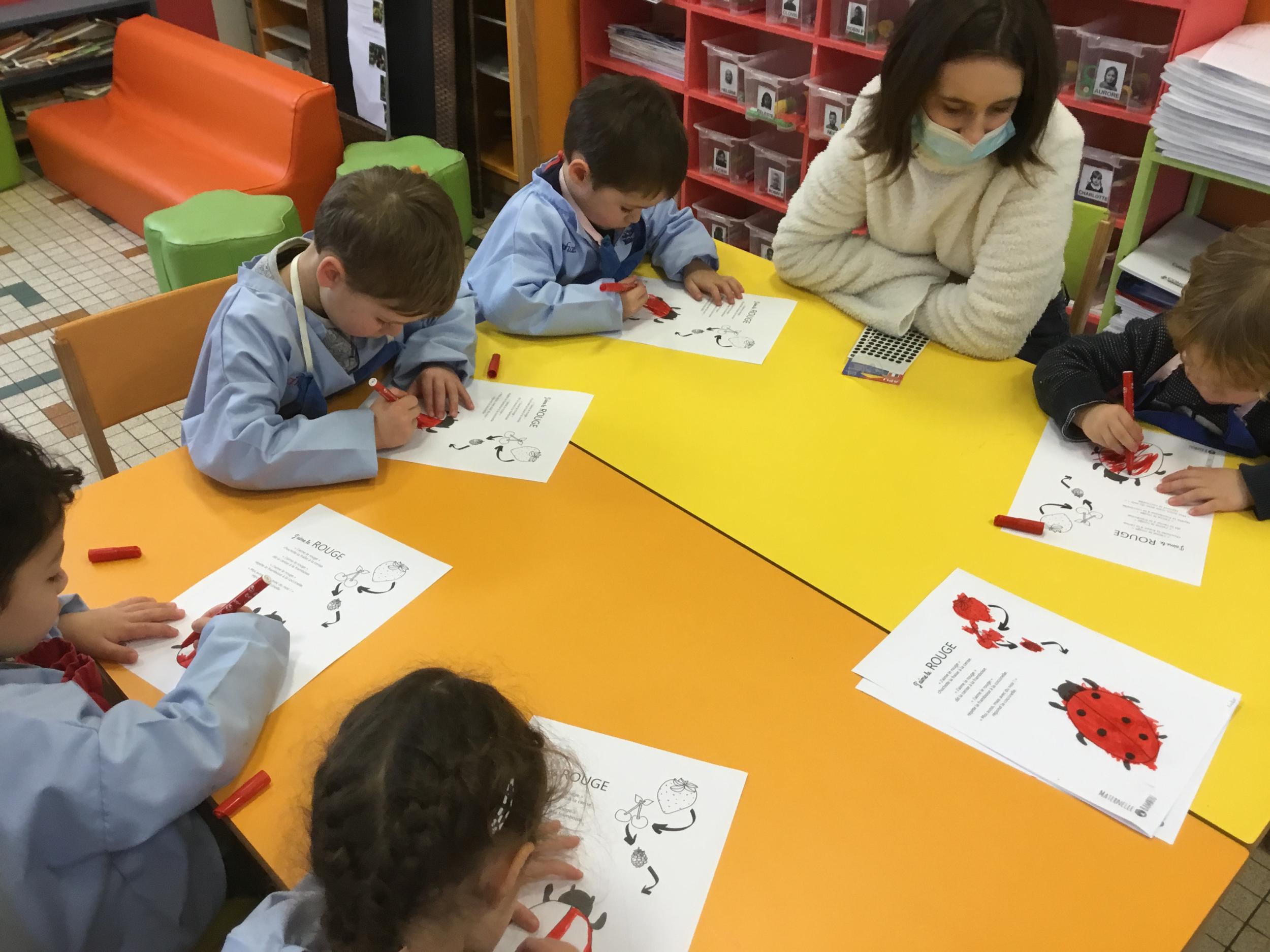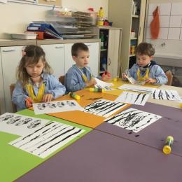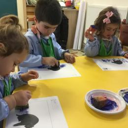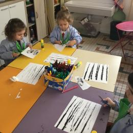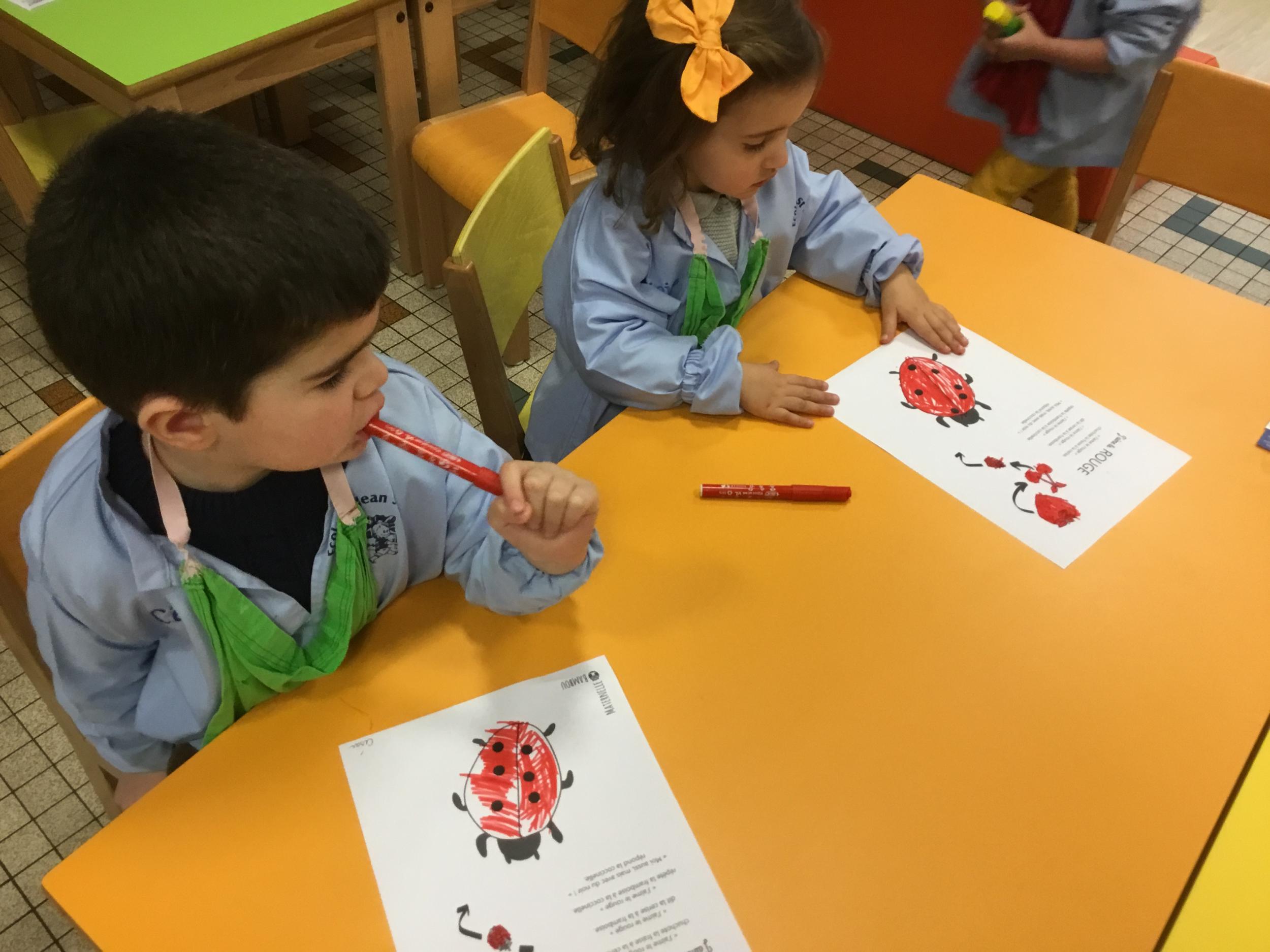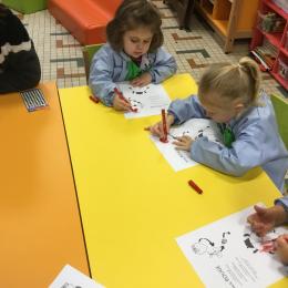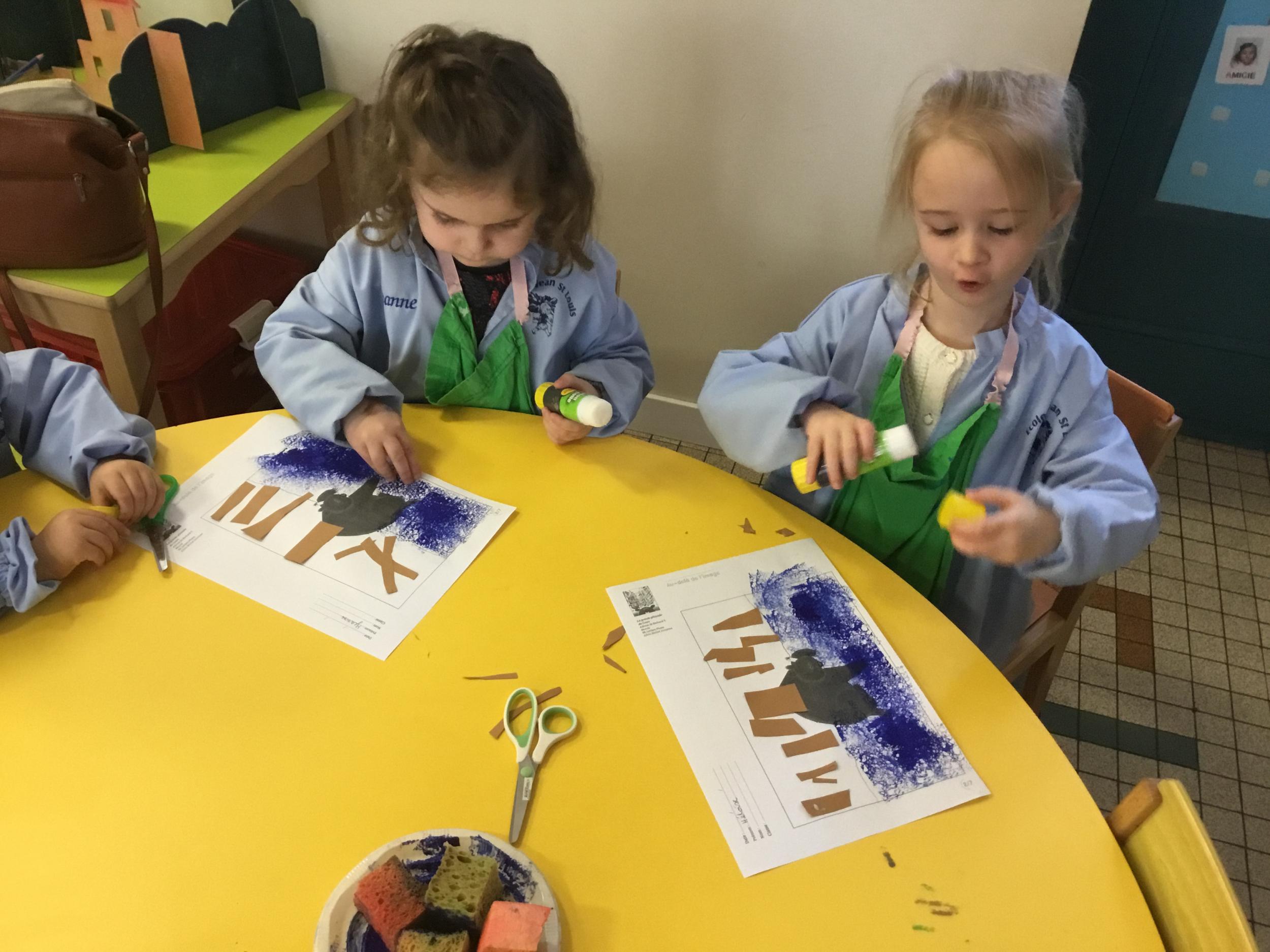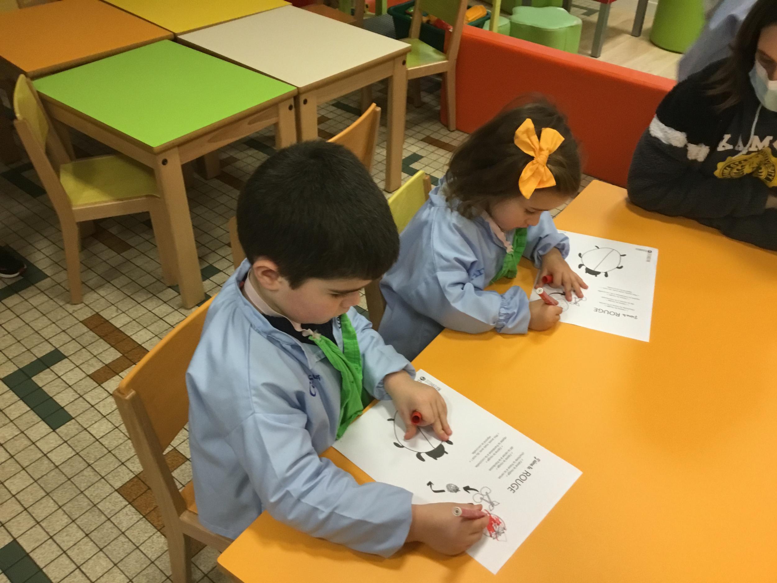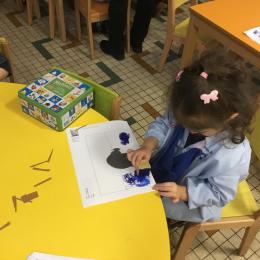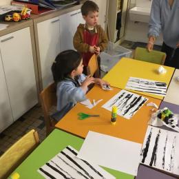 Cette semaine nous avons continué à travailler sur l’album « La grande glissade », le deuxième album du concours Les « Incos ». En groupe de langage, les élèves ont raconté ce qu’ils ont retenu de l’histoire et ont répondu à un quizz. Puis ils ont illustré un passage de l’histoire en utilisant des éponges pour représenter l’eau de la rivière et découpé des bandes de papier pour représenter les sapins au bord de la rivière. Ce travail plastique s’achèvera par un travail de graphisme pour représenter les branches des sapins.