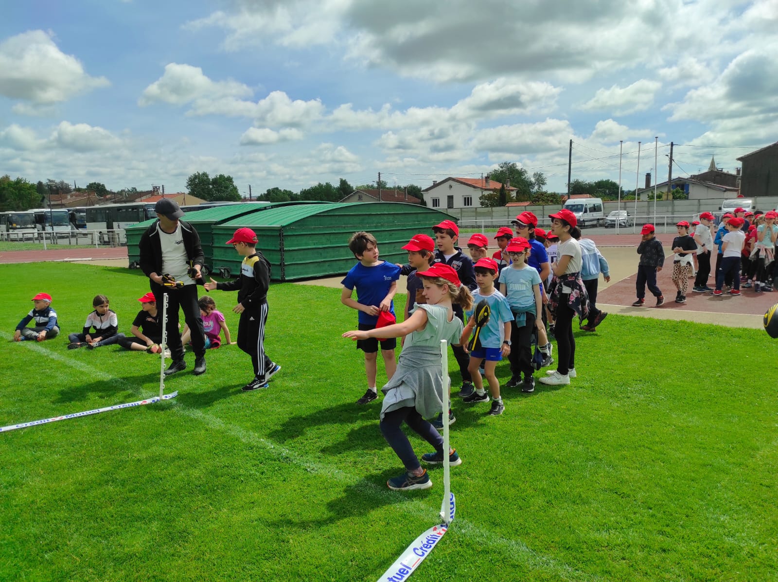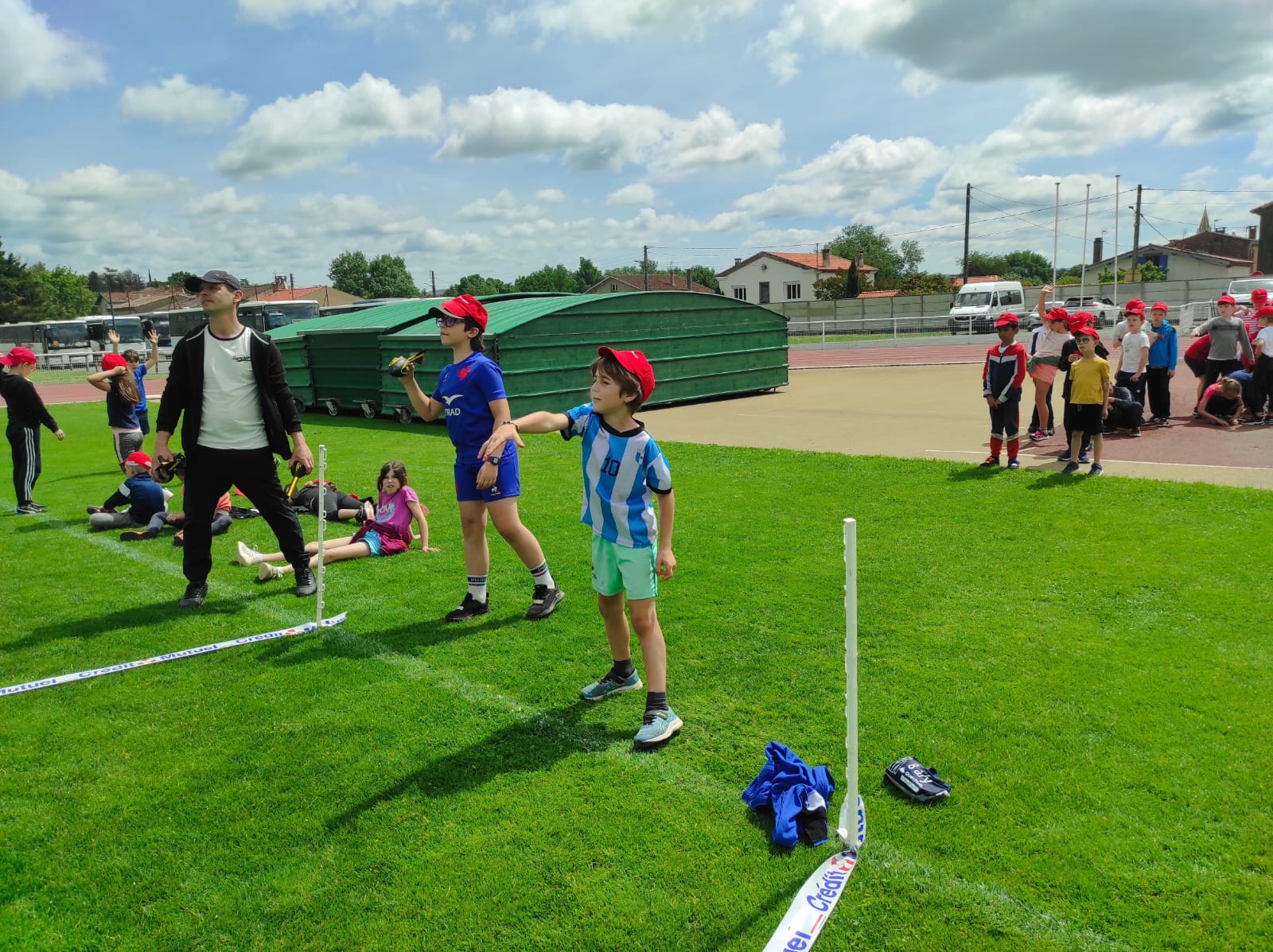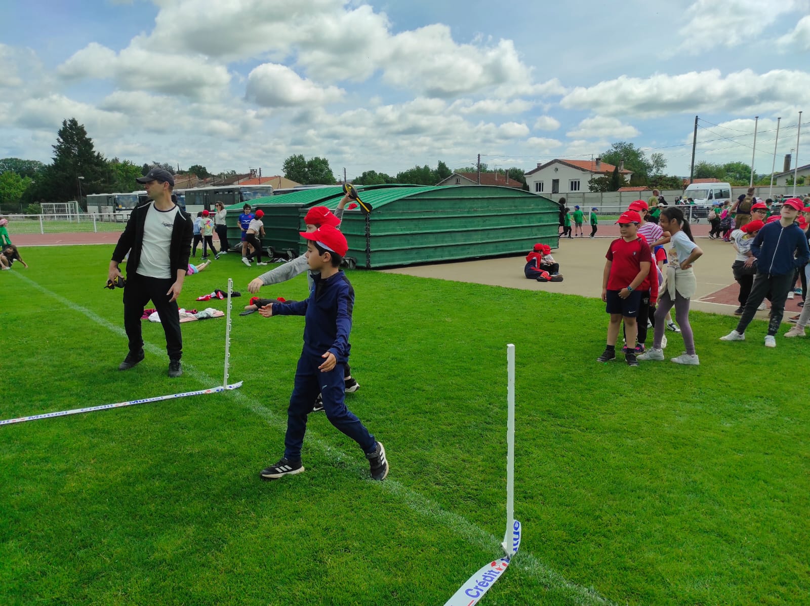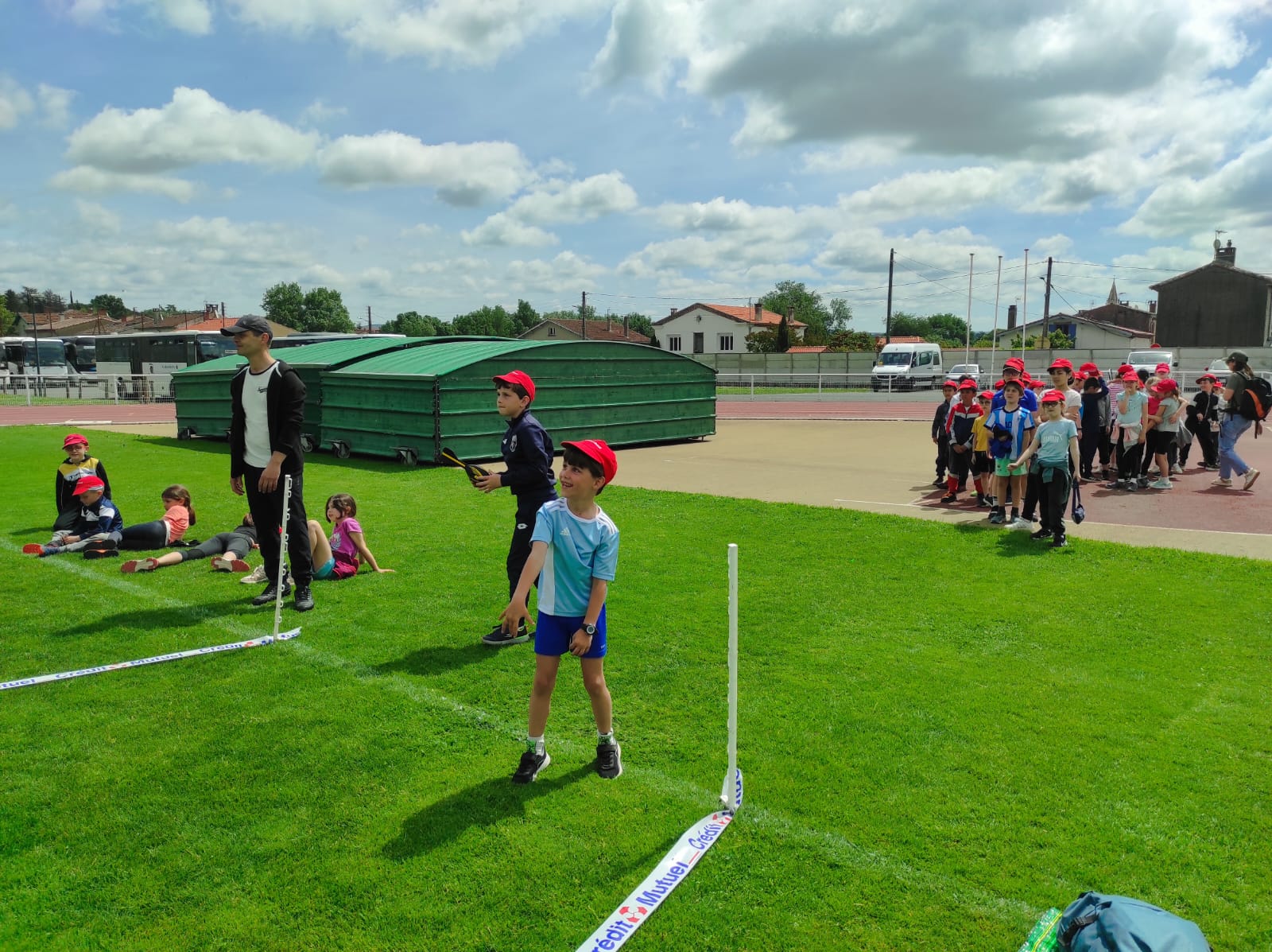 Mardi 28 mai les classes de CP, CE1 et CE2 ont participé à la journée athlétisme organisée par l'UGSEL au stade du Travet. Les élèves ont commencé par le saut en longueur, puis ont continué avec le lancer de vortex. Ensuite, nous avons pique-niqué et les enfants ont participé à la course de demi-fond, ce n'était pas facile après le repas...Ils se sont enfin affrontés sur une épreuve de sprint. A la fin de la journée, ils étaient tous très heureux, et fiers de ce qu'ils avaient fait mais pas autant que leur maîtresse et que les parents présents.