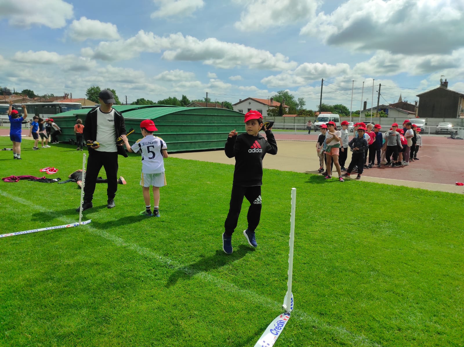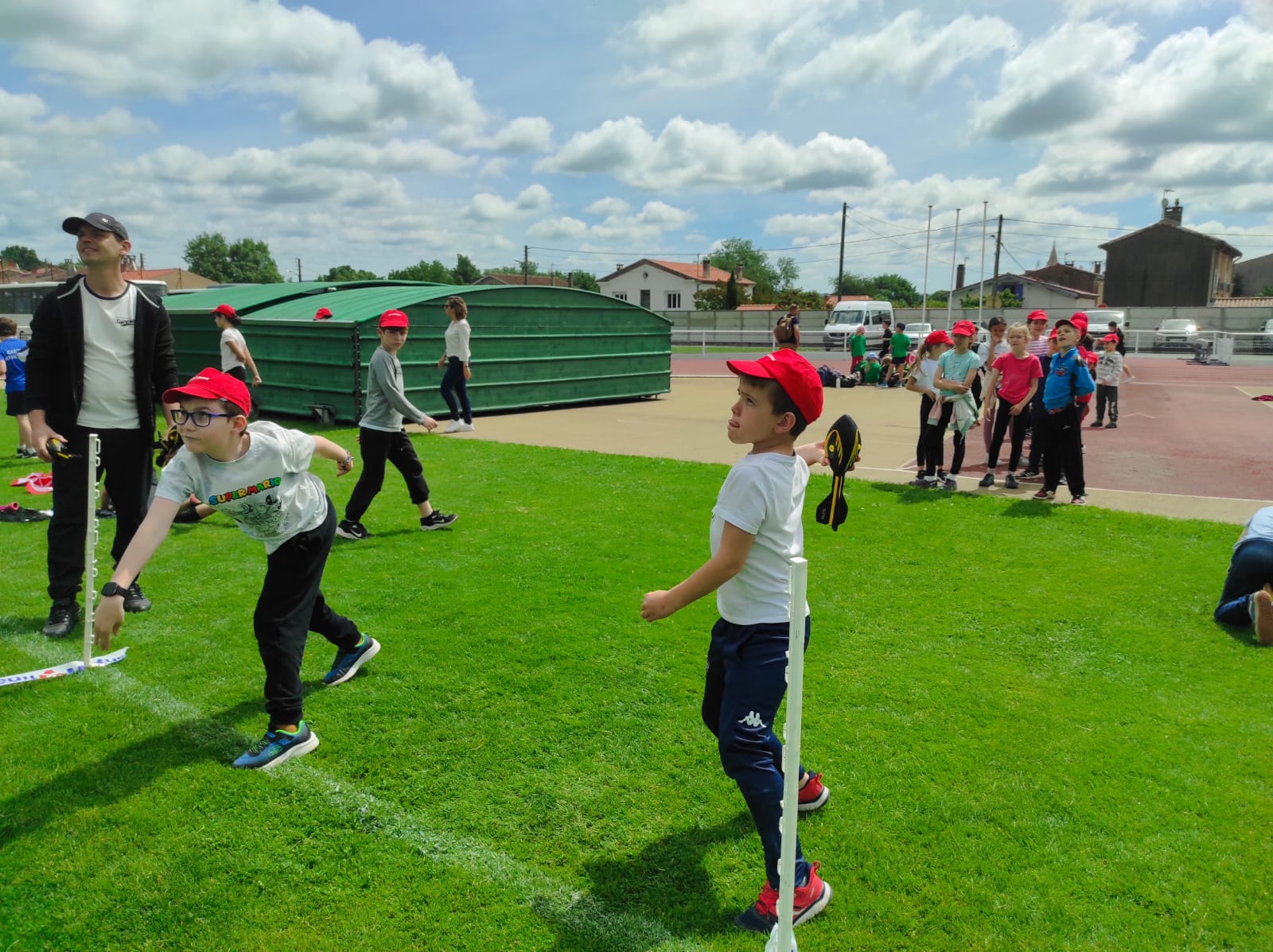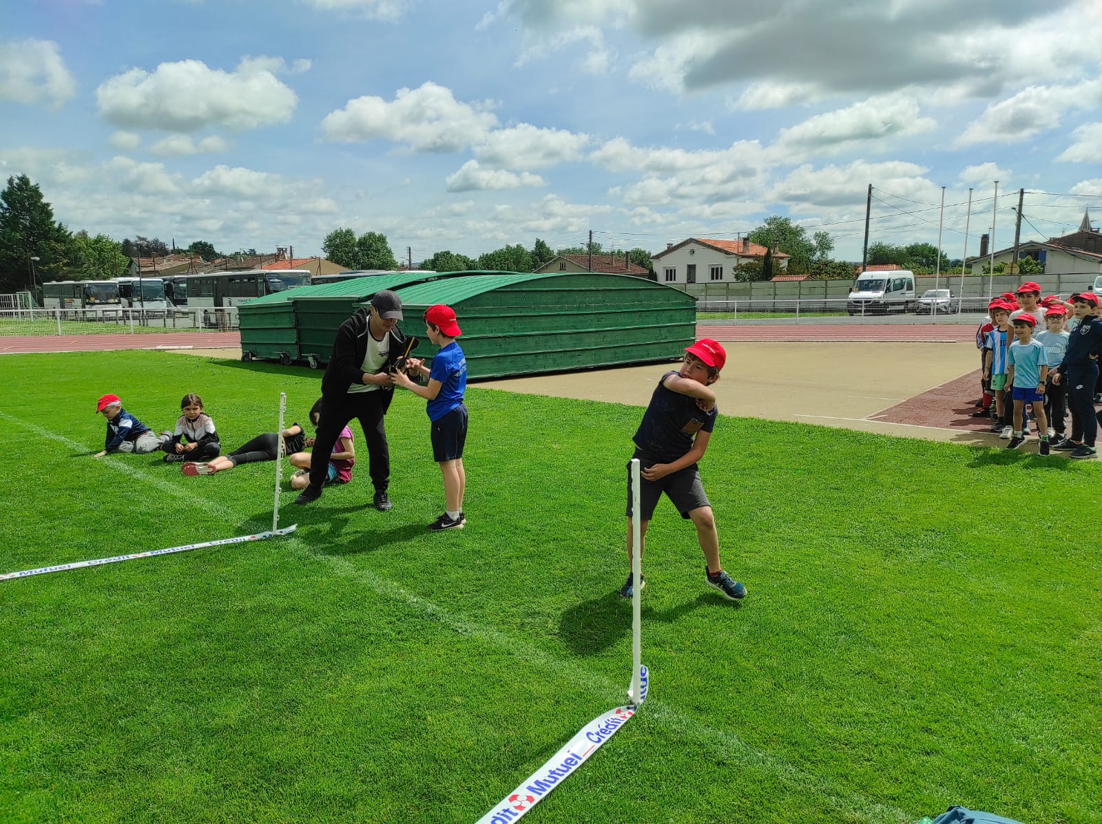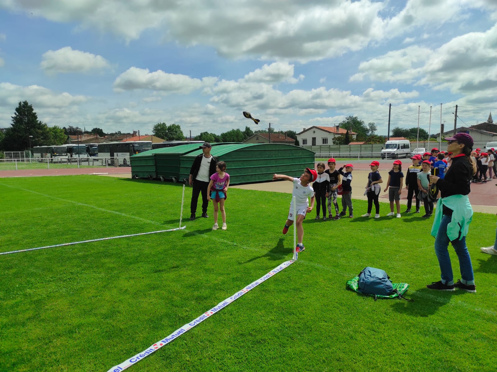 Mardi 28 mai les classes de CP, CE1 et CE2 ont participé à la journée athlétisme organisée par l'UGSEL au stade du Travet. Les élèves ont commencé par le saut en longueur, puis ont continué avec le lancer de vortex. Ensuite, nous avons pique-niqué et les enfants ont participé à la course de demi-fond, ce n'était pas facile après le repas...Ils se sont enfin affrontés sur une épreuve de sprint. A la fin de la journée, ils étaient tous très heureux, et fiers de ce qu'ils avaient fait mais pas autant que leur maîtresse et que les parents présents.