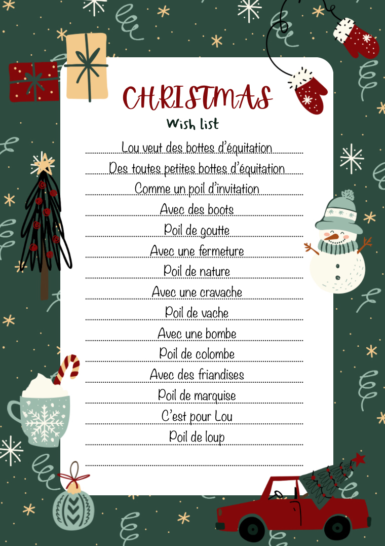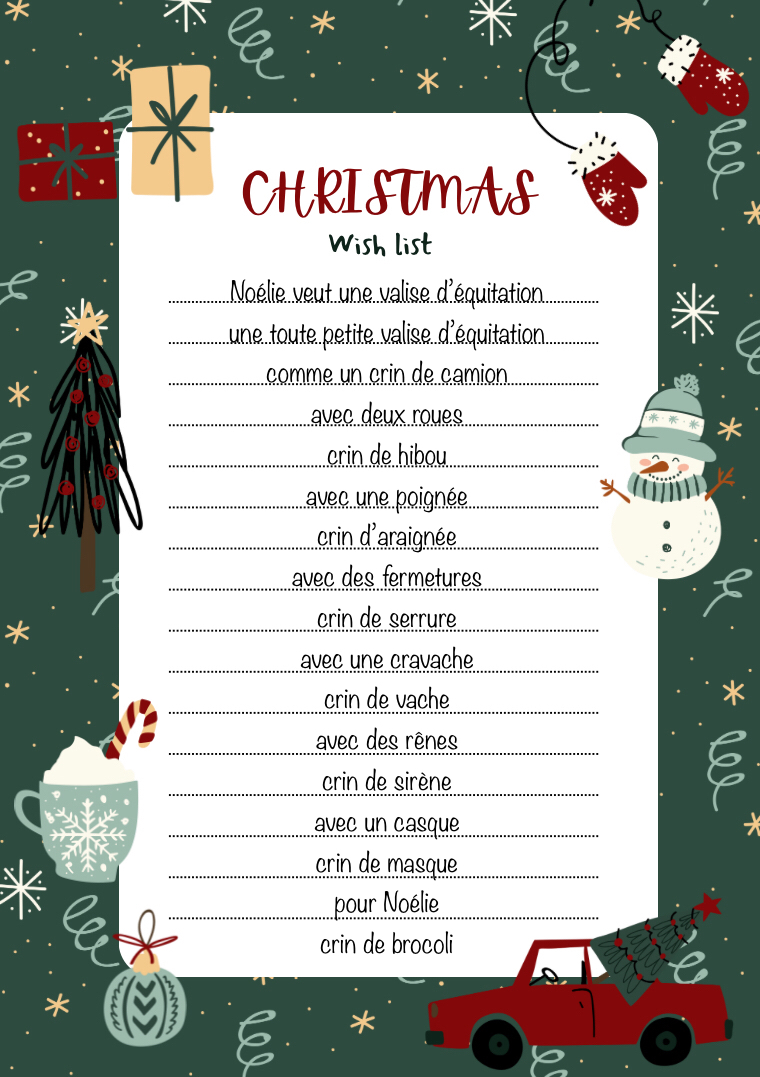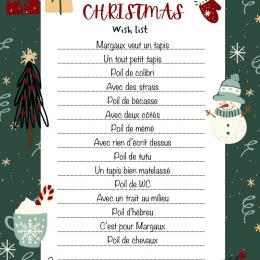 Cycle 3 CM1 CM2 09/01/2024 Afin de rédiger nos listes de noël de manière poétique, nous nous sommes inspirés de la chanson qu'il y a dans le livre que nous avons travaillé : La sorcière de la rue Mouffetard.