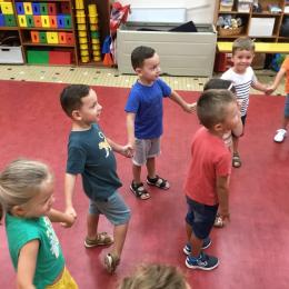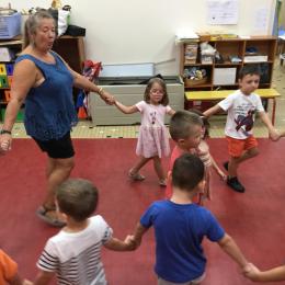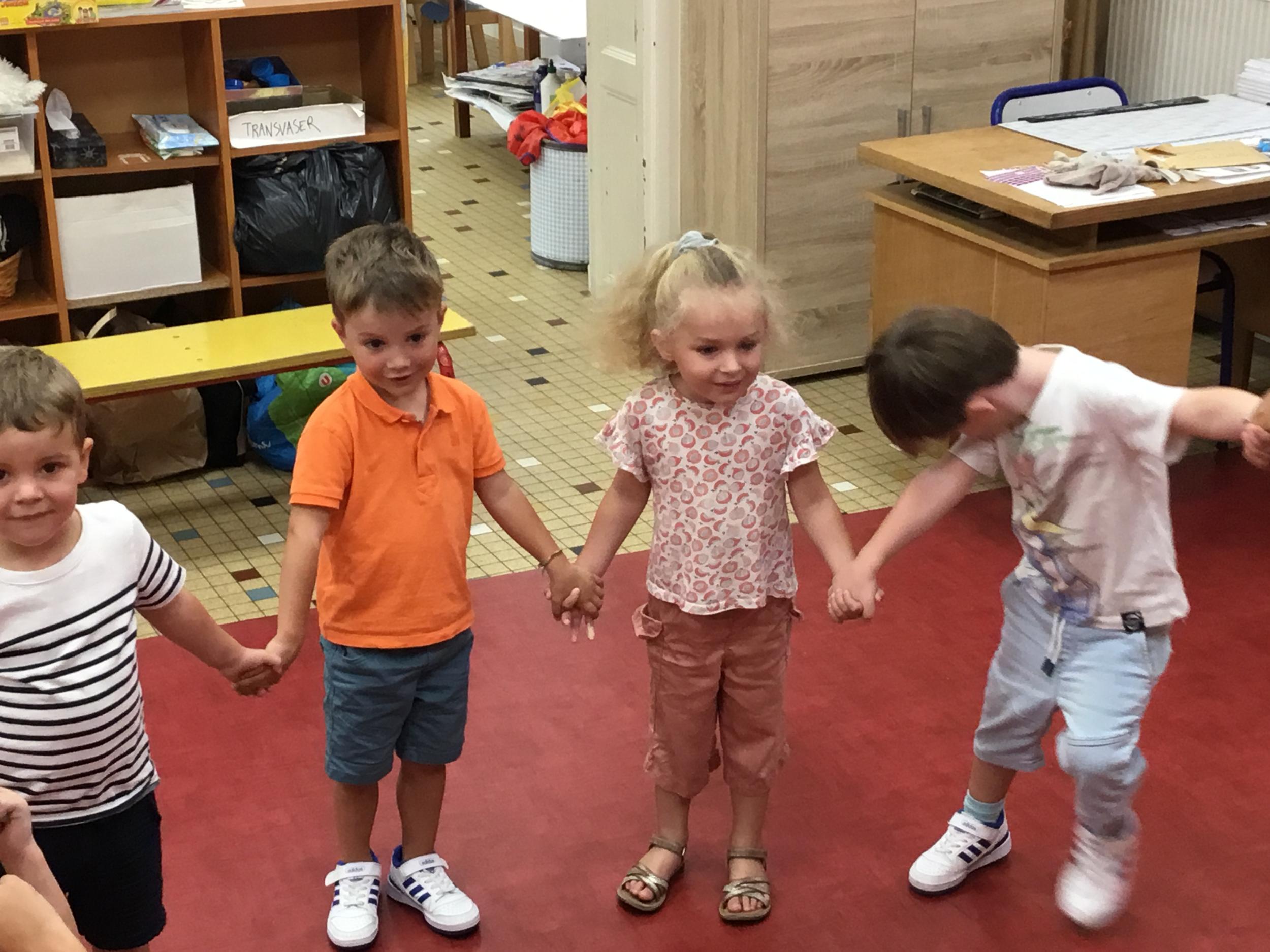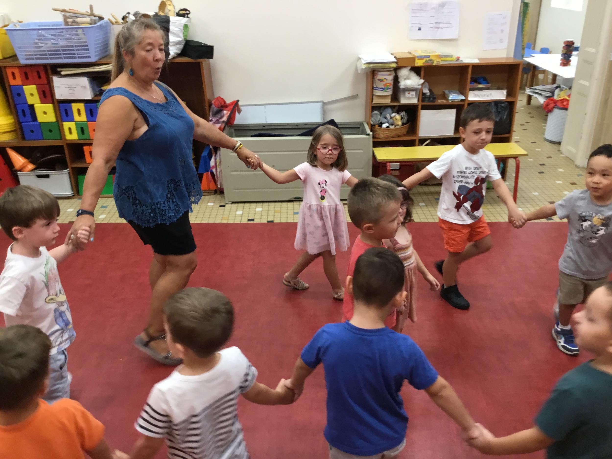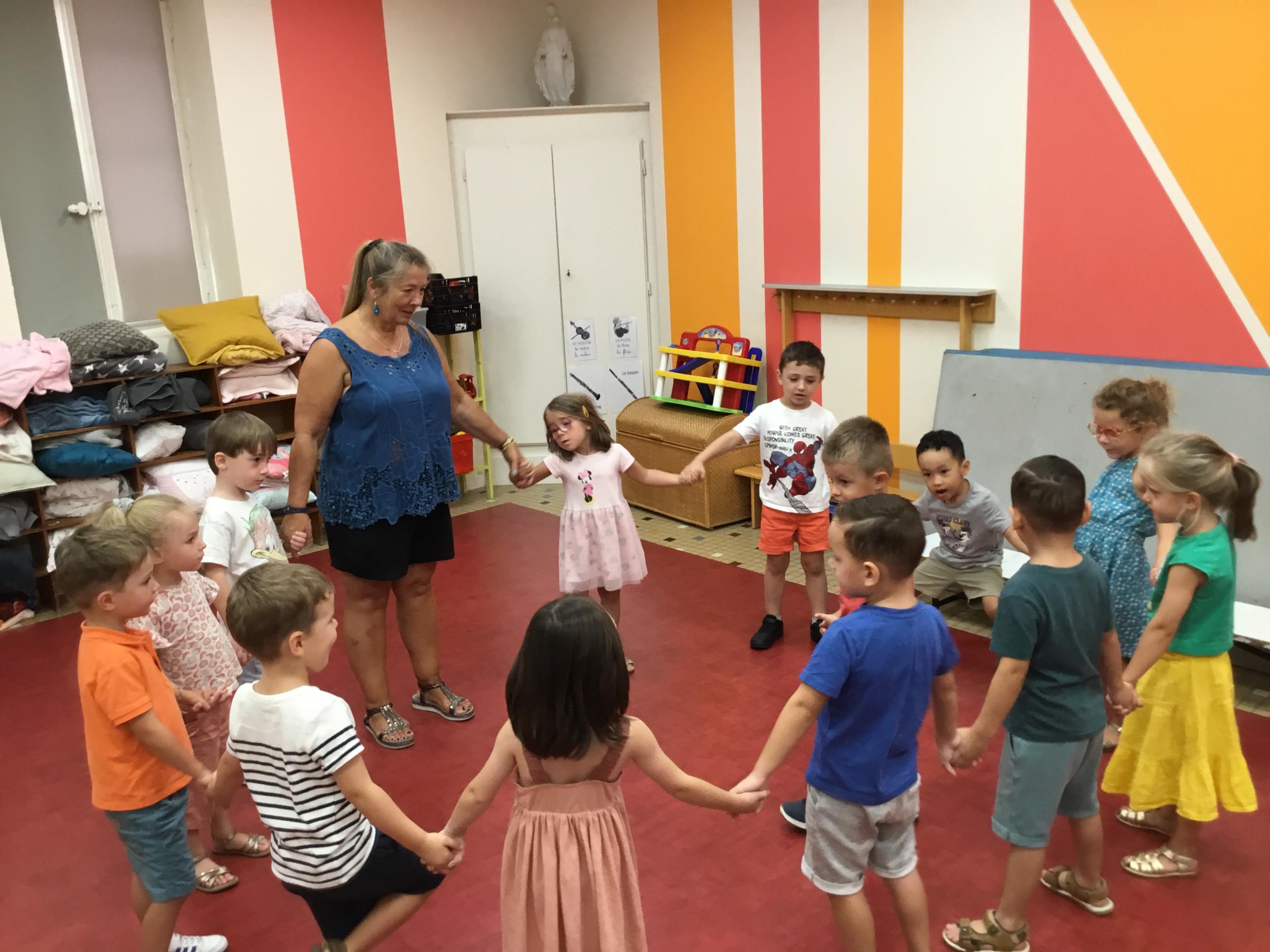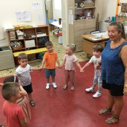 Petite et moyenne section 14/09/2023 En début, rien de mieux qu’une ronde pour se socialiser et apprendre à vivre ensemble. C’est pour cela que c’est un temps fort de fraternité pour chanter et jouer ensemble.