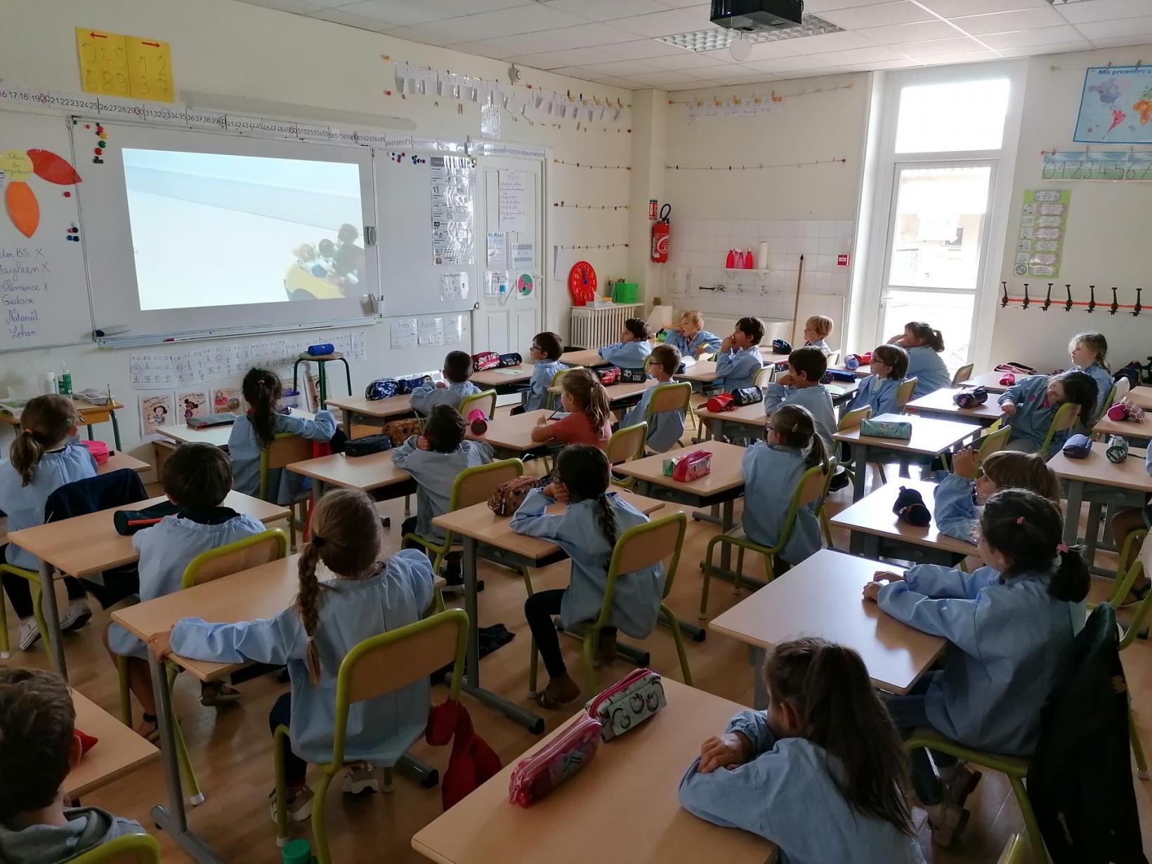 Les élèves de CP ont effectué la première page de leur cahier d'écriture.
