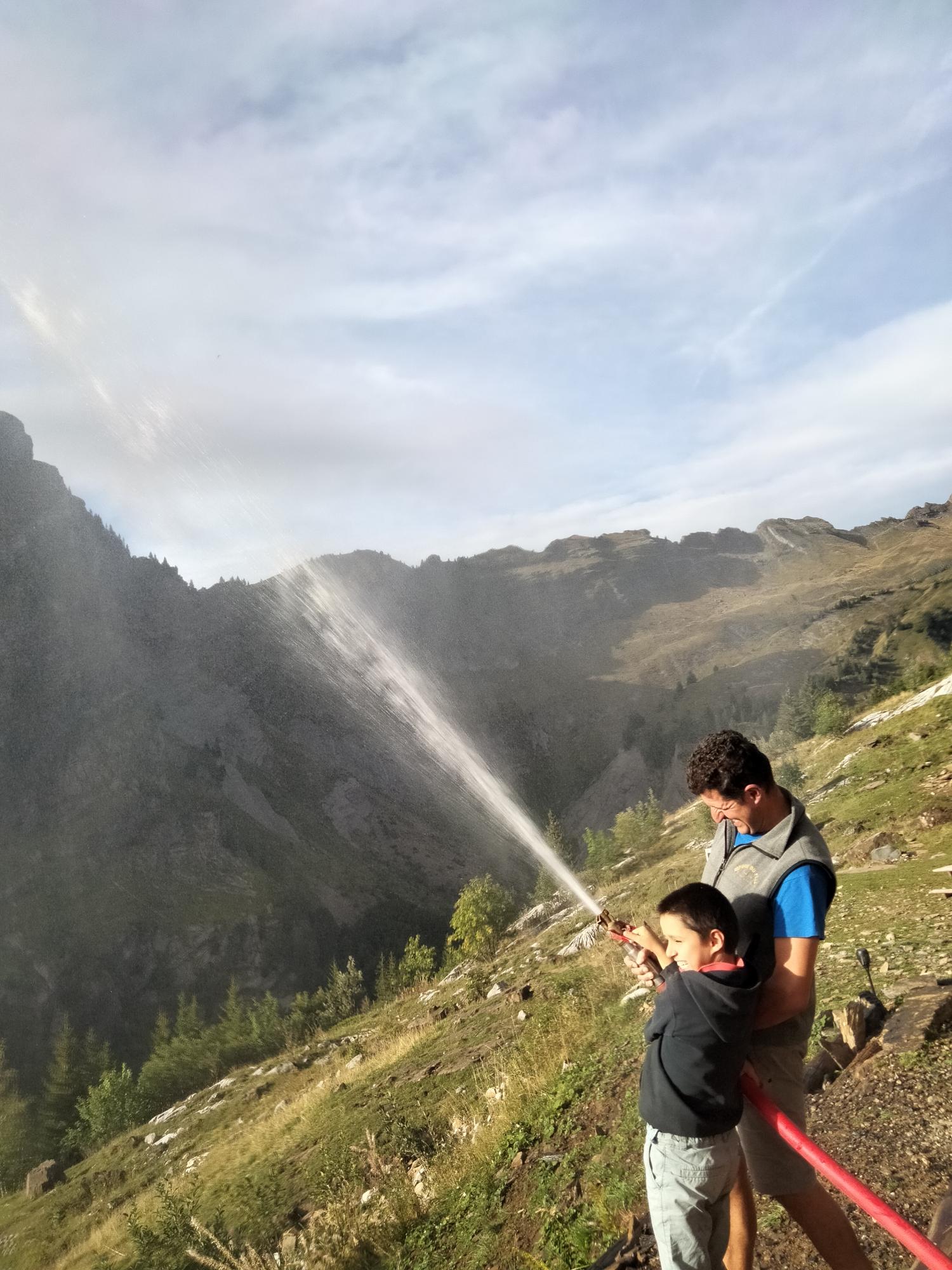 On voit aussi des chamois et des vautours. Notre métier, c’est gardien de refuge : notre rôle est de nettoyer les dortoirs et faire les lits, préparer les repas, servir les boissons. Les randonneurs et nous montons et descendons à pied. Pour les courses, on fait l’héliportage, ce qui veut dire qu’on monte les affaires en hélicoptère ; on a même monté mon cartable en hélicoptère ! Et quand on est parti, il a commencé à neiger…