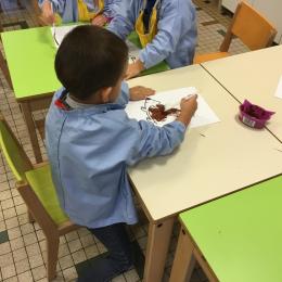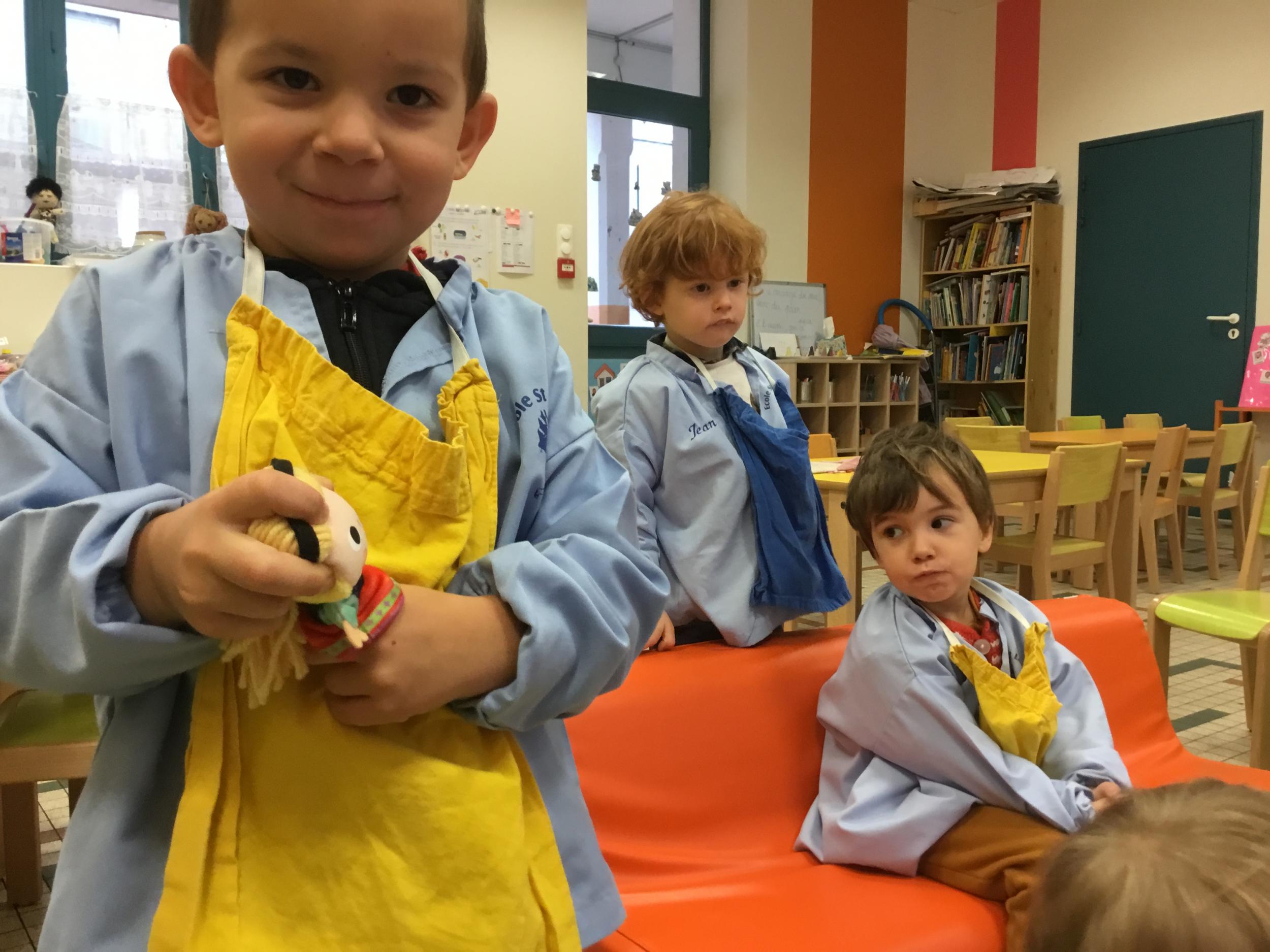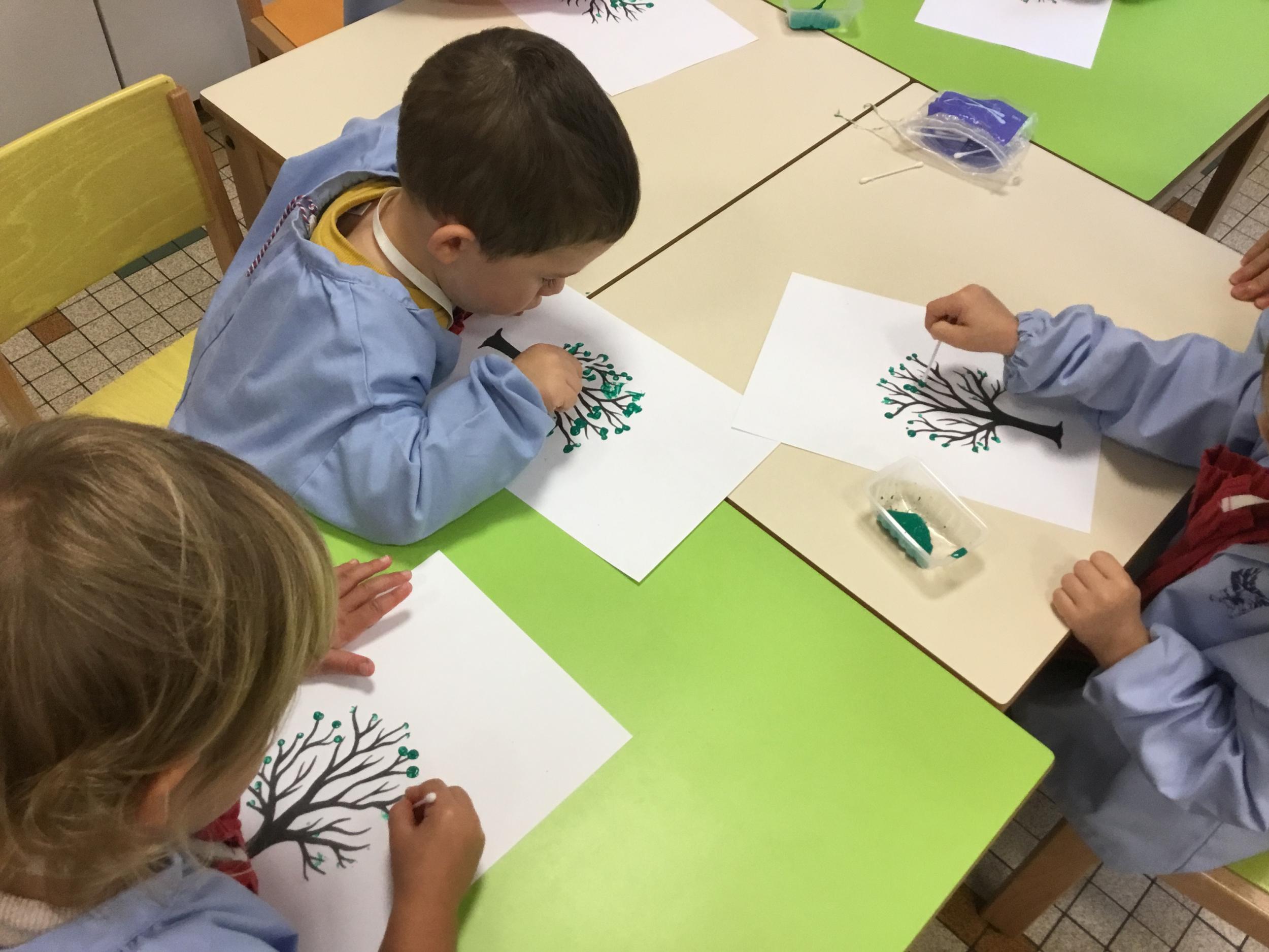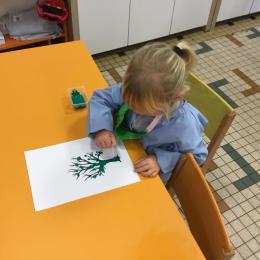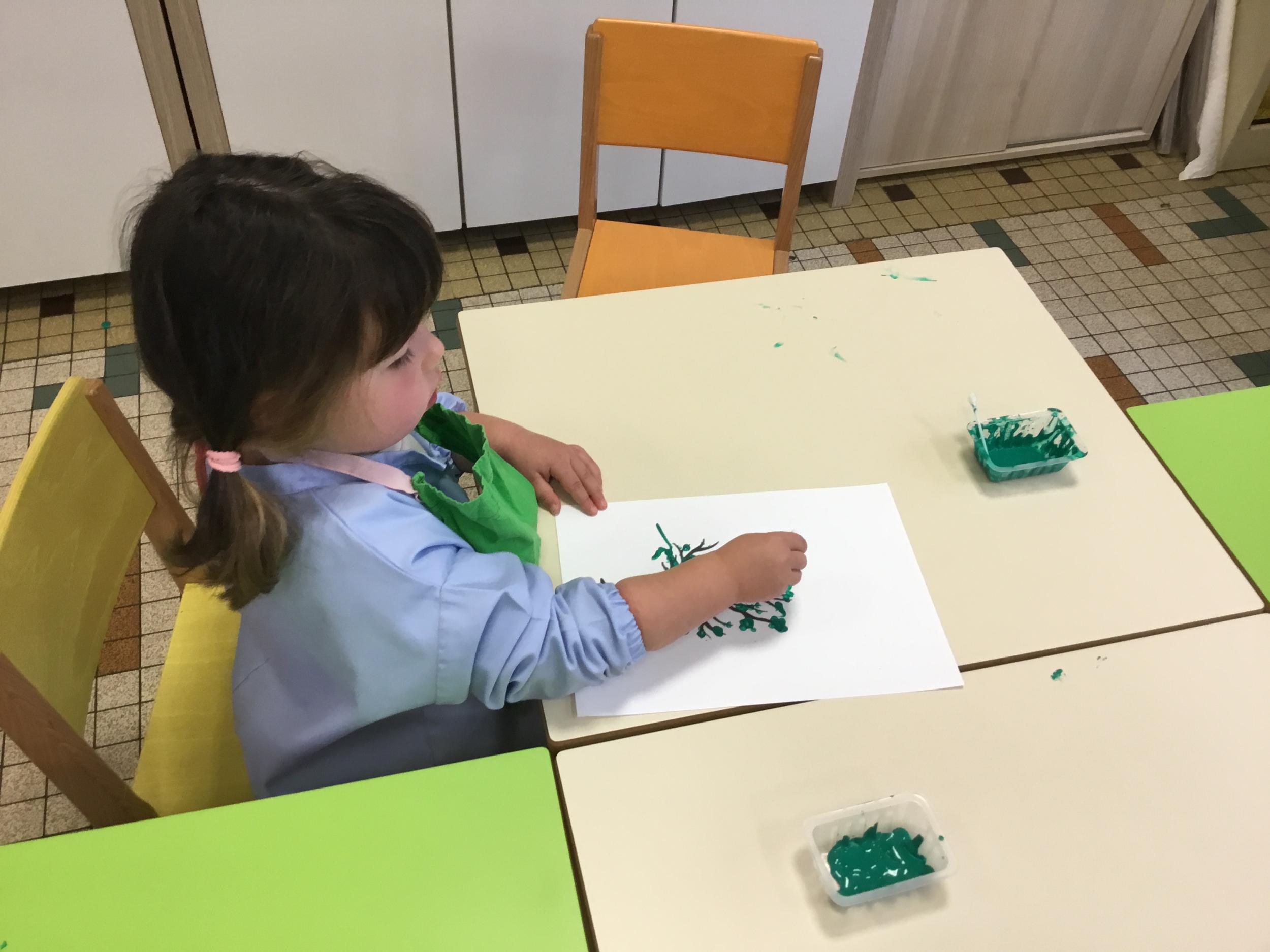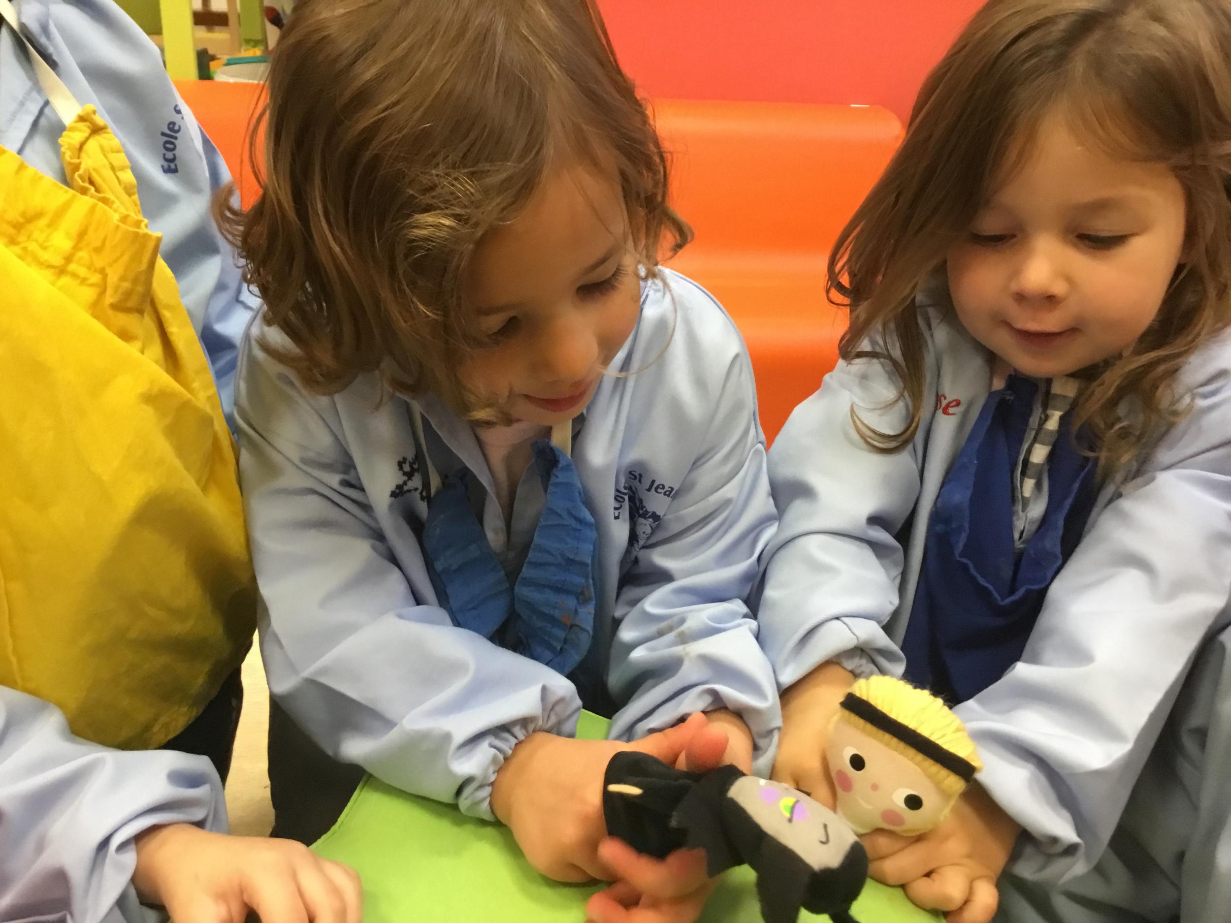 Petite et moyenne section 15/10/2020 Les élèves continuent à laisser des traces à l’aide de différents outils: la fourchette et le coton tige Le bonhomme du mois d’octobre Découper des bouts de laine. Les consignes sont données en anglais Écouter une histoire et la raconter à l’aide de marionnettes Atelier en autonomie: colorier la fiche du mois d’octobre pour le cahier de vie