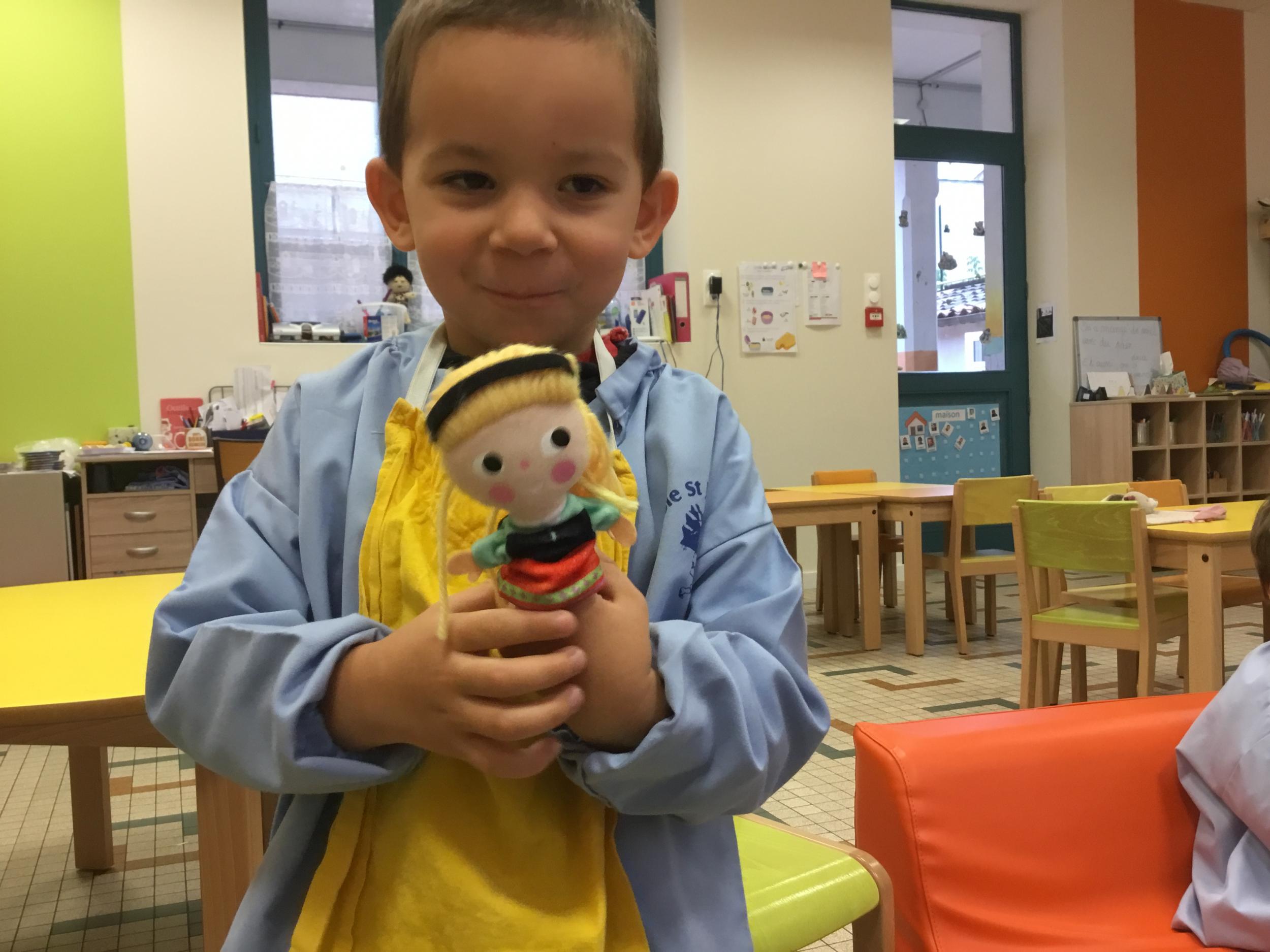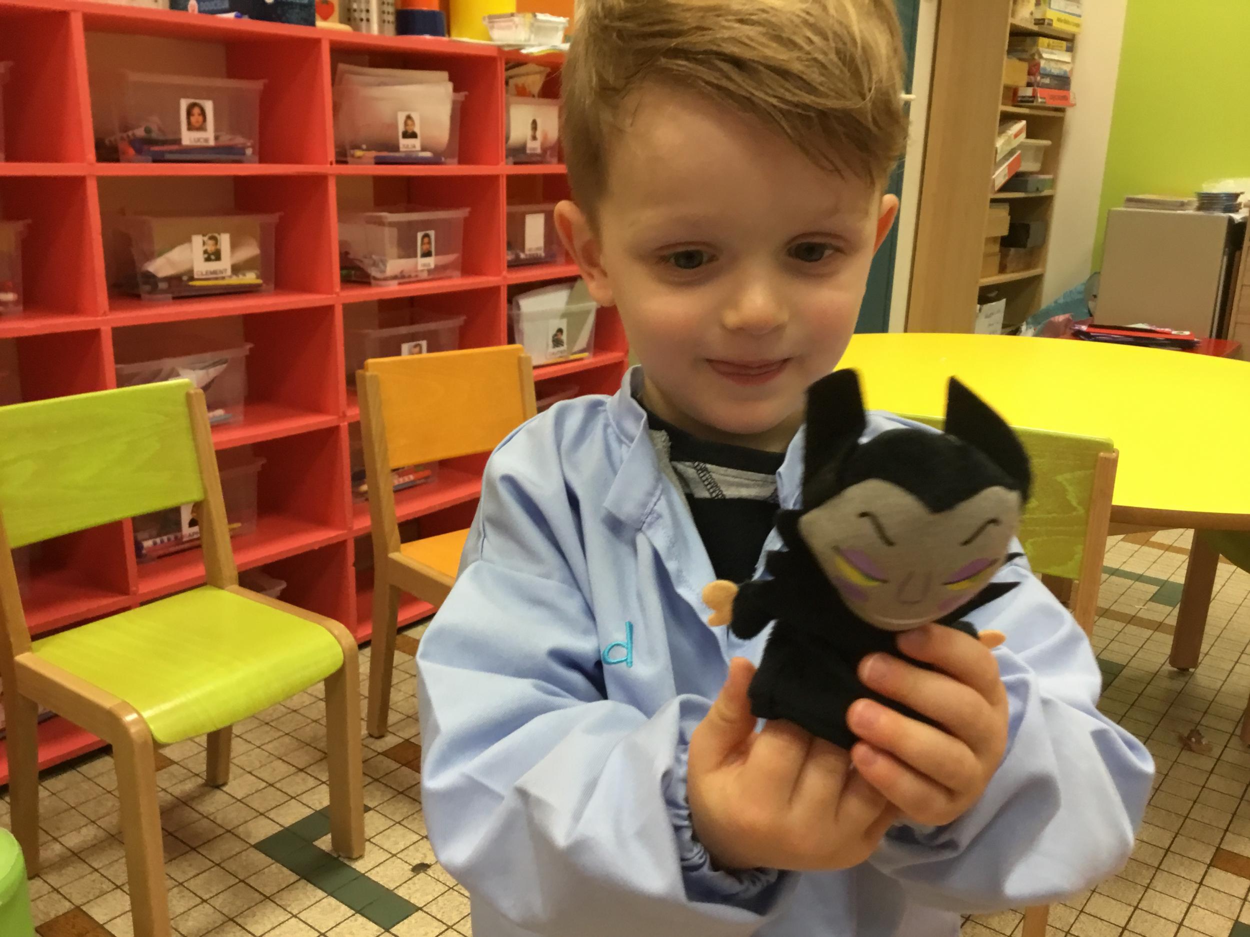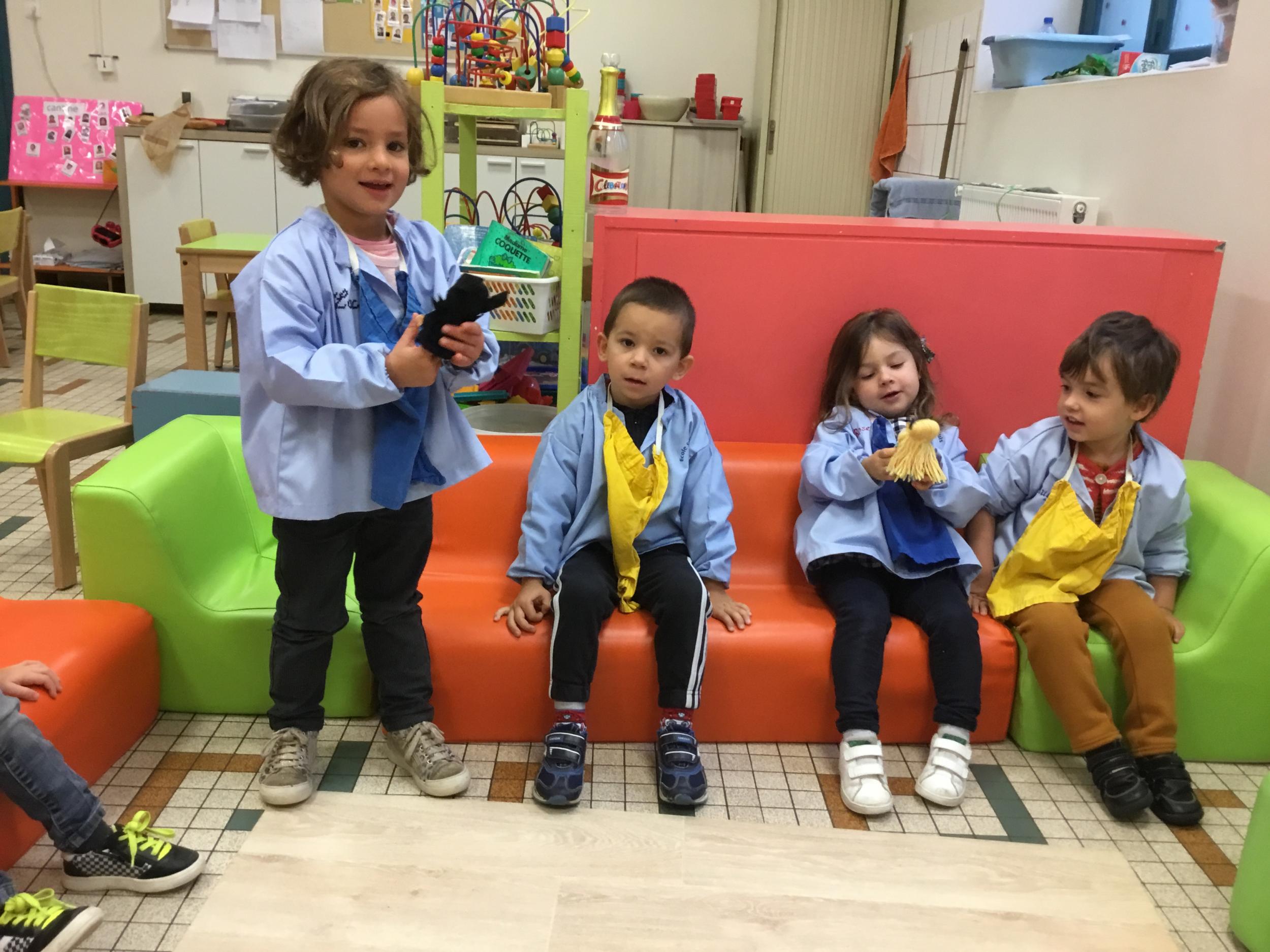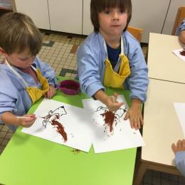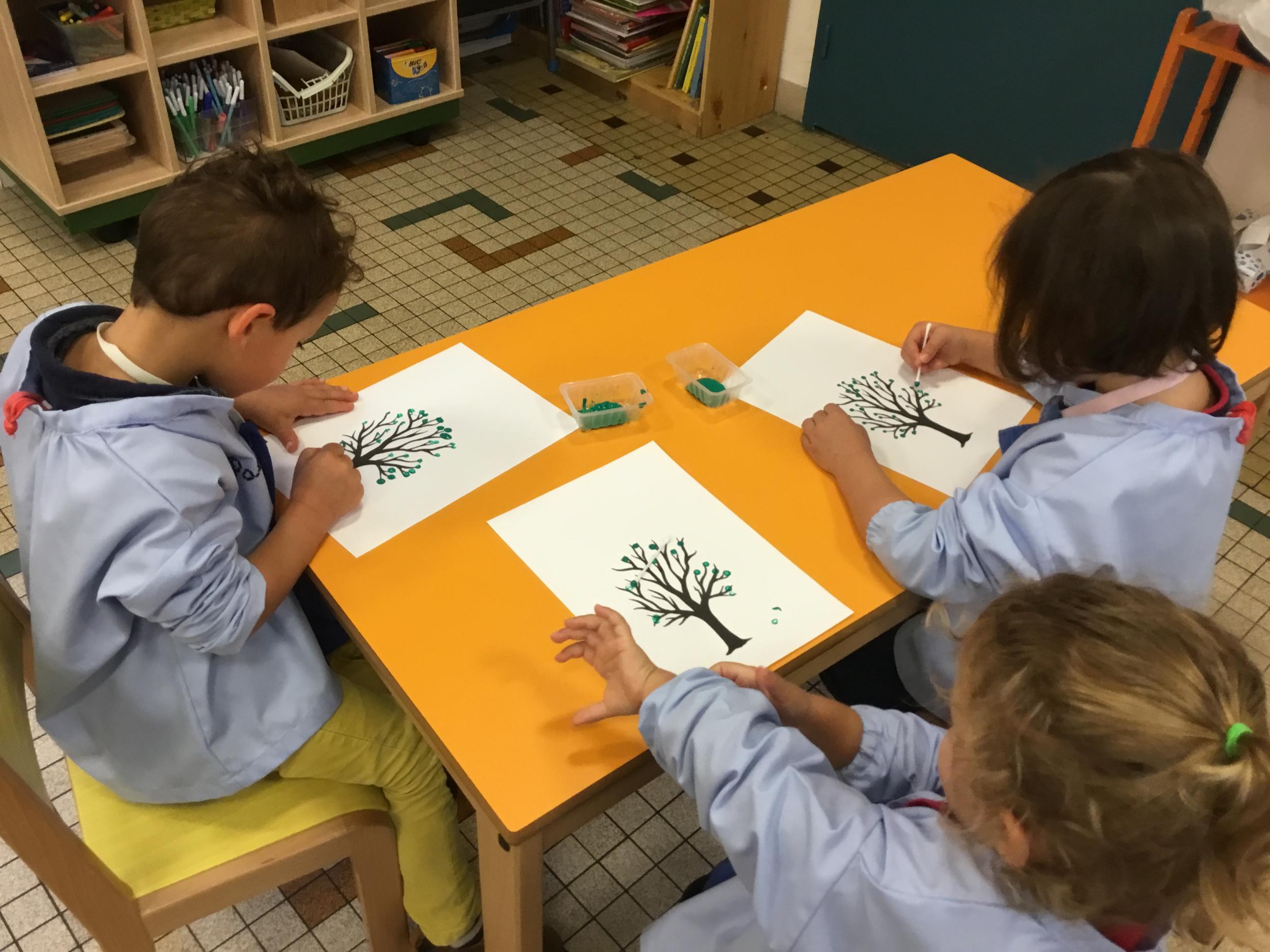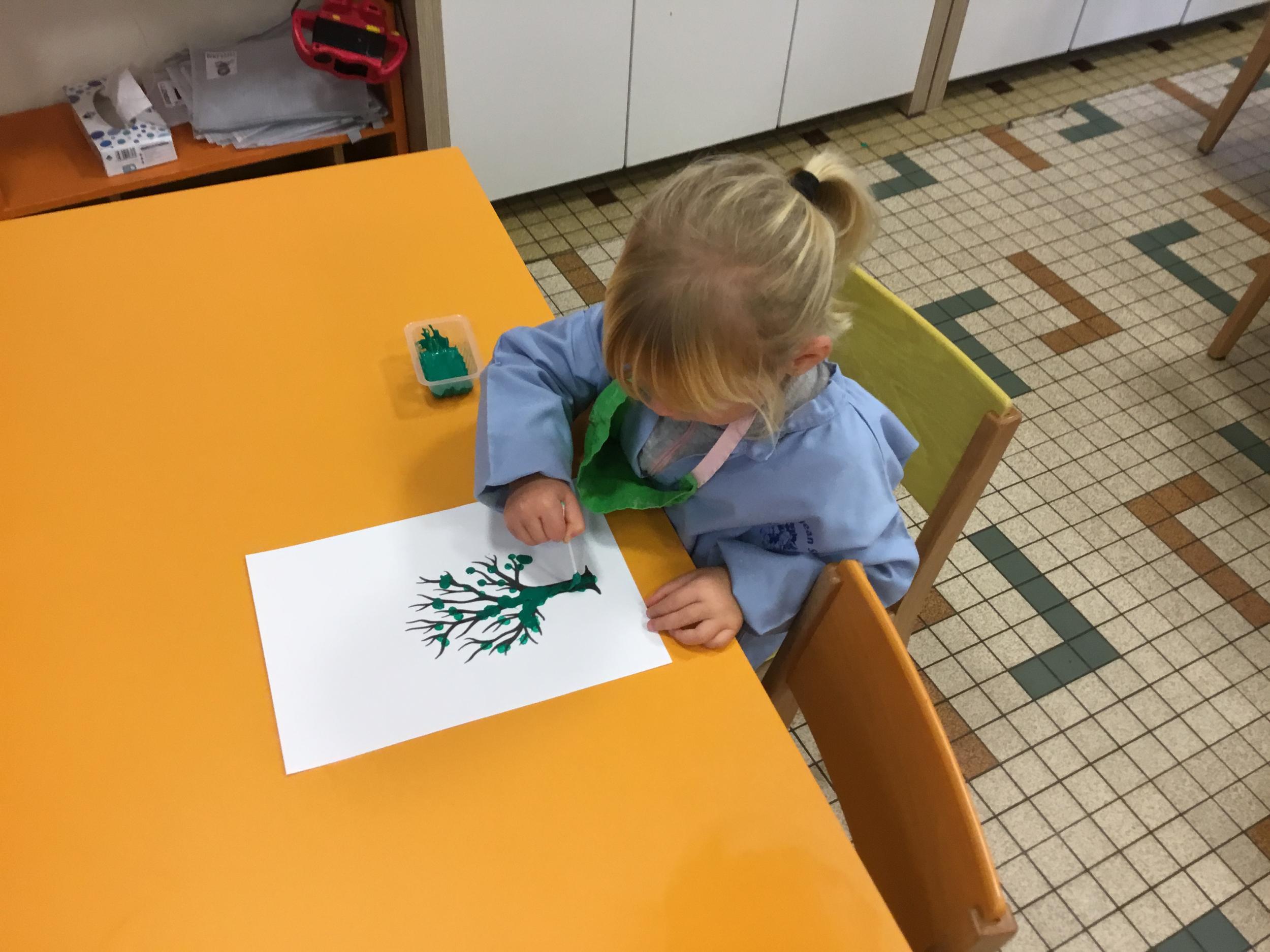 Petite et moyenne section 15/10/2020 Les élèves continuent à laisser des traces à l’aide de différents outils: la fourchette et le coton tige Le bonhomme du mois d’octobre Découper des bouts de laine. Les consignes sont données en anglais Écouter une histoire et la raconter à l’aide de marionnettes Atelier en autonomie: colorier la fiche du mois d’octobre pour le cahier de vie