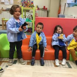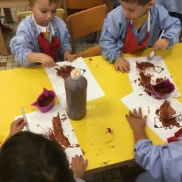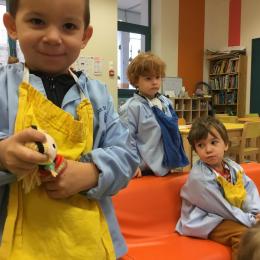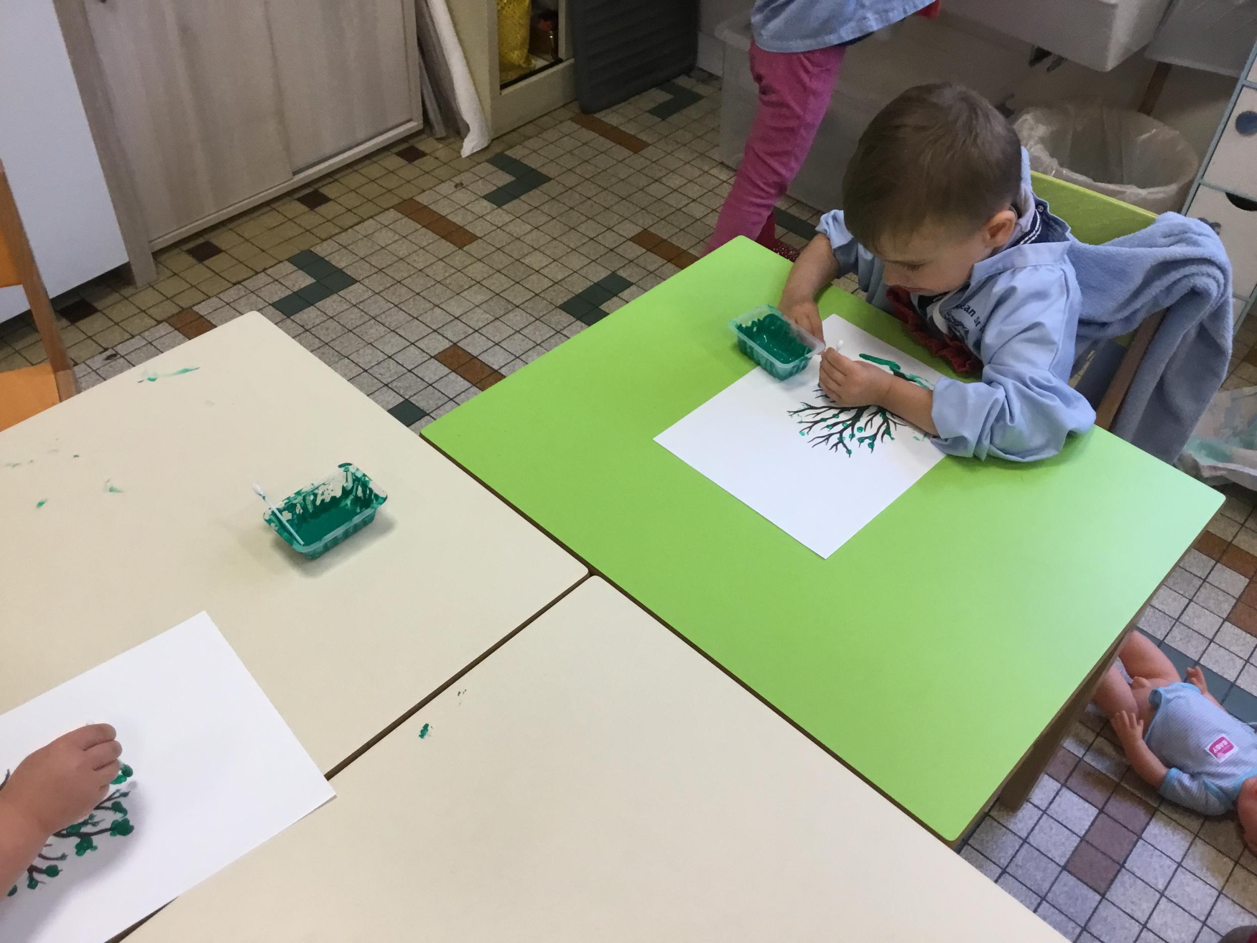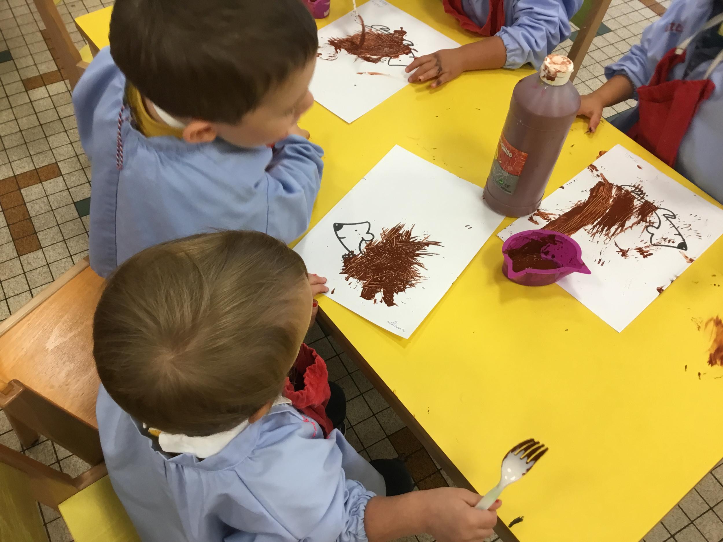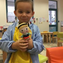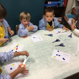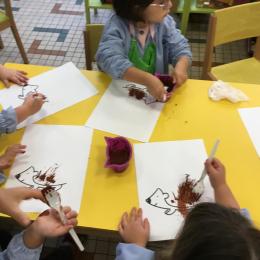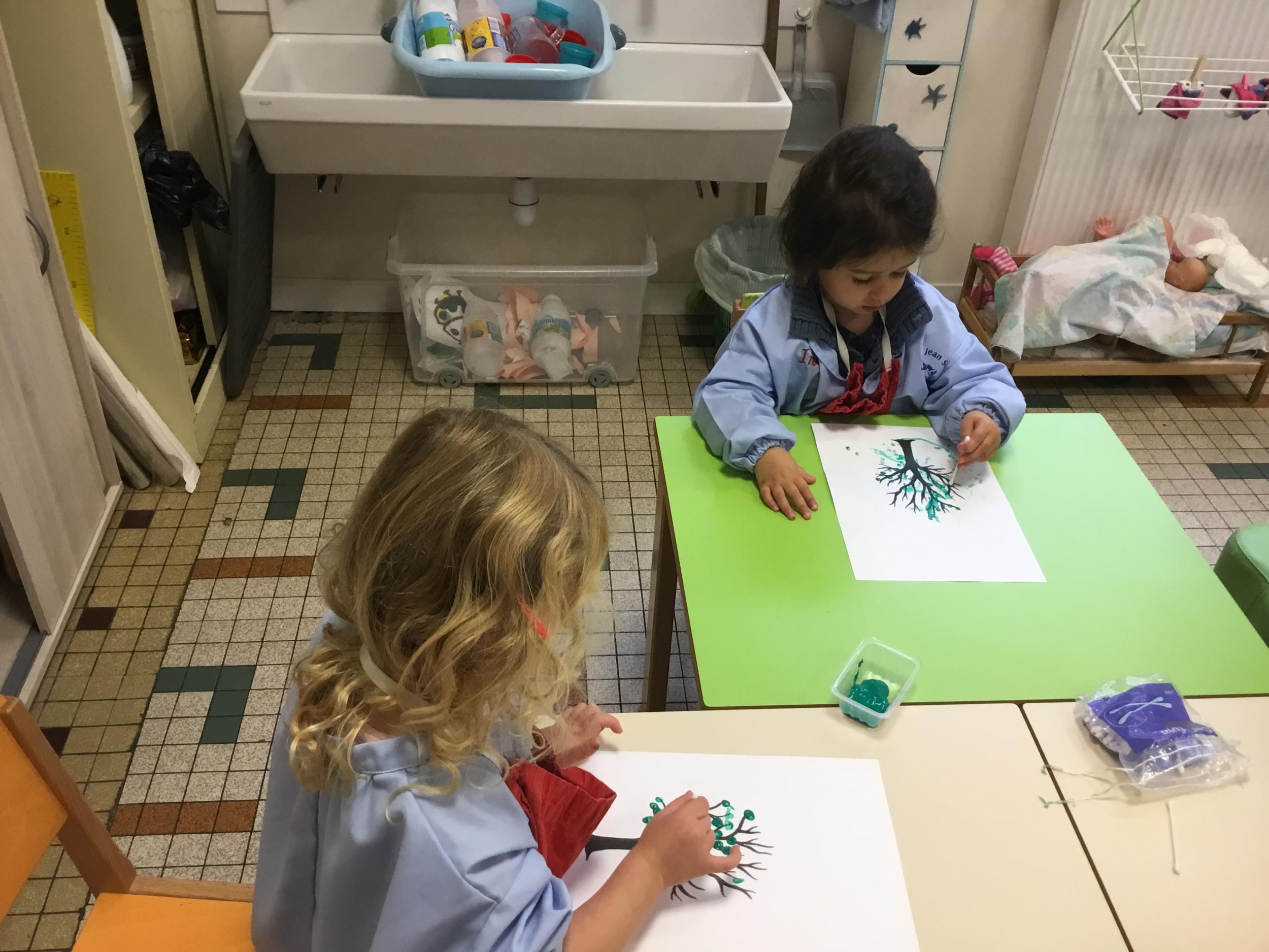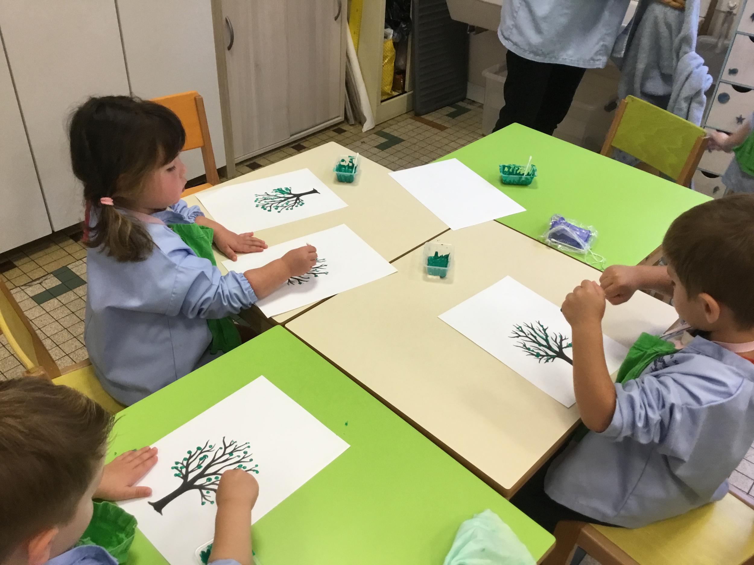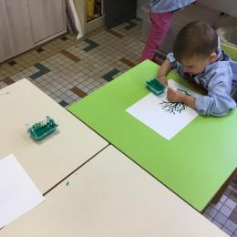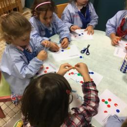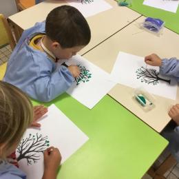Petite et moyenne section 15/10/2020 Les élèves continuent à laisser des traces à l’aide de différents outils: la fourchette et le coton tige Le bonhomme du mois d’octobre Découper des bouts de laine. Les consignes sont données en anglais Écouter une histoire et la raconter à l’aide de marionnettes Atelier en autonomie: colorier la fiche du mois d’octobre pour le cahier de vie