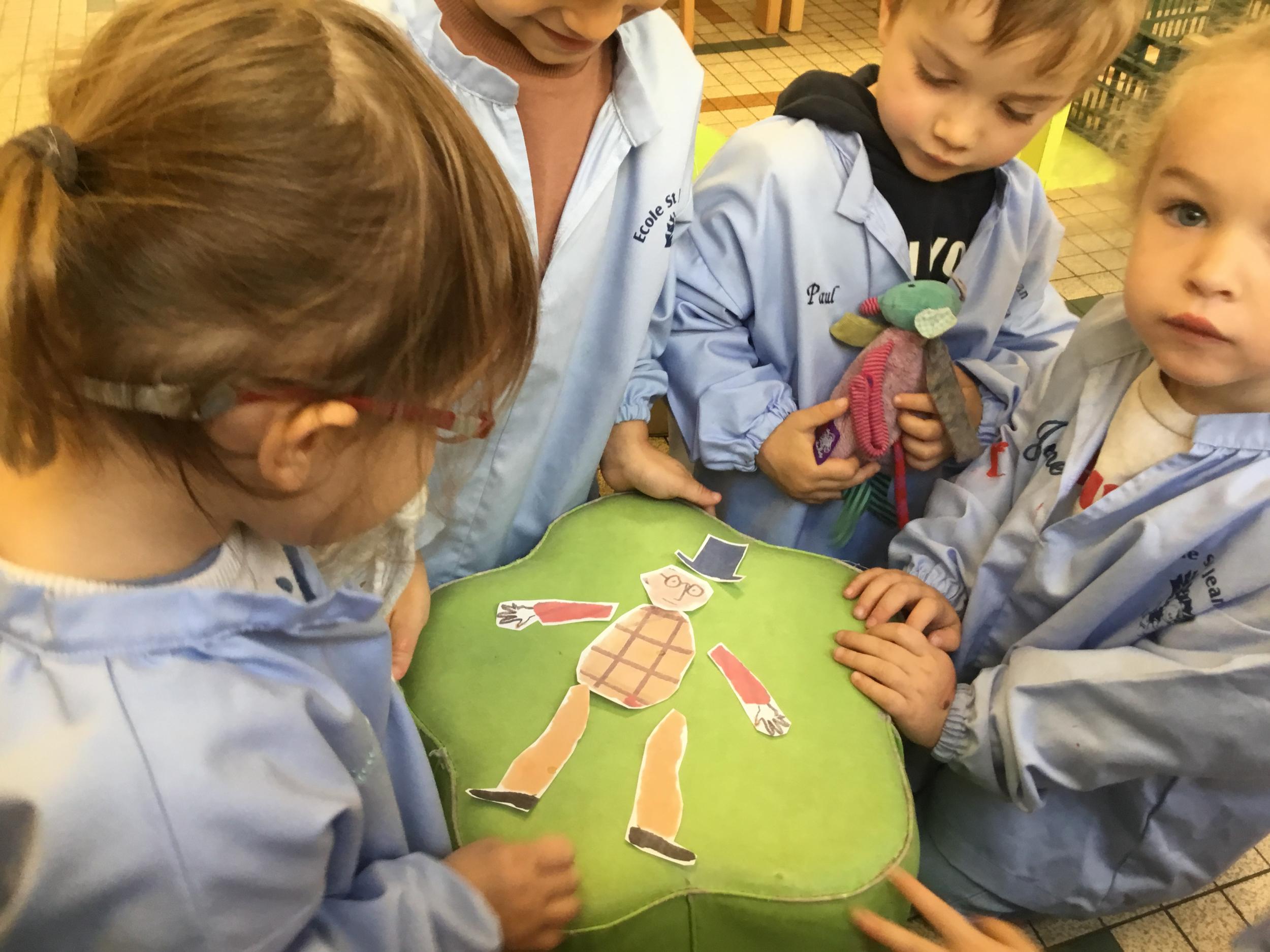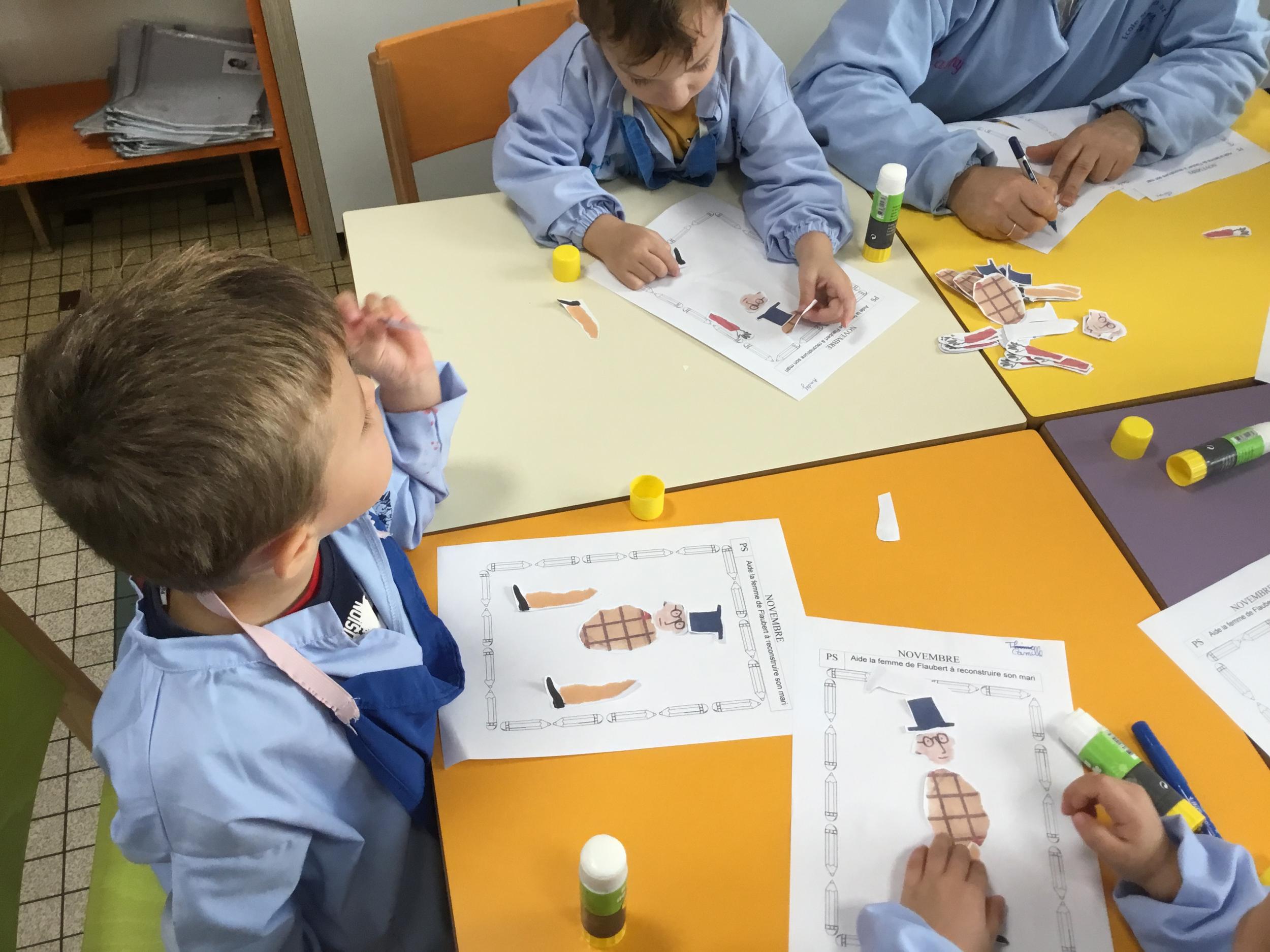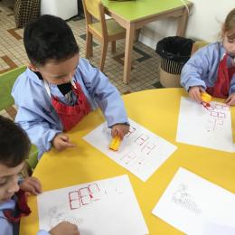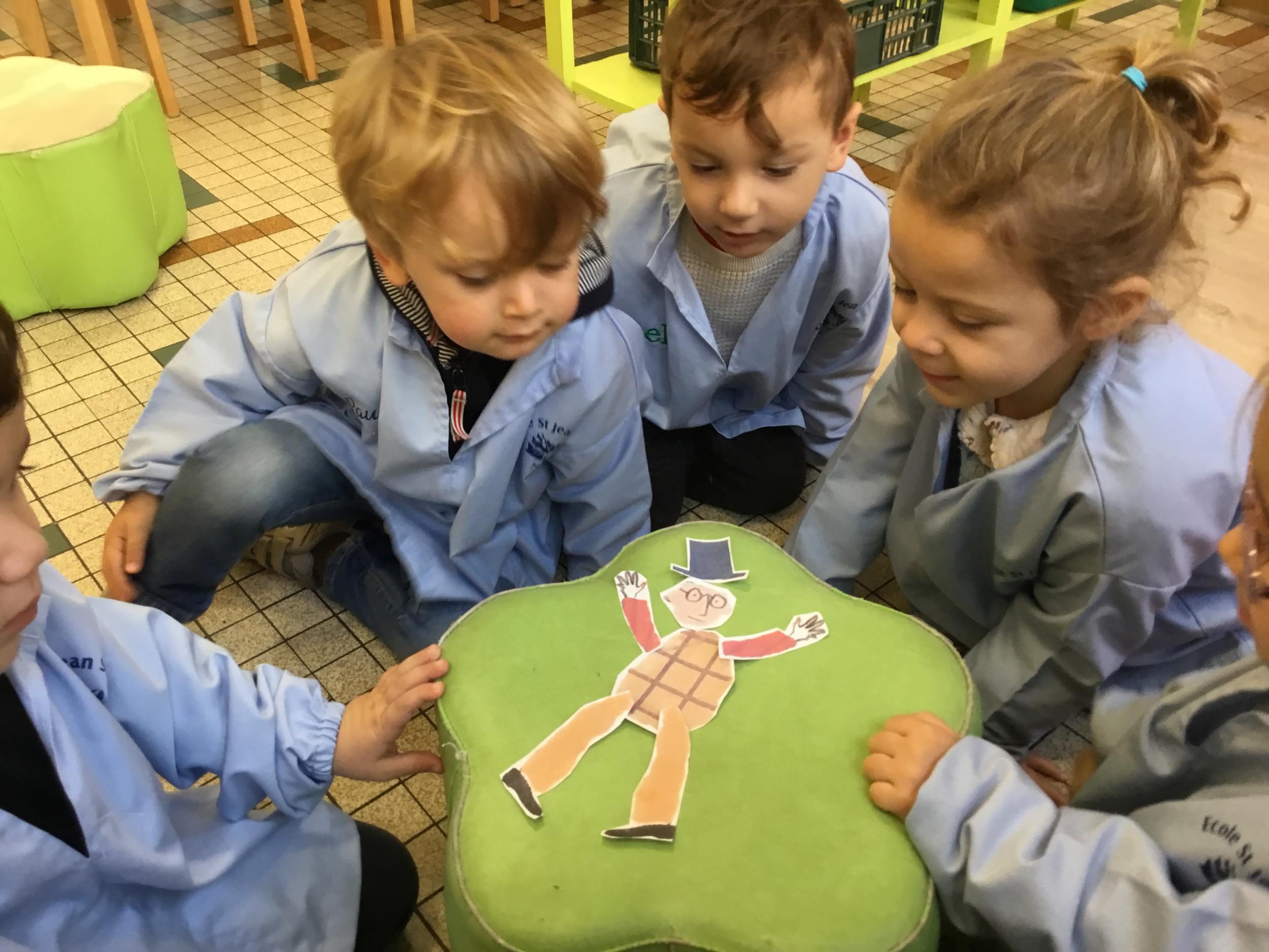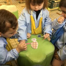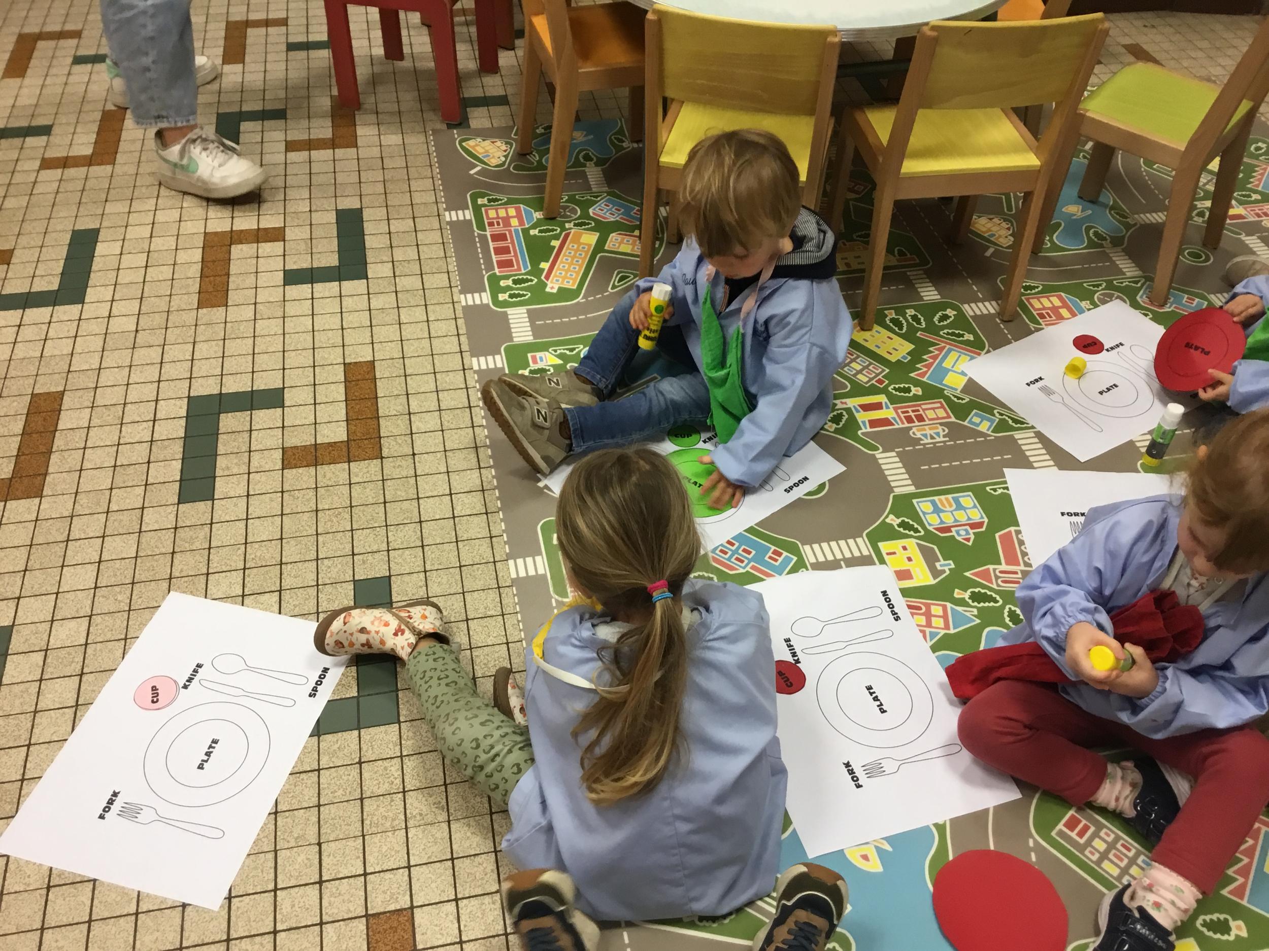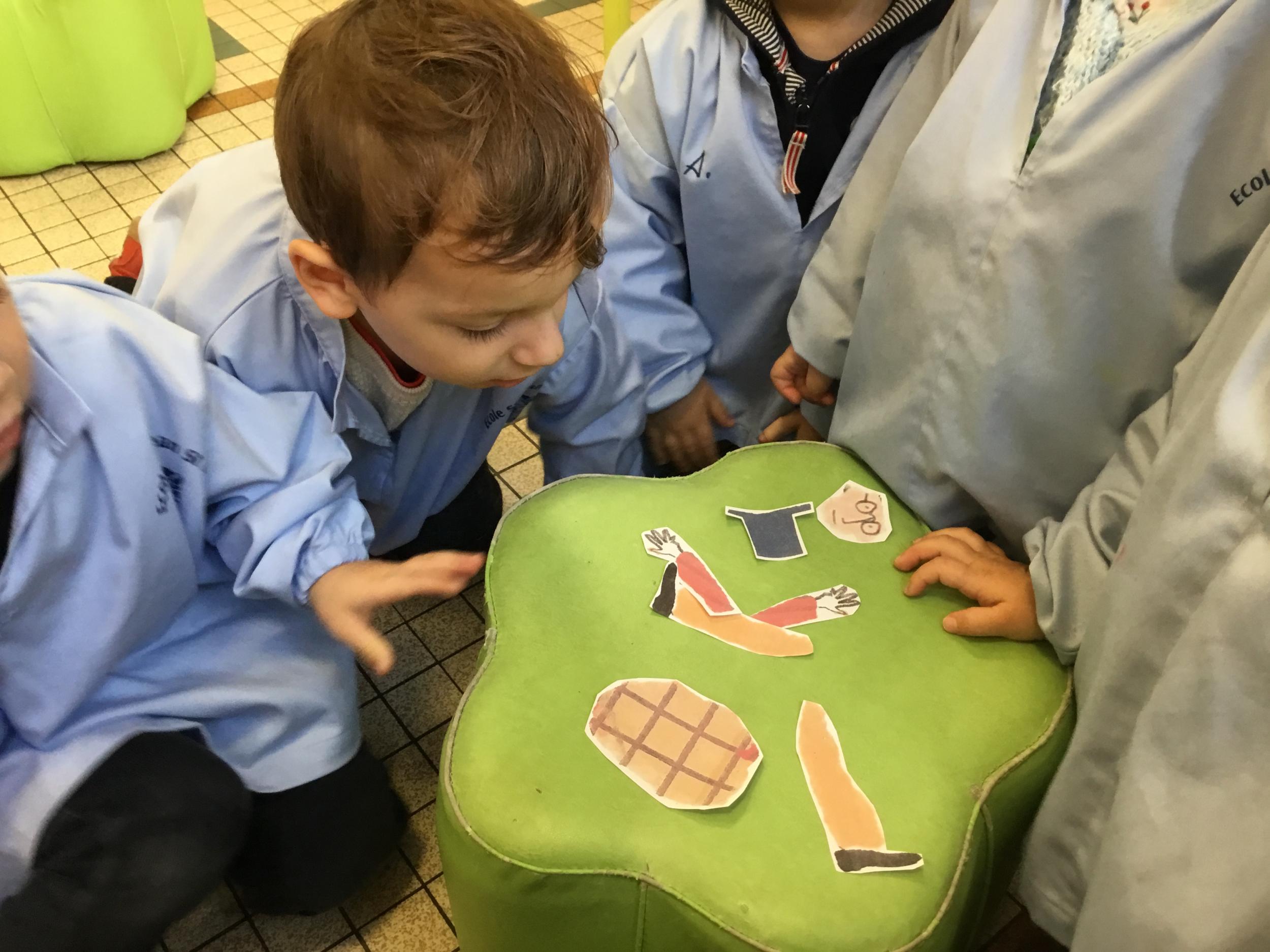 Les élèves ont travaillé en arts visuels autour de l’empreinte. Ils ont laissé des traces avec différents outils: un lego, un bouchon, une éponge, une fourchette.