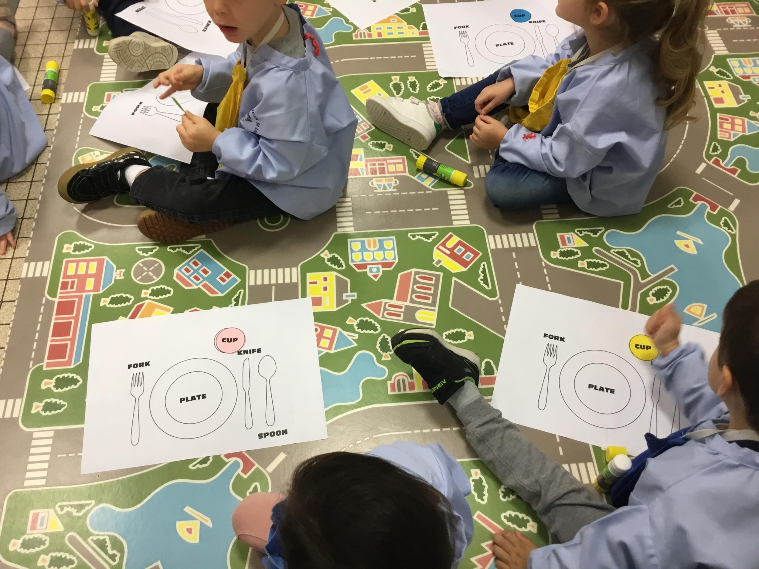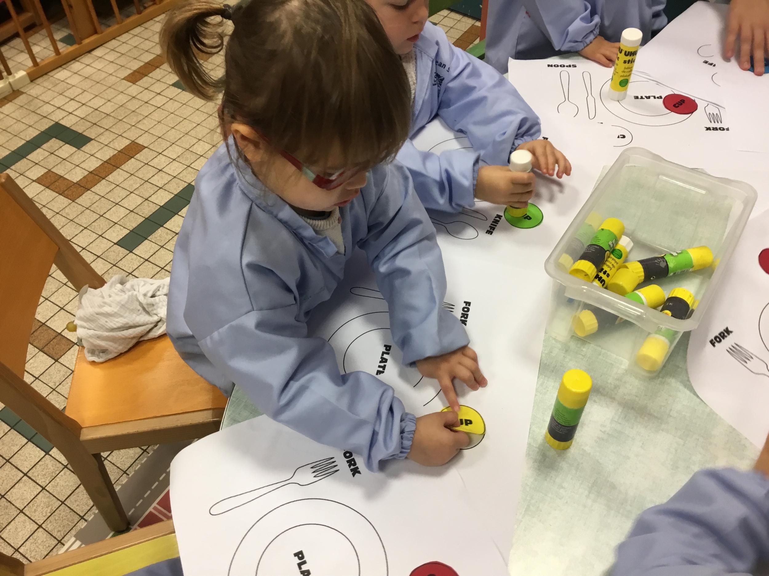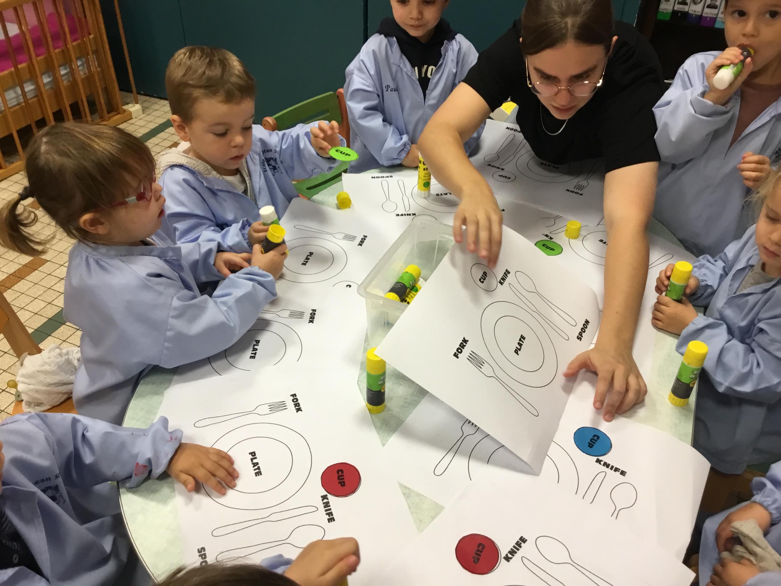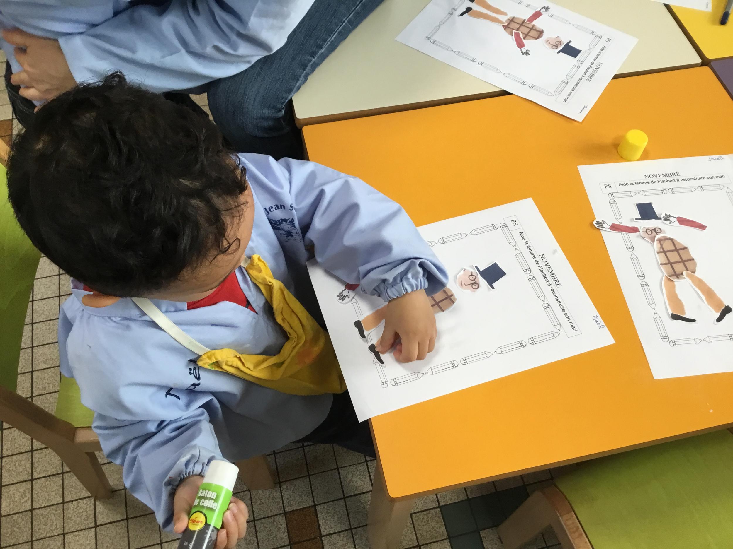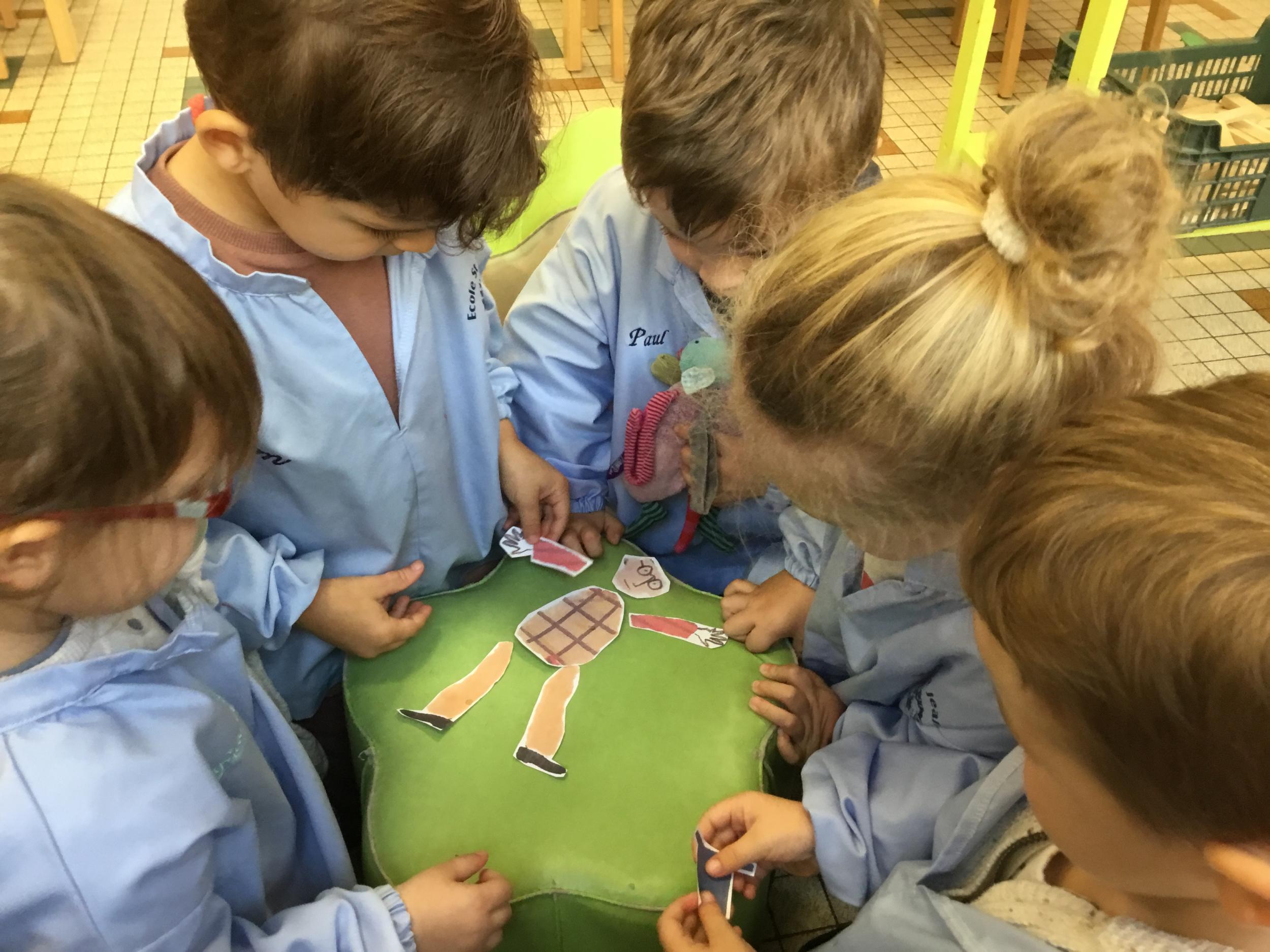 Les élèves ont travaillé en arts visuels autour de l’empreinte. Ils ont laissé des traces avec différents outils: un lego, un bouchon, une éponge, une fourchette.