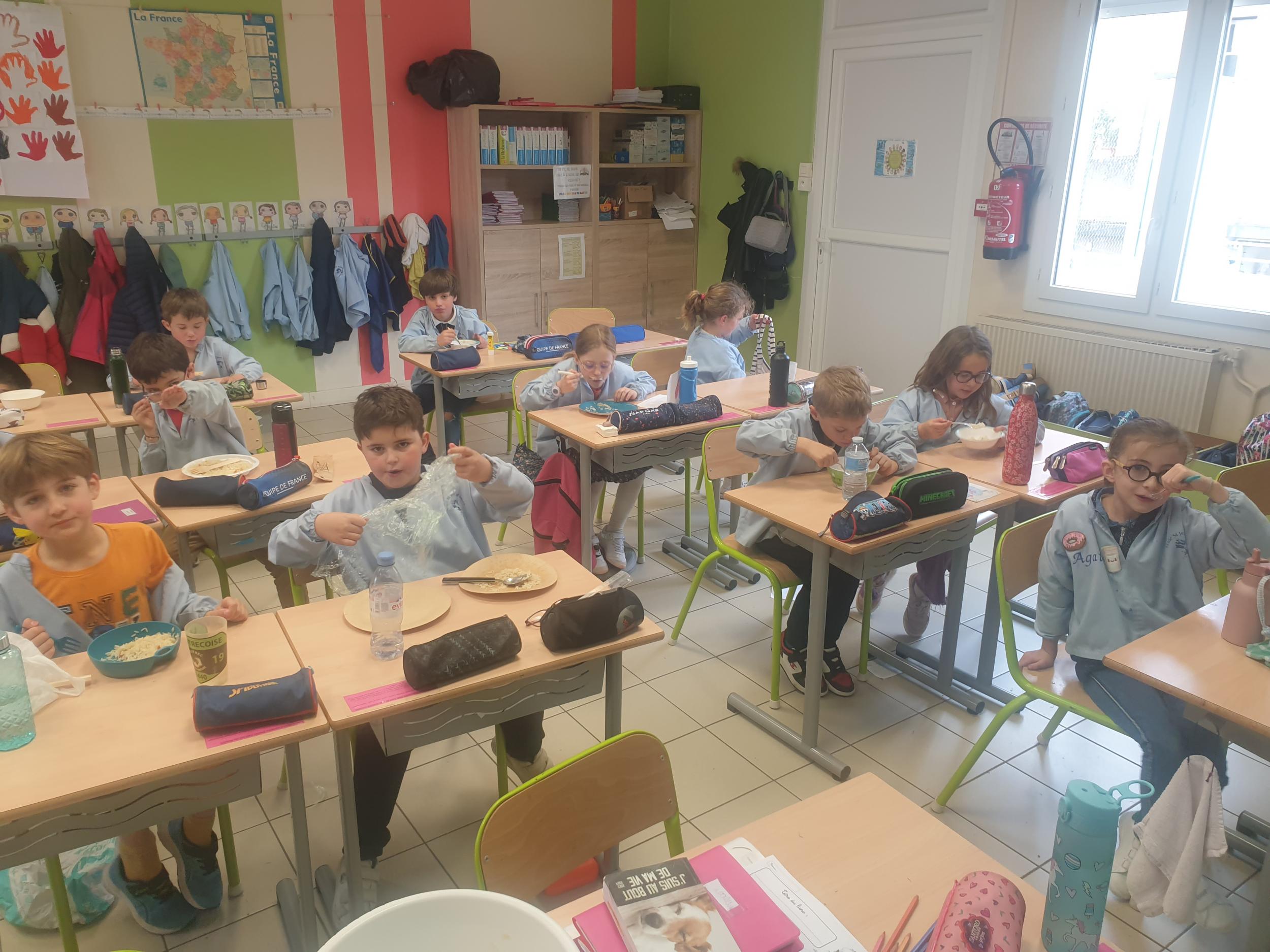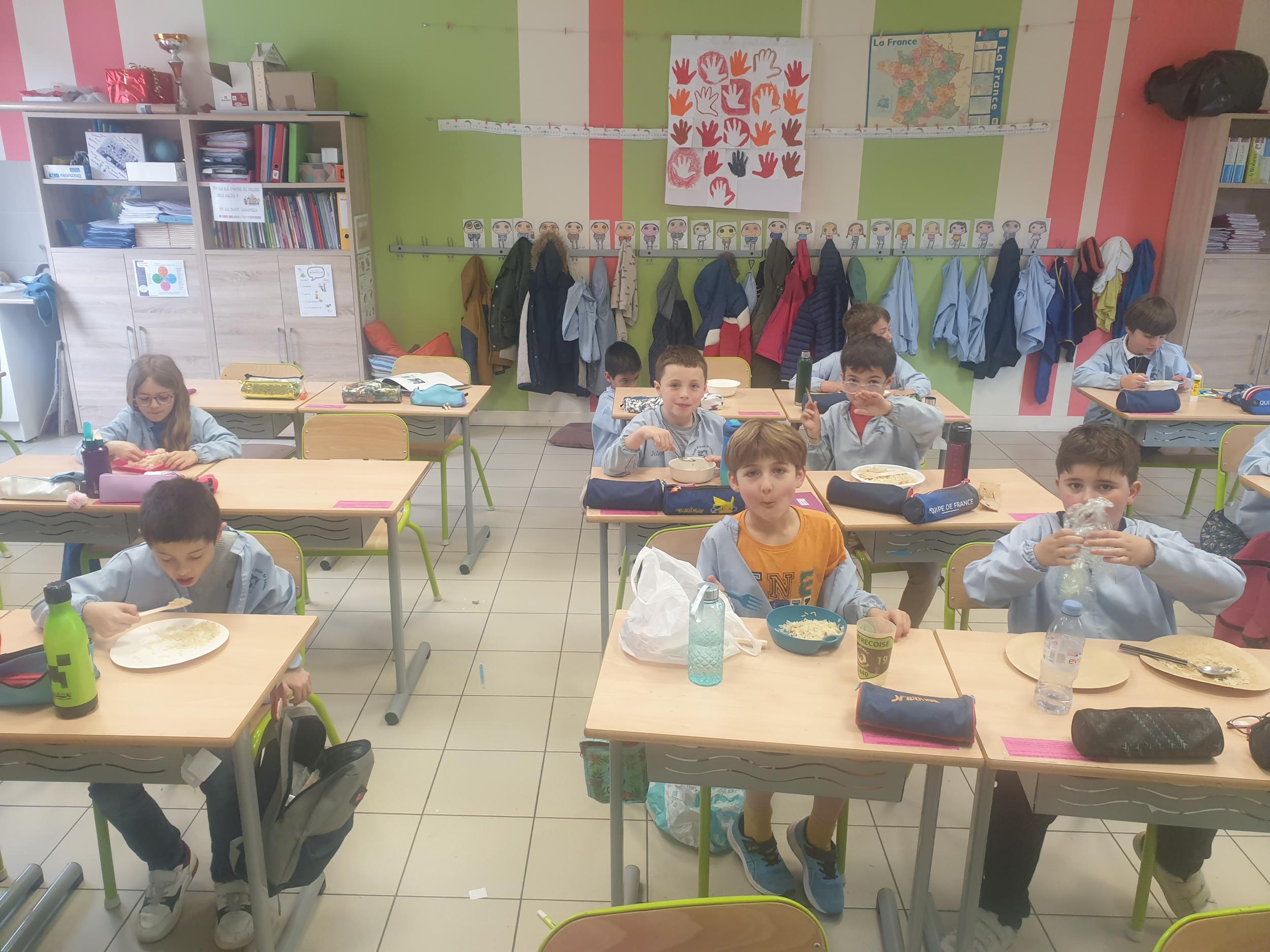 Vendredi 29 mars nous avons fait le bol de riz dans toute l'école, mais avant la présidente de l'association Go Gaby est venue nous présenter Gabriel, son fils, l'enfant pour qui nous nous sommes mobilisés cette année. En effet, l'argent récolté est destiné à aider cet enfant qui souffre d'handicap moteur, pour qu'il puisse continuer à progresser et pour que ses parents puissent acheter du matériel pour lui rendre la vie un peu plus douce. Les enfants étaient heureux de pouvoir aider Gabriel et certains enfants qui ne mangent jamais à la cantine ont partagé le riz avec leurs camarades lors du vendredi saint.