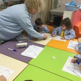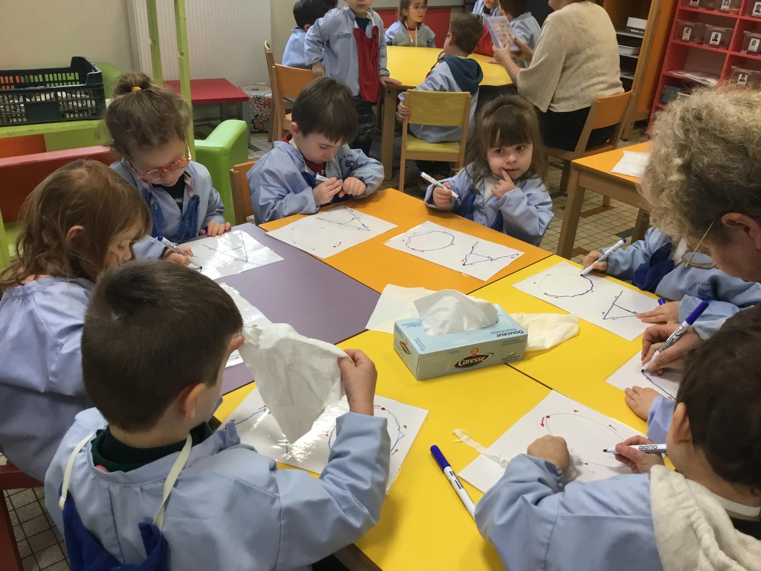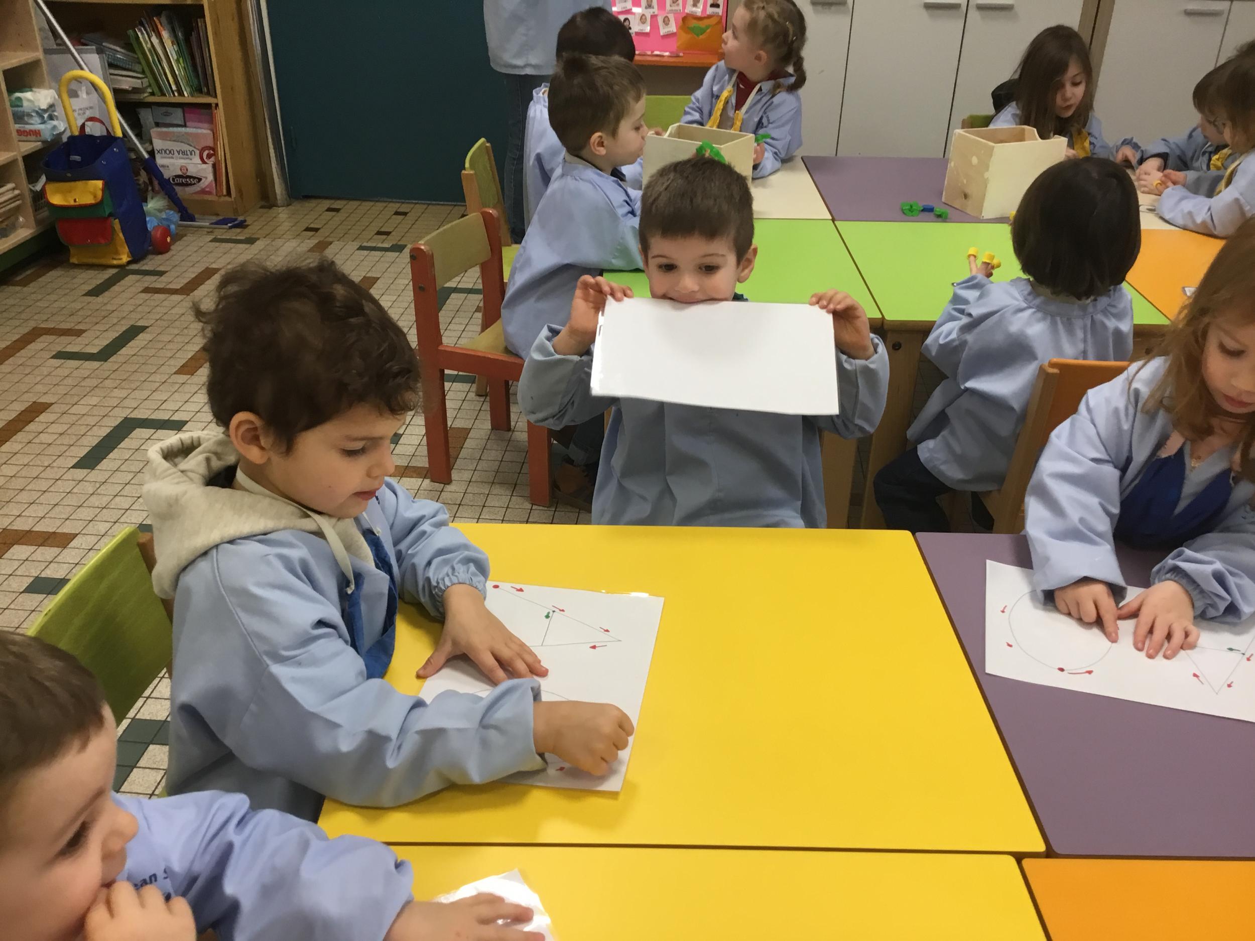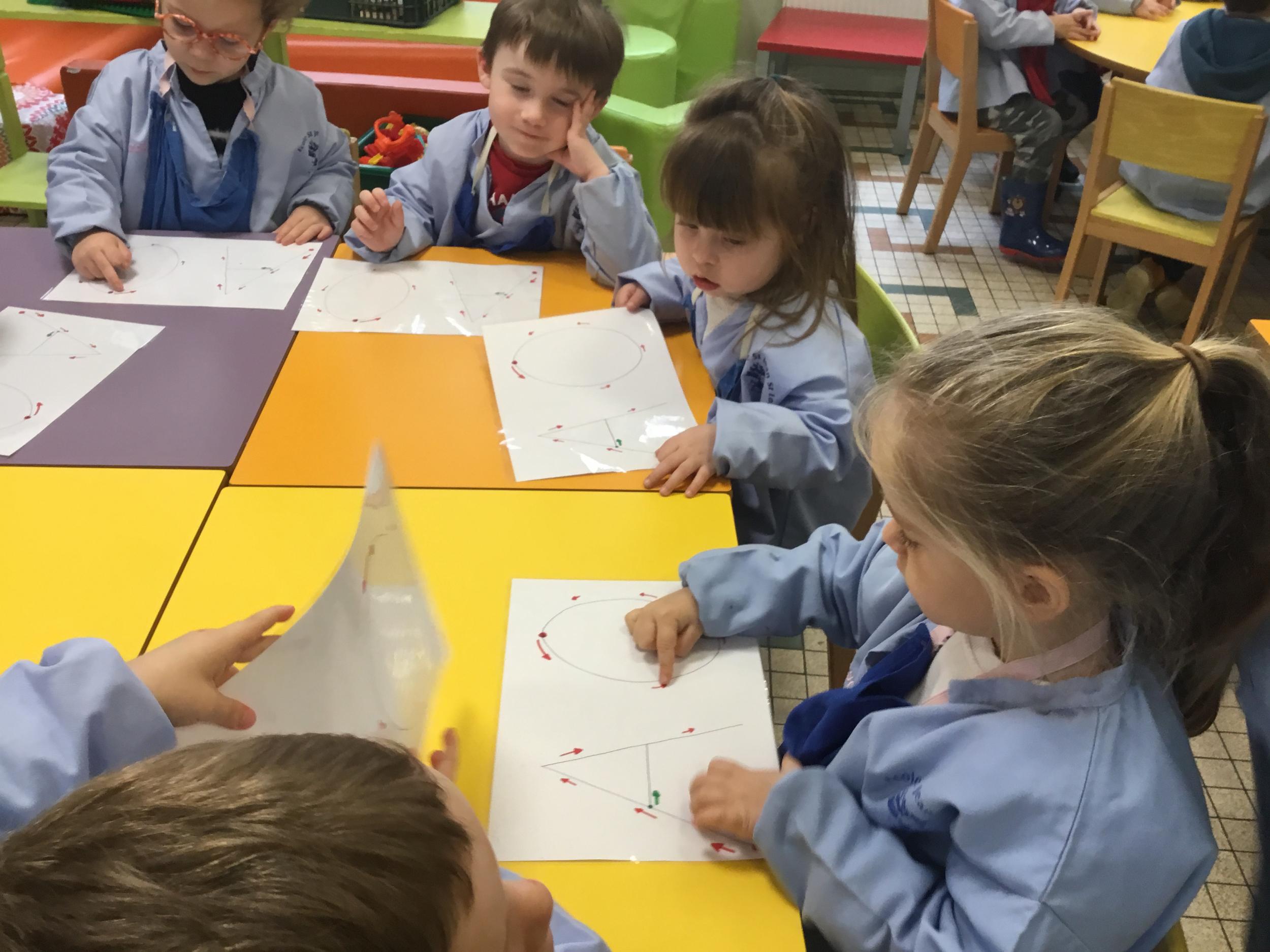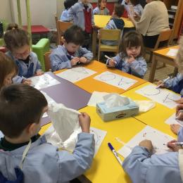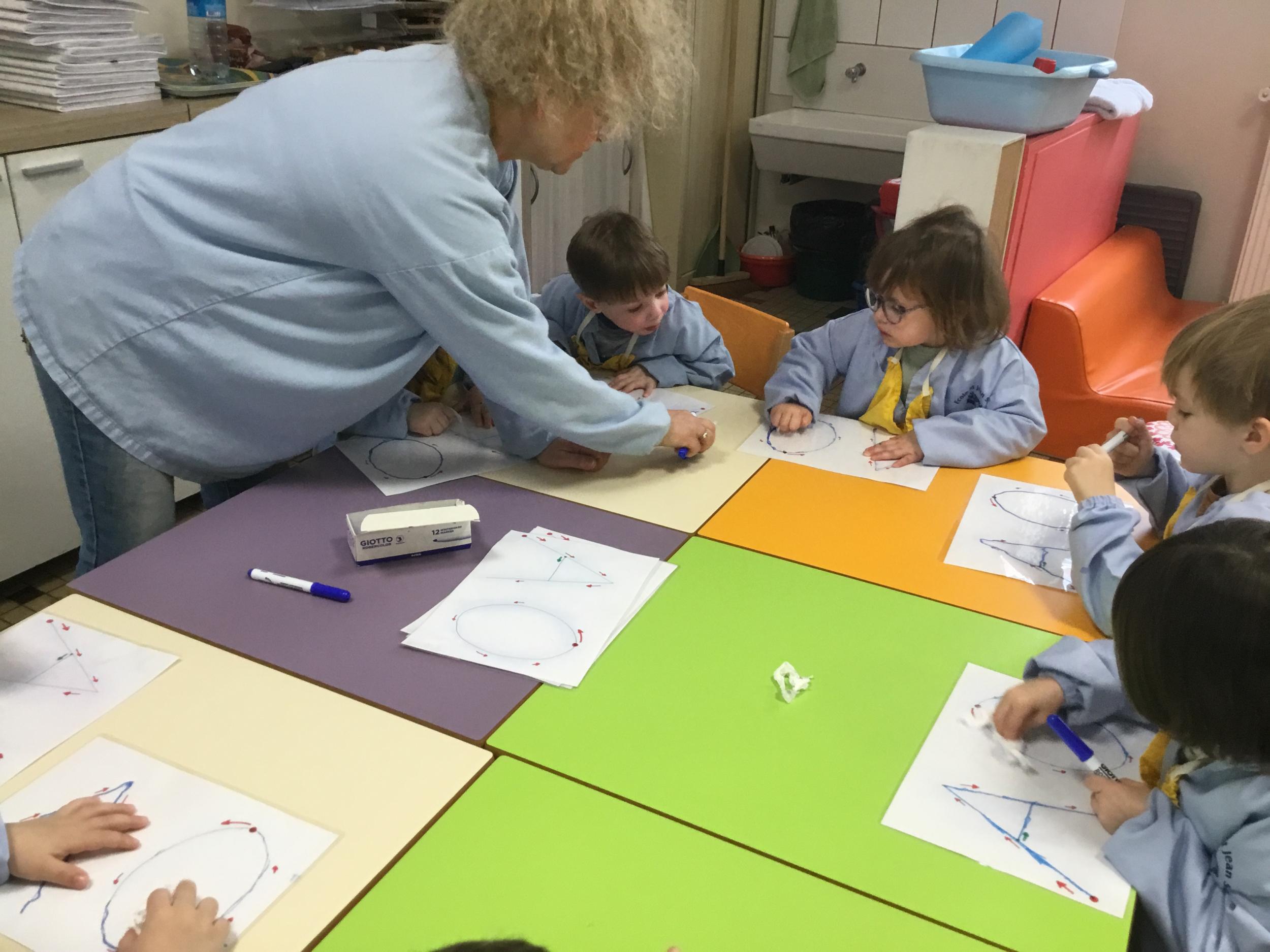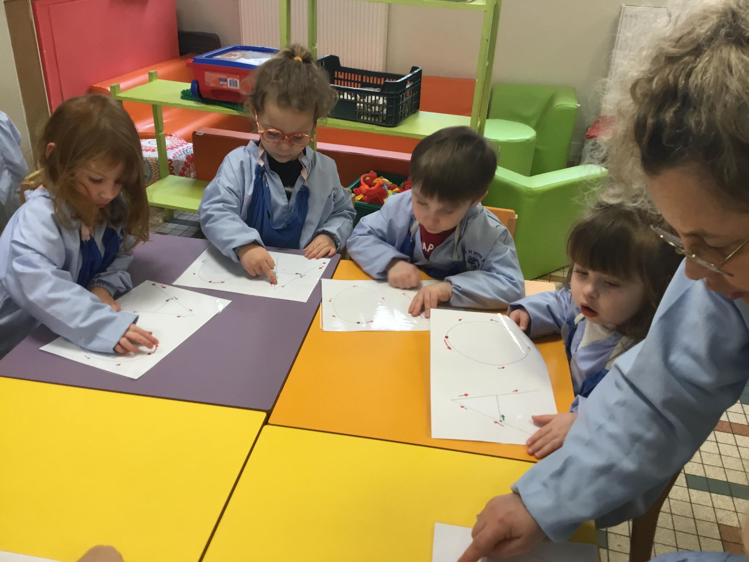 AAA…. OOO… mais nous avons aussi chanté A et O de plus en plus fort et de plus en plus doucement … Nous avons parlé de la forme de notre bouche quand on chanté A ou O … puis nous avons appris à tracer ces lettres en suivant le sens des lettres… tout un programme !