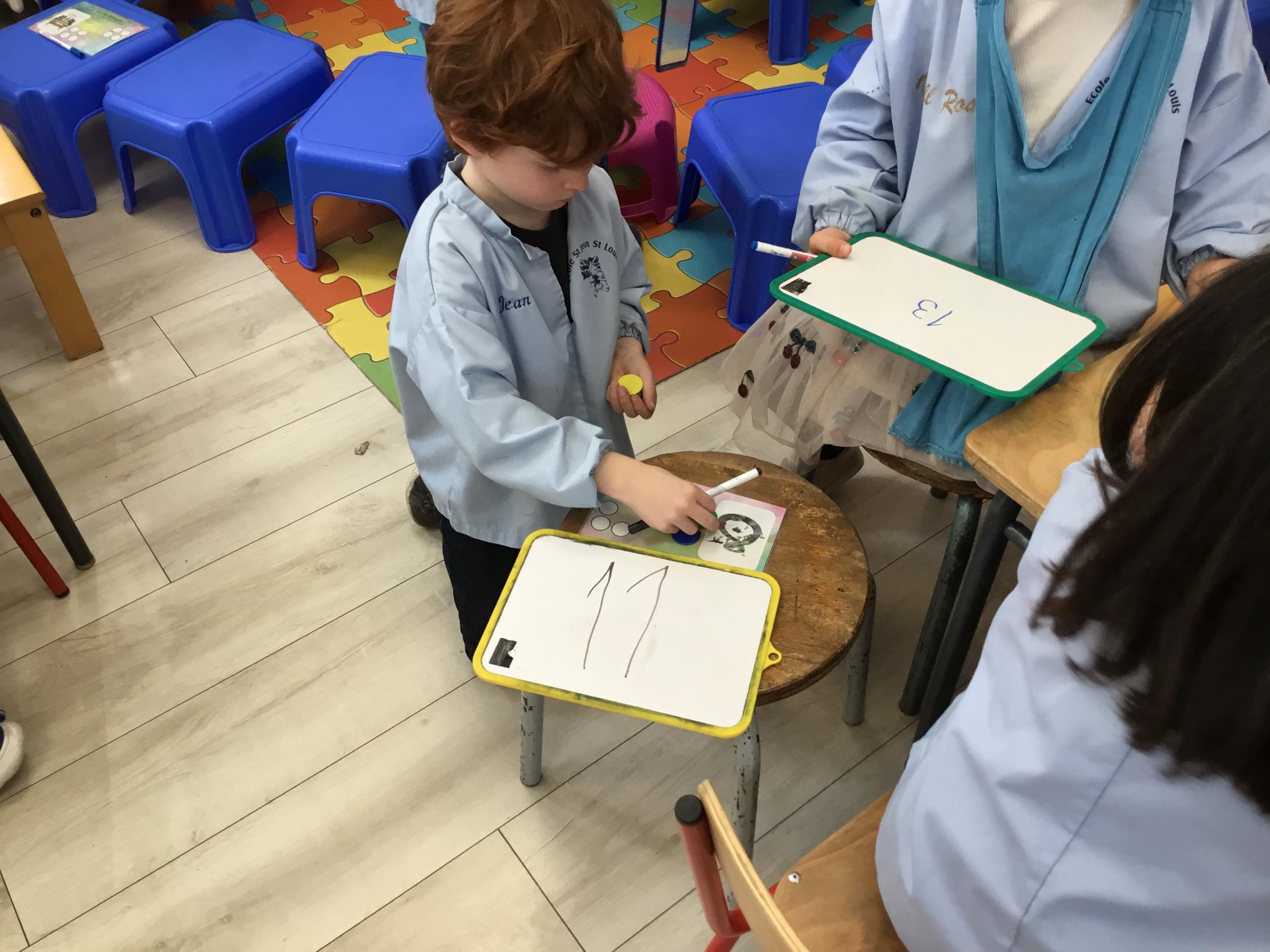 Tout d’abord, oralement puis sans parler en écrivant le nombre sur son ardoise, et le banquier à son tour doit réussir à lire le nombre.