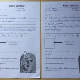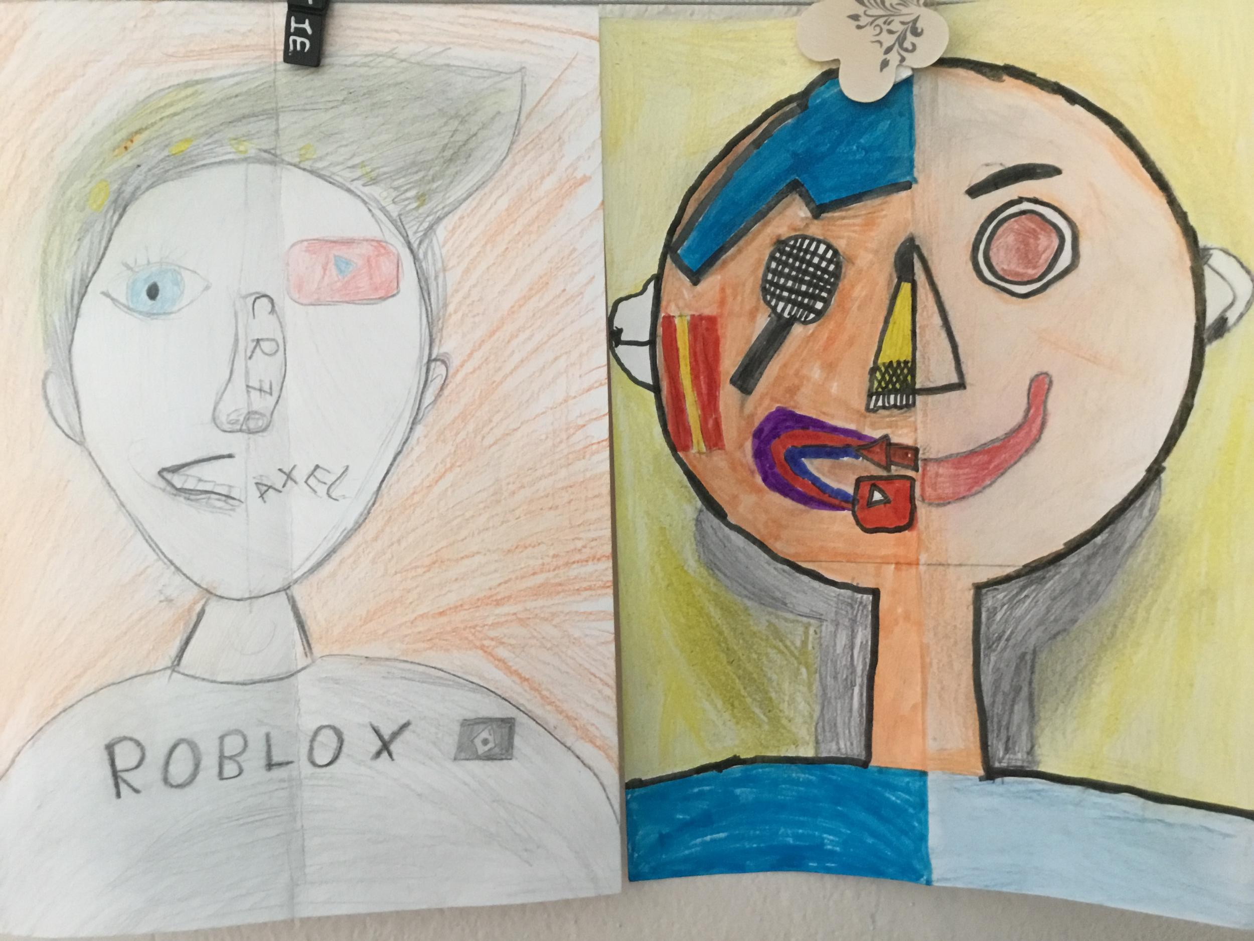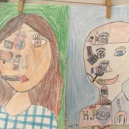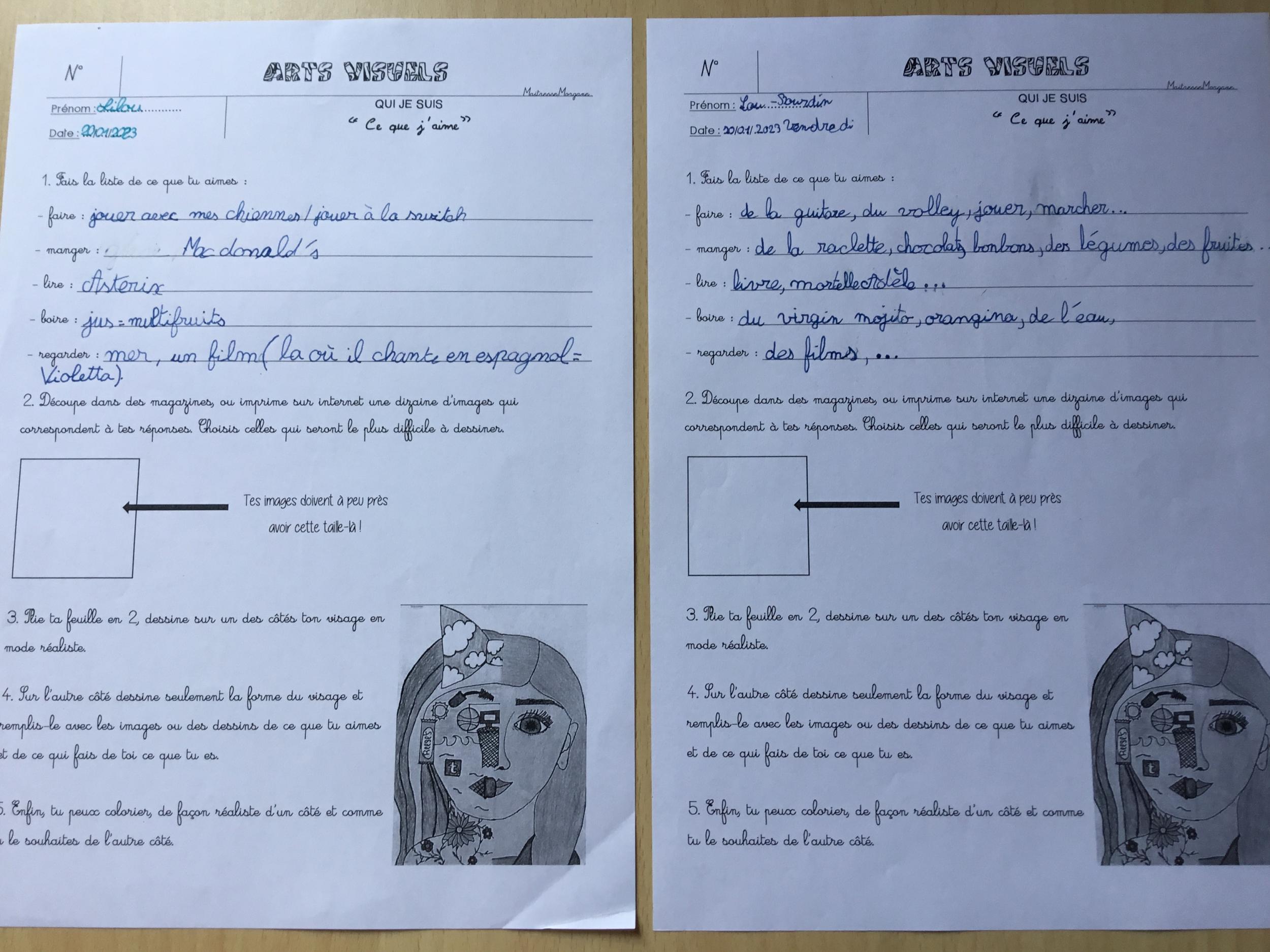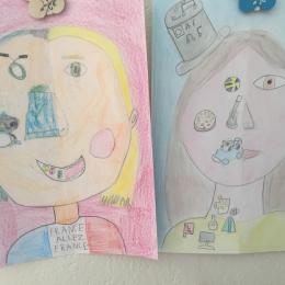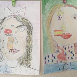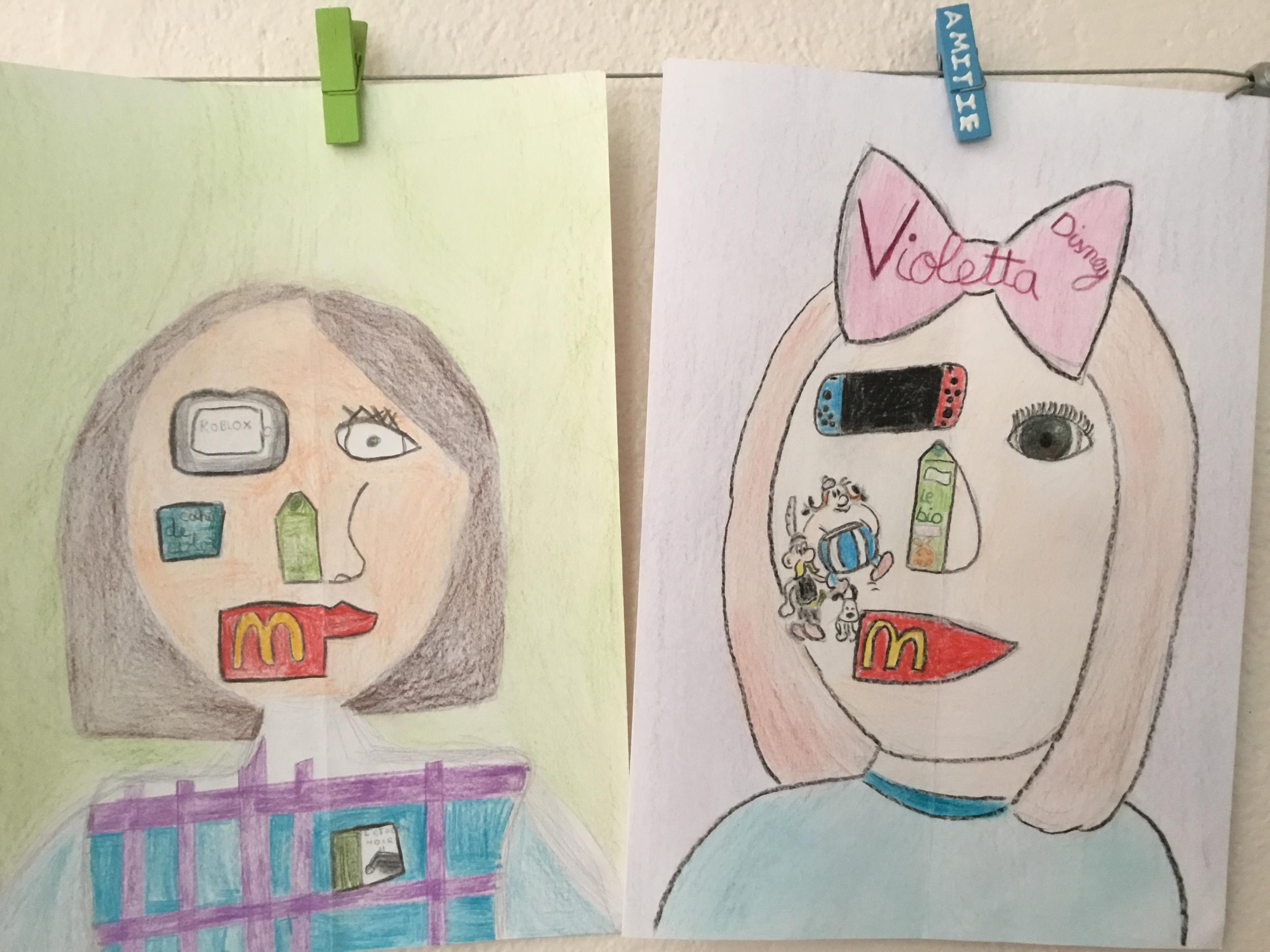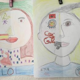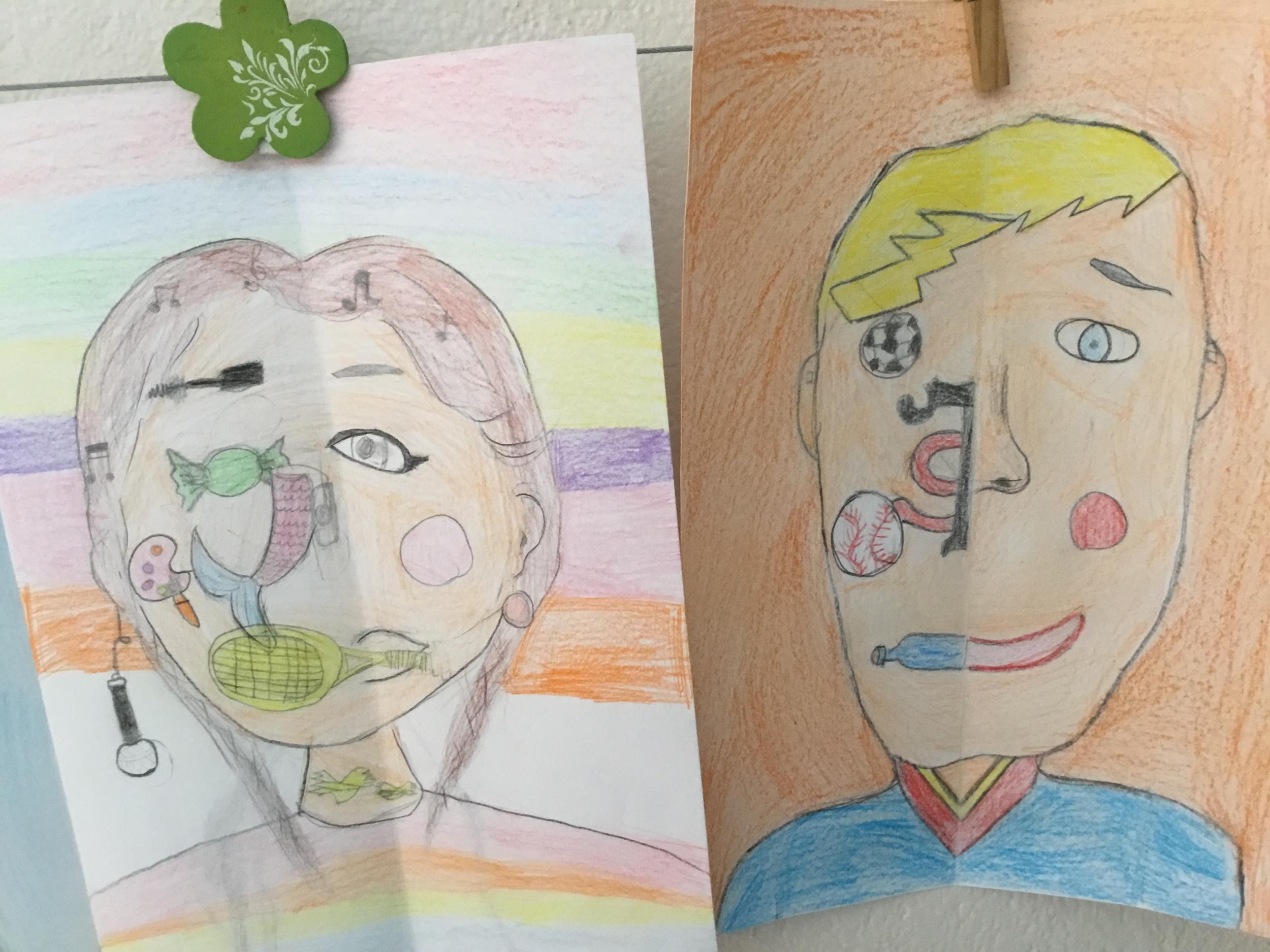 Depuis le début de l’année, les élèves travaillent autour du portrait. Voici leurs nouvelles œuvres. Un portrait qui permet aux autres élèves de mieux connaitre leurs camarades; un portrait qui montre pour une moitié du visage un portrait physique et pour l’autre moitié ce qu’ils sont. Au préalable, un travail de réflexion a été réalisé sur ce qu’ils aiment faire, lire, regarder, manger …