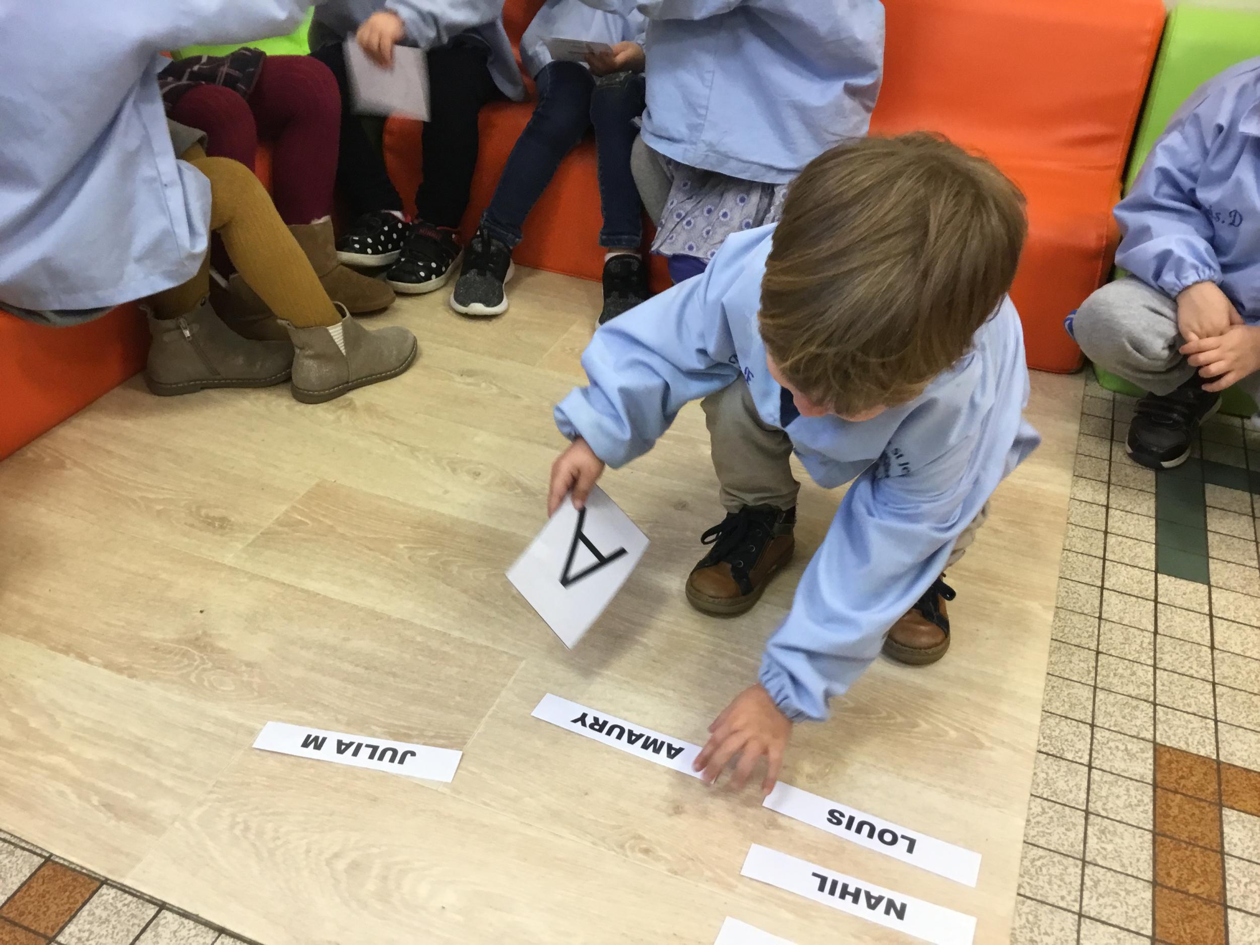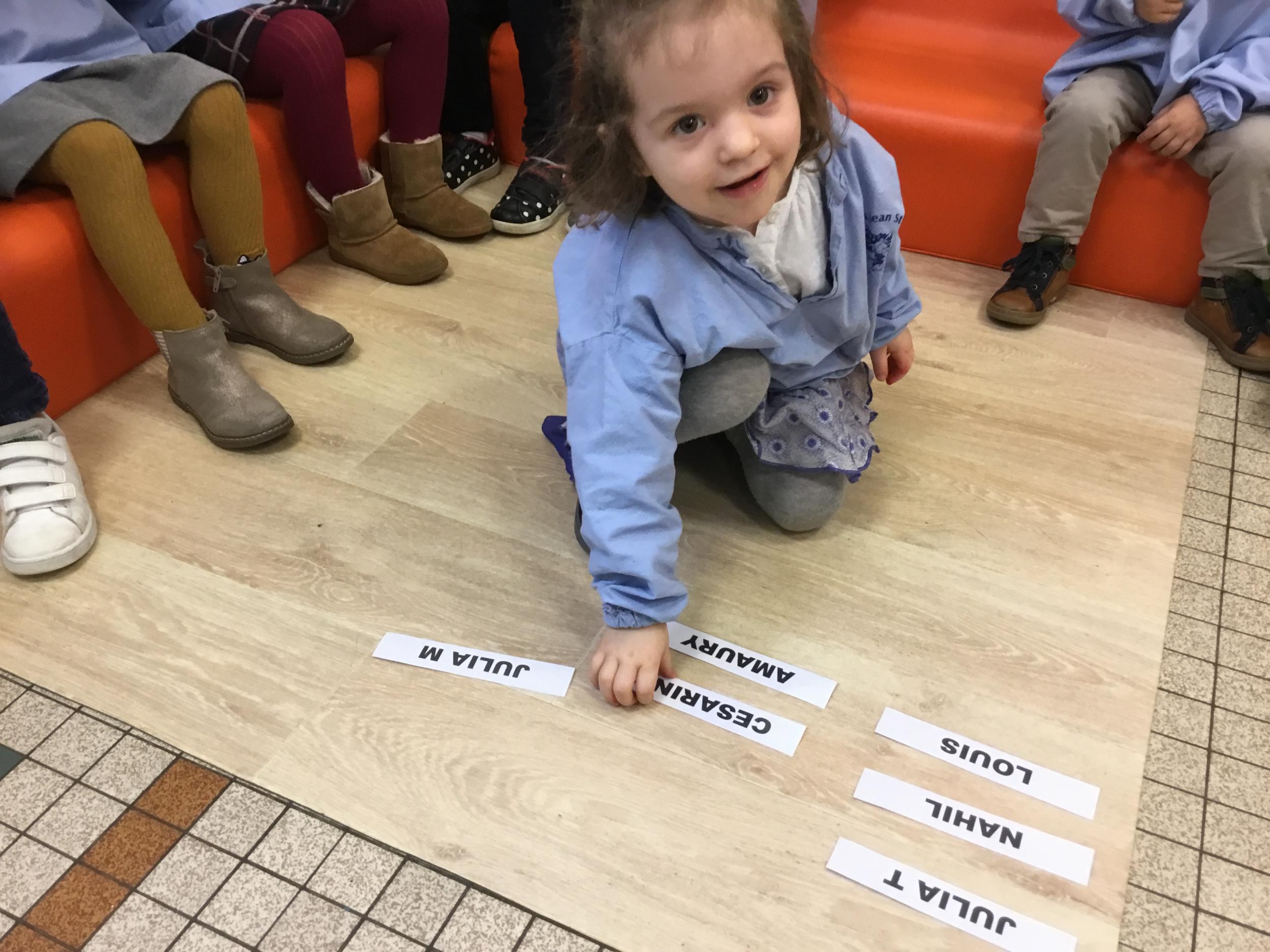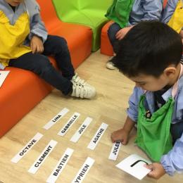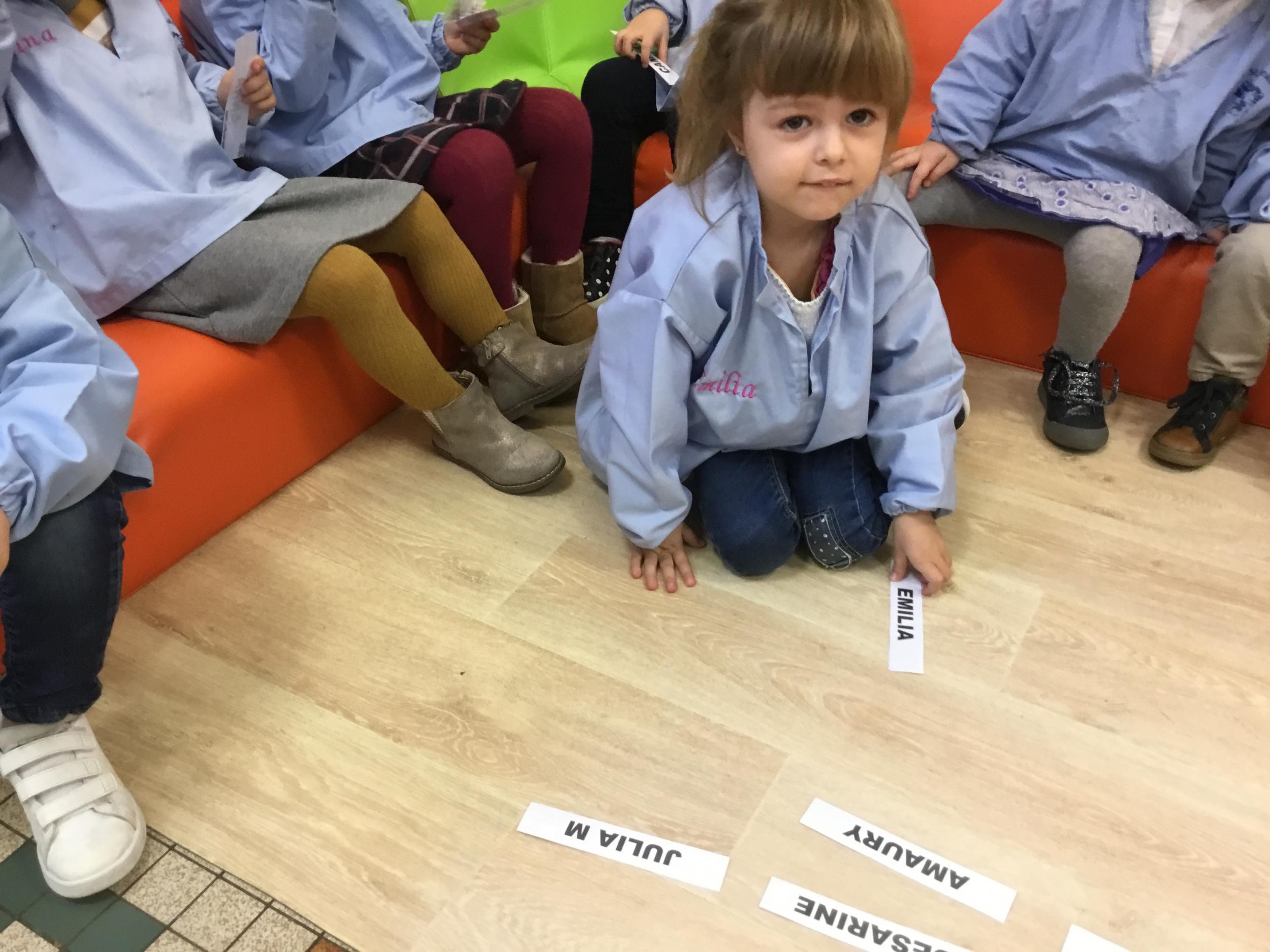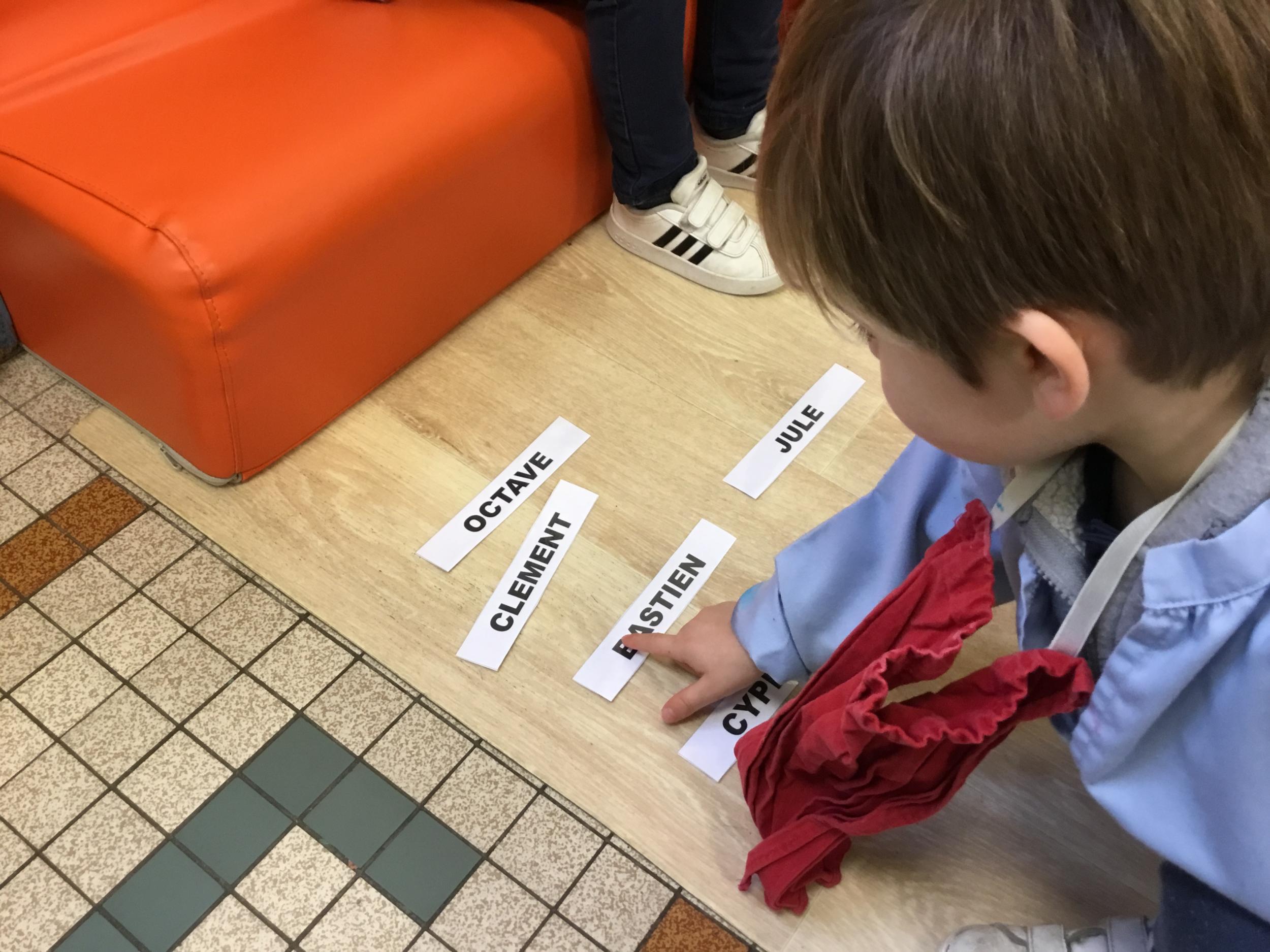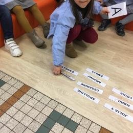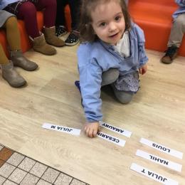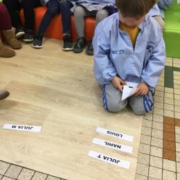 Pour cette troisième période, les élèves commencent à travailler autour de leur prénom. Dès ce lundi ils ont essayé de trouver leur prénom. Pour les aider, ils avaient l’initiale de leur prénom que l’on nommait: « Mon prénom commence par la lettre... ». Lorsqu’ils reconnaîtront tout seul leur prénom nous découperons la photo des étiquettes pour la cantine ou le repas à la maison.