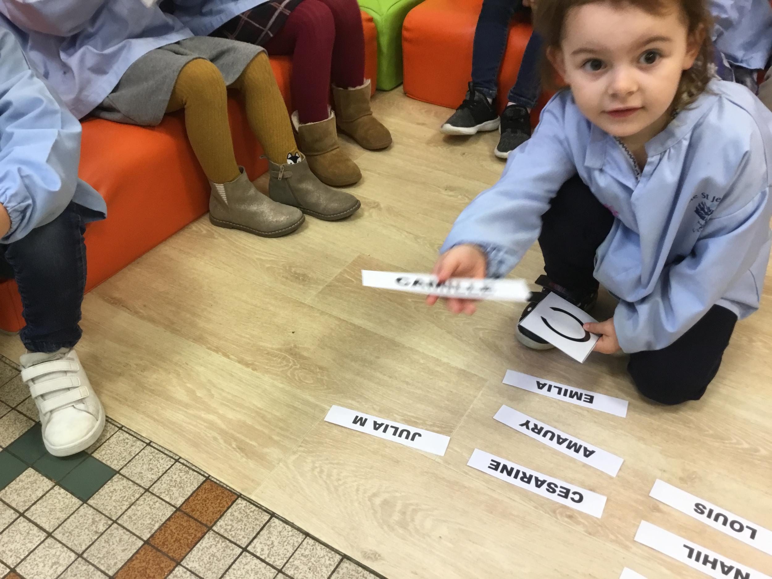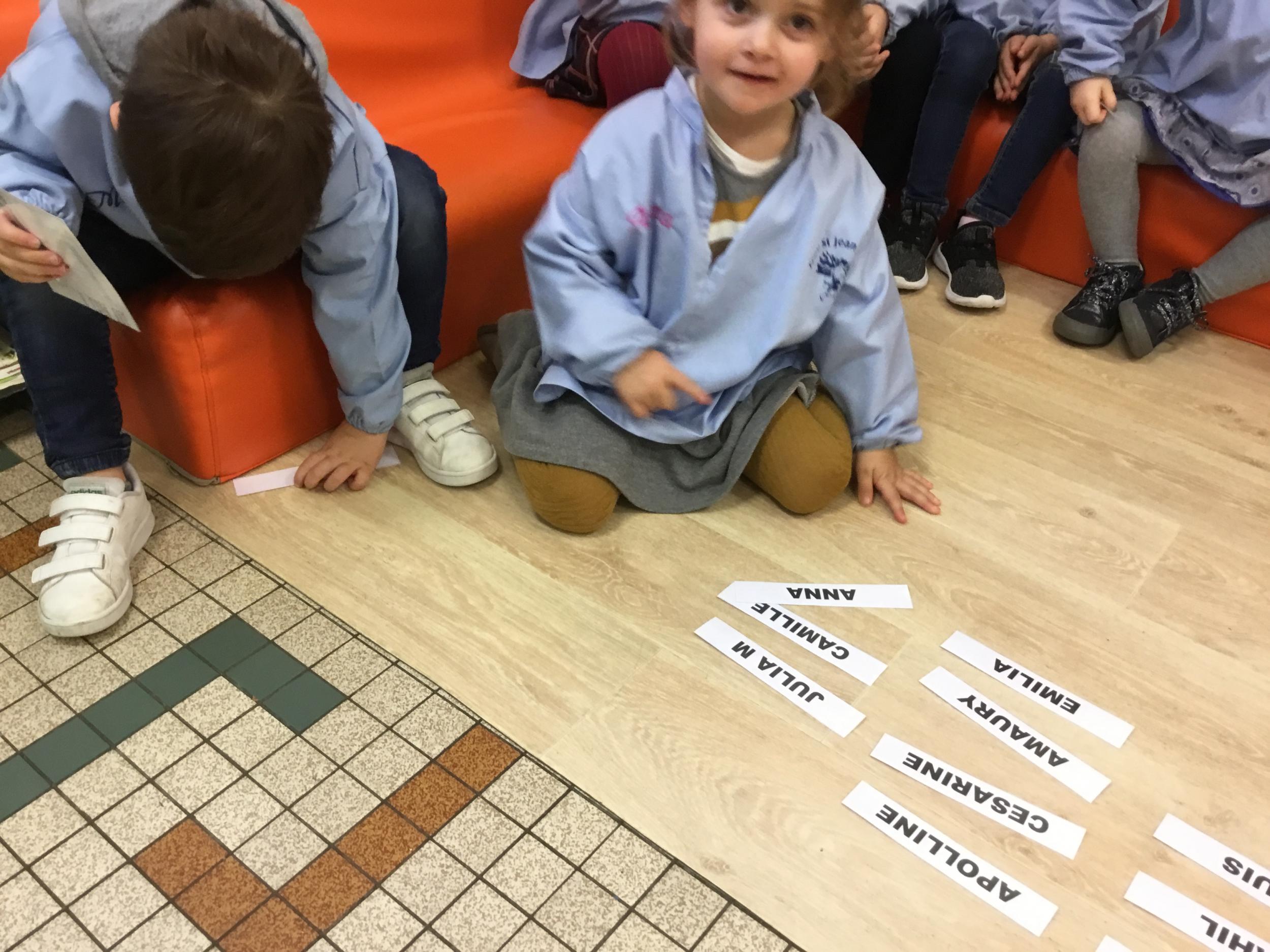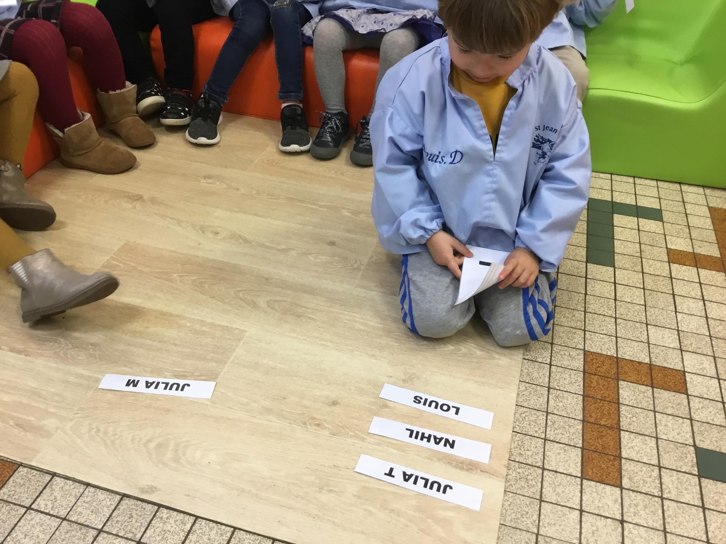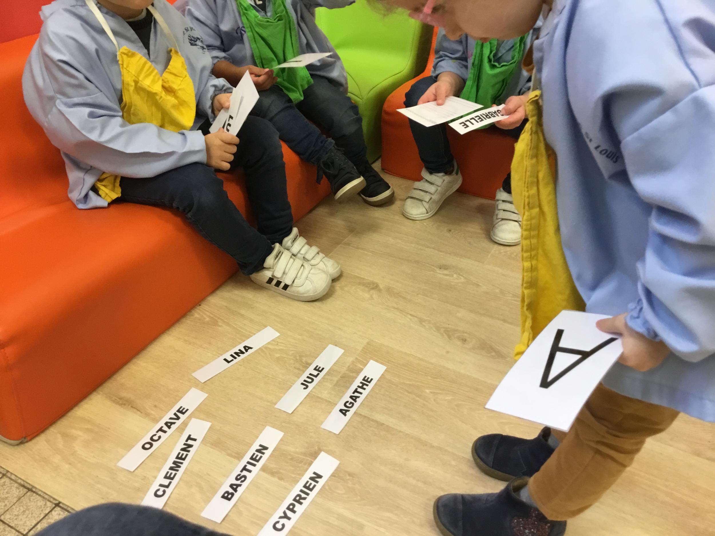 Pour cette troisième période, les élèves commencent à travailler autour de leur prénom. Dès ce lundi ils ont essayé de trouver leur prénom. Pour les aider, ils avaient l’initiale de leur prénom que l’on nommait: « Mon prénom commence par la lettre... ». Lorsqu’ils reconnaîtront tout seul leur prénom nous découperons la photo des étiquettes pour la cantine ou le repas à la maison.