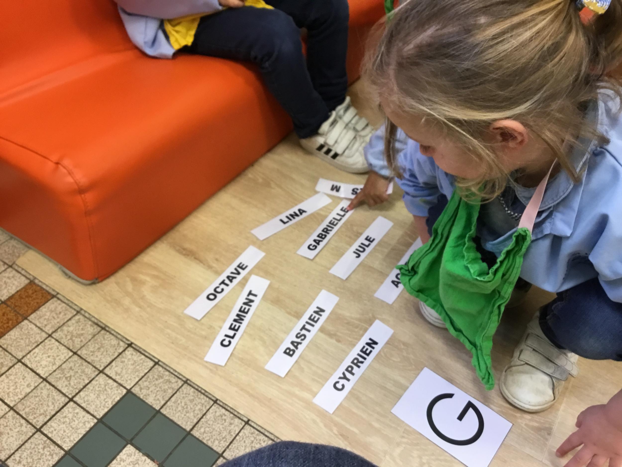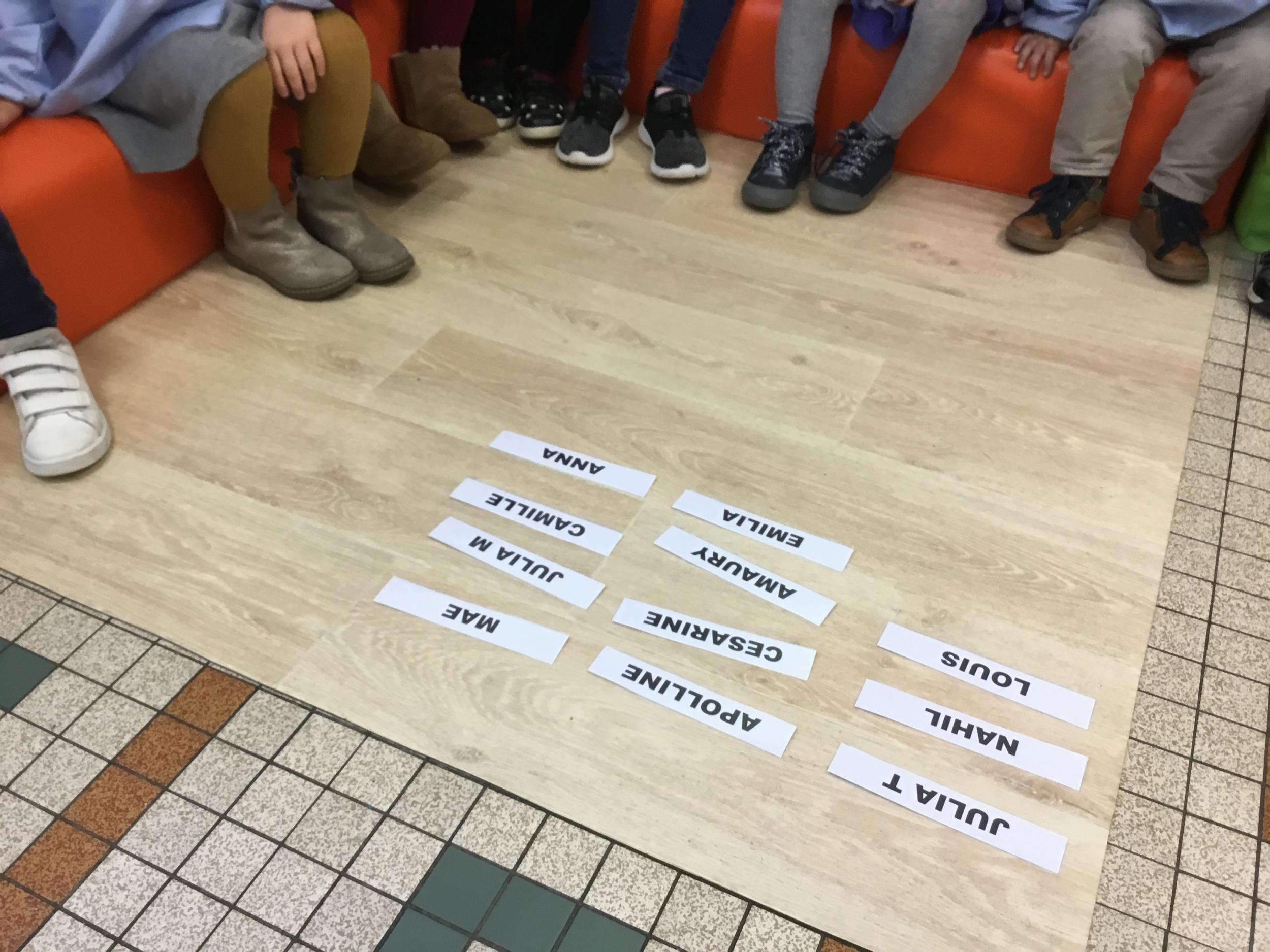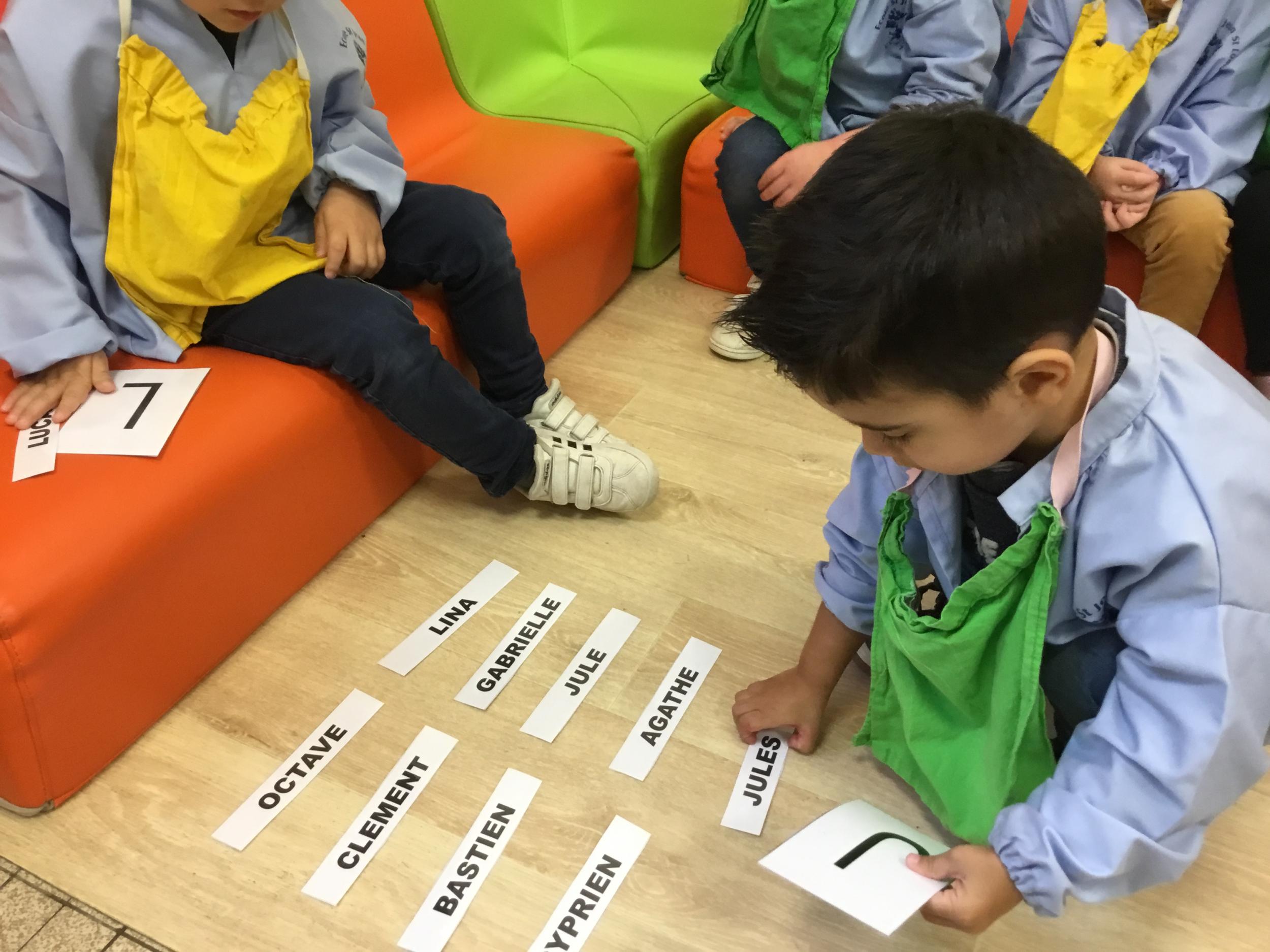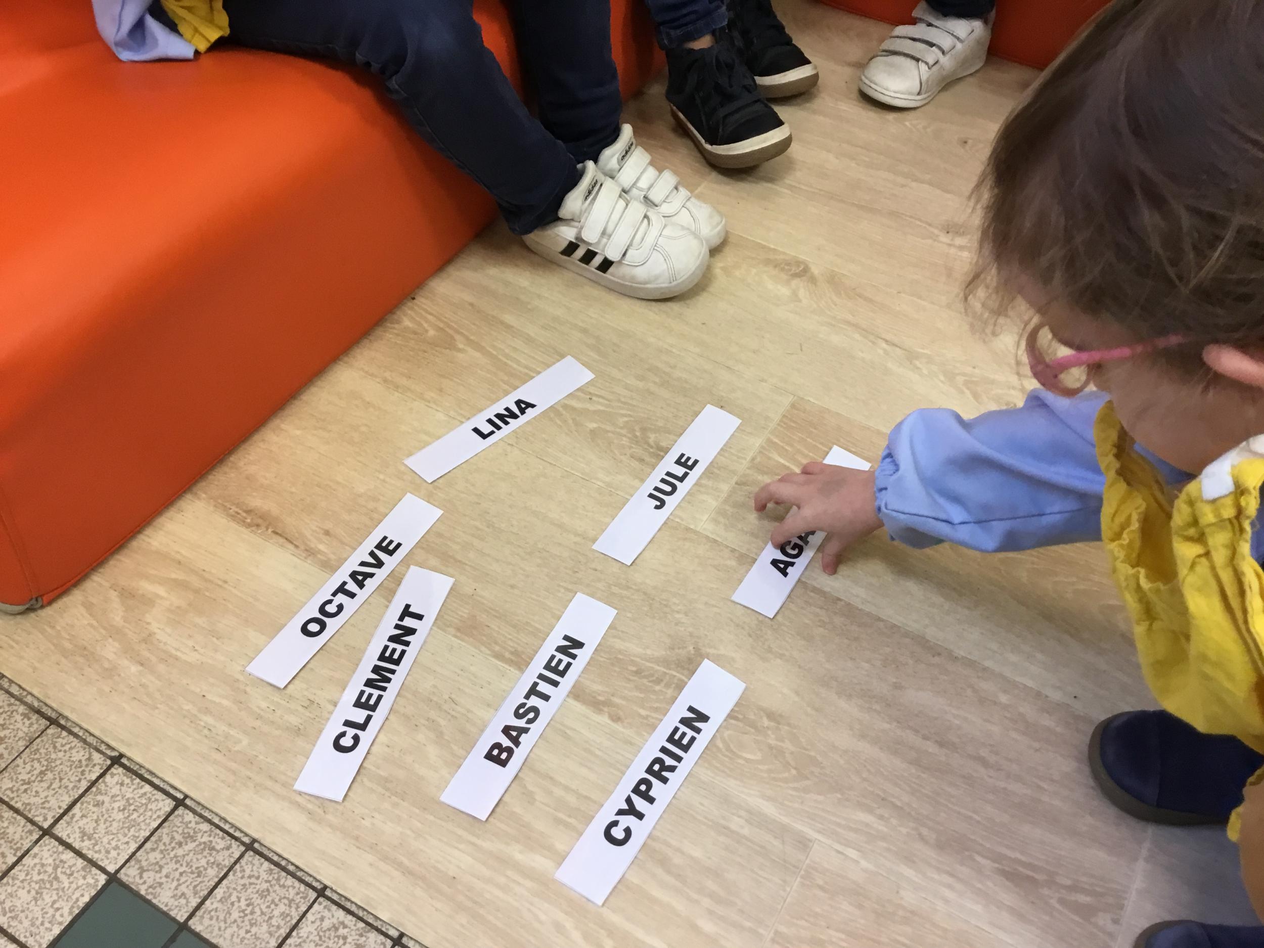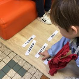 Pour cette troisième période, les élèves commencent à travailler autour de leur prénom. Dès ce lundi ils ont essayé de trouver leur prénom. Pour les aider, ils avaient l’initiale de leur prénom que l’on nommait: « Mon prénom commence par la lettre... ». Lorsqu’ils reconnaîtront tout seul leur prénom nous découperons la photo des étiquettes pour la cantine ou le repas à la maison.