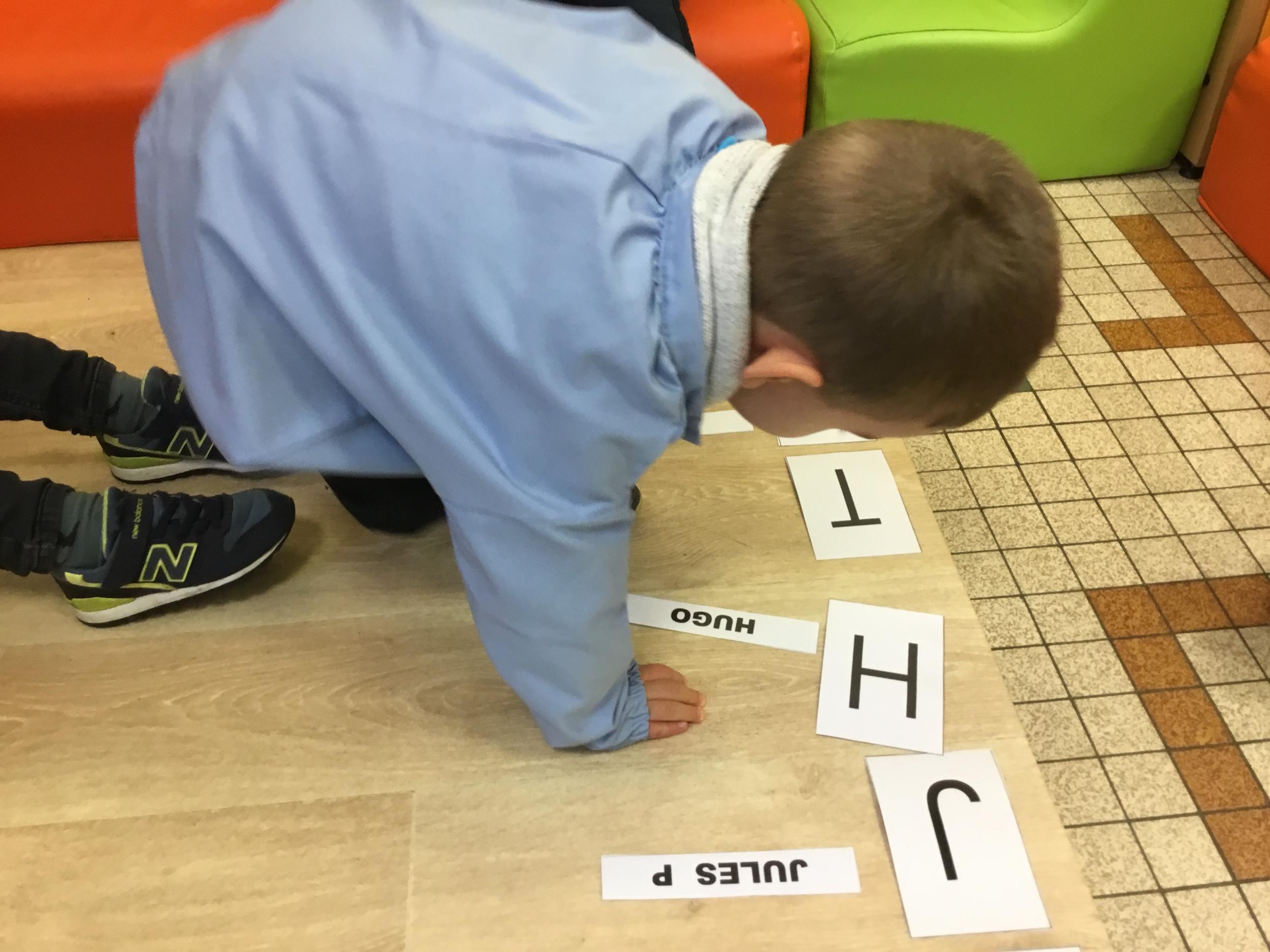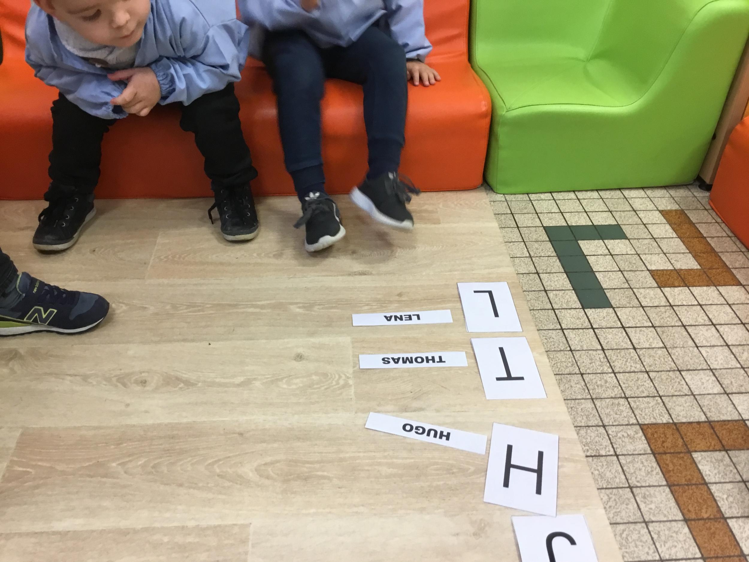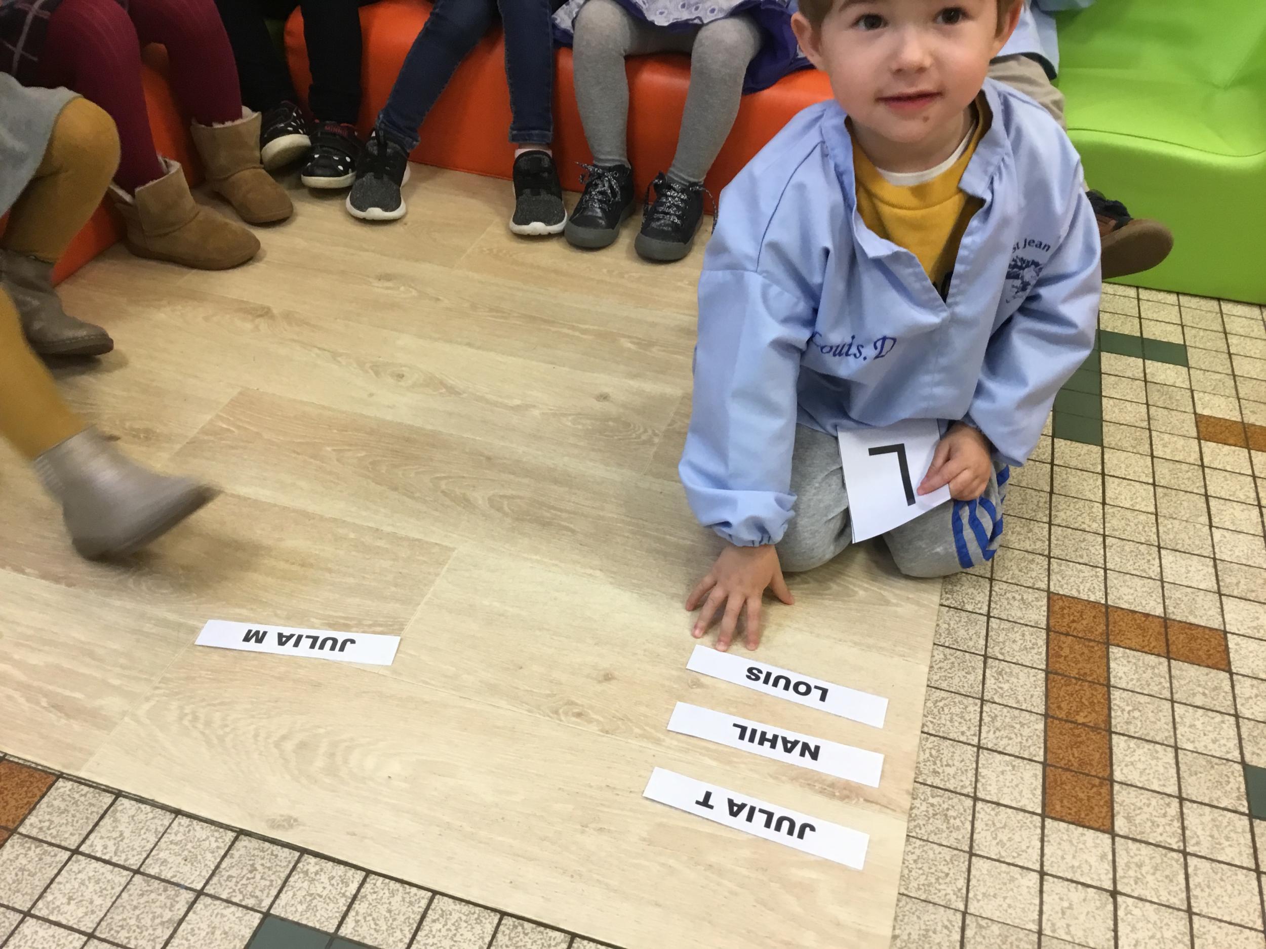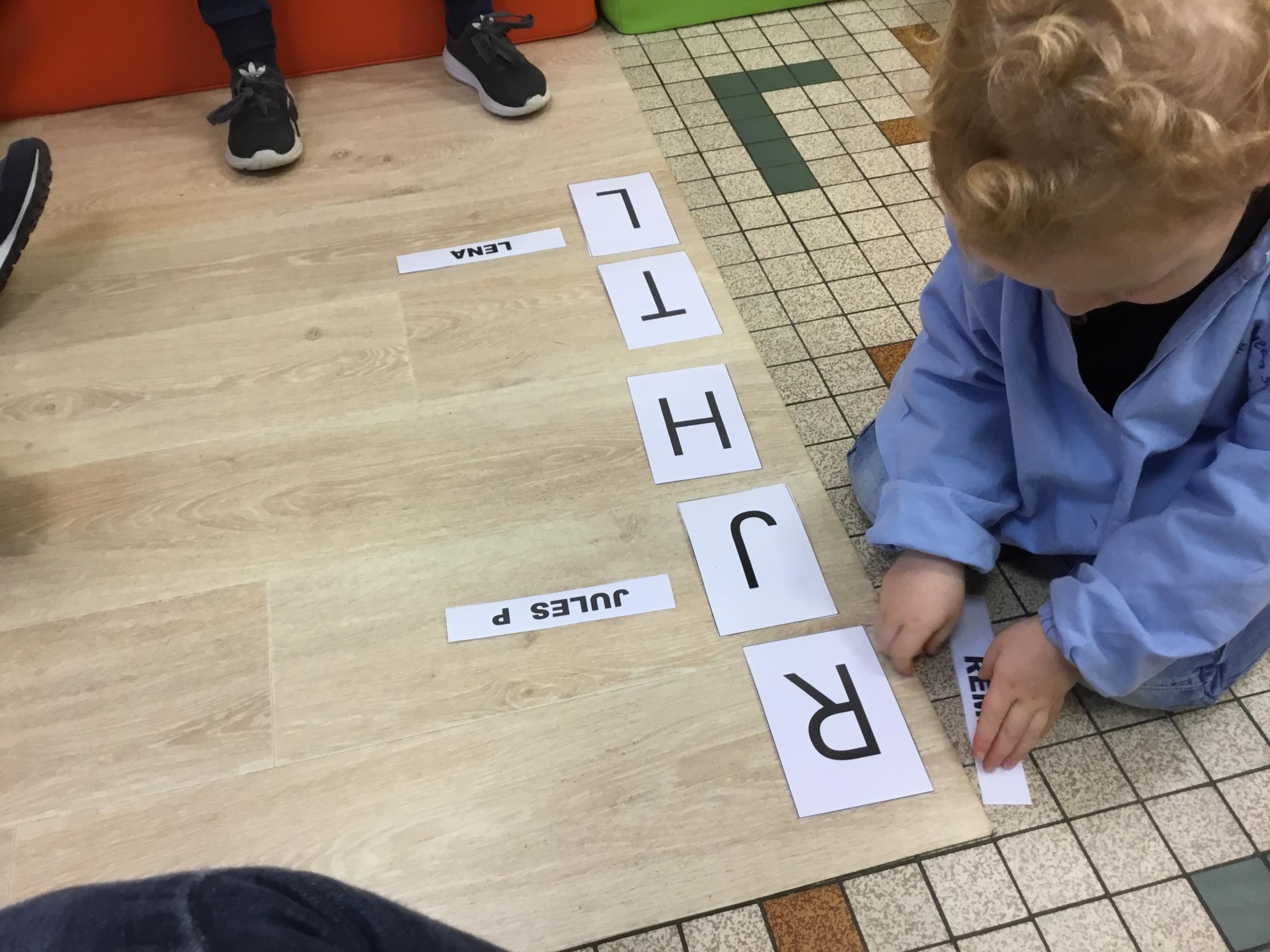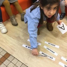Pour cette troisième période, les élèves commencent à travailler autour de leur prénom. Dès ce lundi ils ont essayé de trouver leur prénom. Pour les aider, ils avaient l’initiale de leur prénom que l’on nommait: « Mon prénom commence par la lettre... ». Lorsqu’ils reconnaîtront tout seul leur prénom nous découperons la photo des étiquettes pour la cantine ou le repas à la maison.