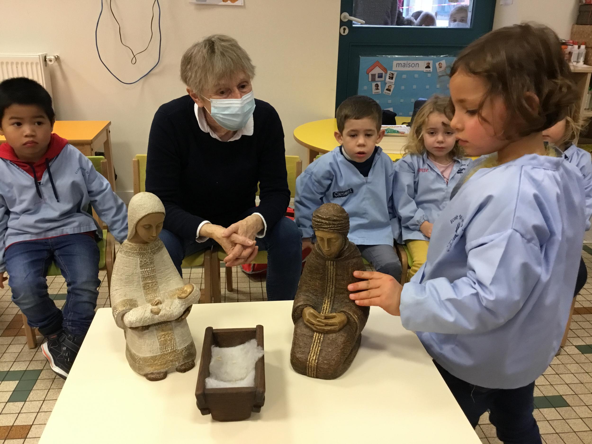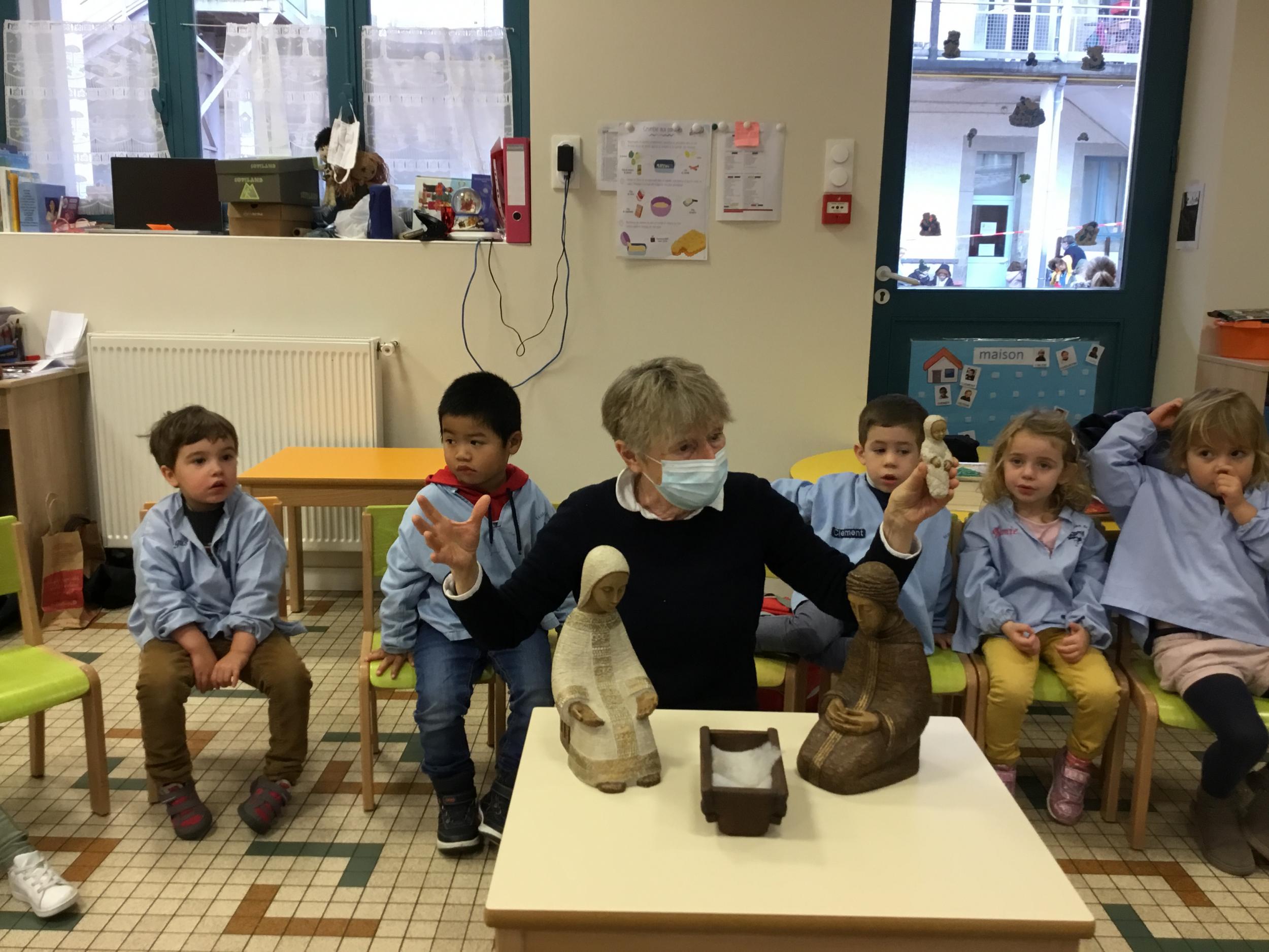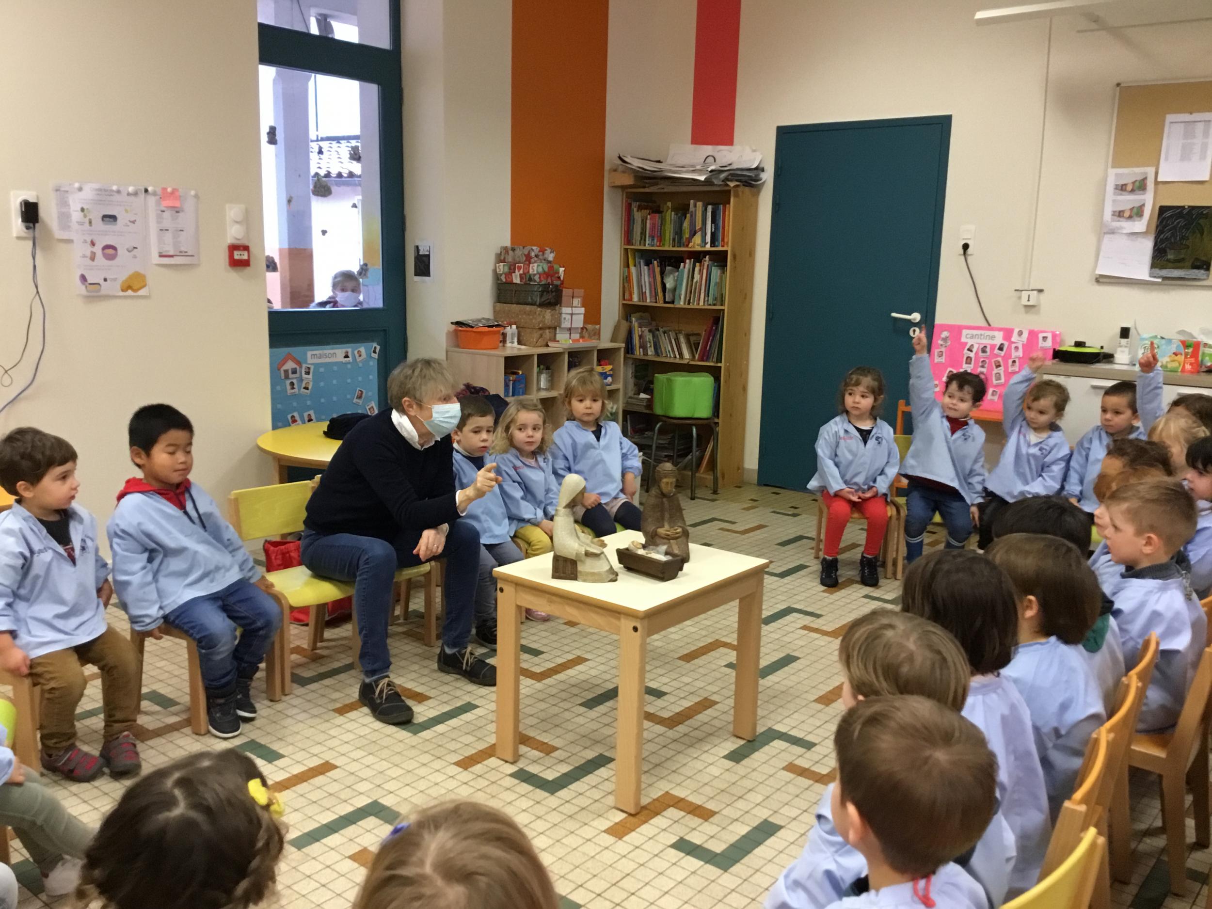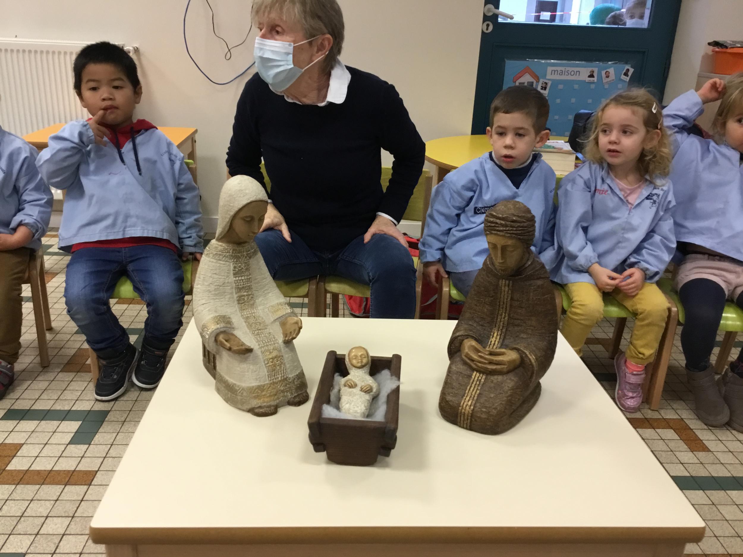 Geneviève Amen est venue nous raconter l’histoire de Marie et Joseph. Chacun a pu s’exprimer sur ce qu’il savait de Marie , de Joseph, de Jésus...puis Geneviève a expliqué le sens de la fête de Noël .. une fête où l’on se fait plaisir ou l’on donne de la joie , de l’amour .