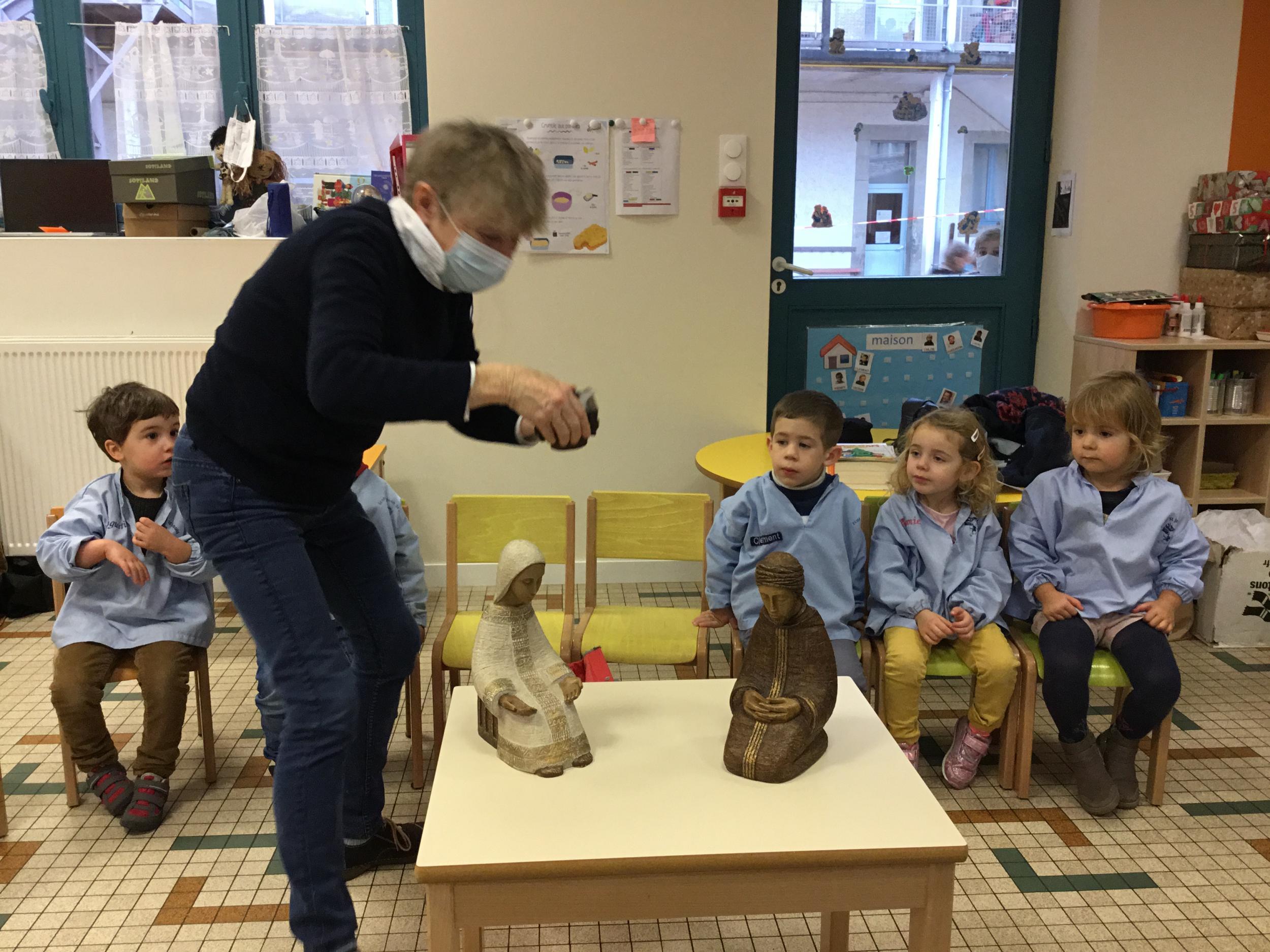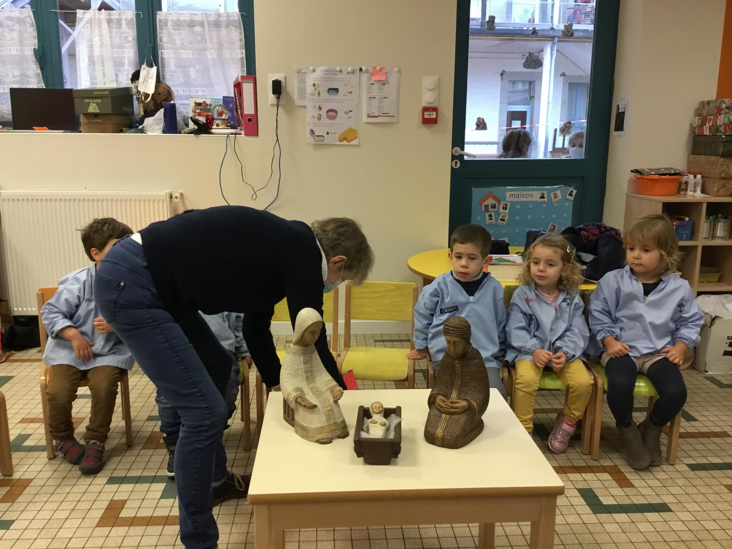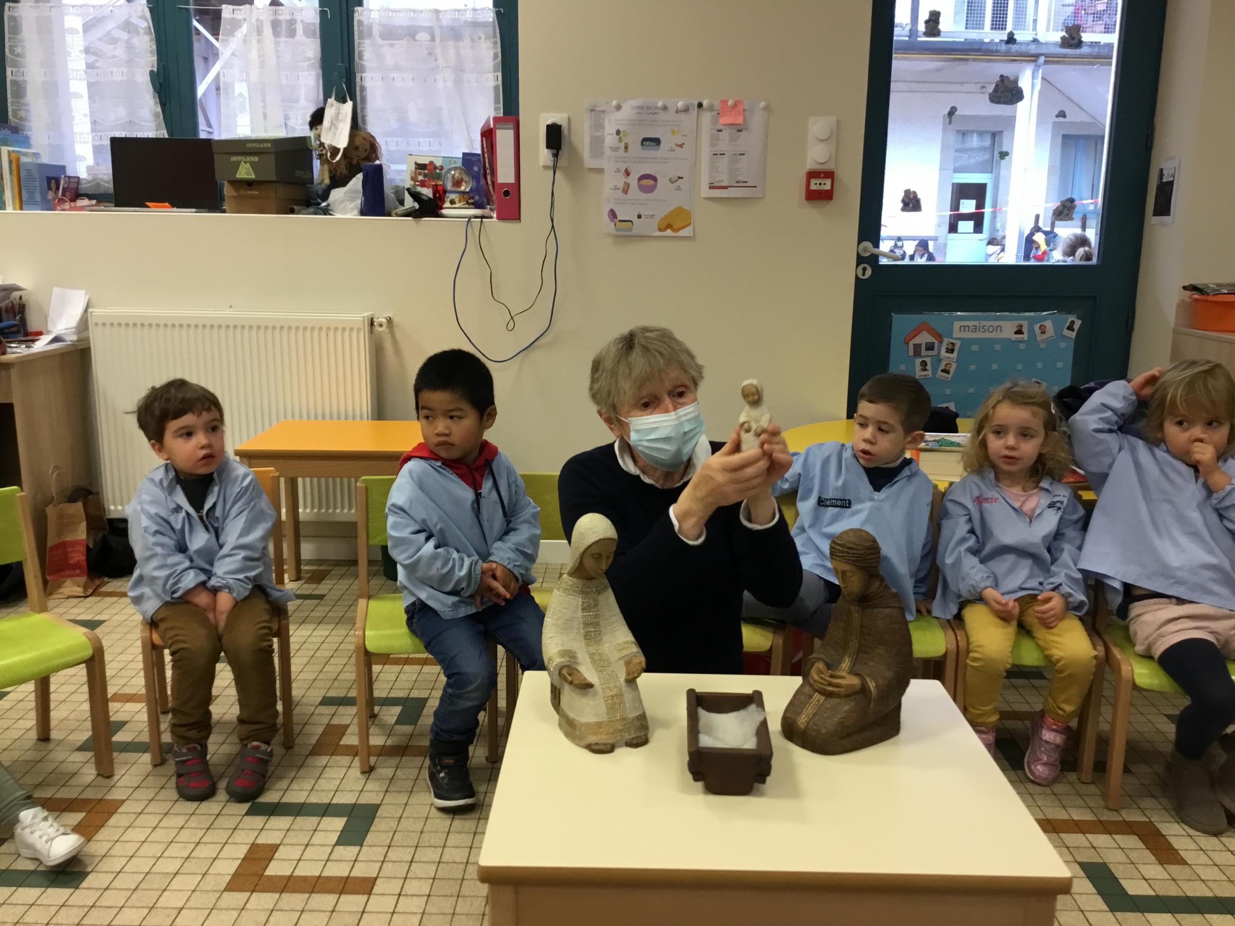 Geneviève Amen est venue nous raconter l’histoire de Marie et Joseph. Chacun a pu s’exprimer sur ce qu’il savait de Marie , de Joseph, de Jésus...puis Geneviève a expliqué le sens de la fête de Noël .. une fête où l’on se fait plaisir ou l’on donne de la joie , de l’amour .