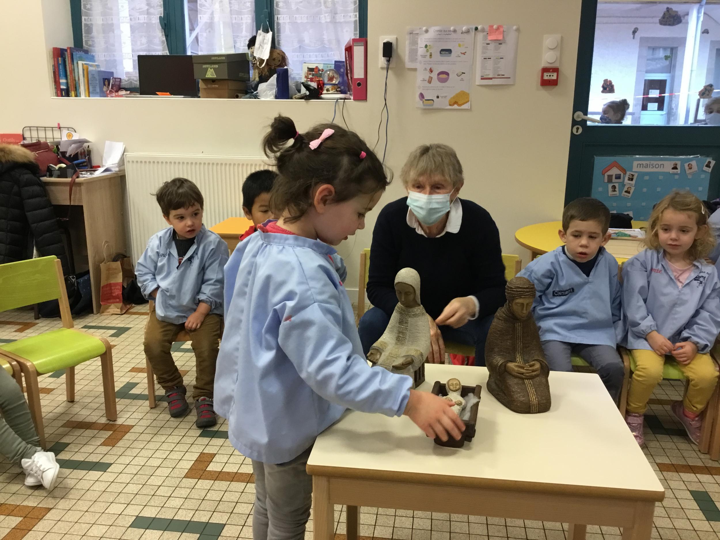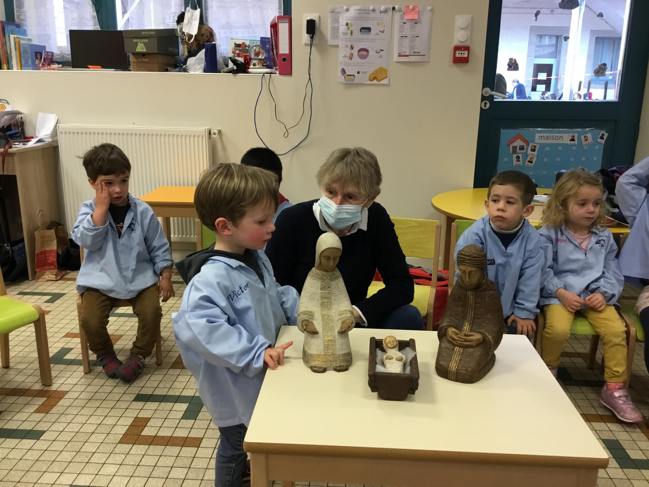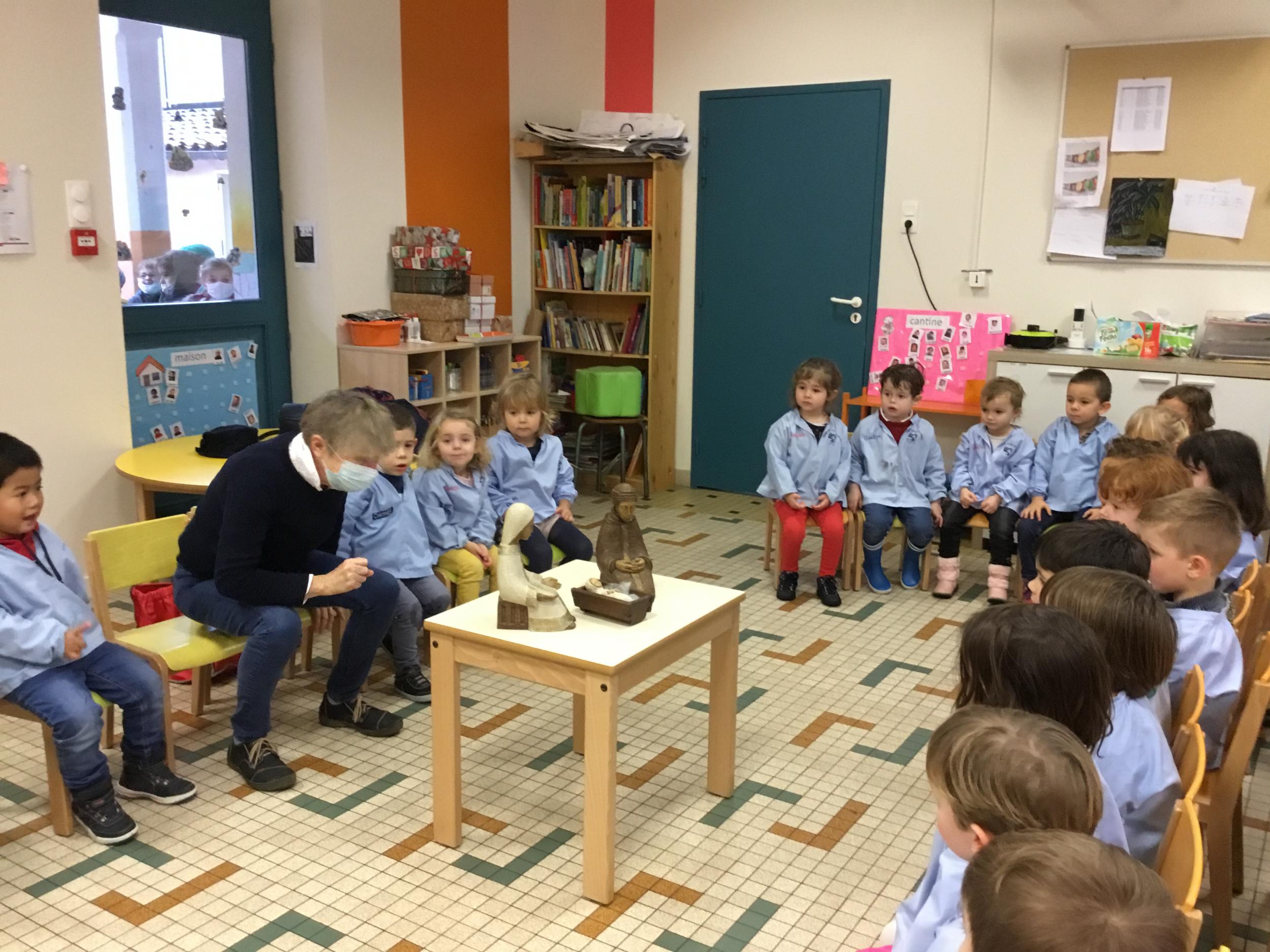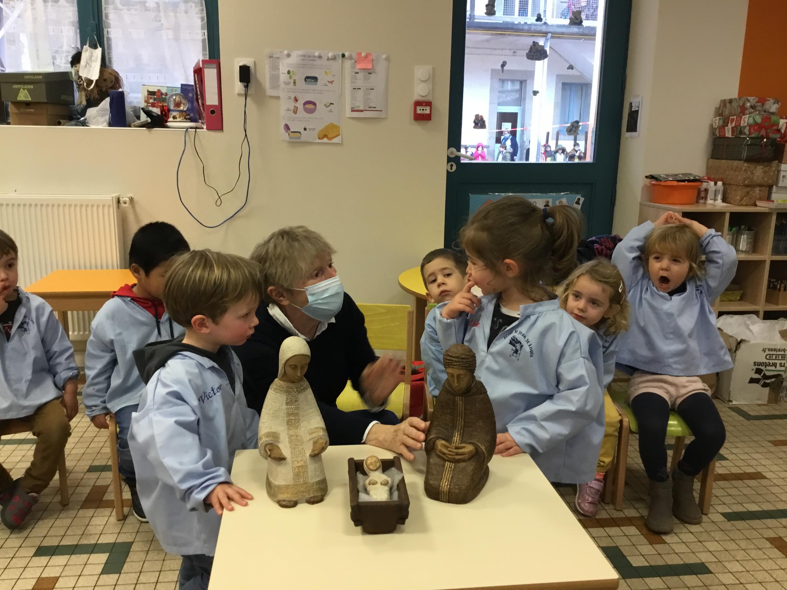Geneviève Amen est venue nous raconter l’histoire de Marie et Joseph. Chacun a pu s’exprimer sur ce qu’il savait de Marie , de Joseph, de Jésus...puis Geneviève a expliqué le sens de la fête de Noël .. une fête où l’on se fait plaisir ou l’on donne de la joie , de l’amour .