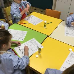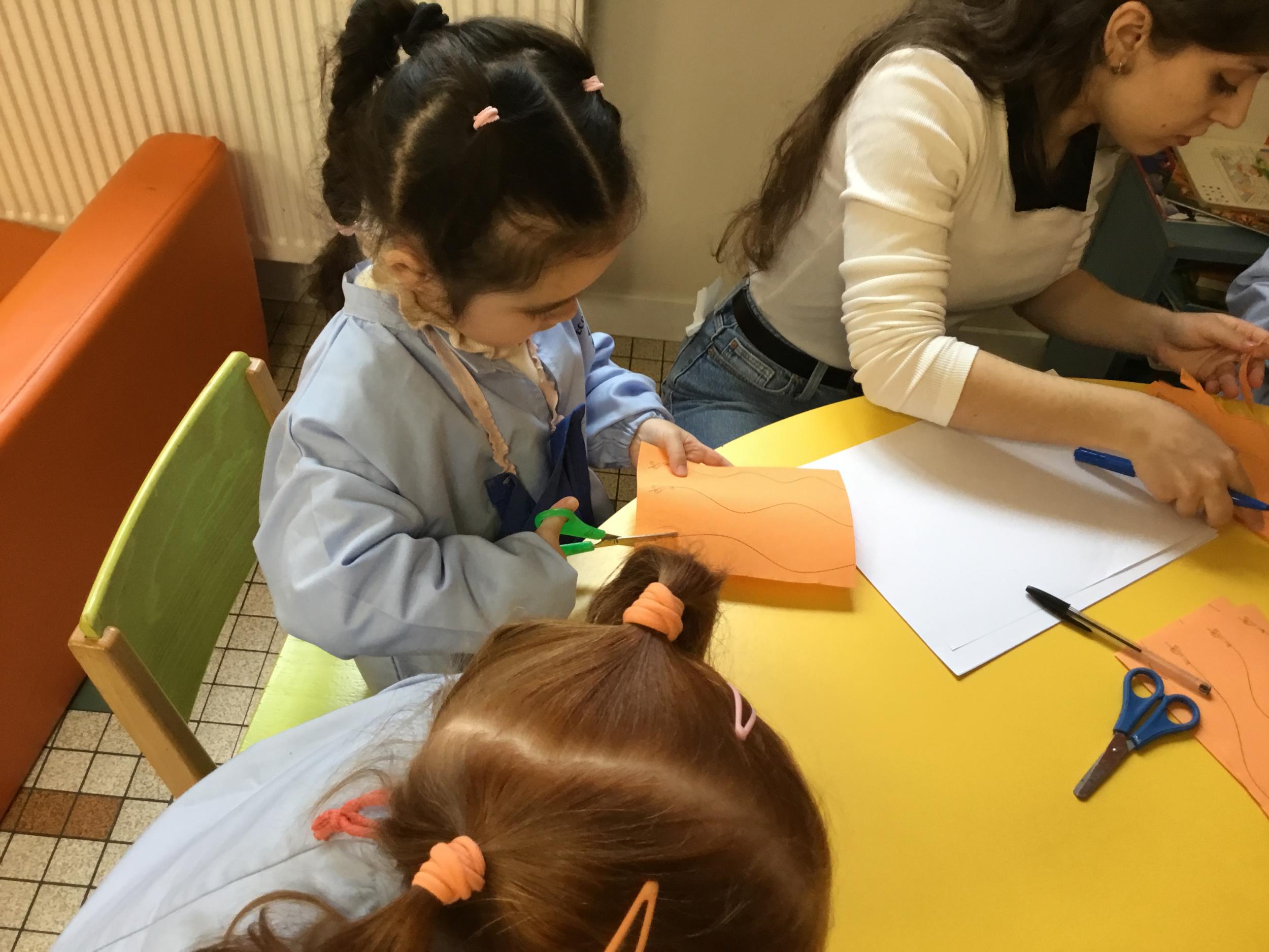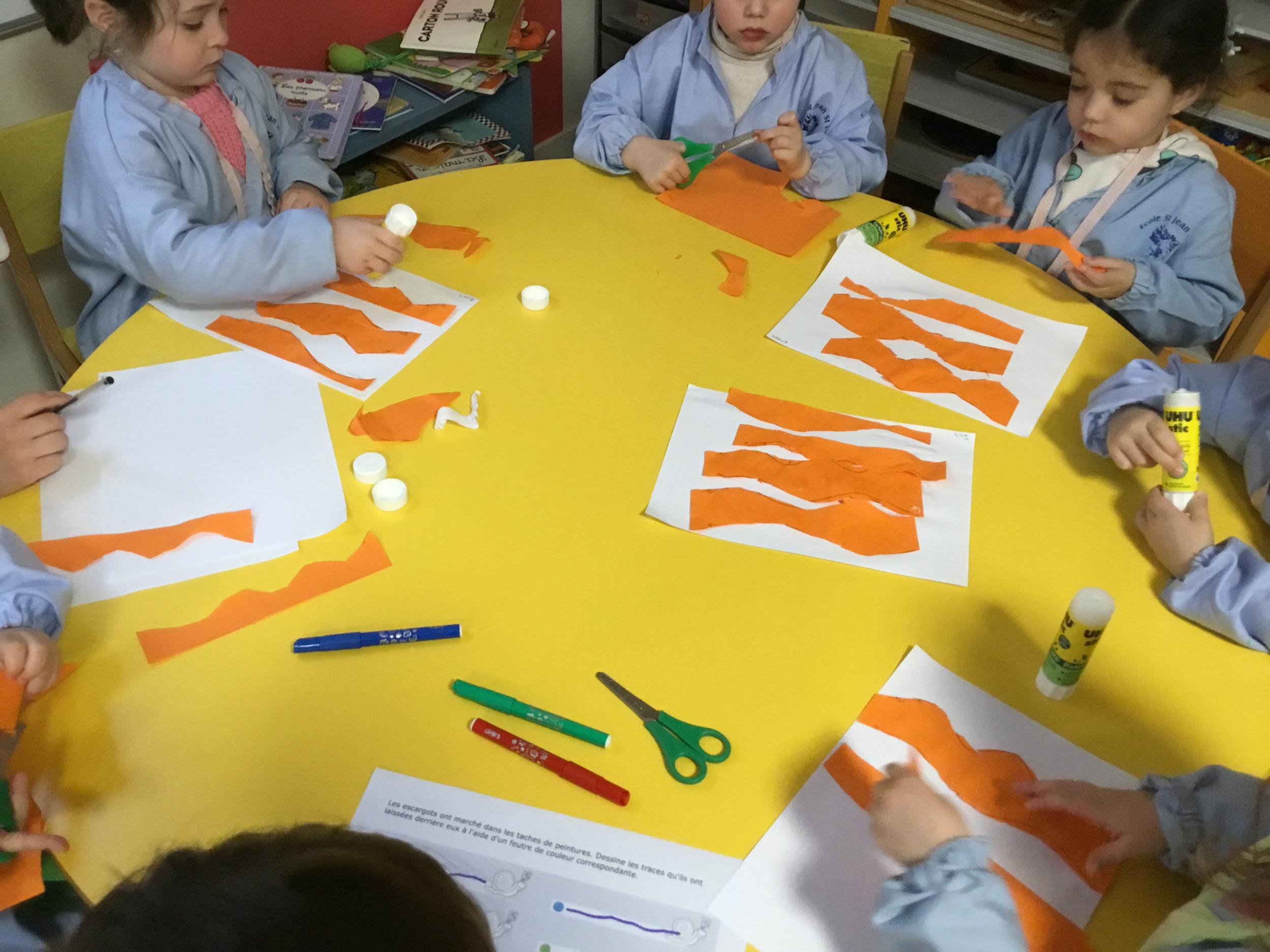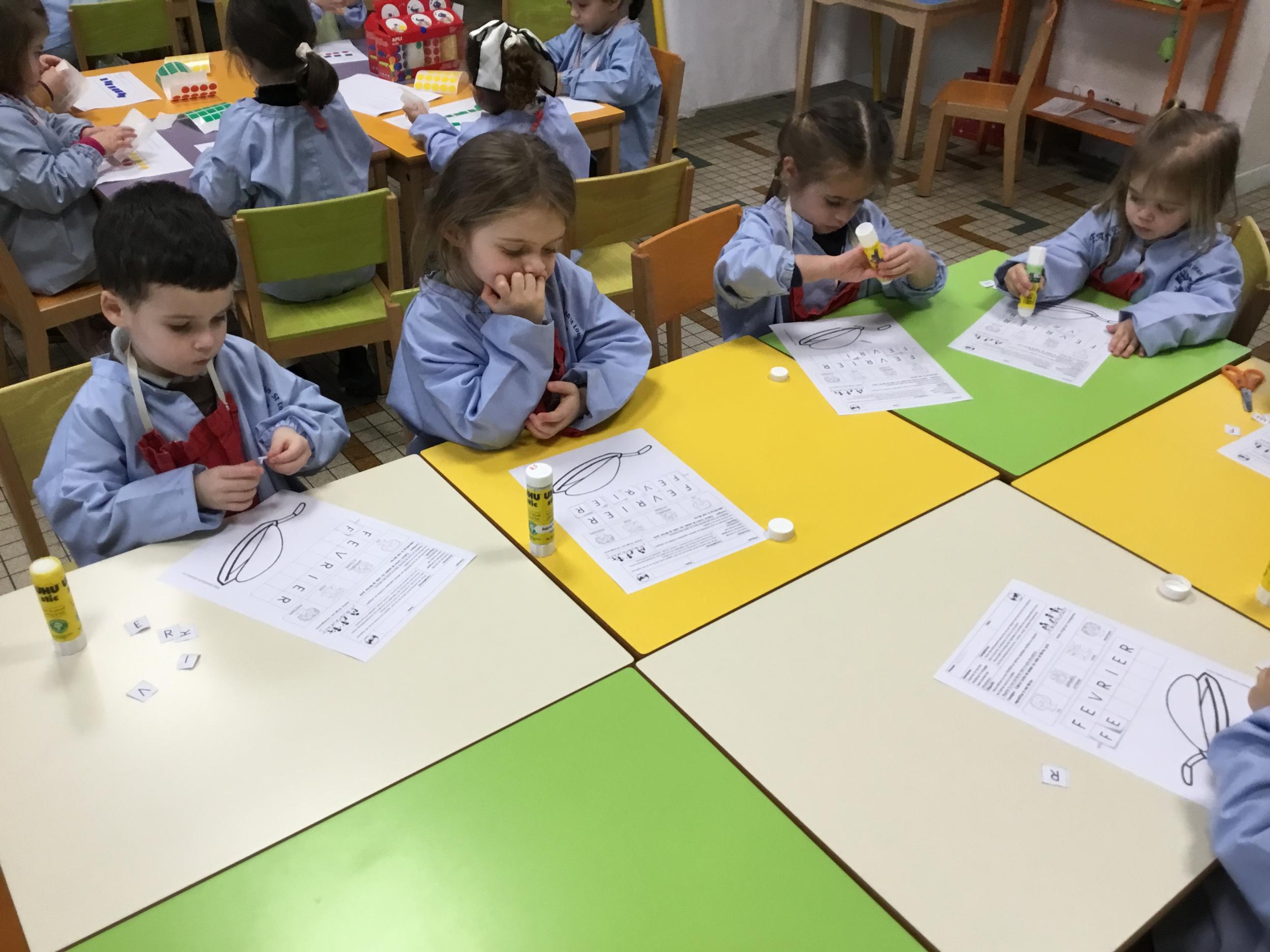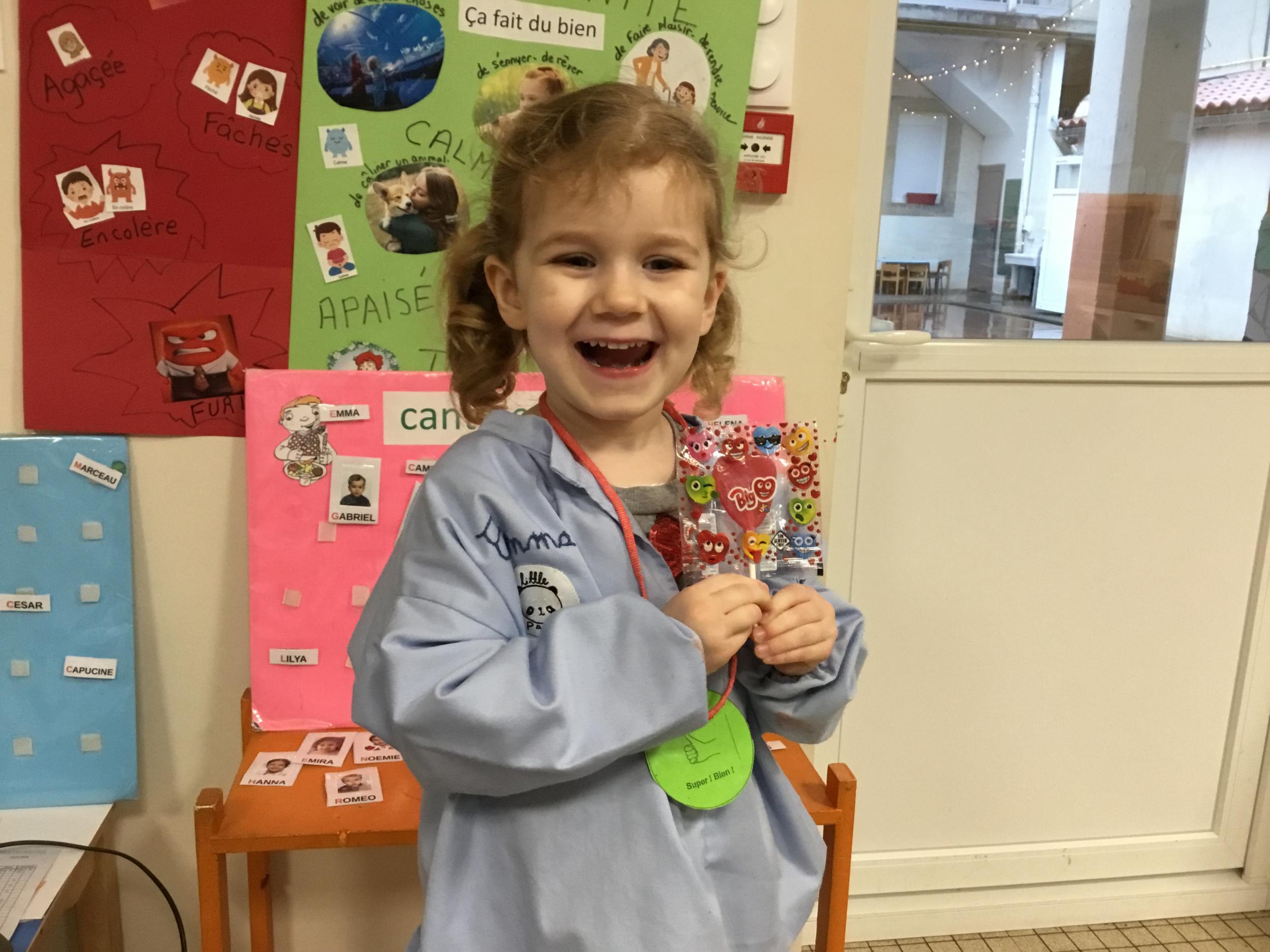 Petite et moyenne section 15/02/2026 Cette semaine découpage, graphisme et écriture du mot « Février » Aligner des gommettes Tracer des traits horizontaux en respectant un code couleur Découper La fiche du mois de février Les émotions en anglais Bravo Emma !