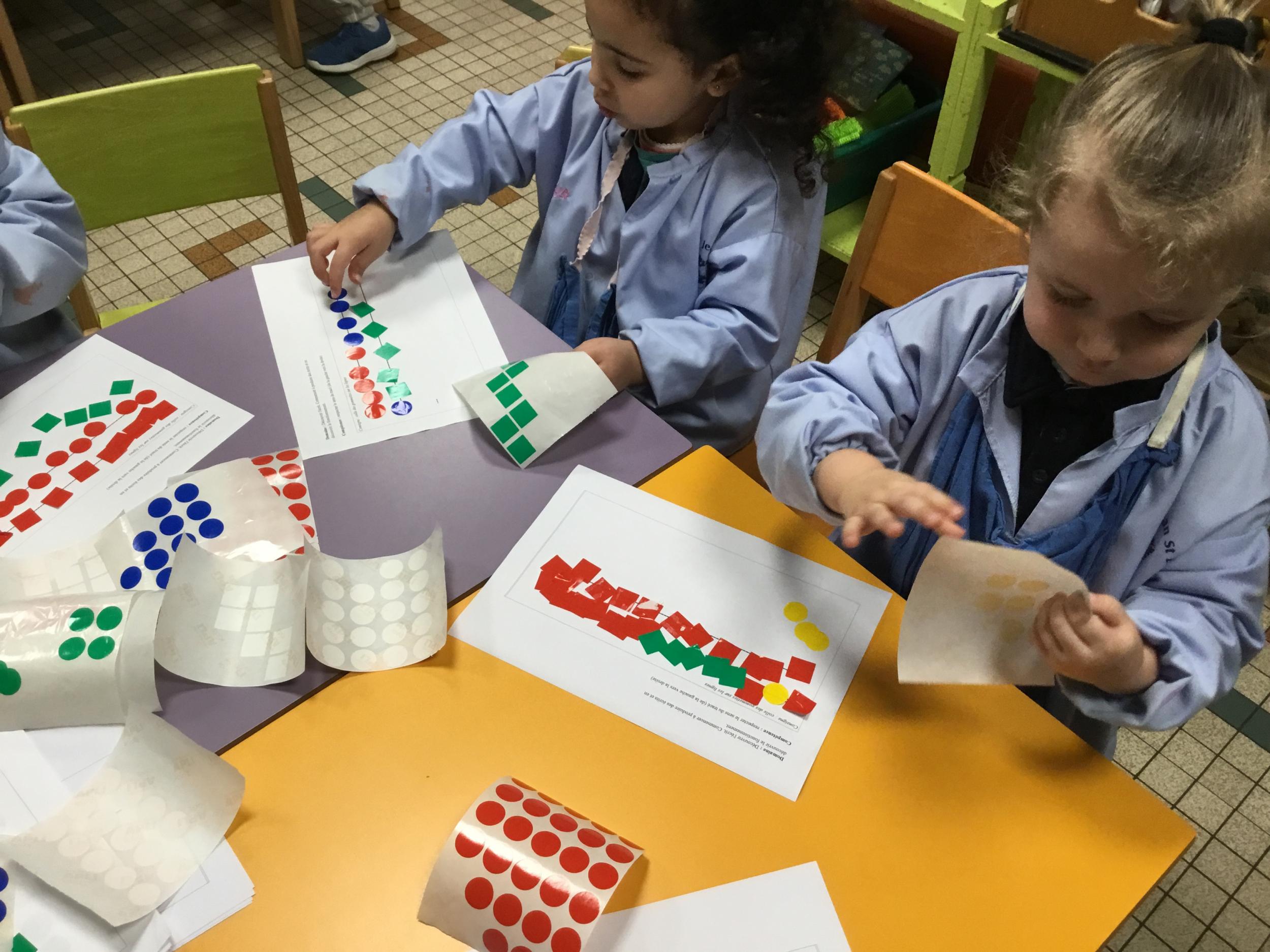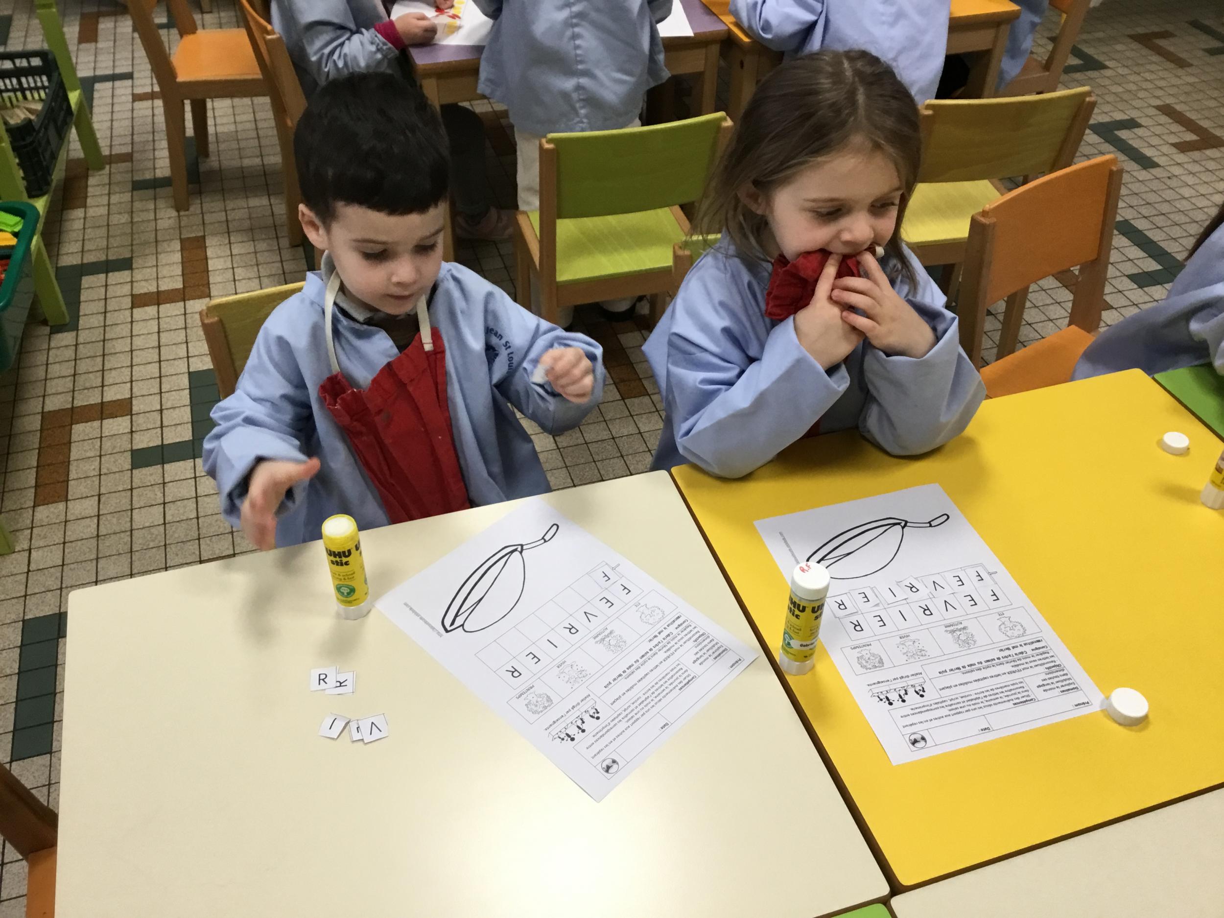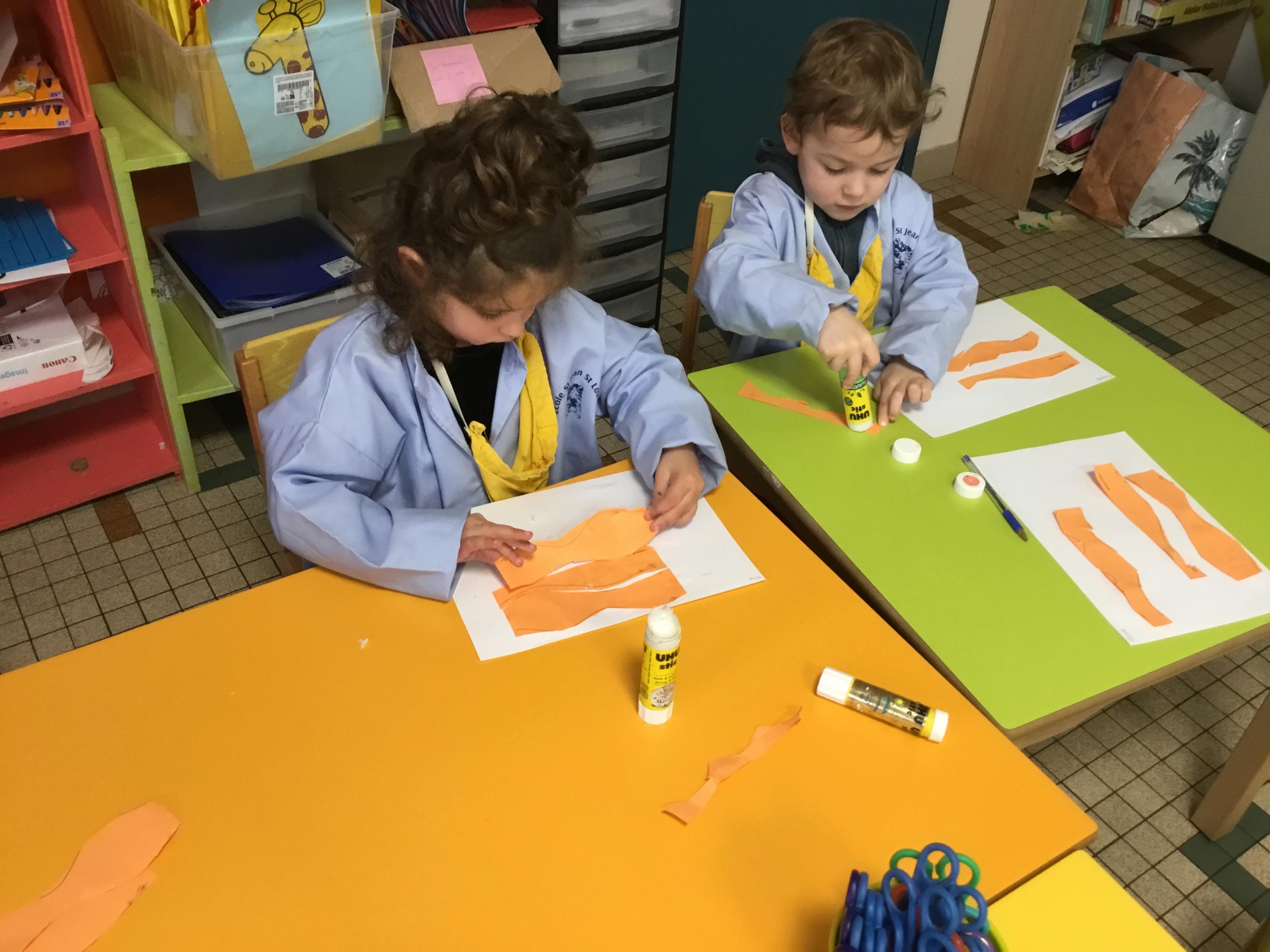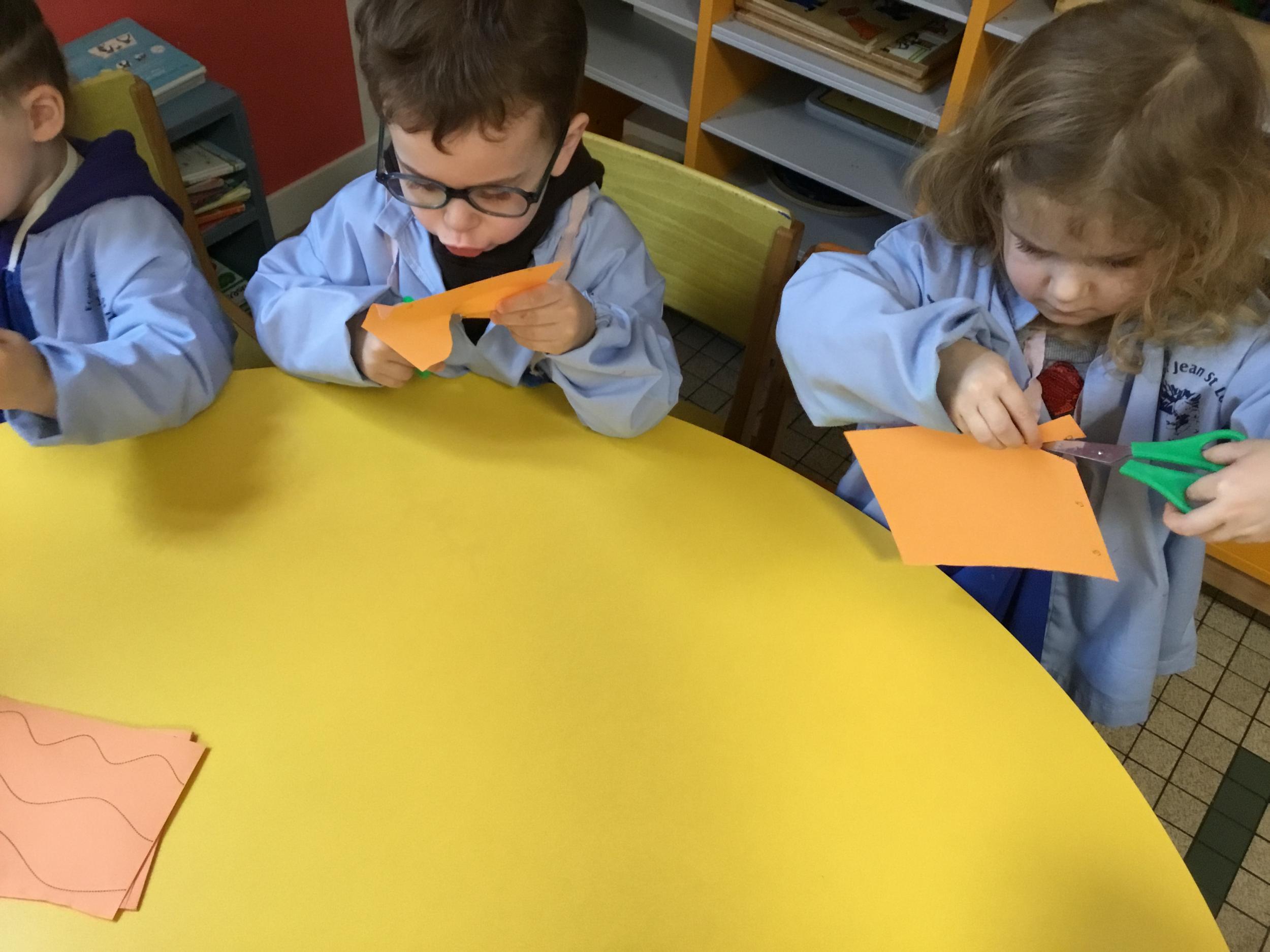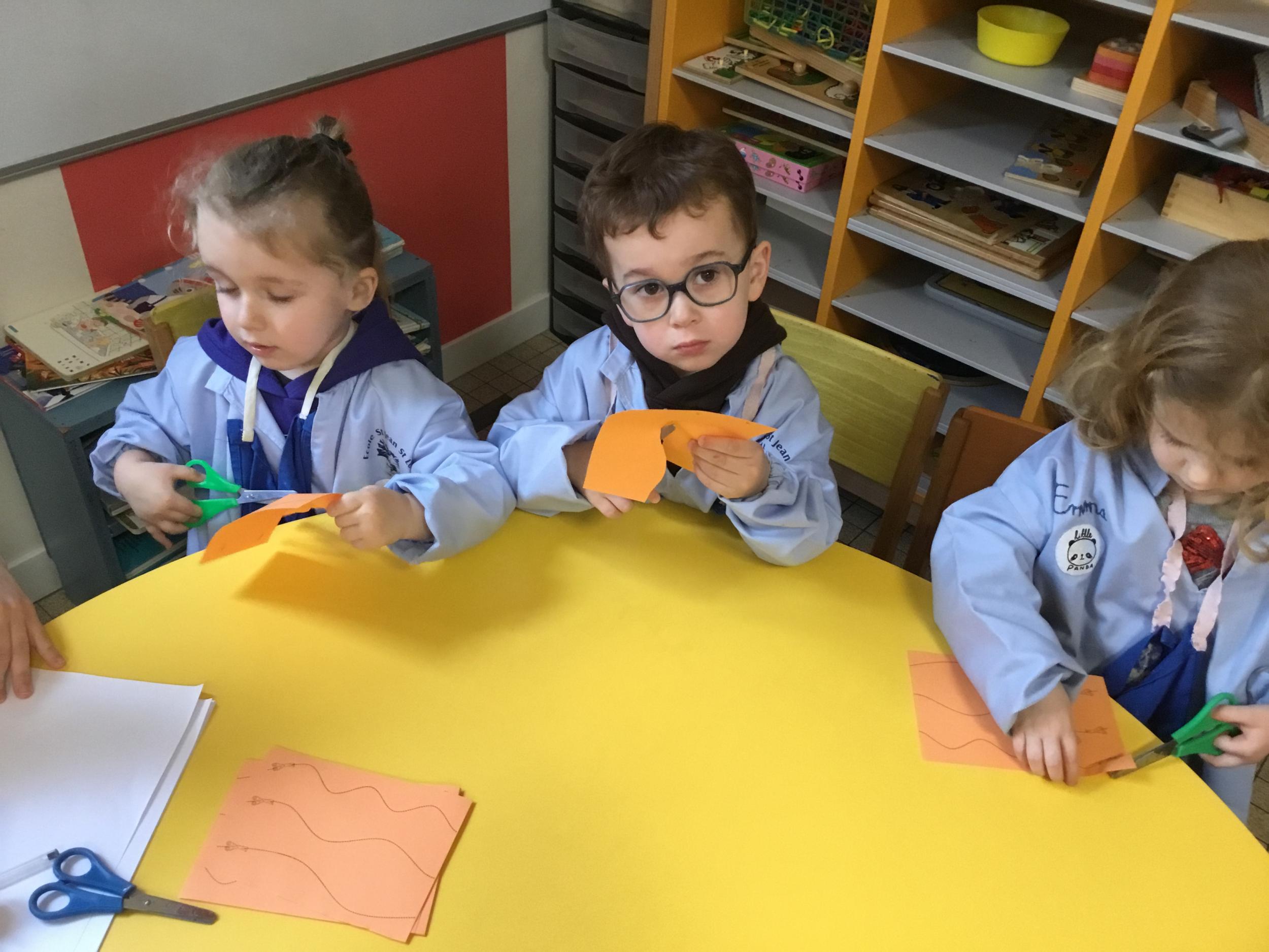 Petite et moyenne section 15/02/2026 Cette semaine découpage, graphisme et écriture du mot « Février » Aligner des gommettes Tracer des traits horizontaux en respectant un code couleur Découper La fiche du mois de février Les émotions en anglais Bravo Emma !