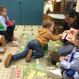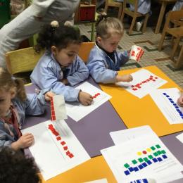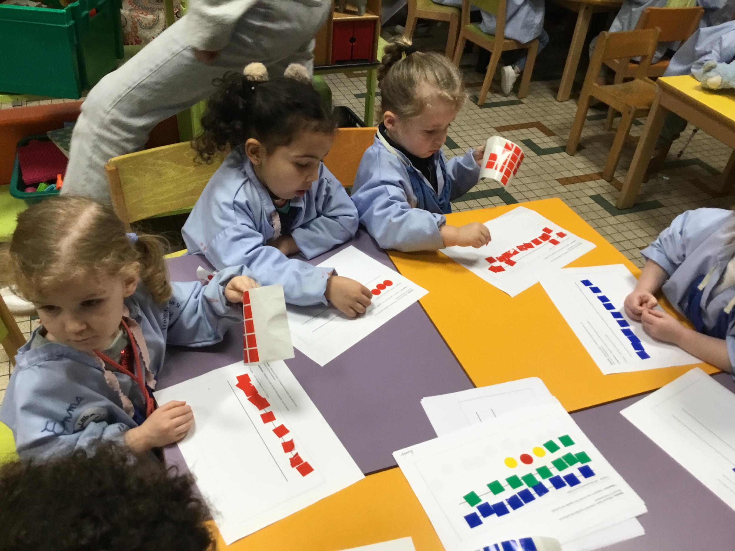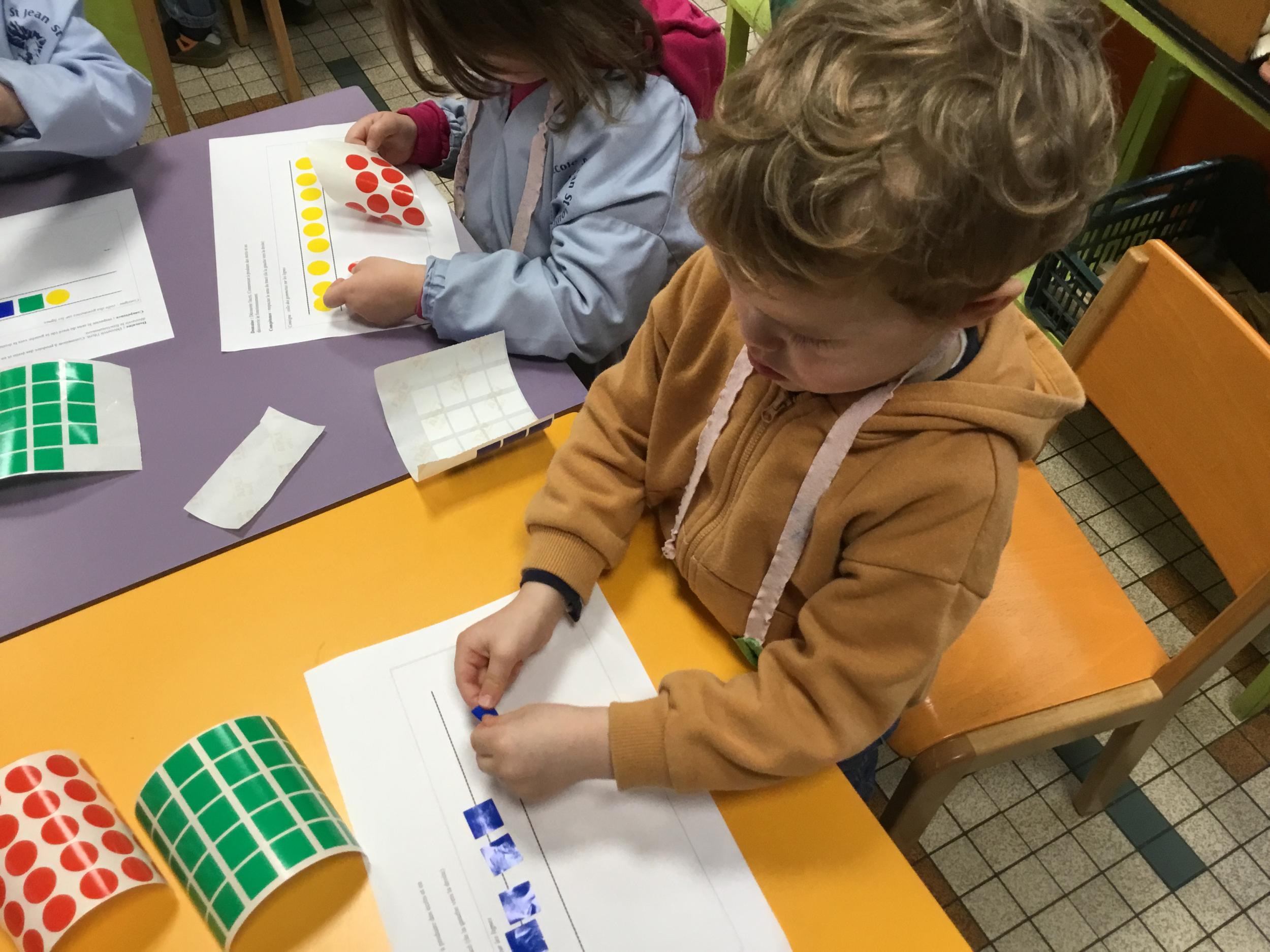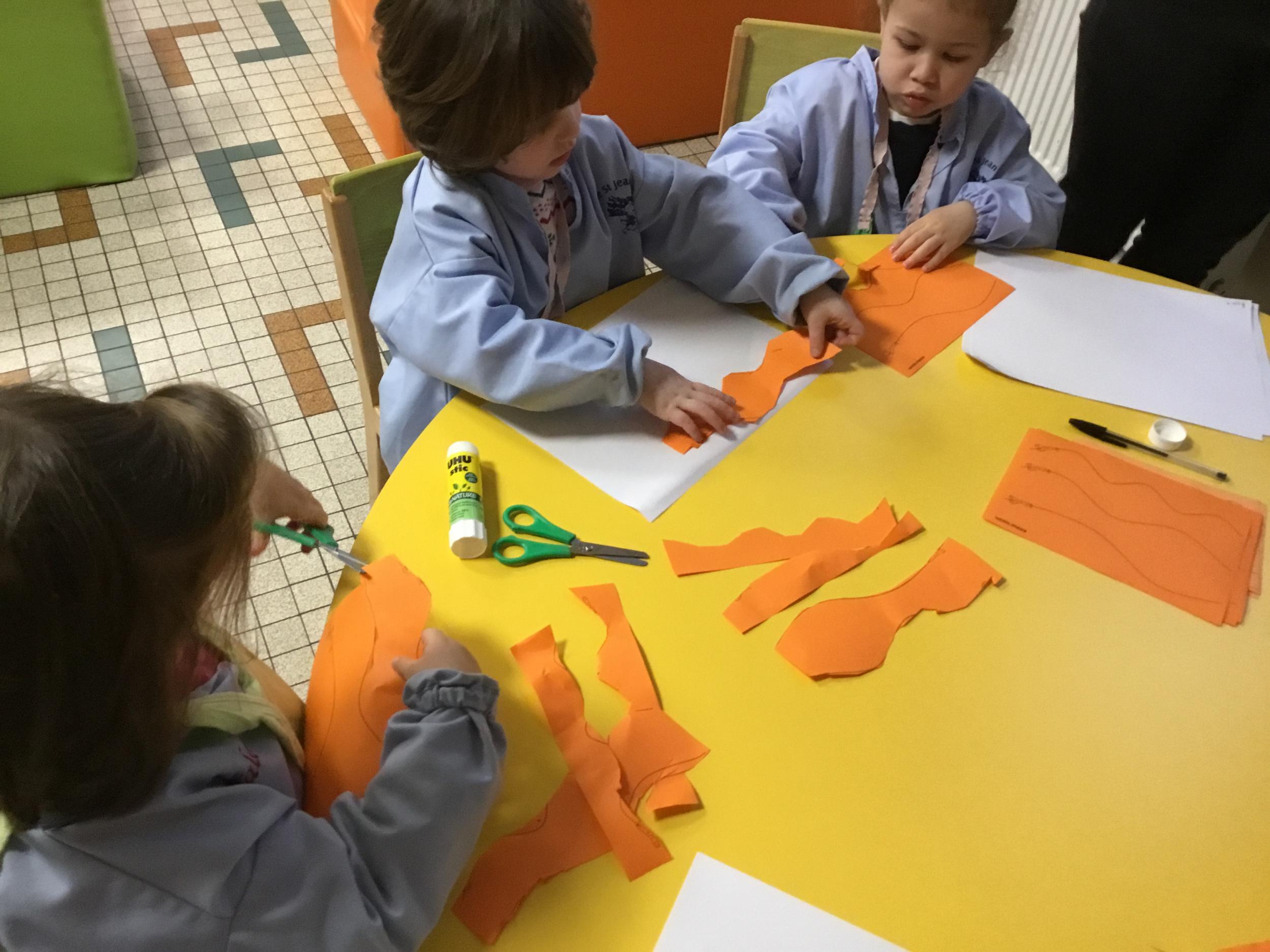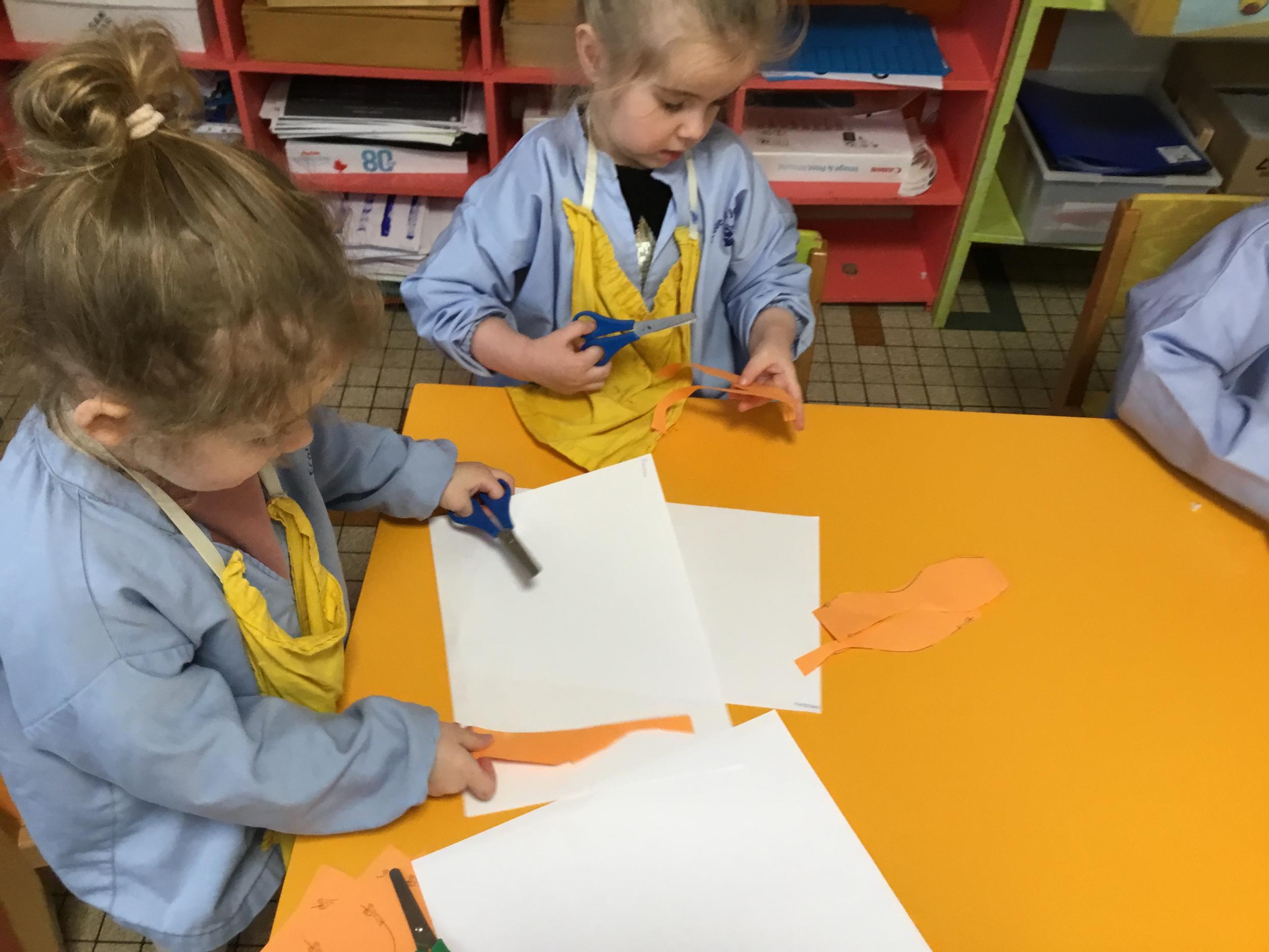 Petite et moyenne section 15/02/2026 Cette semaine découpage, graphisme et écriture du mot « Février » Aligner des gommettes Tracer des traits horizontaux en respectant un code couleur Découper La fiche du mois de février Les émotions en anglais Bravo Emma !