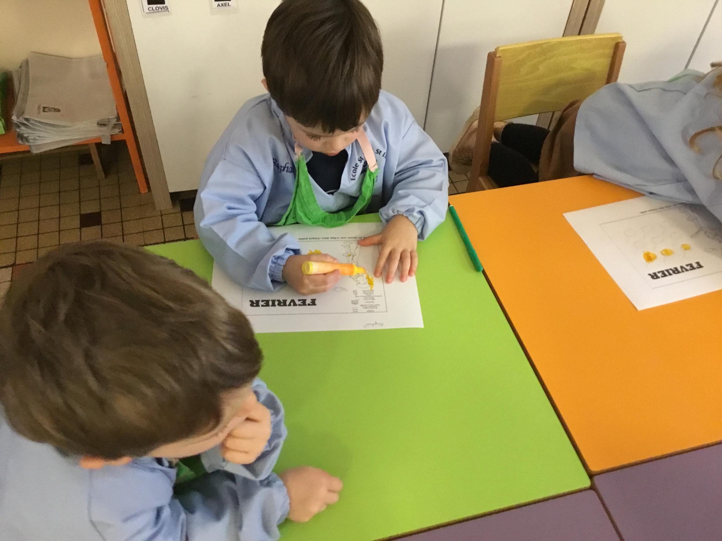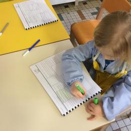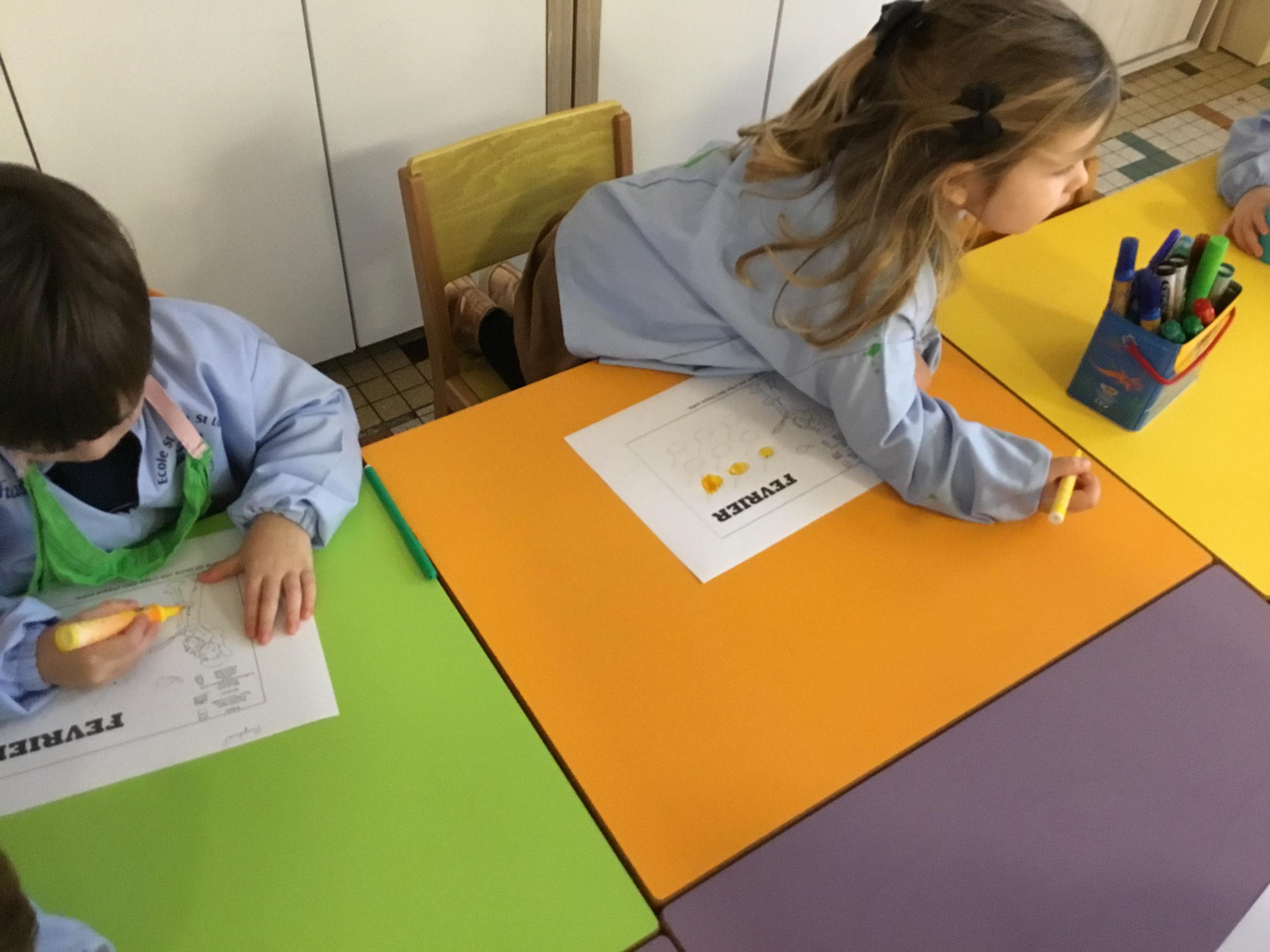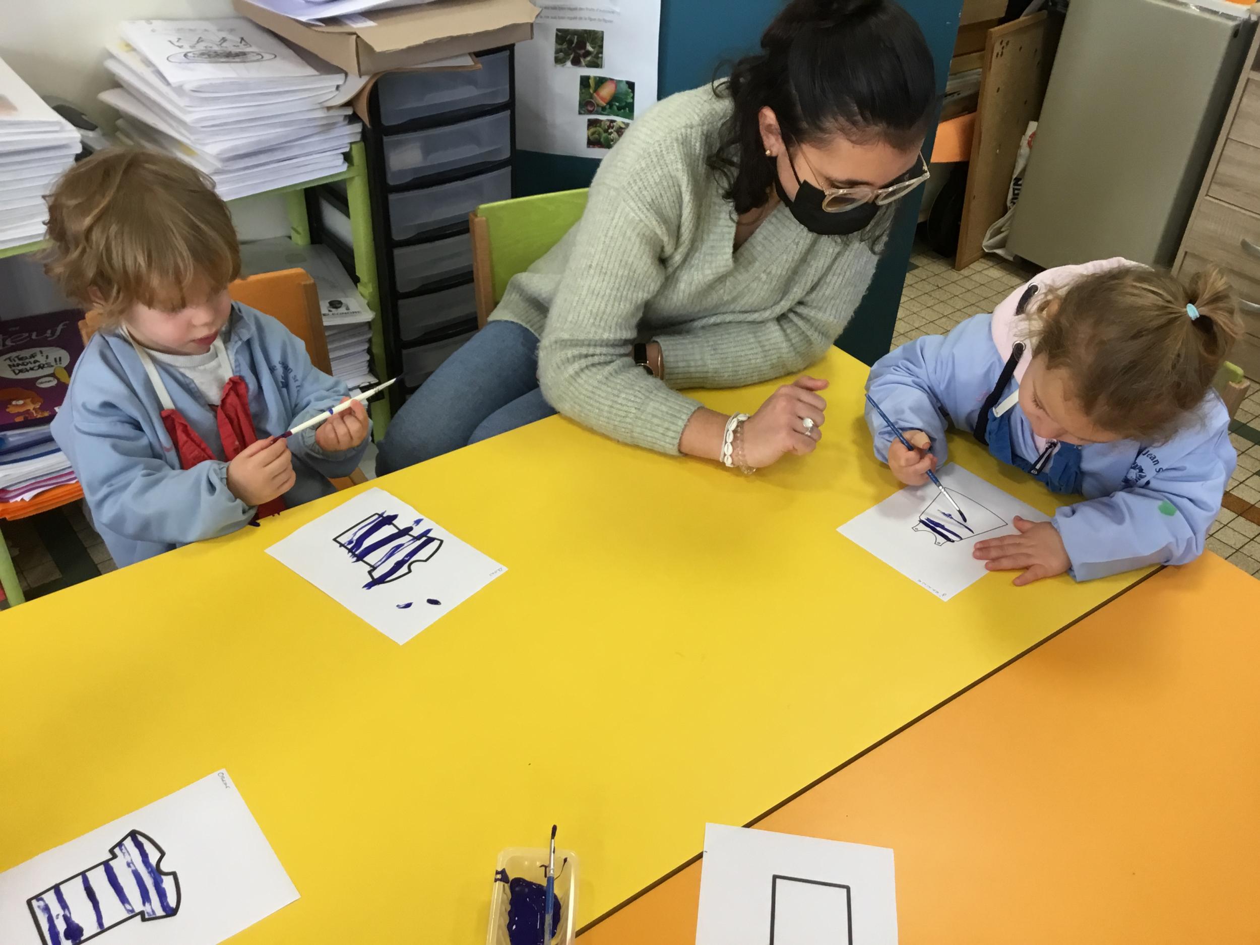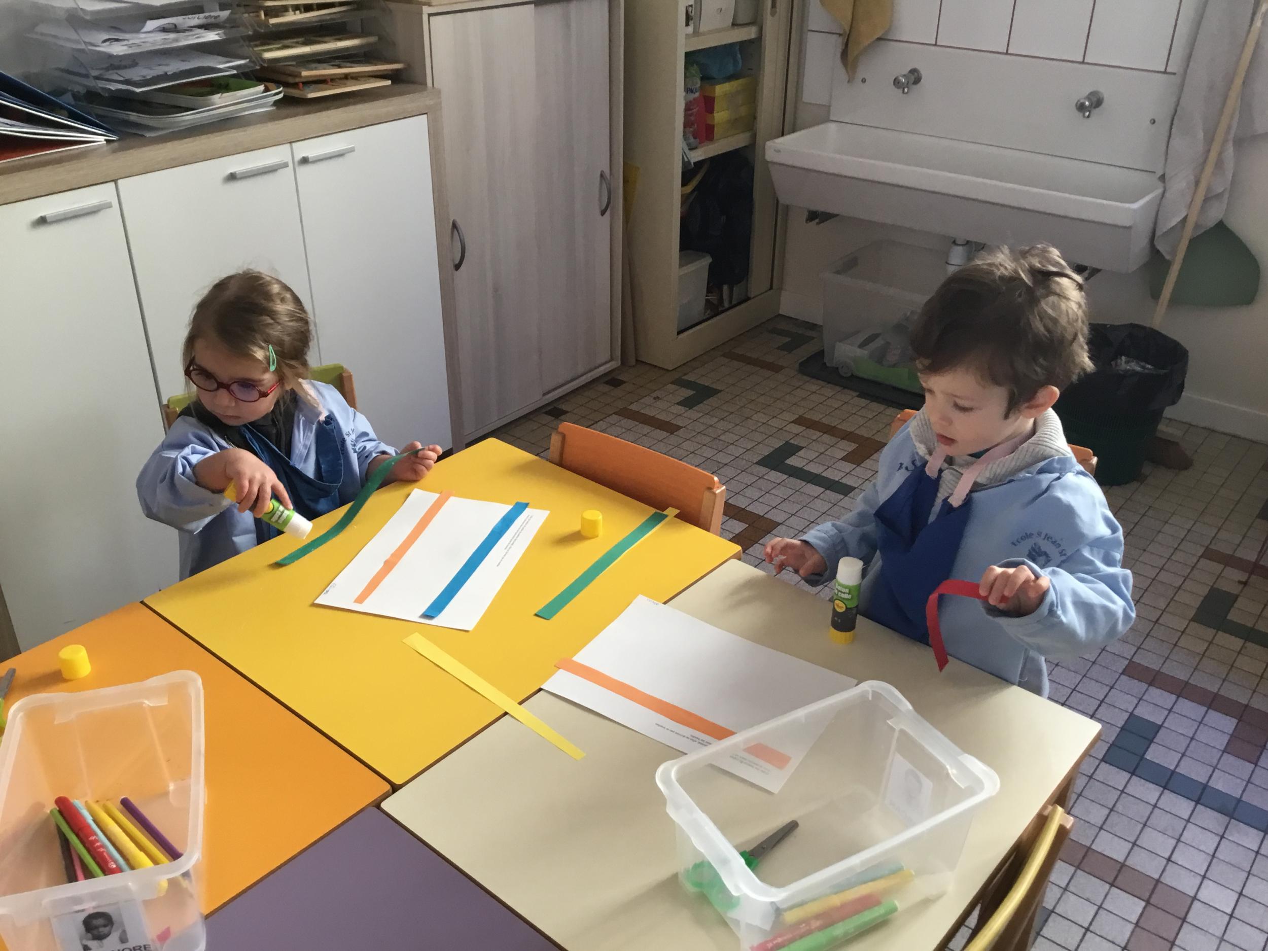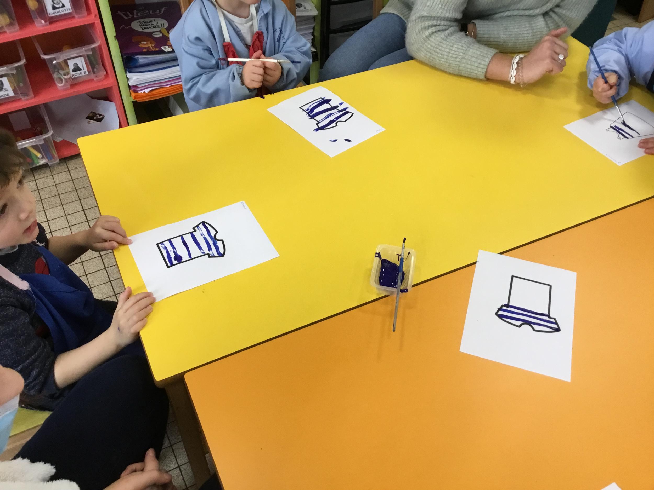 Après le trait vertical, les élèves ont travaillé autour du trait horizontal. Ces séances leur ont permis d’appréhender le sens de l’écrit de la gauche vers la droite et de maîtriser leur geste.
