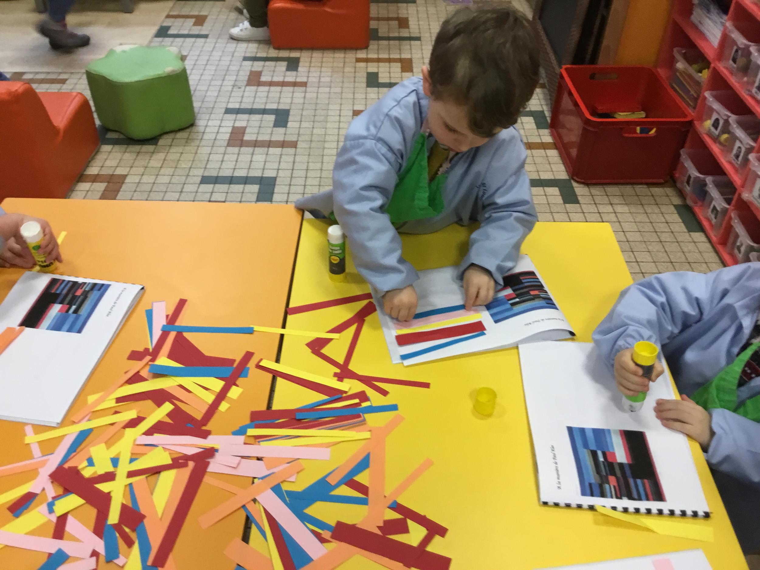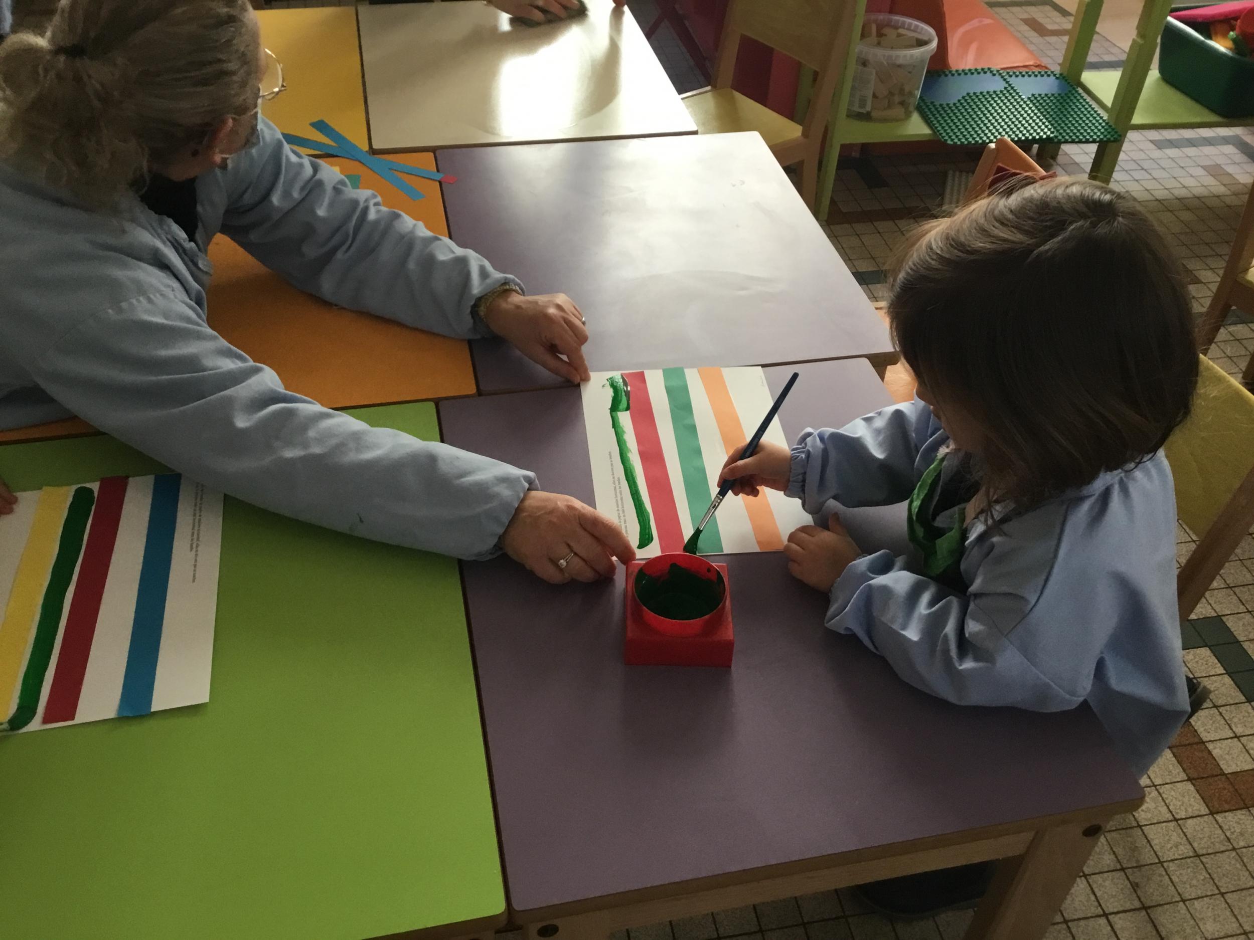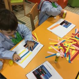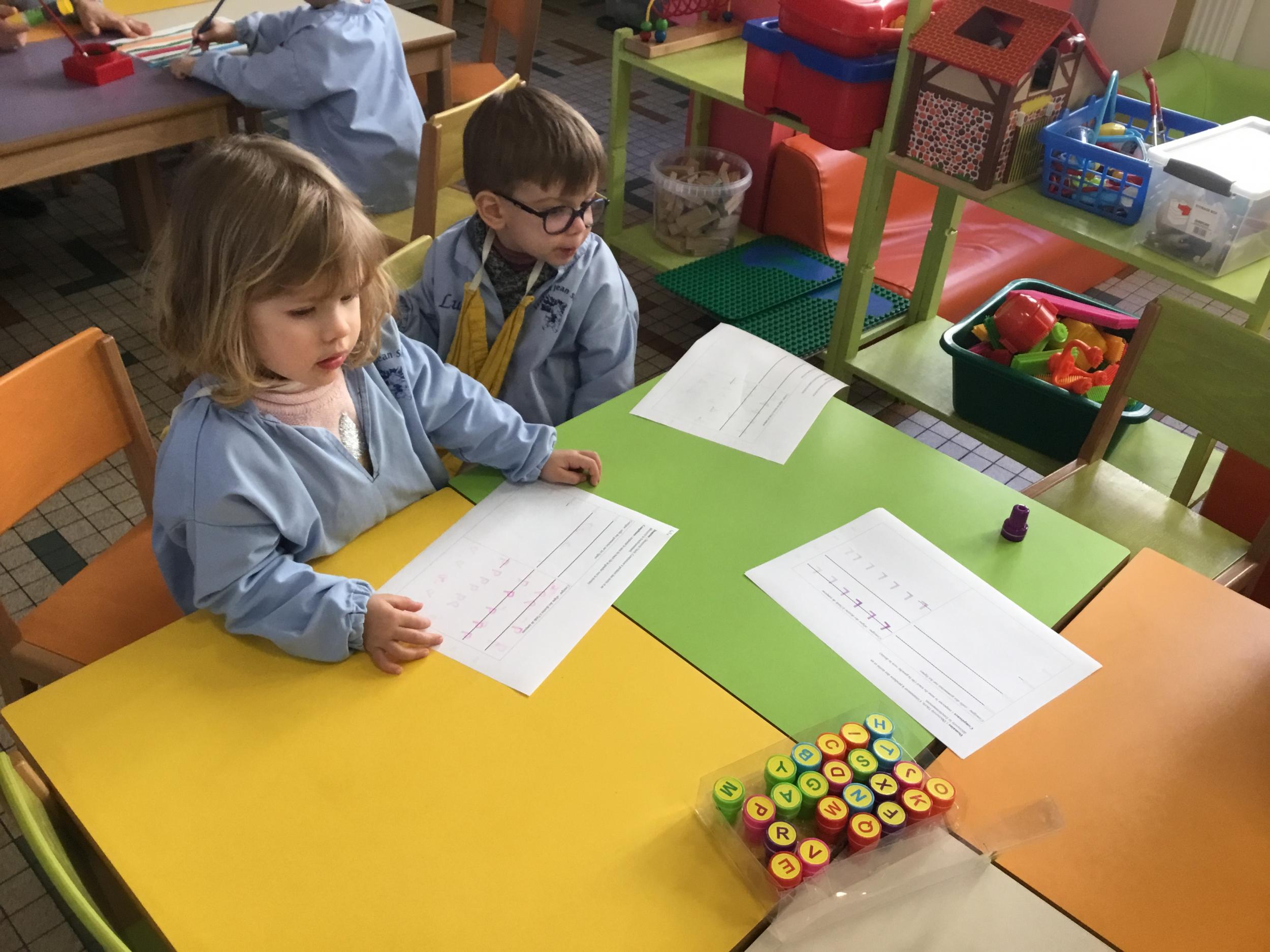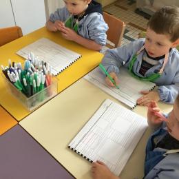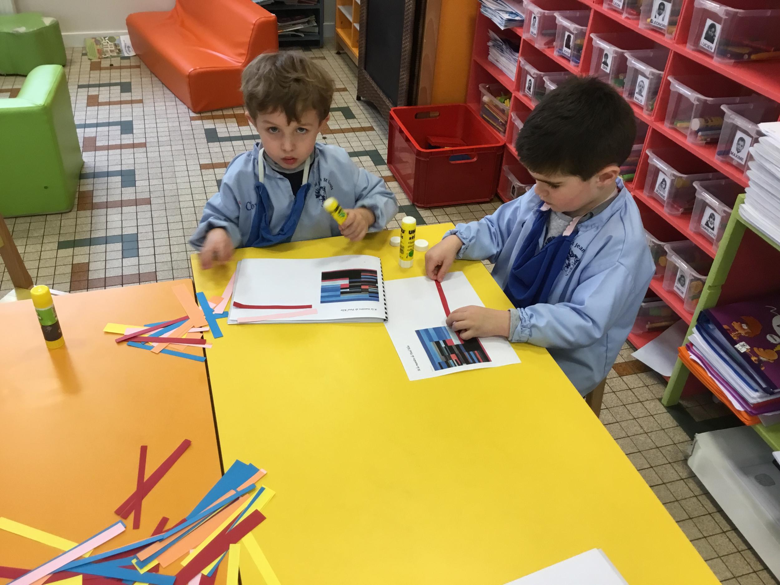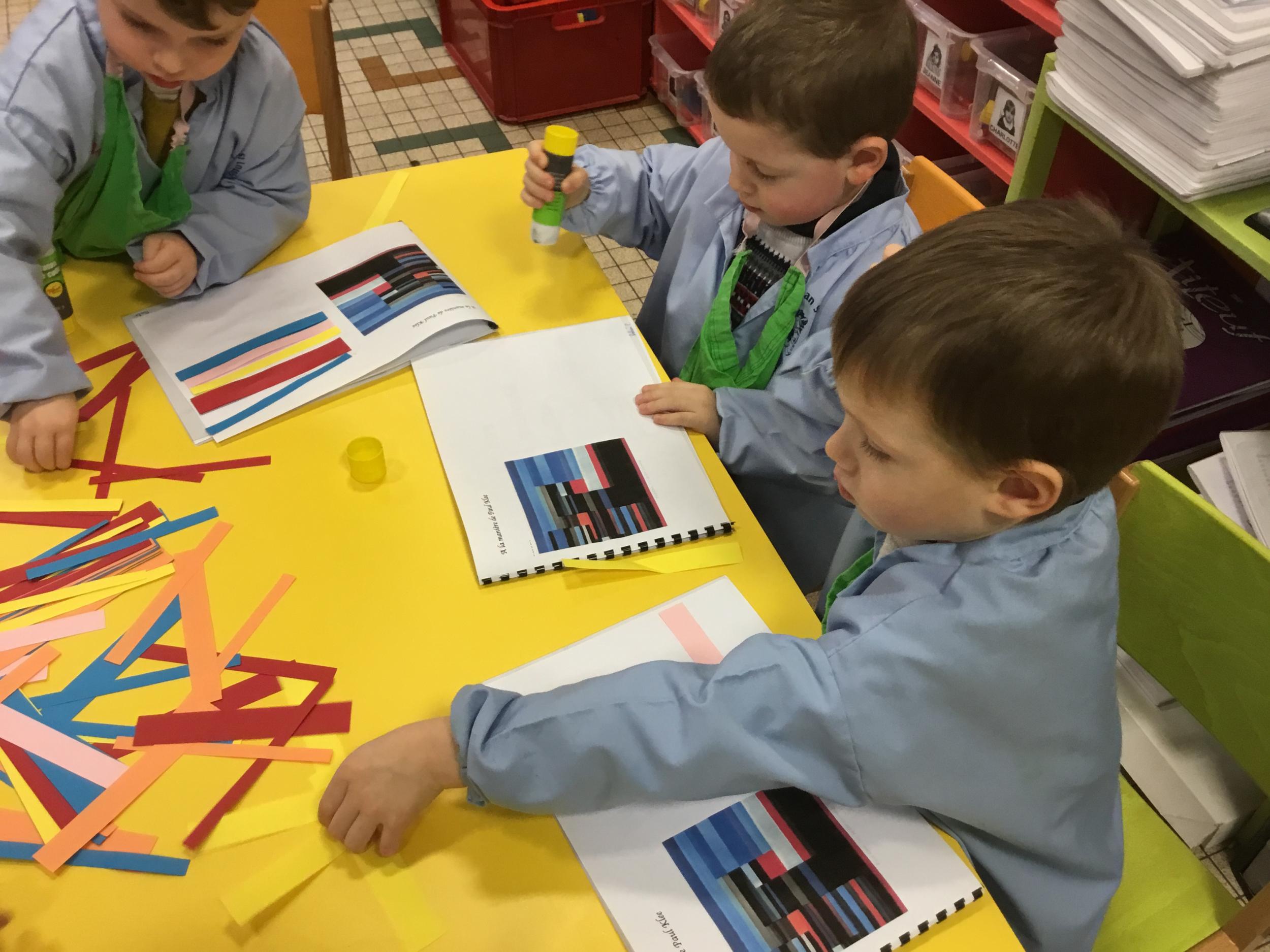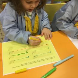 Après le trait vertical, les élèves ont travaillé autour du trait horizontal. Ces séances leur ont permis d’appréhender le sens de l’écrit de la gauche vers la droite et de maîtriser leur geste.
