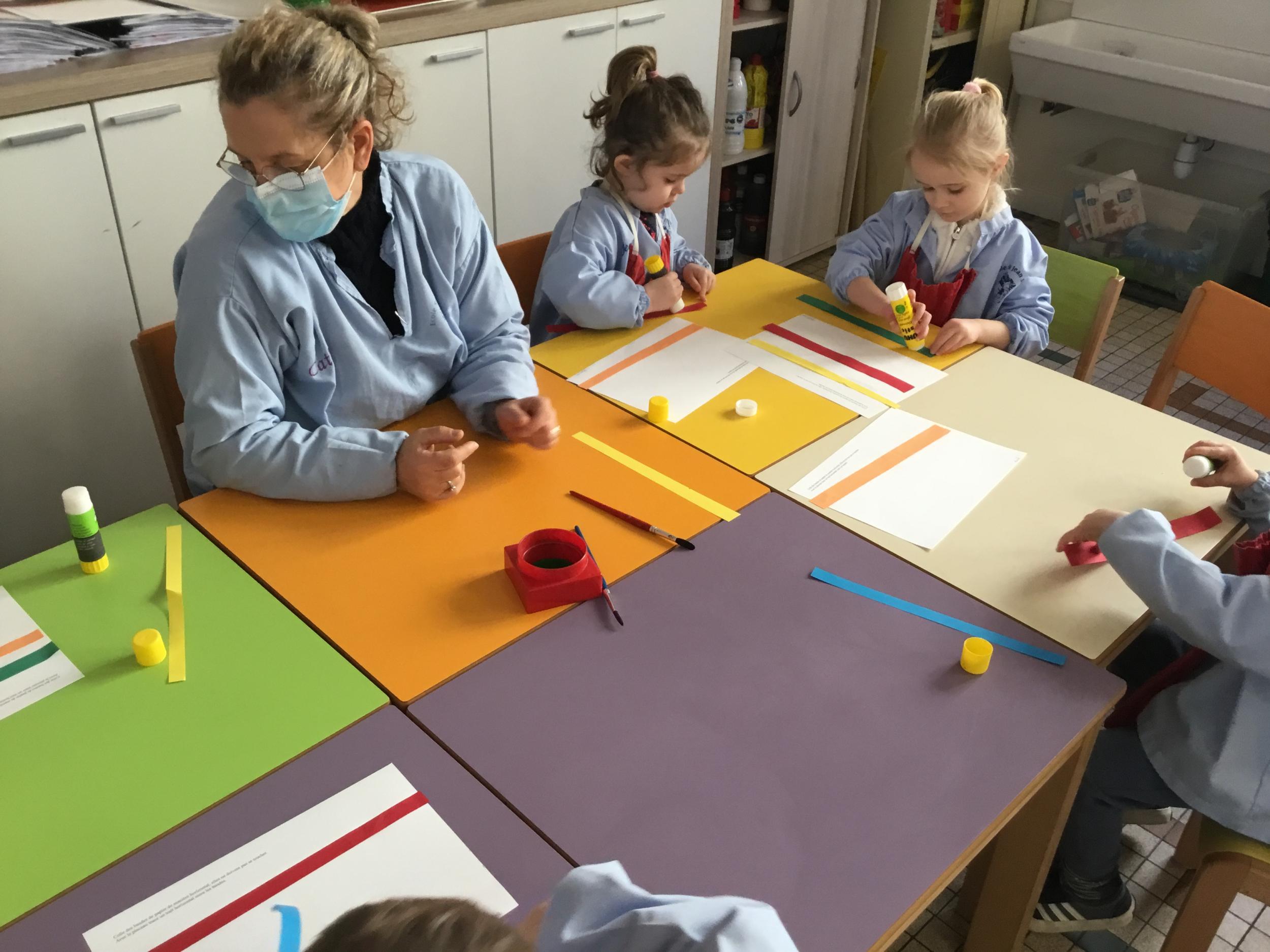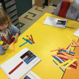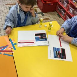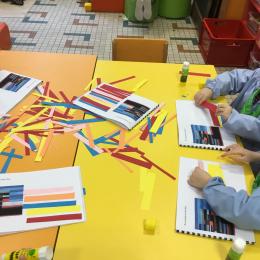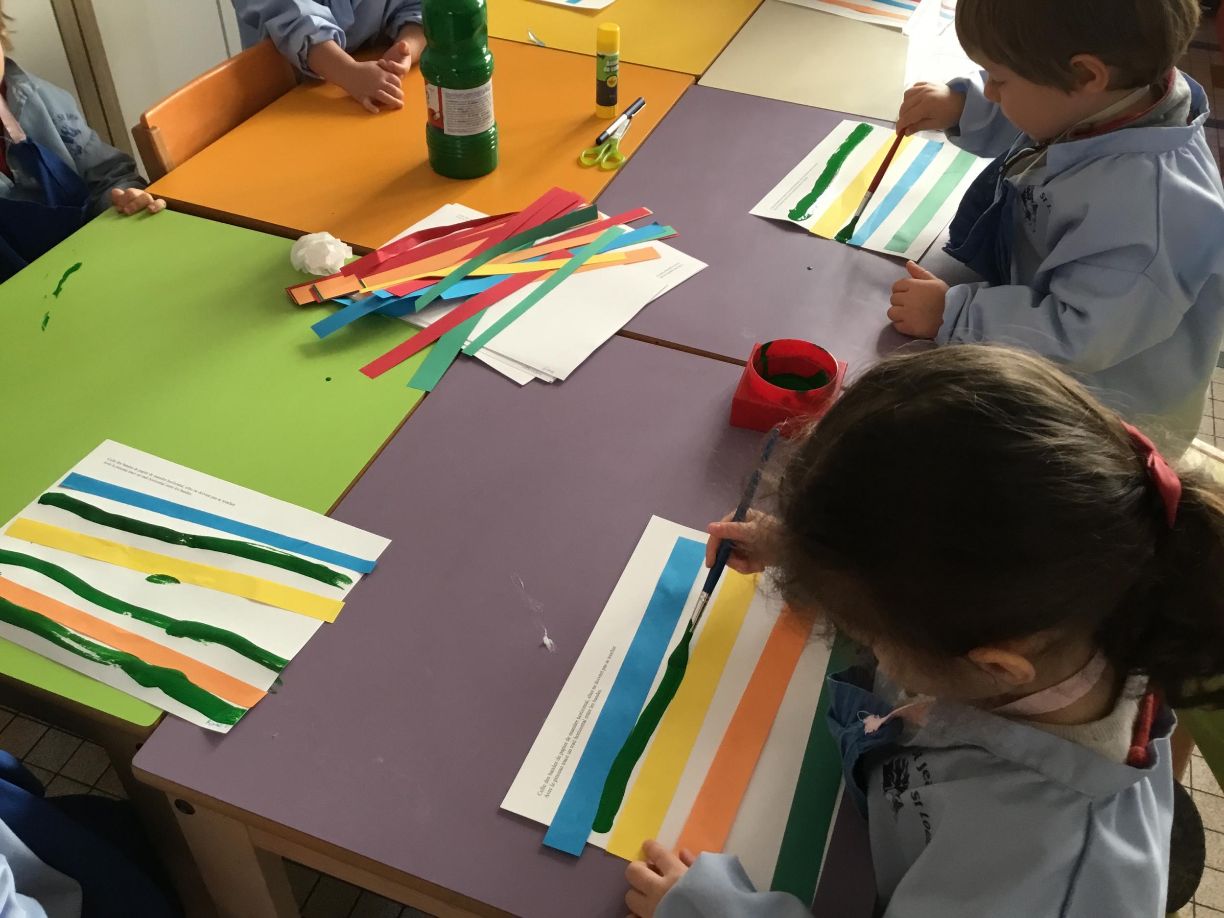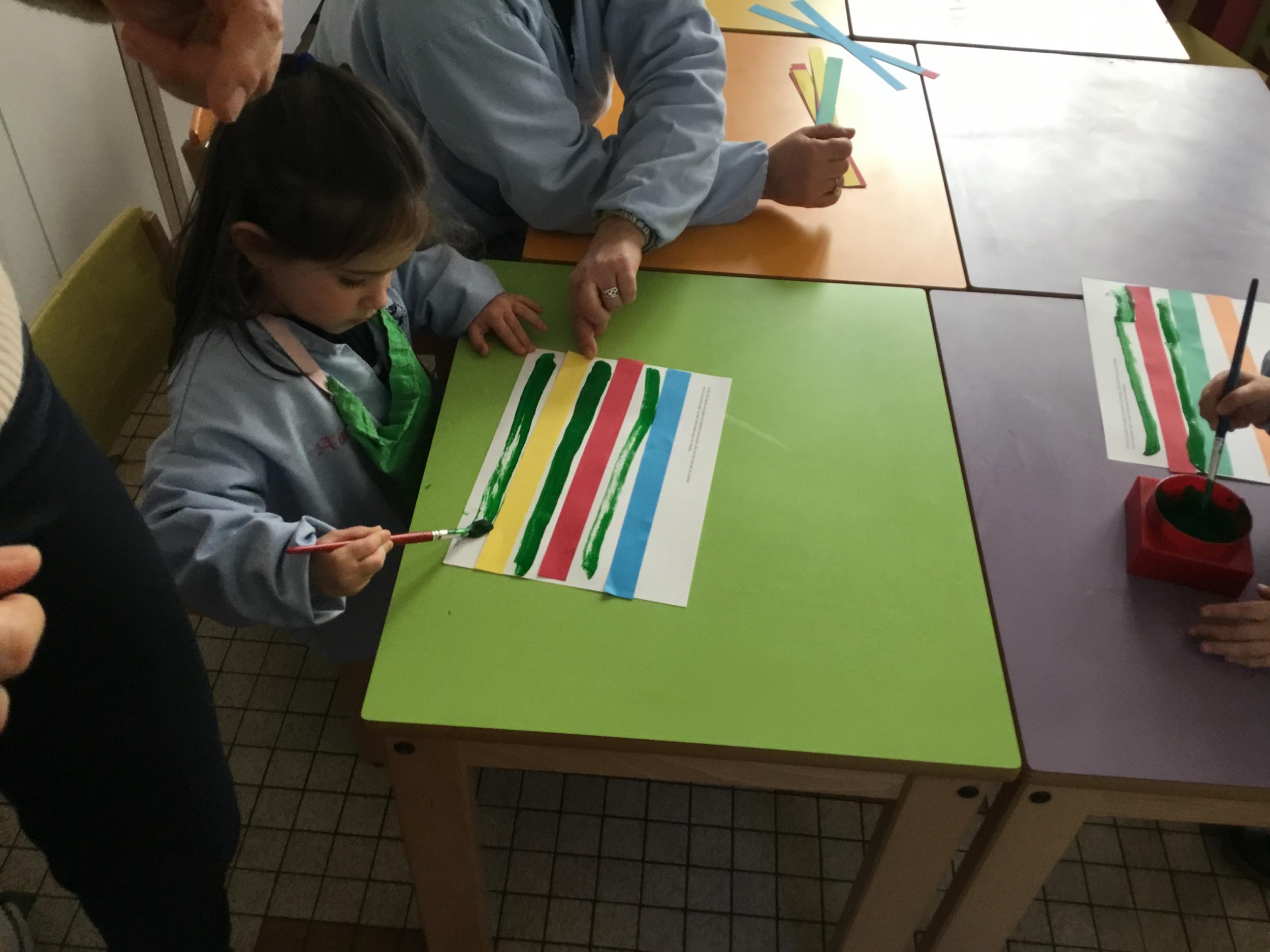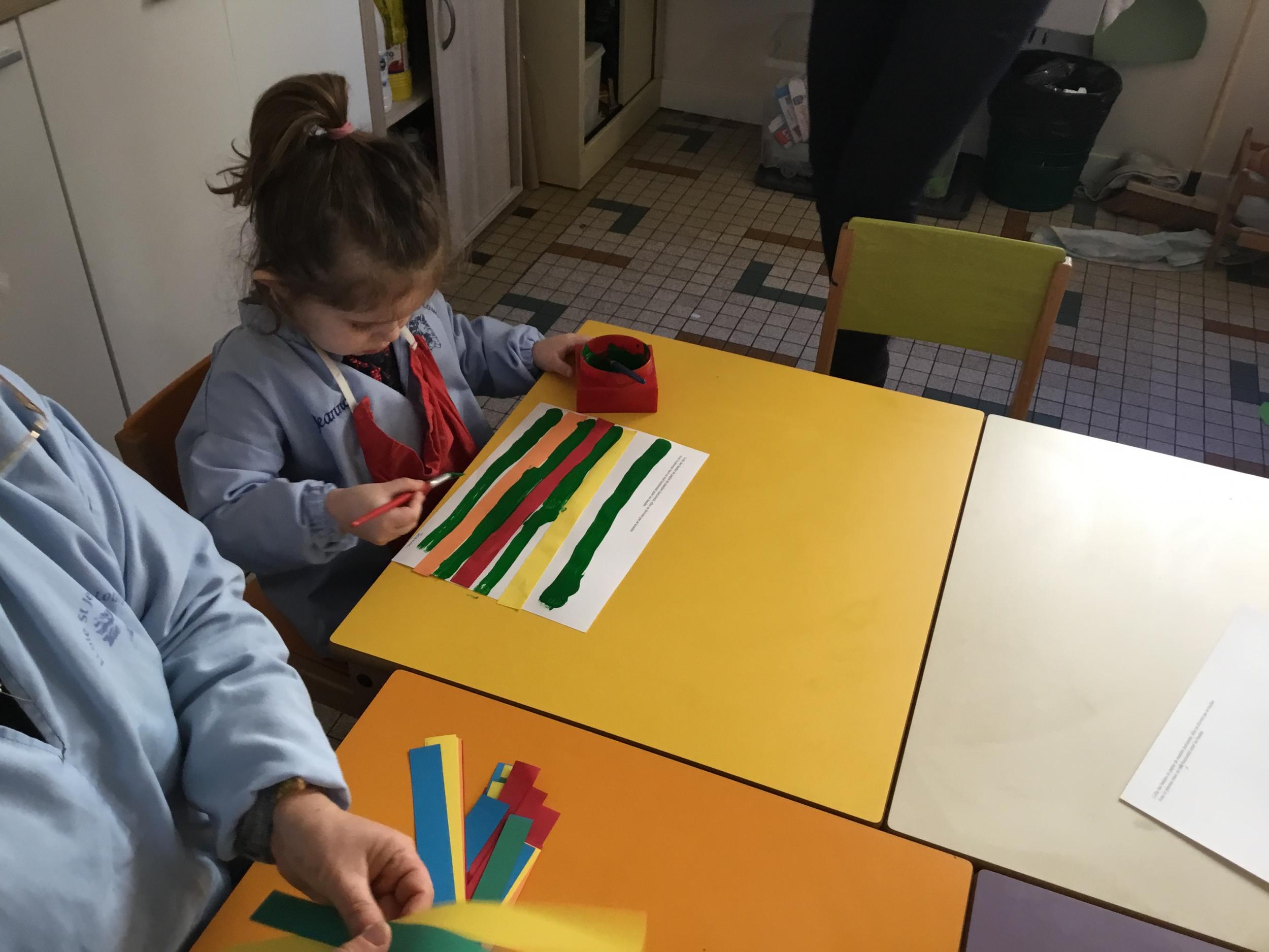 Après le trait vertical, les élèves ont travaillé autour du trait horizontal. Ces séances leur ont permis d’appréhender le sens de l’écrit de la gauche vers la droite et de maîtriser leur geste.