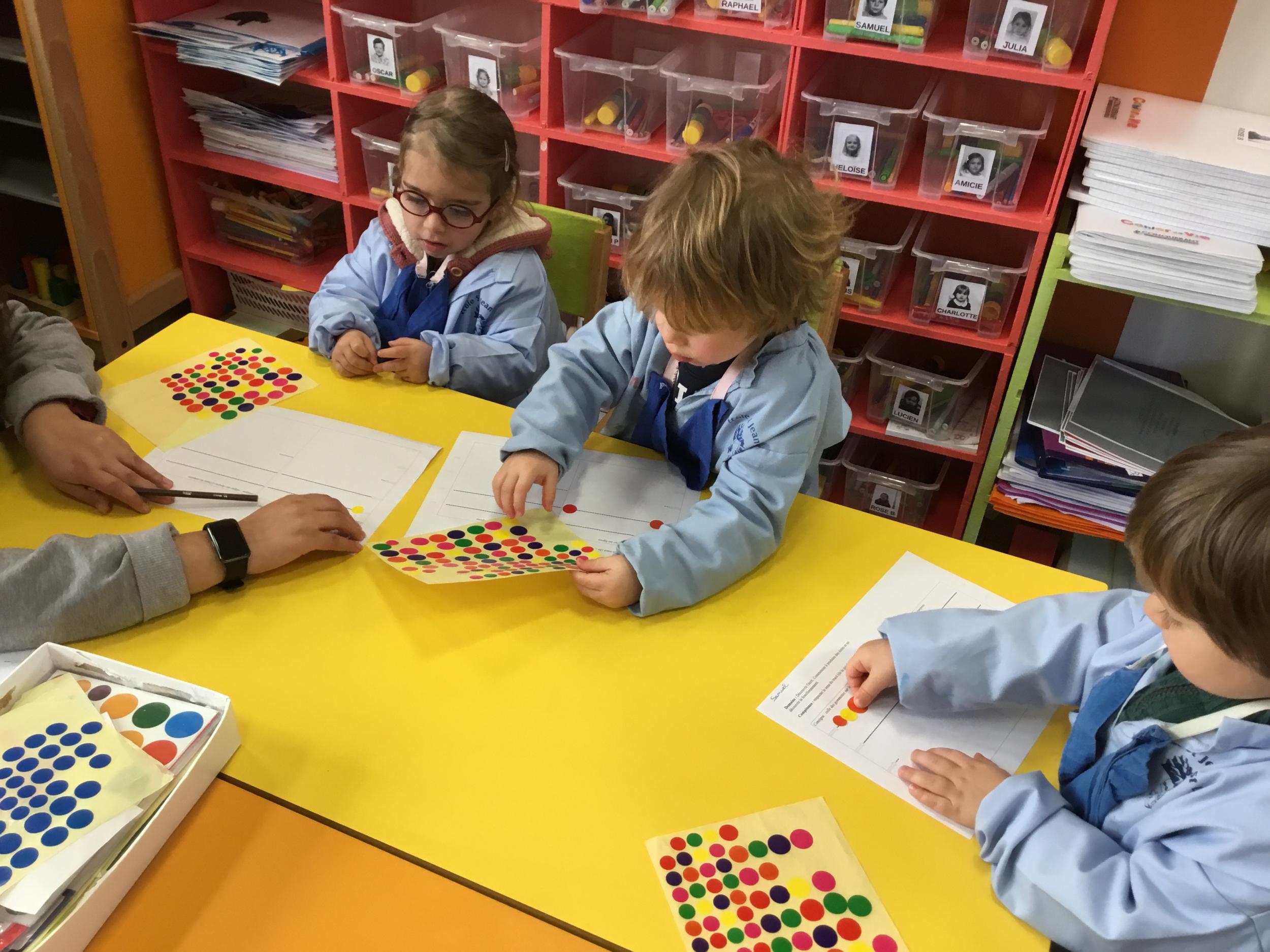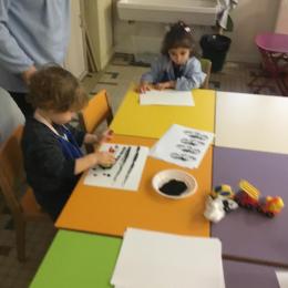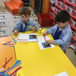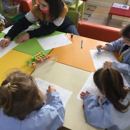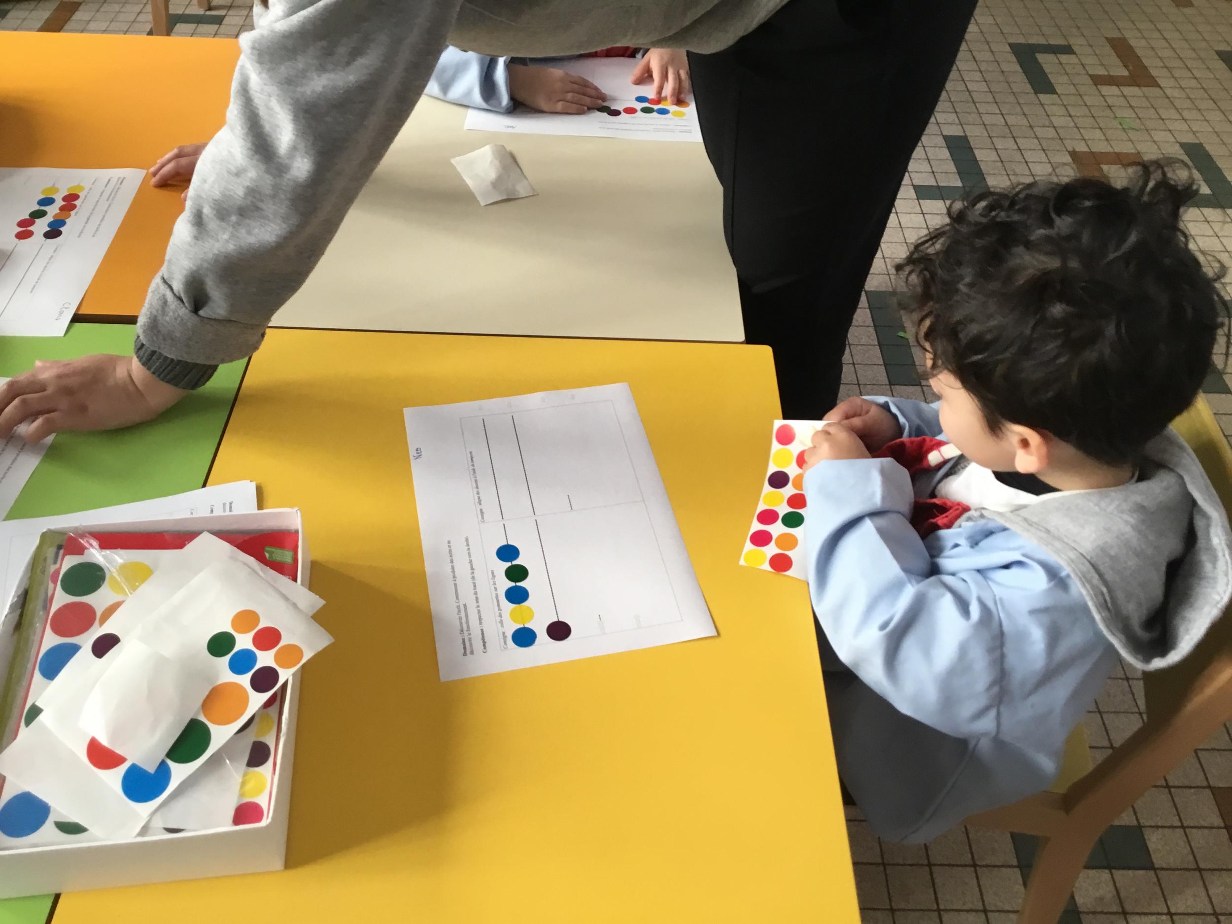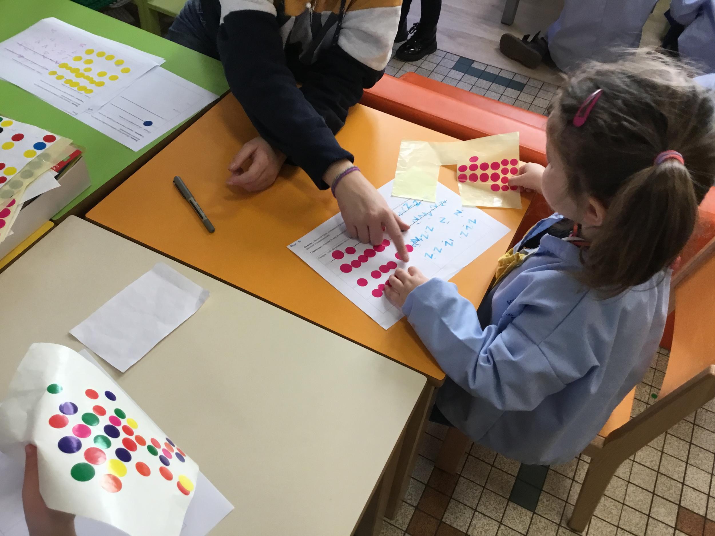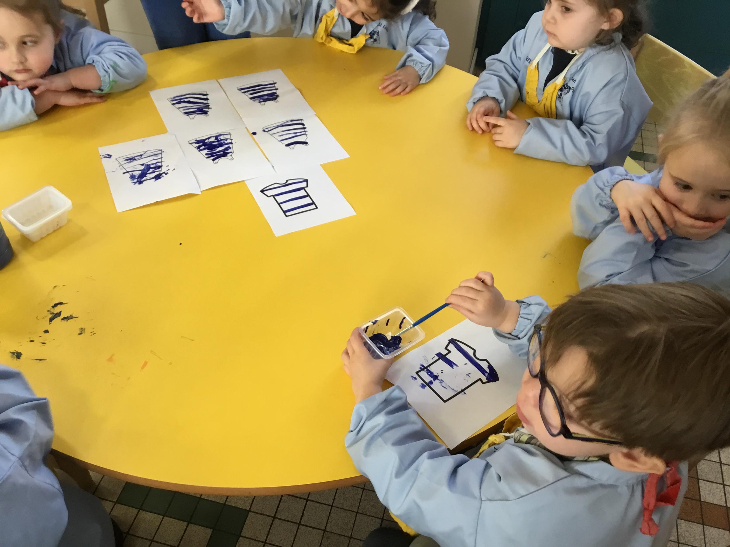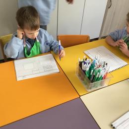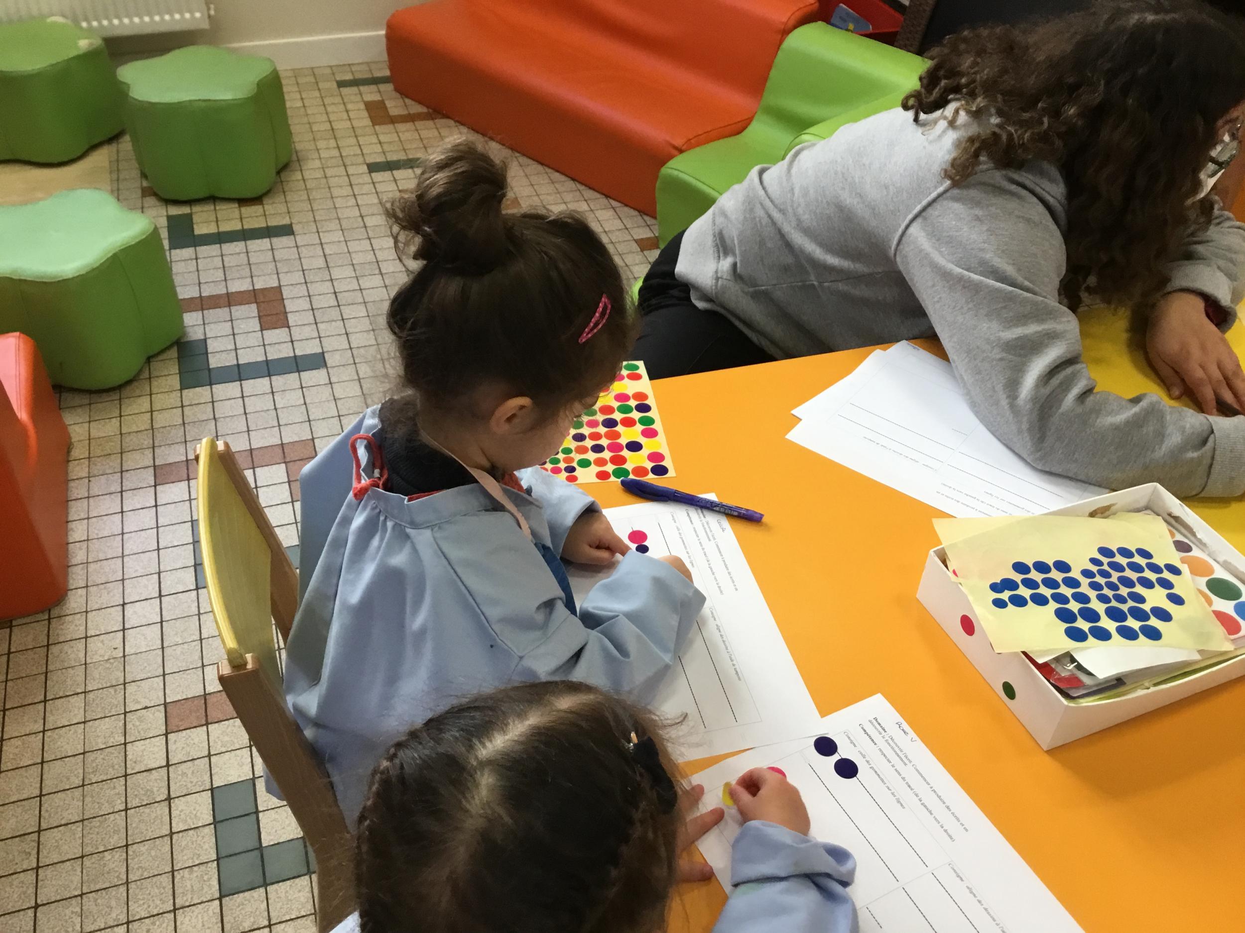 Après le trait vertical, les élèves ont travaillé autour du trait horizontal. Ces séances leur ont permis d’appréhender le sens de l’écrit de la gauche vers la droite et de maîtriser leur geste.