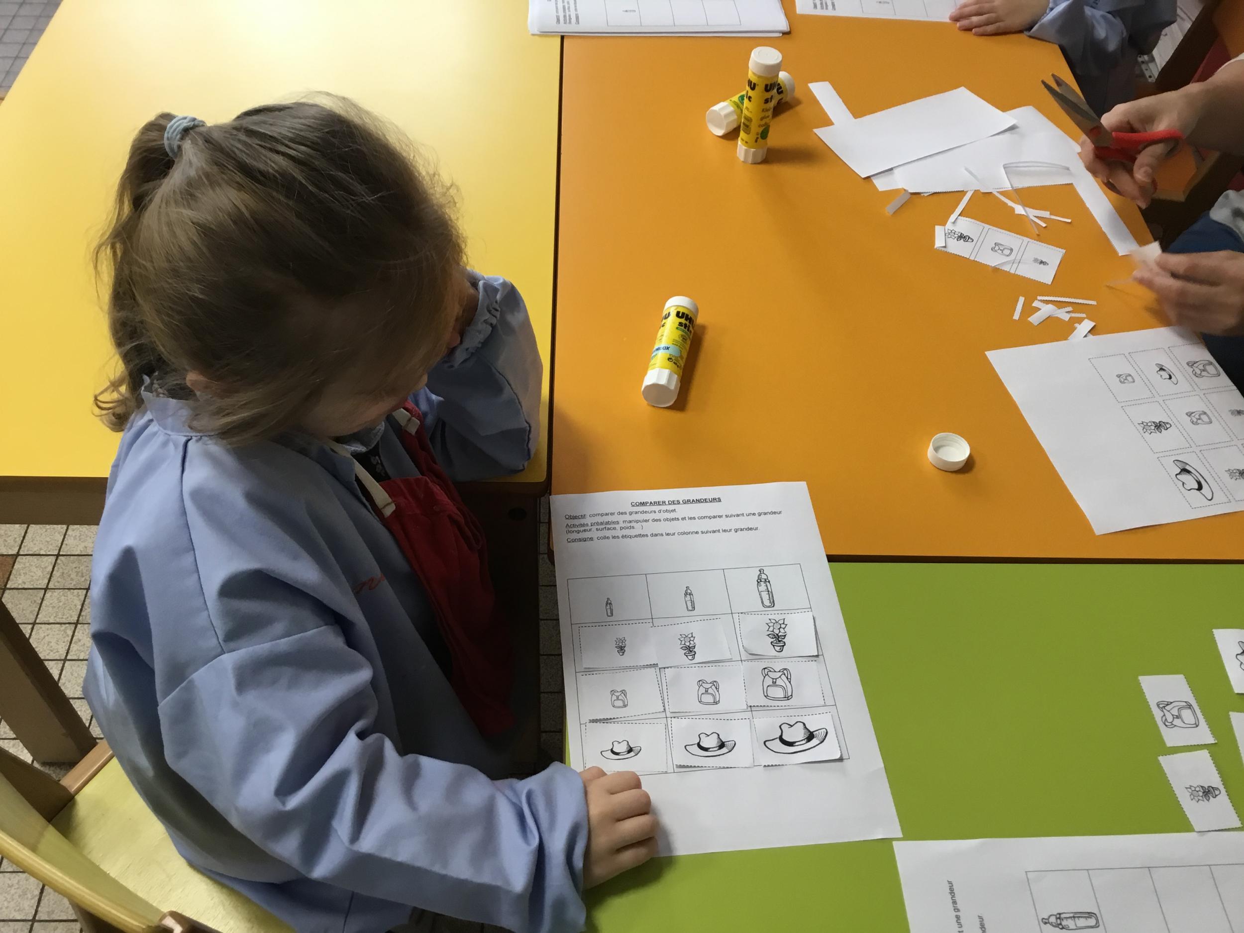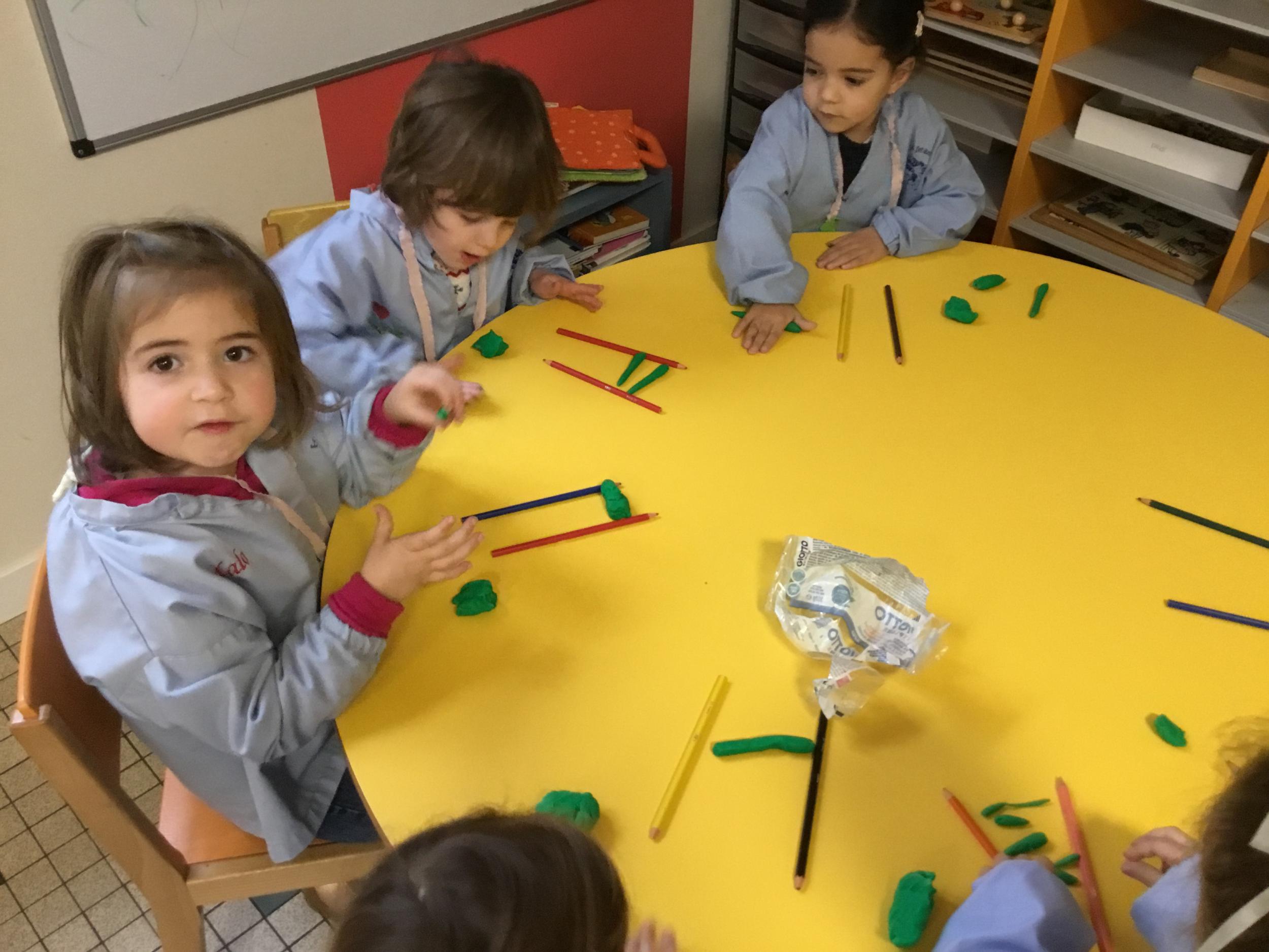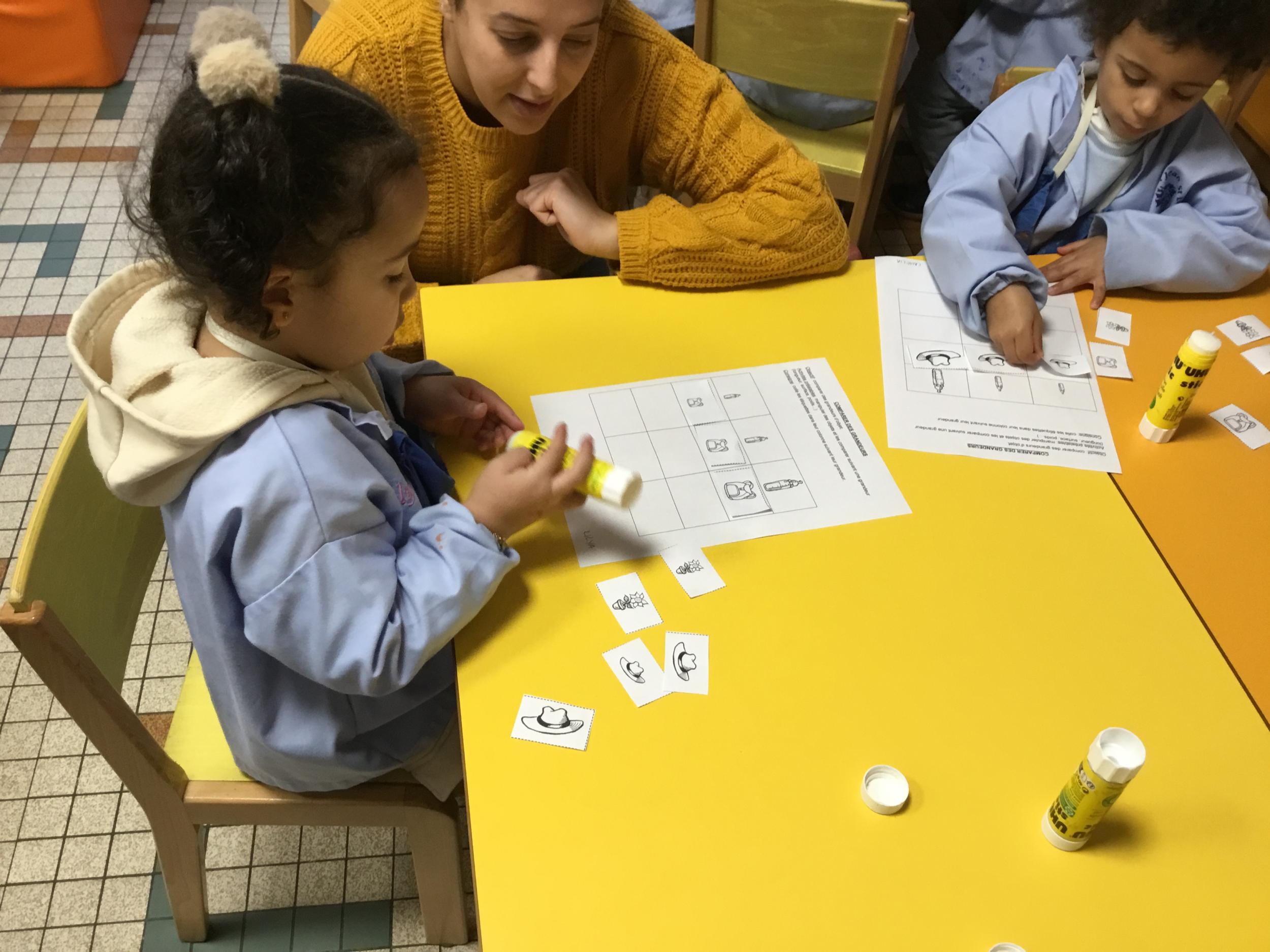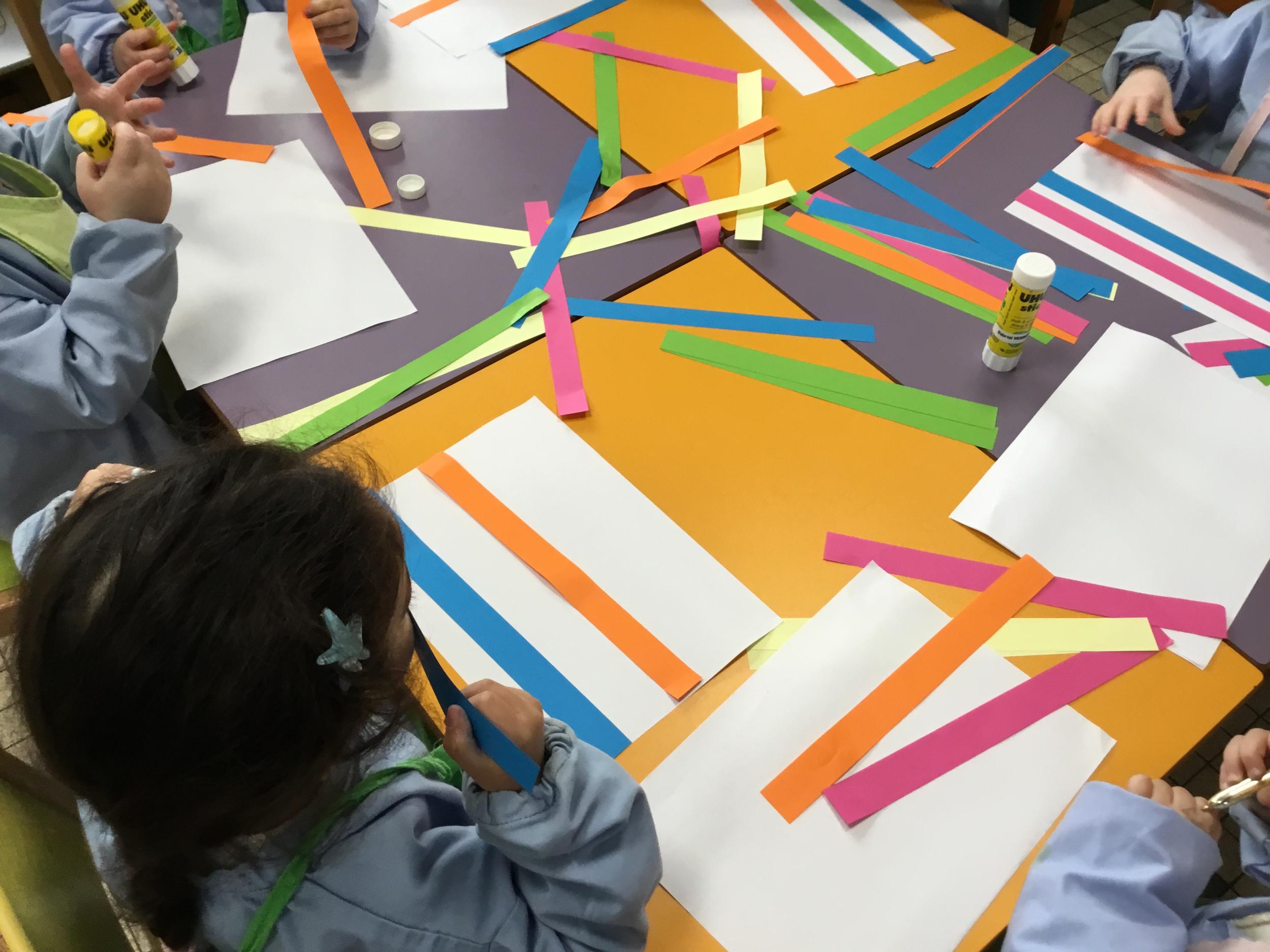 Petite et moyenne section 01/02/2026 Laisser une trace horizontale Coller des bandes papier dans le sens horizontal et tracer un trait horizontal entre chaque bande Modeler des boudins et les ranger de manière horizontale Ranger des objets du plus petit au plus grand Bravo à Victoria et Louna