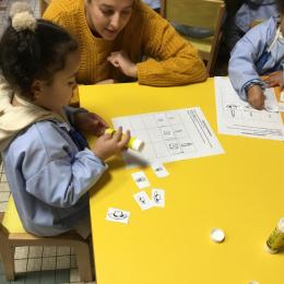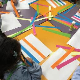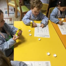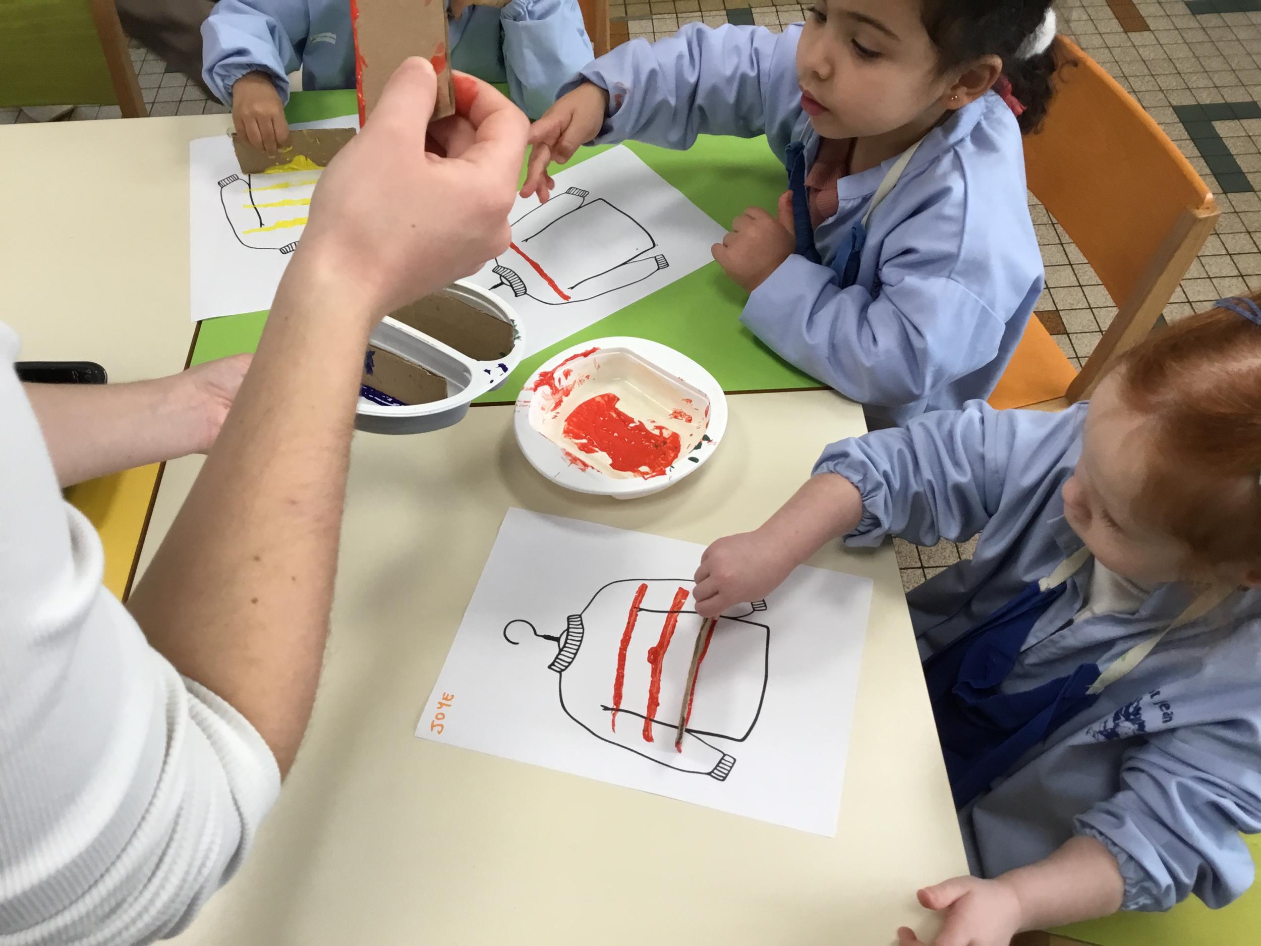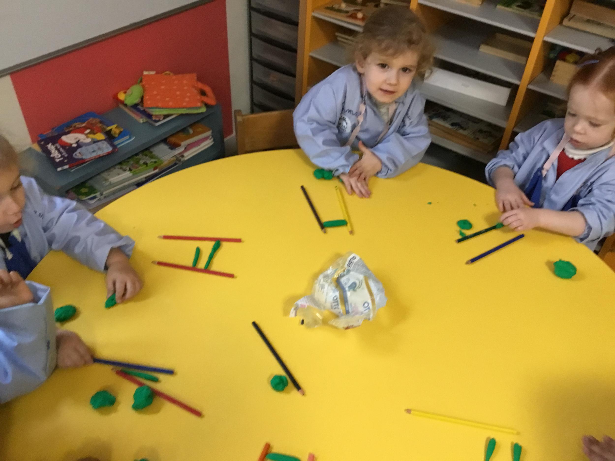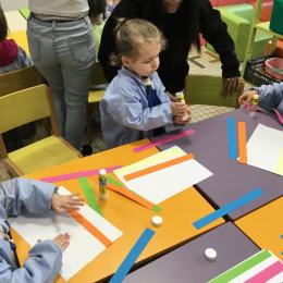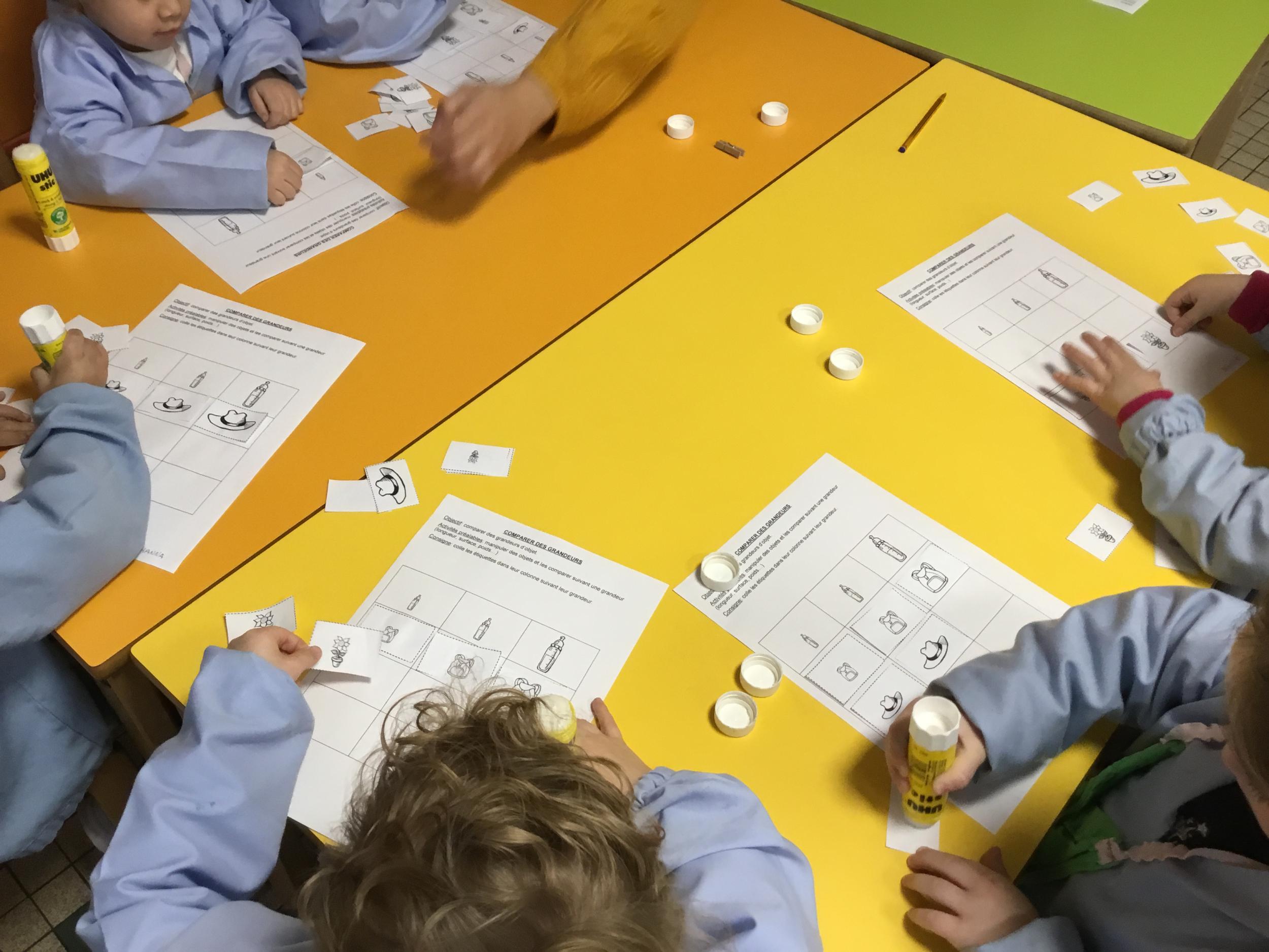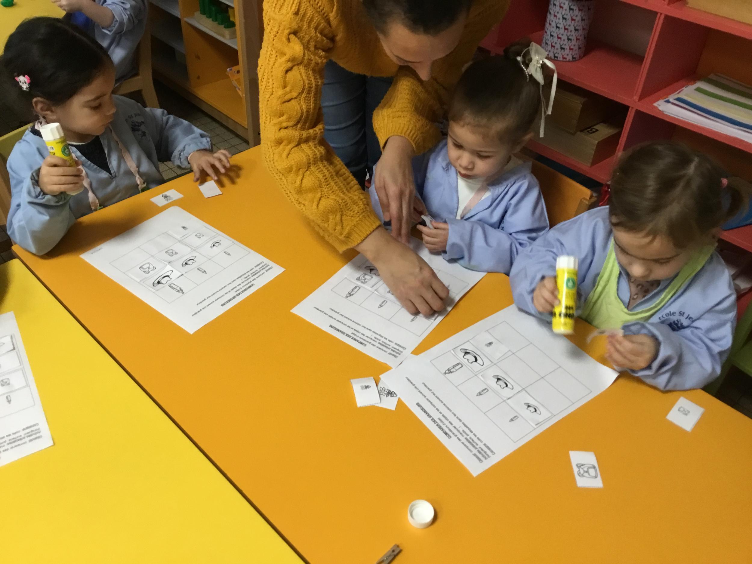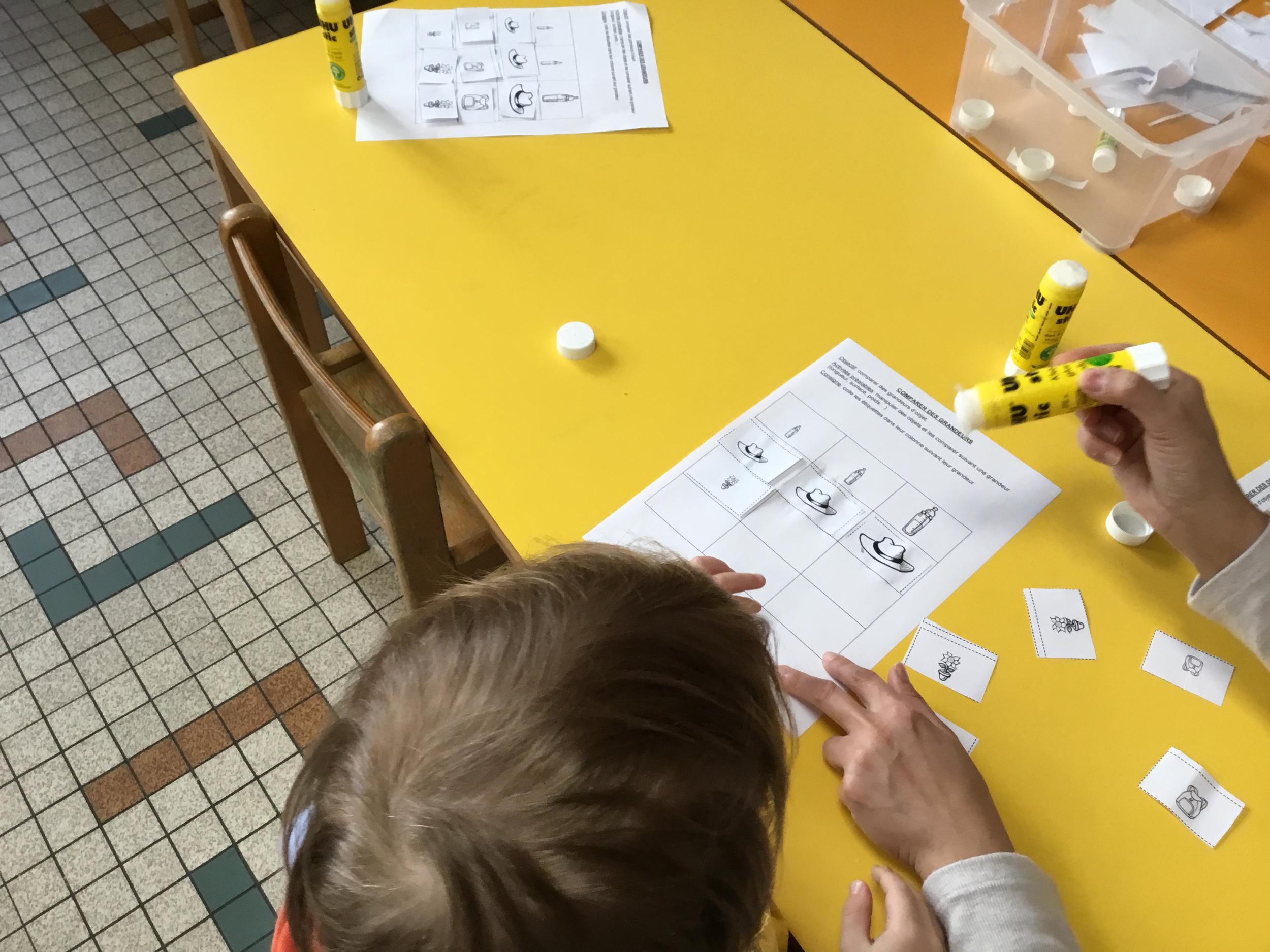 Petite et moyenne section 01/02/2026 Laisser une trace horizontale Coller des bandes papier dans le sens horizontal et tracer un trait horizontal entre chaque bande Modeler des boudins et les ranger de manière horizontale Ranger des objets du plus petit au plus grand Bravo à Victoria et Louna