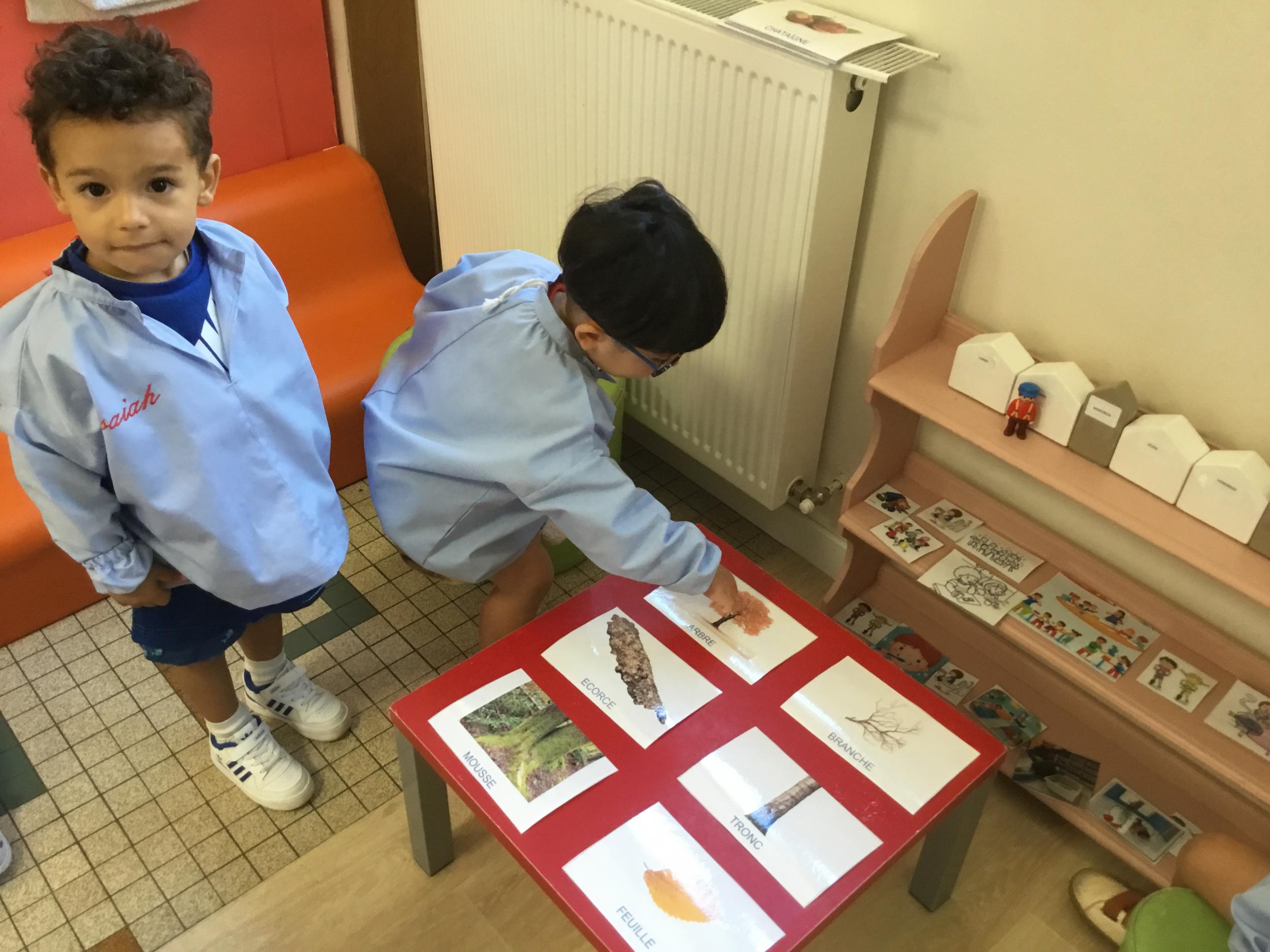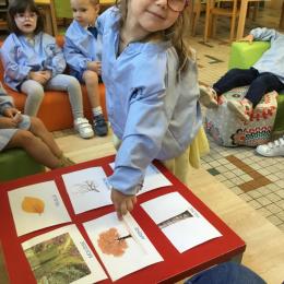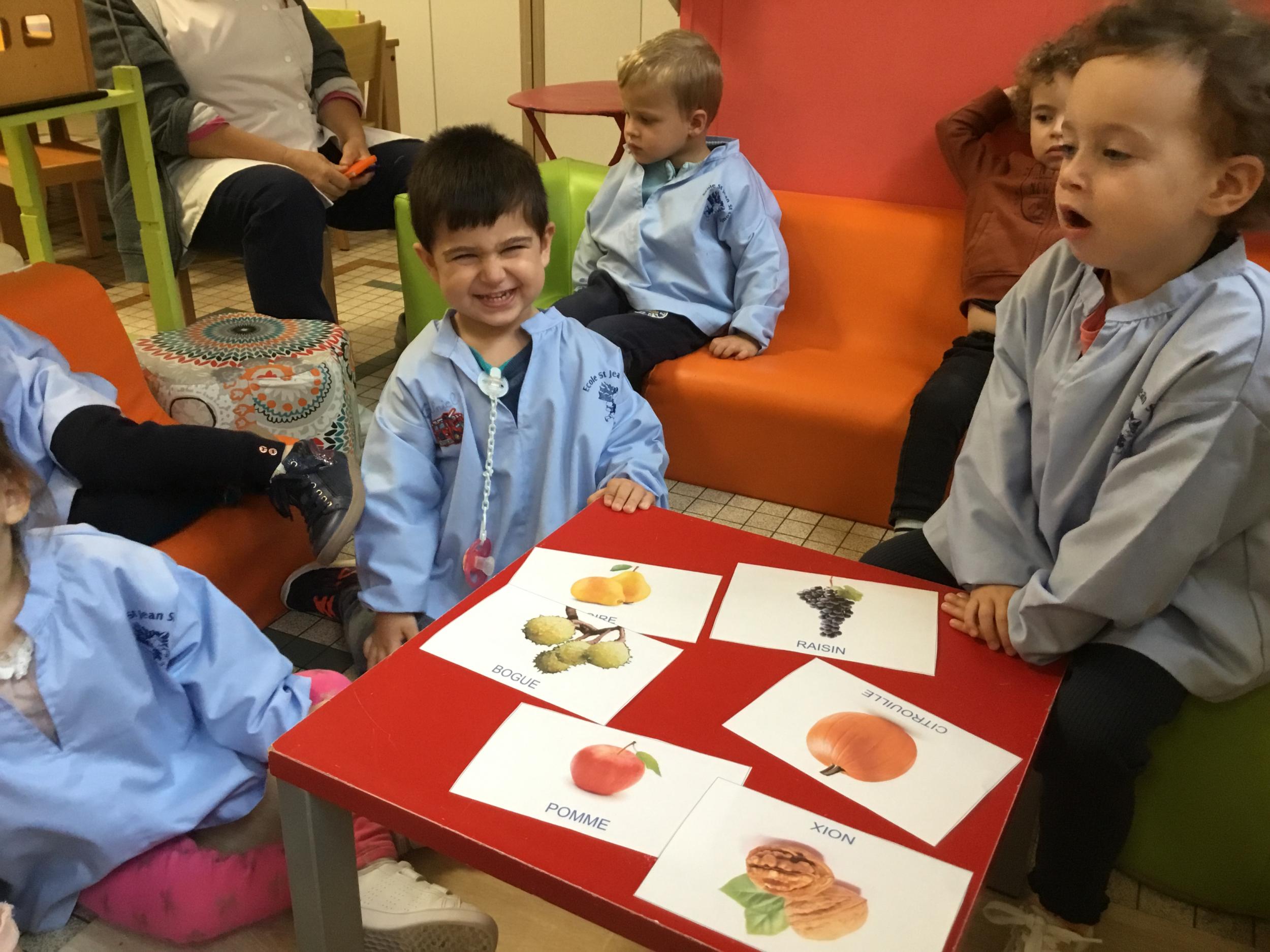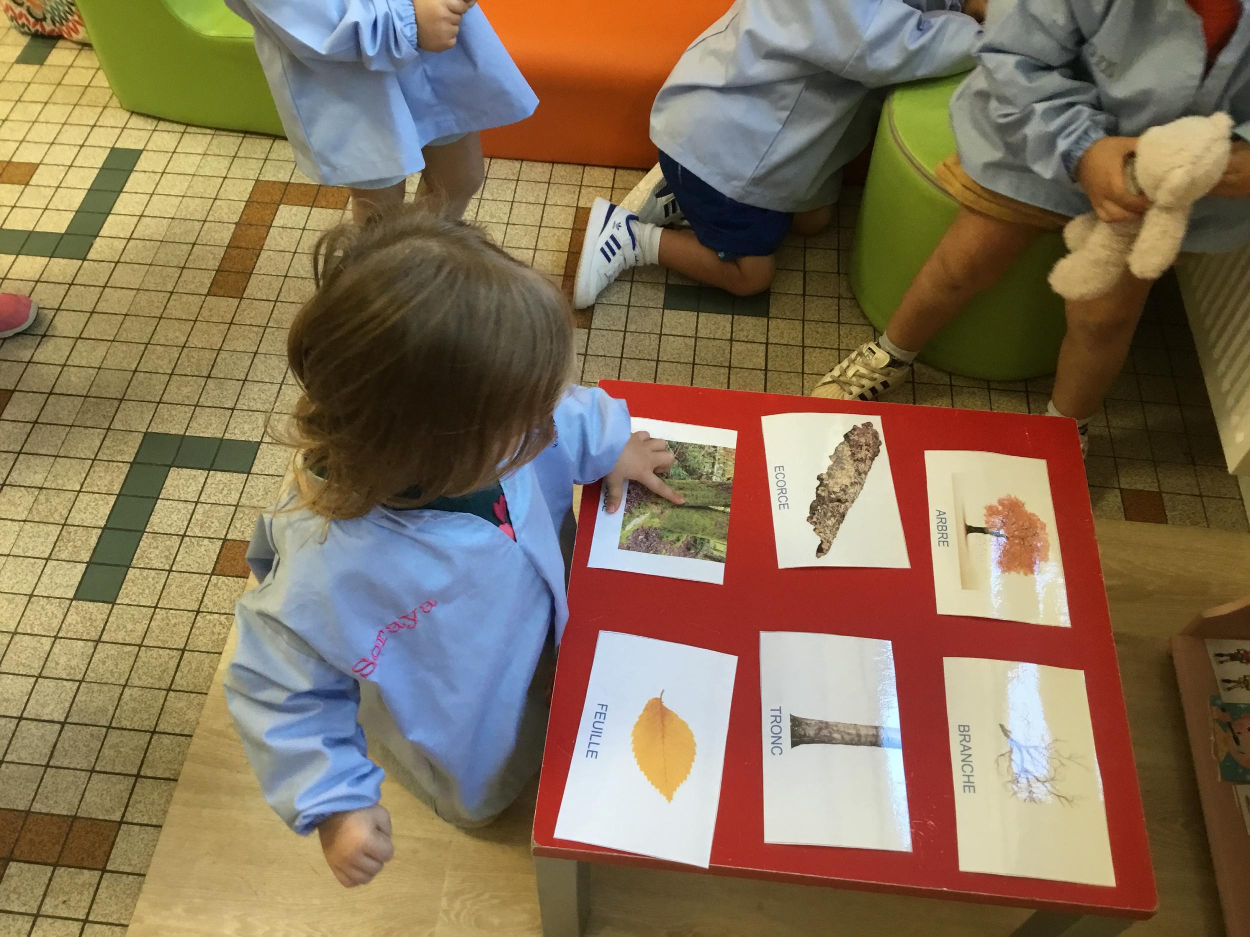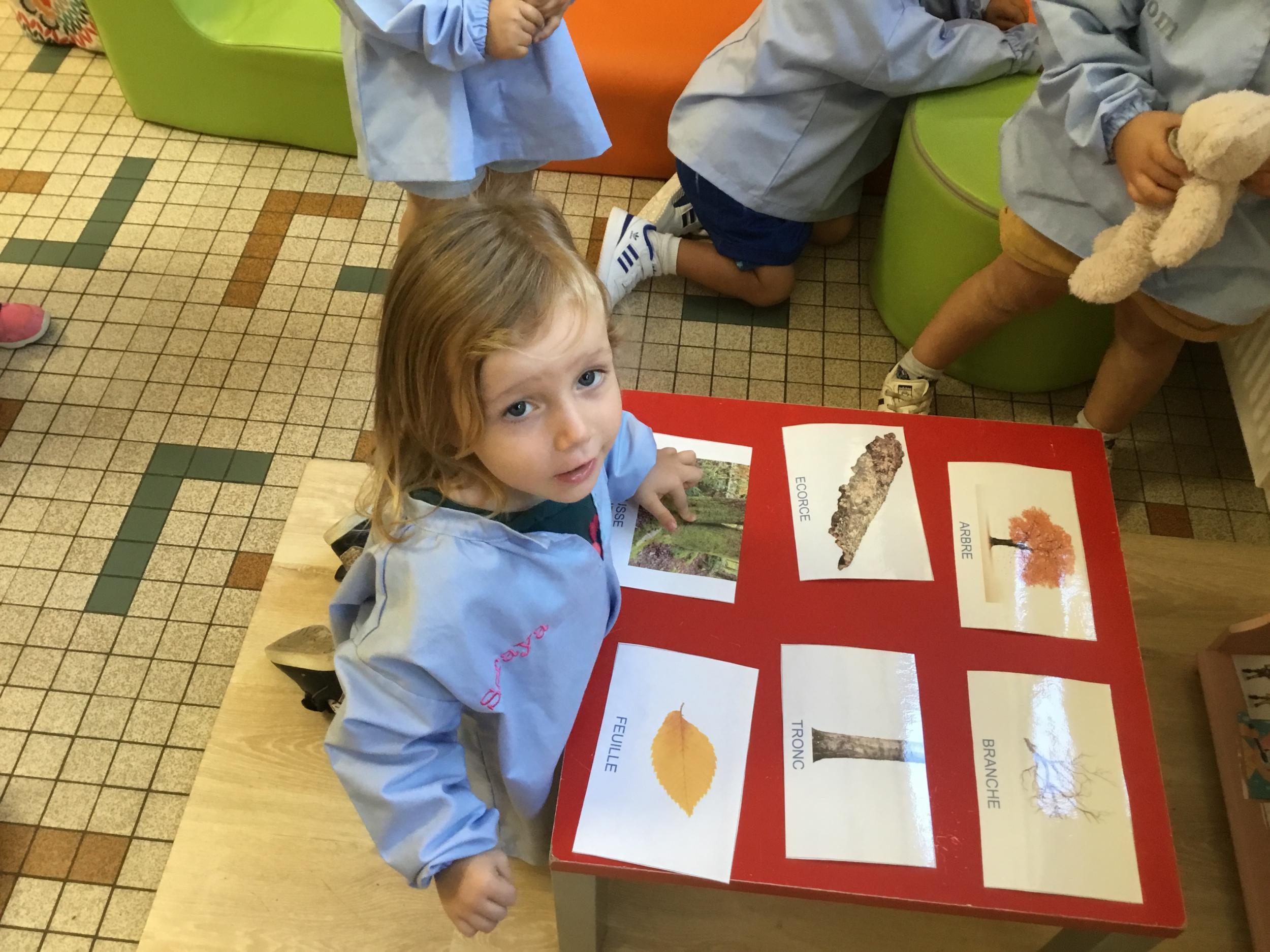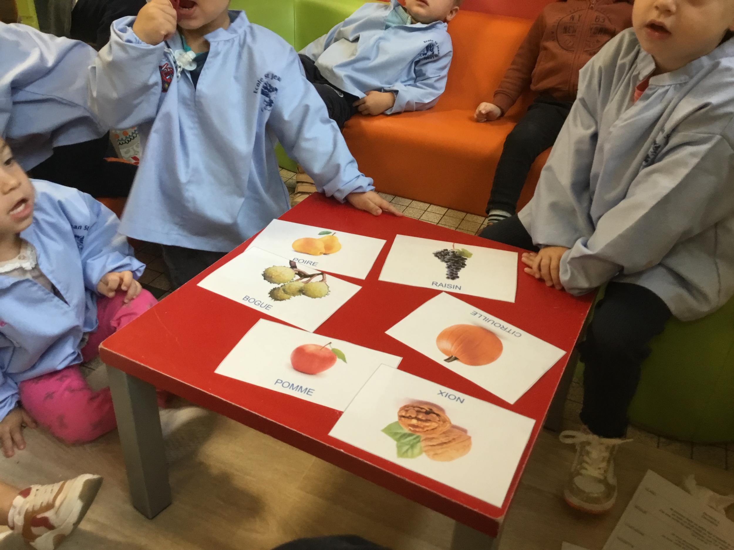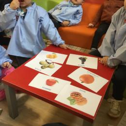 Les élèves de petite section vont travailler le vocabulaire tout au long de l’année sur le thème des saisons. L’automne pour cette période est traité à partir de l’album « Un automne avec Pop ». Puis le travail a été enrichi par un atelier de langage à partir d’images autour de l’arbre et des fruits de saison et par les différentes sorties scolaires: une au verger et dans quelques jours une autre en forêt. Au delà du vocabulaire, voilà une première approche du travail autour de l’exploration du monde et du vivant.