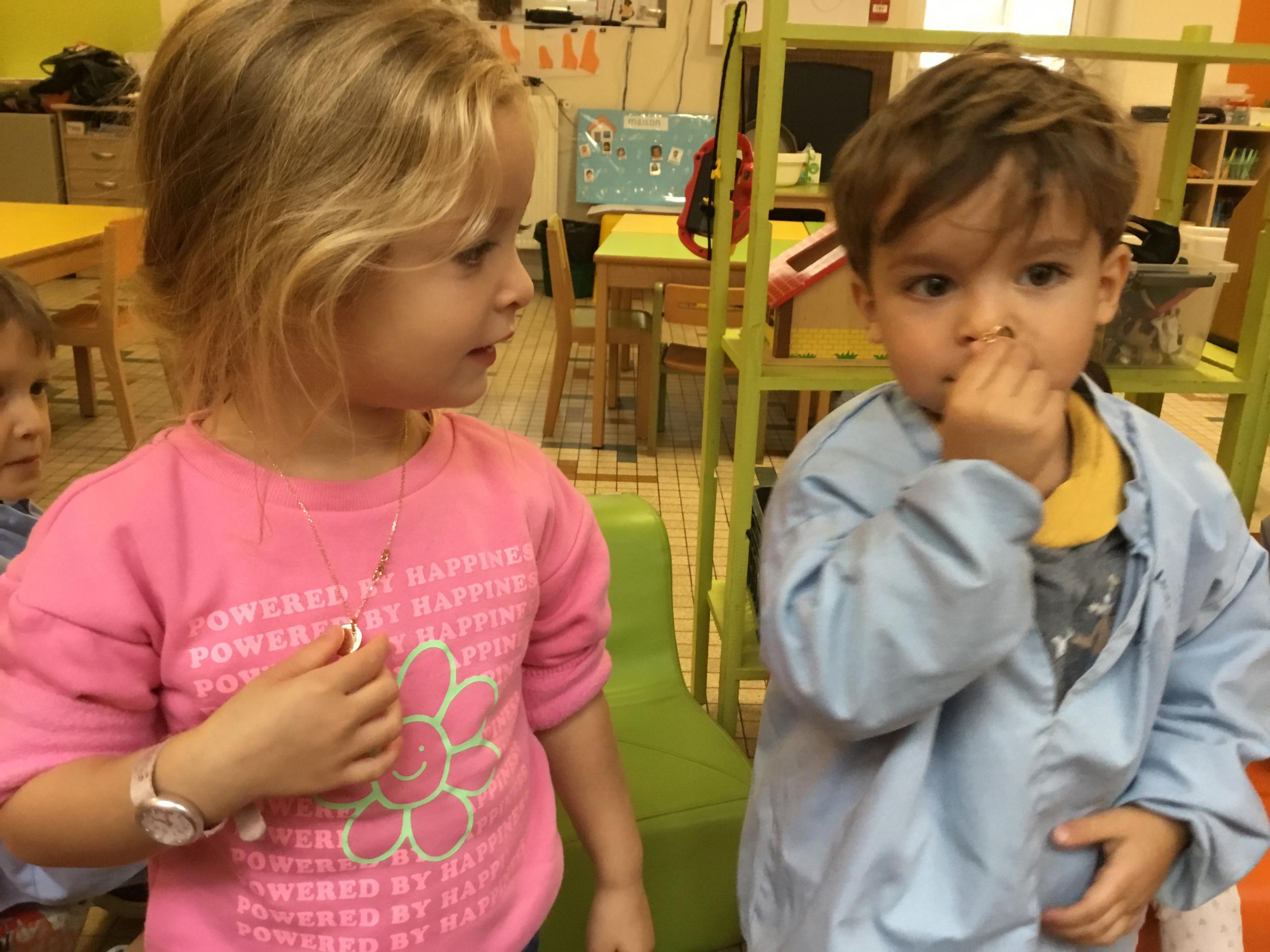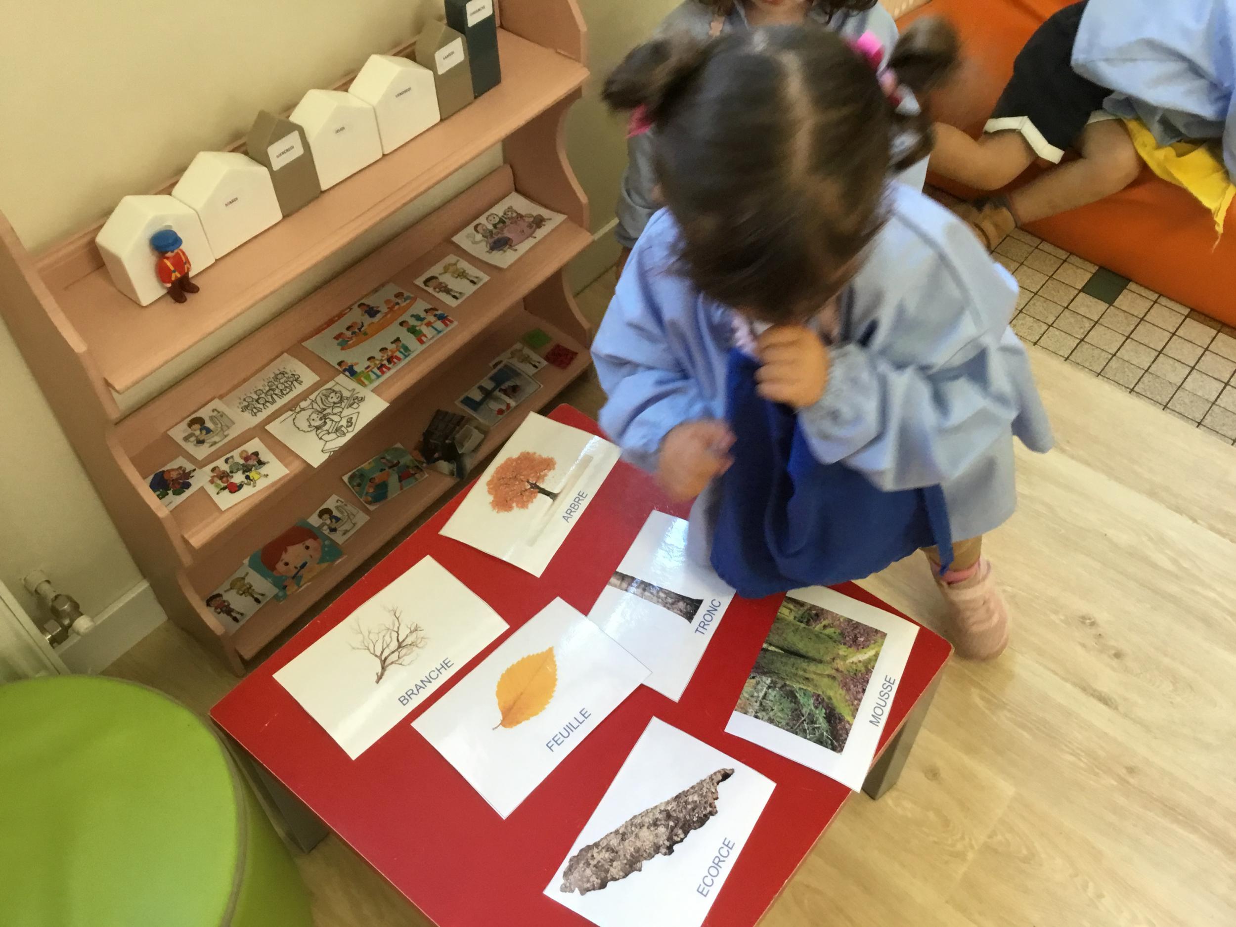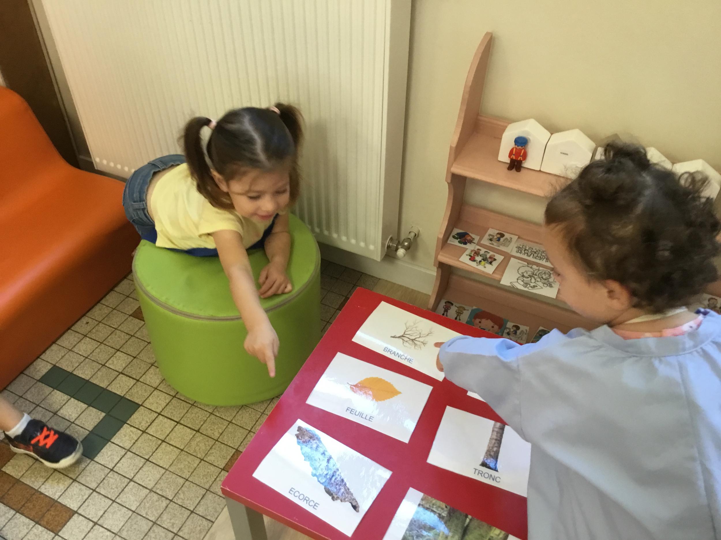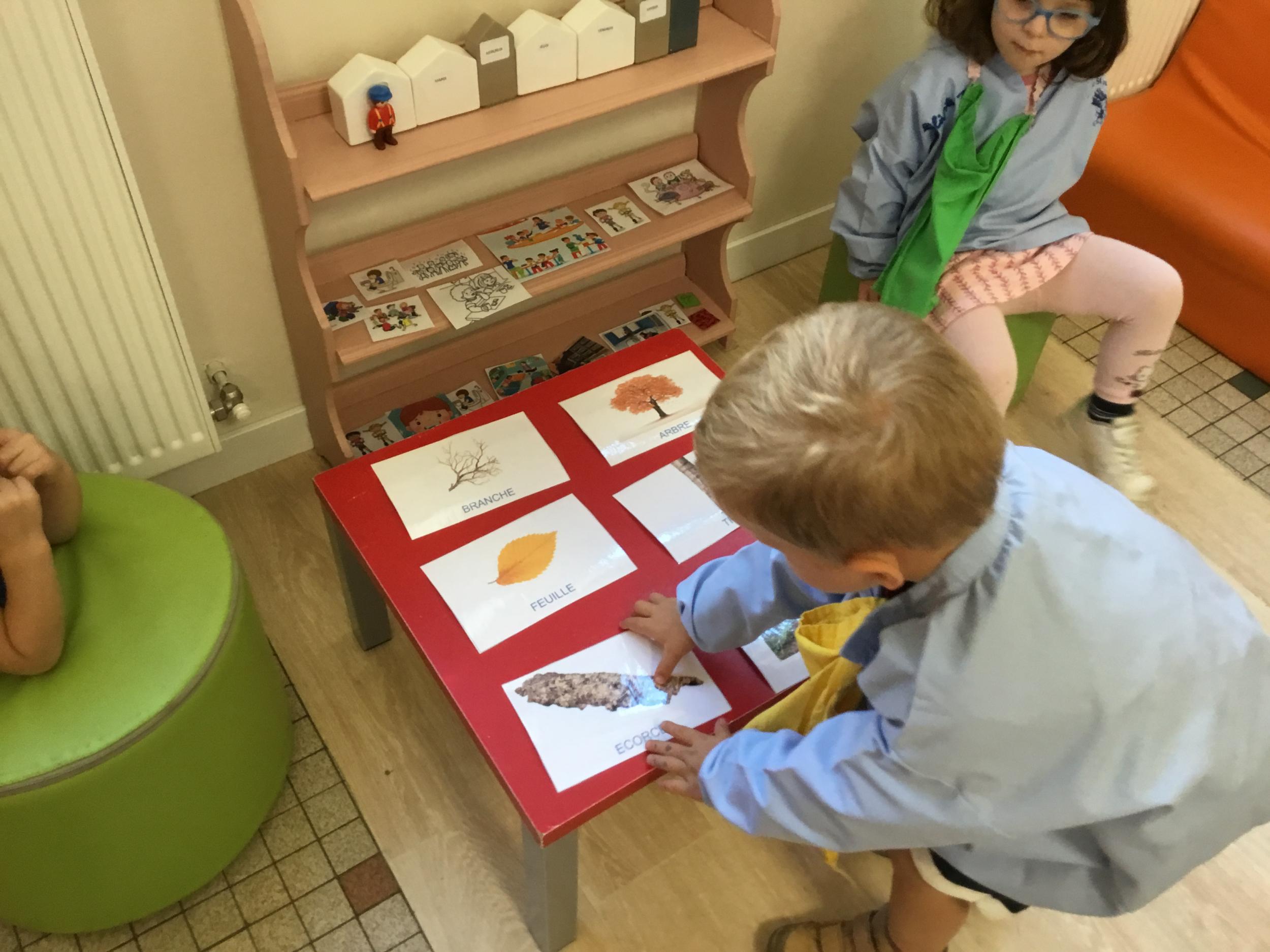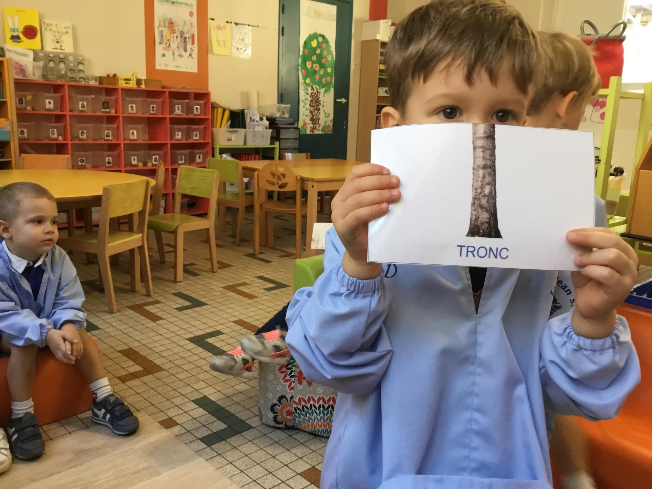 Les élèves de petite section vont travailler le vocabulaire tout au long de l’année sur le thème des saisons. L’automne pour cette période est traité à partir de l’album « Un automne avec Pop ». Puis le travail a été enrichi par un atelier de langage à partir d’images autour de l’arbre et des fruits de saison et par les différentes sorties scolaires: une au verger et dans quelques jours une autre en forêt. Au delà du vocabulaire, voilà une première approche du travail autour de l’exploration du monde et du vivant.