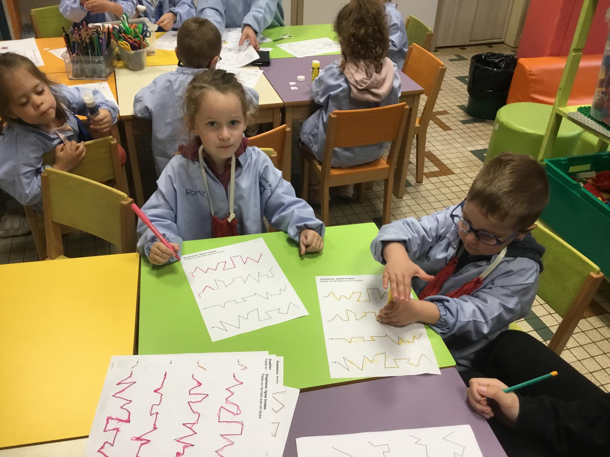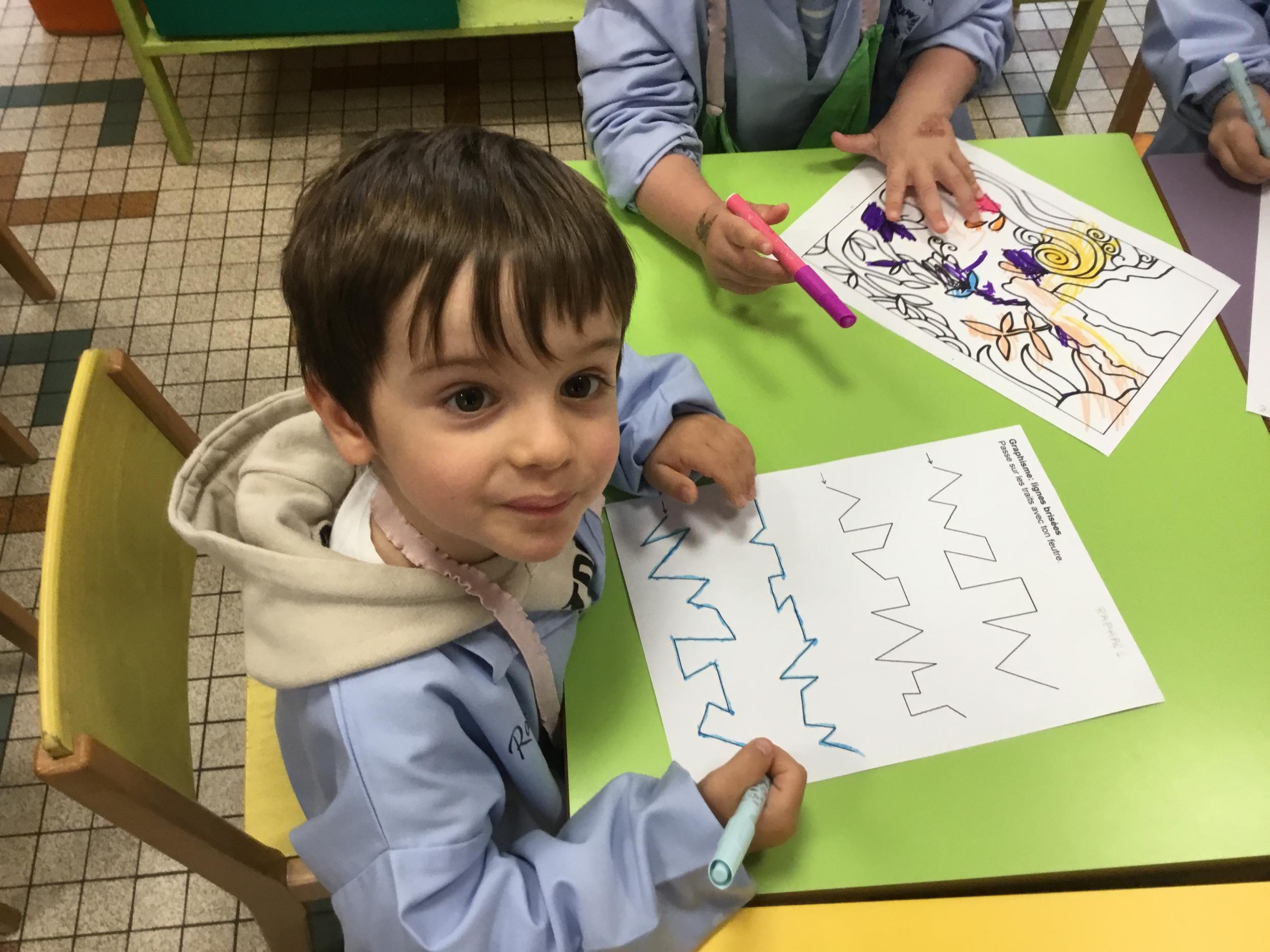 Petite et moyenne section 11/05/2025 Ce début de période les élèves ont travaillé sur la fiche du mois de mai, les codes couleurs et les formes, le graphisme. De nouvelles médailles pour bon comportement ont été décernées. Le graphisme Respecter un code couleur Le prénom Les médaillés de la semaine